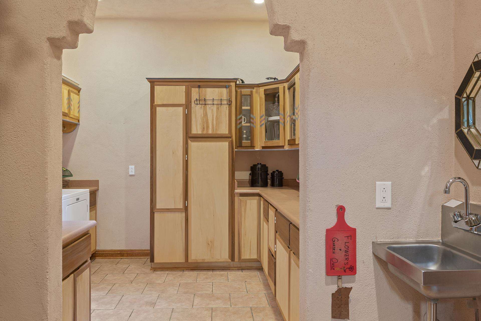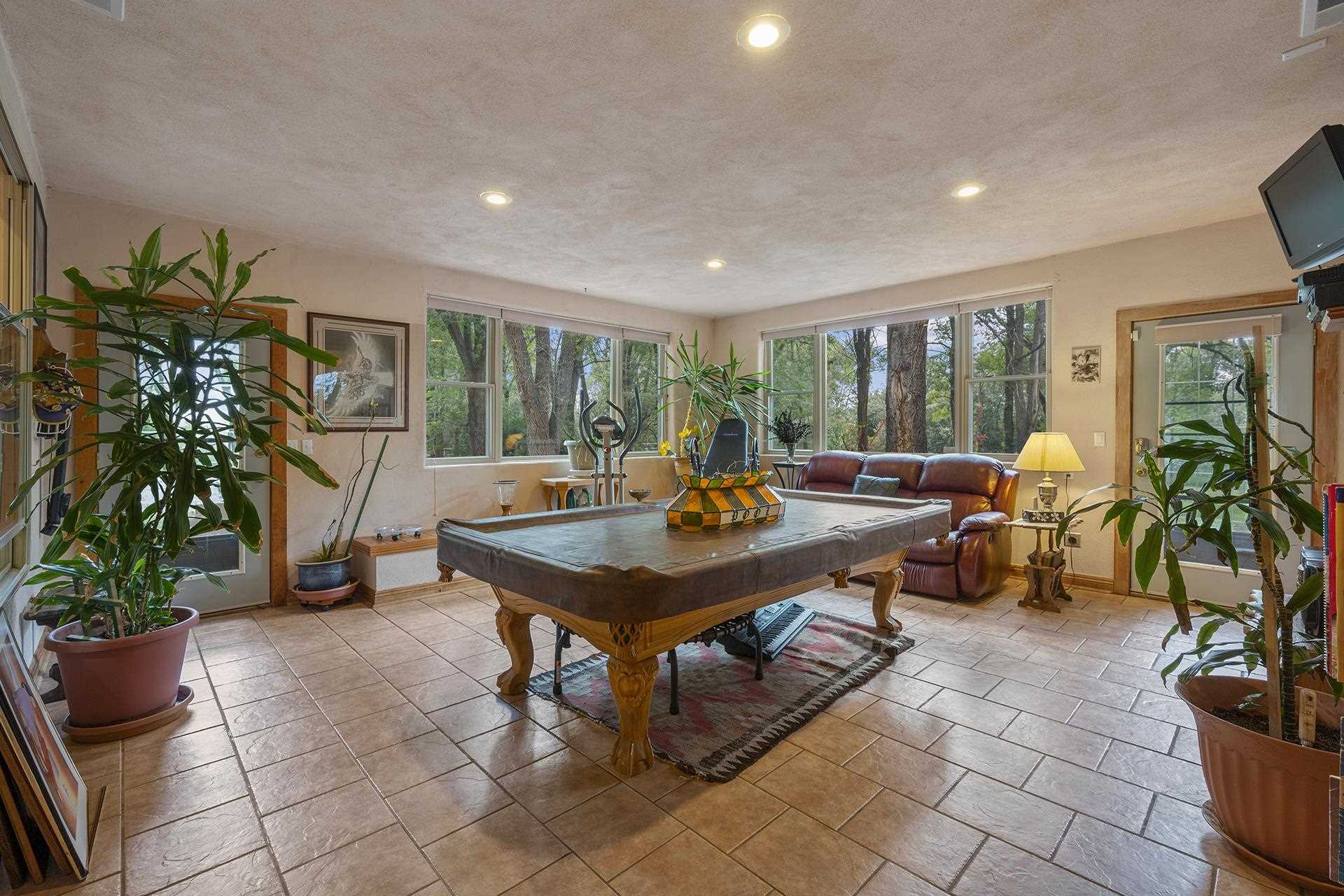 Tucked away a couple of miles outside of Las Vegas, New Mexico is this Oasis, plush in the summer and cozy in the winter with a blanket of snow, somedays, and a New Mexico star-filled sky. Come across the Acequia and drop into the 47 Acres, with 25.4 water rights UNDER MORATORIUM. Here sits this Southwest Style home comprising 3 bedrooms 2 1/2 baths. The front entrance brings you into the living room, with a large dining area, the kitchen with granite countertops sits on one side of this open floor plan. The vaulted ceiling has a scalloped edge where the Vigas enter the wall. This wing of the house has a large sun-filled room. There is an office, and two bedrooms that sit on this side of the home, with a shared bath. You can reach the two-car attached garage from here, with mudroom and the laundry room. The home is accented with hardwood floors and Saltillo tile. This one-level, open space home has your entertainment area with a lunch or breakfast nook and a wet bar. The large Master Bedroom has a Master Bath with Steam Shower and Jet-bath, 2- large walk-in closets. This en- suite is on the other wing of the house. Outside country living or entertainment, you have a Gazebo and two roofed sitting areas, one in the front of the house, a nice sitting area waiting for guests to arrive, or to have morning coffee. Walking away from the house is a Casita with a windowed kitchen, 2-bedrooms, one oversized, and living room, 1,216/sf. Barn and domed outbuildings/storage.