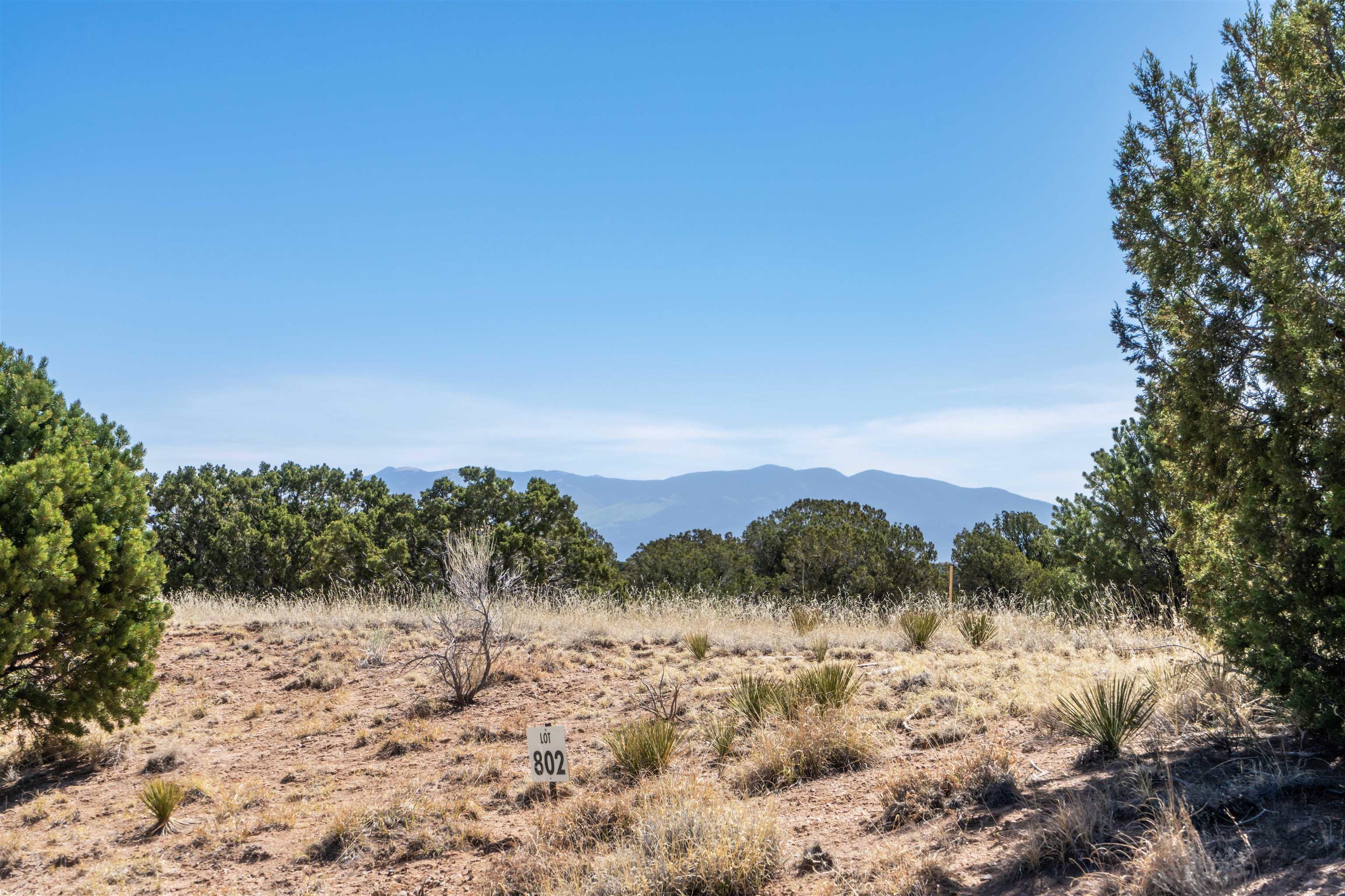 **Immediate Equity** Beautiful homesite in Estates VII, Unit 1 boasting views of the Sangres and also a sense of being nestled in the New Mexican landscape with an option for privacy. The building site (Lot 802) is relatively level allowing for ease of build and a seemingly good separation from the build sites on the adjacent lots. If you are an equestrian, the proximity to the Equestrian Center and Club House is ideal as well as being right up against the Arroyo Calabasas with many trails to enjoy. This lot has all utilities on site and is ready for you to build your dream home. The water hookup fee has been paid in full. The amenities in Las Campanas include 2 Jack Nicklaus golf courses, a beautiful gym, pool and clubhouse as well as the aforementioned Equestrian center. Feel secure with 24 hour security and gated access.