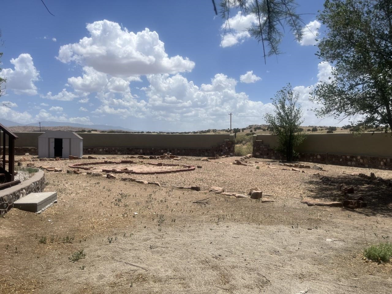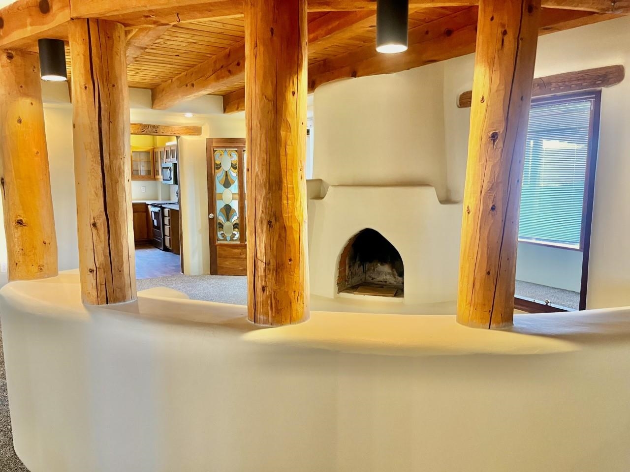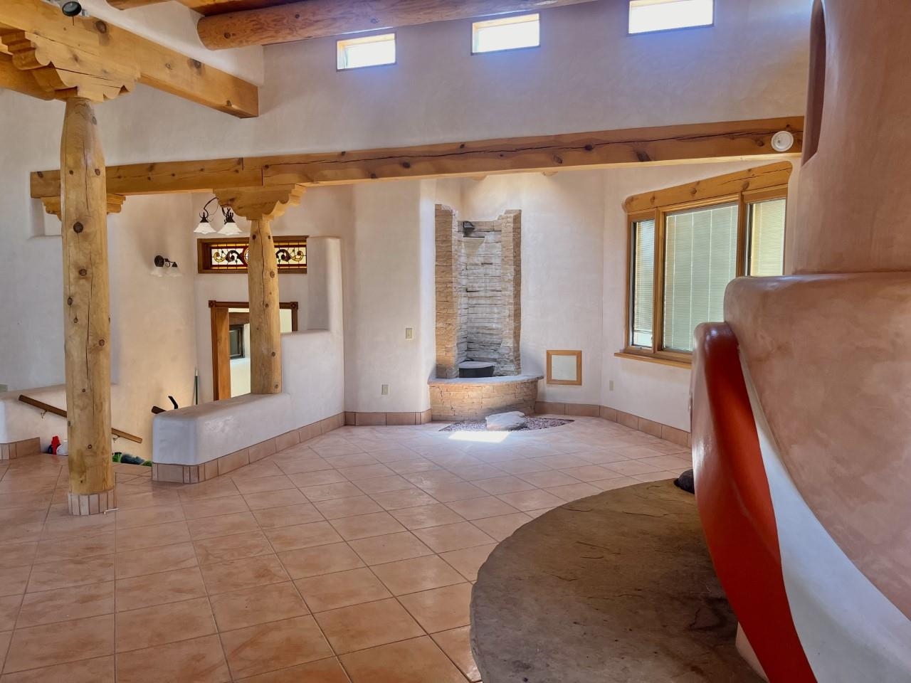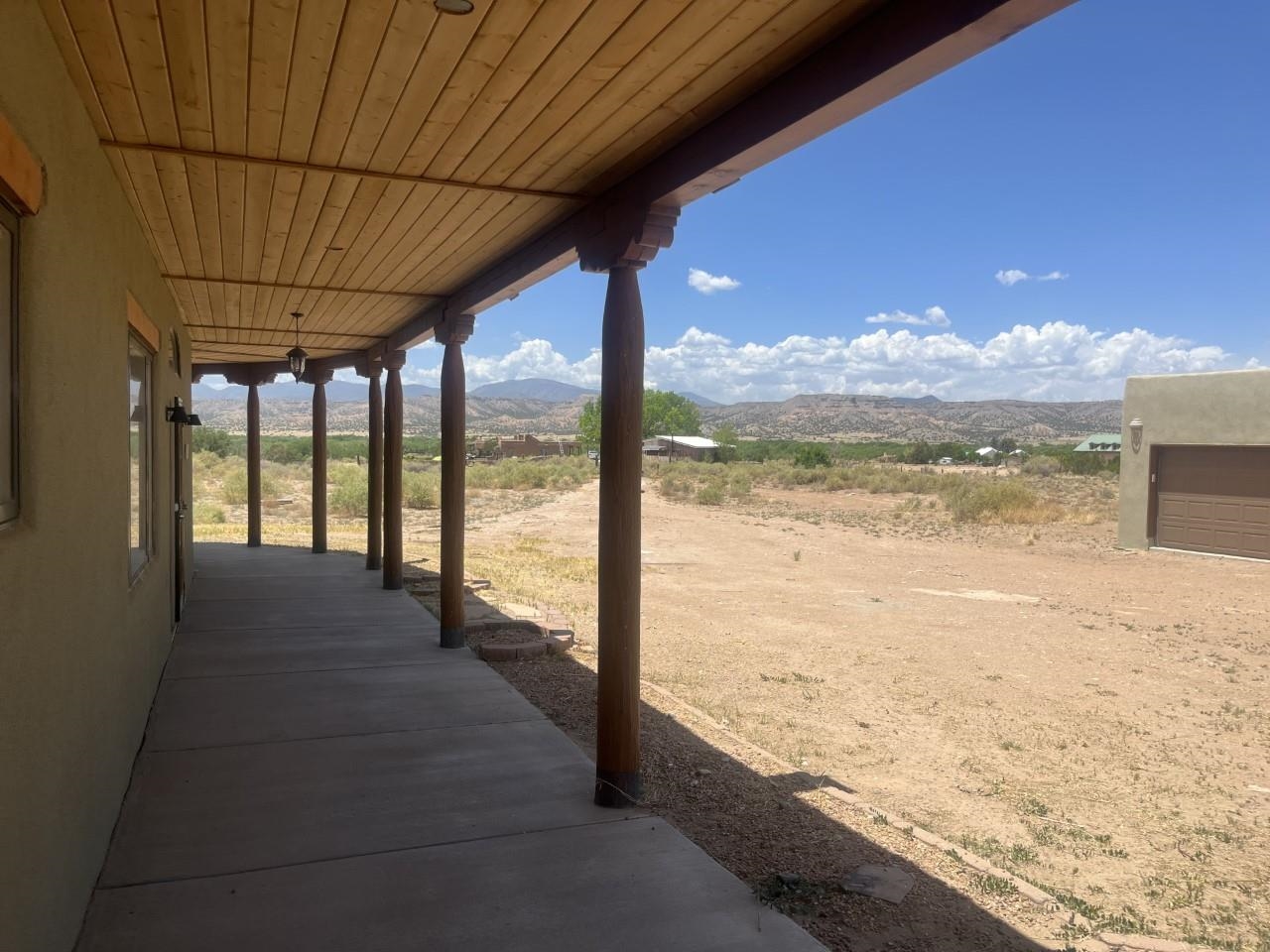 Northern NM - 3 Bedroom, 3 Bath, 4 Car Detached Garage situated on over 3 Acres. Large open living space with T & G ceiling and kiva style fireplace. Formal Dining Room, wet bar with sink and counter space. Sitting area off of kitchen - Enclosed courtyard backyard. Decks with VIEWS!! 4 Car Garage with workshop.