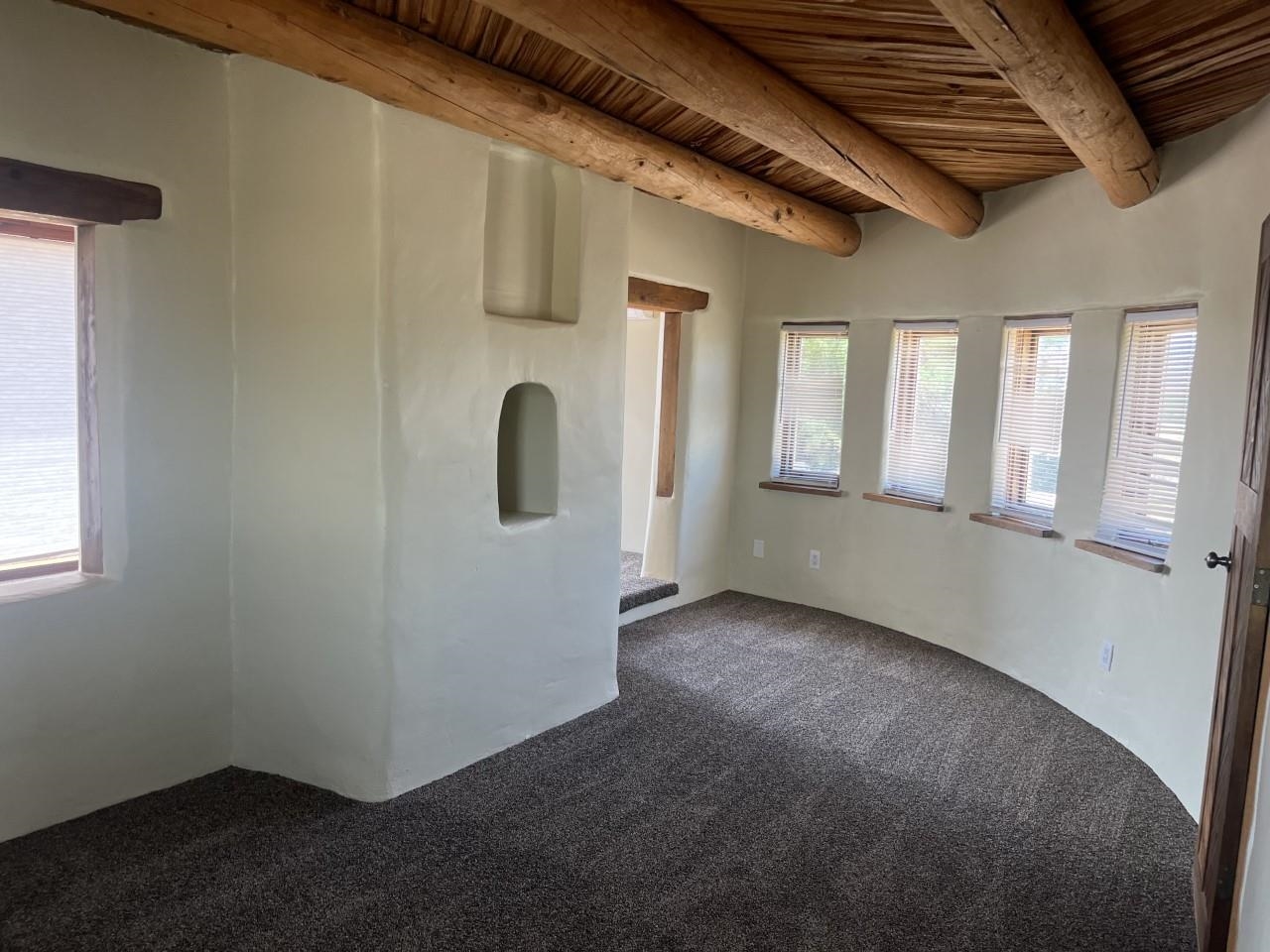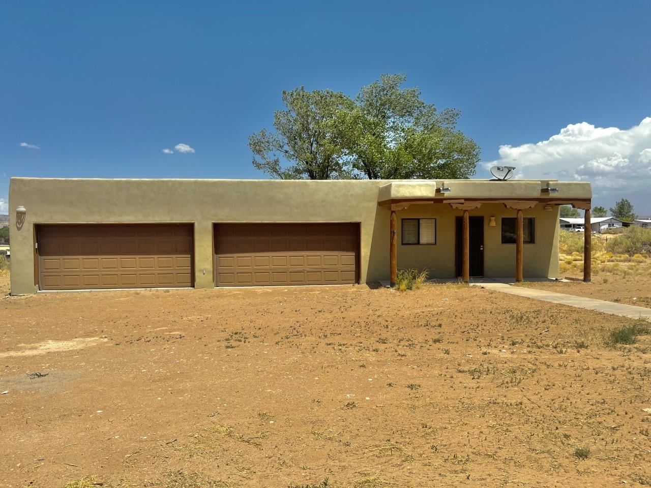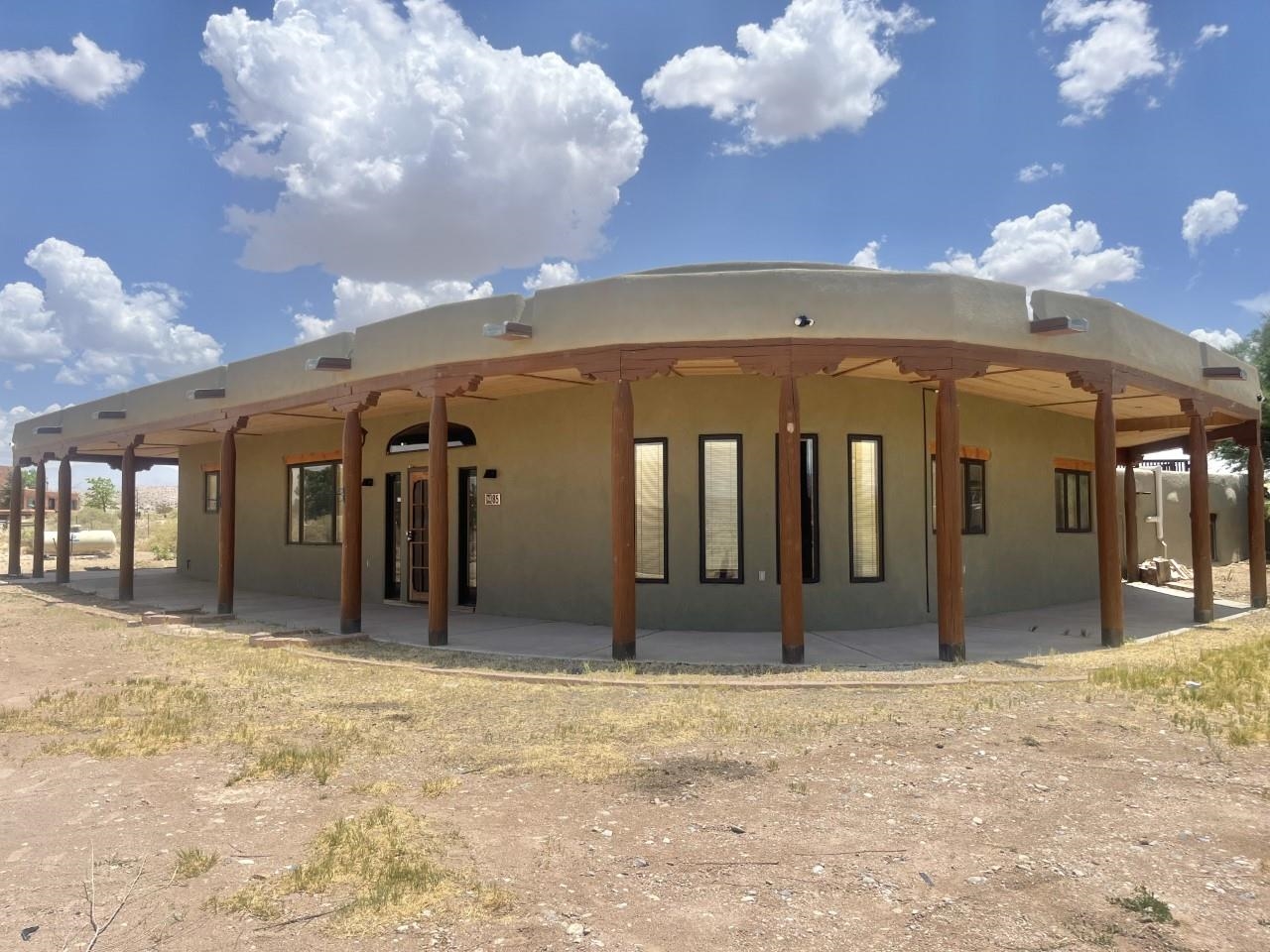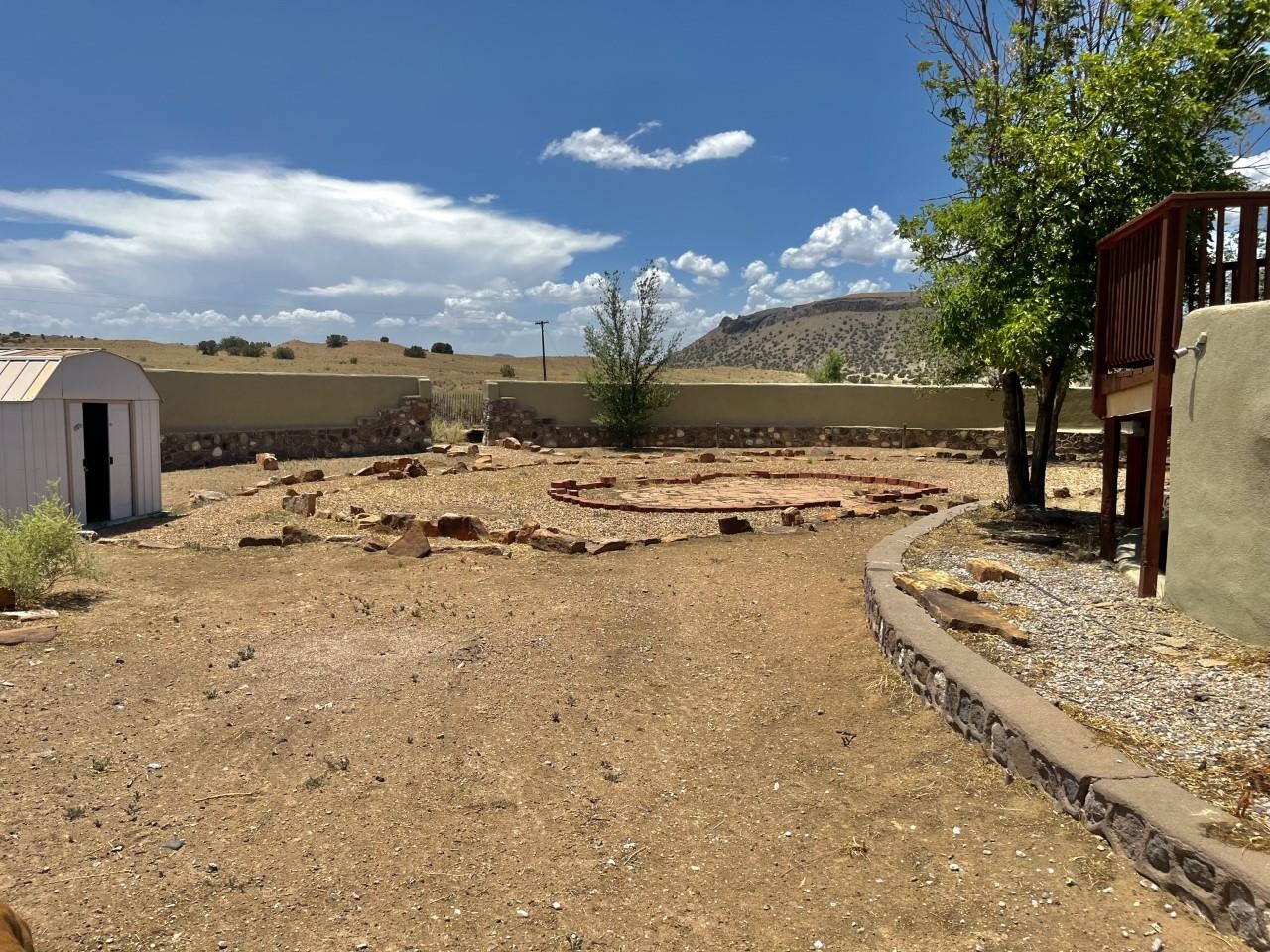 Northern NM - 3 Bedroom, 3 Bath, 4 Car Detached Garage situated on over 3 Acres. Large open living space with T & G ceiling and kiva style fireplace. Formal Dining Room, wet bar with sink and counter space. Sitting area off of kitchen - Enclosed courtyard backyard. Decks with VIEWS!! 4 Car Garage with workshop.