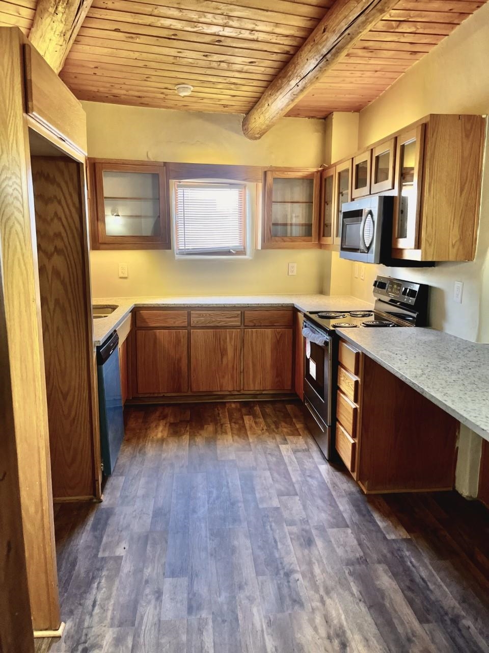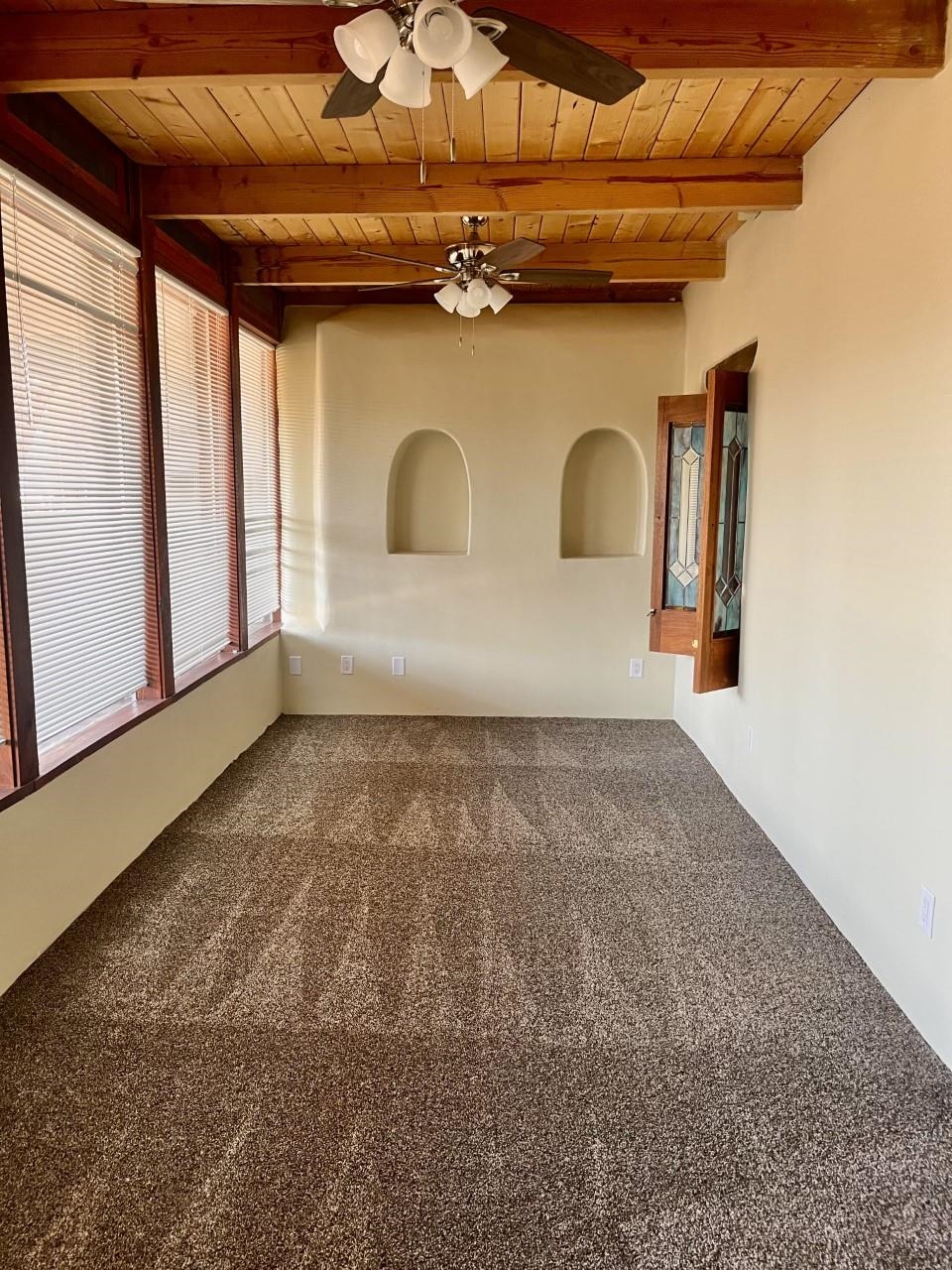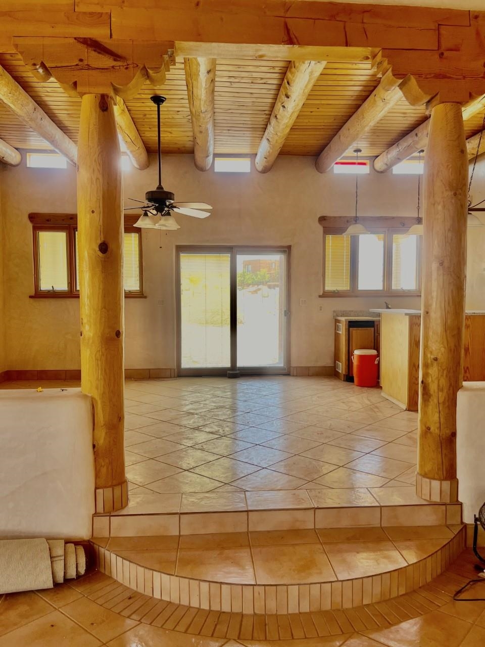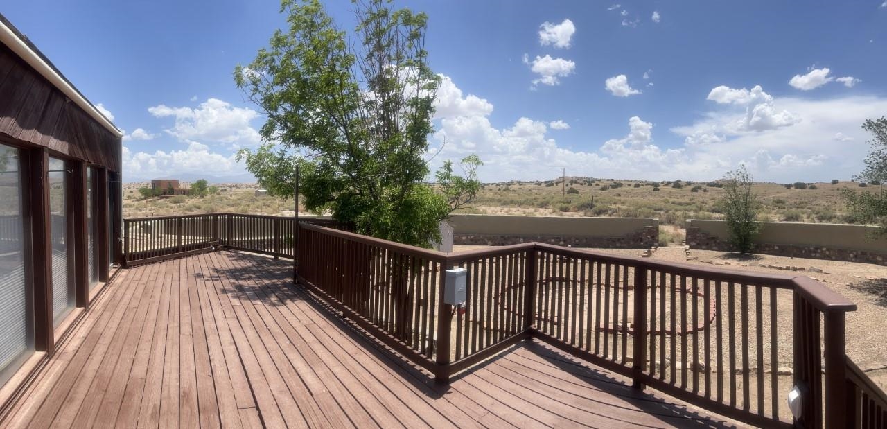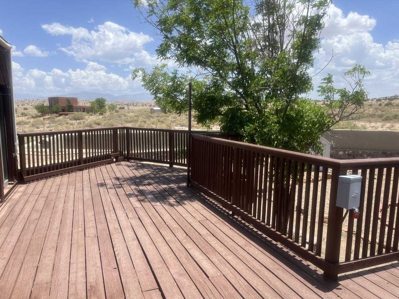 Northern NM - 3 Bedroom, 3 Bath, 4 Car Detached Garage situated on over 3 Acres. Large open living space with T & G ceiling and kiva style fireplace. Formal Dining Room, wet bar with sink and counter space. Sitting area off of kitchen - Enclosed courtyard backyard. Decks with VIEWS!! 4 Car Garage with workshop.