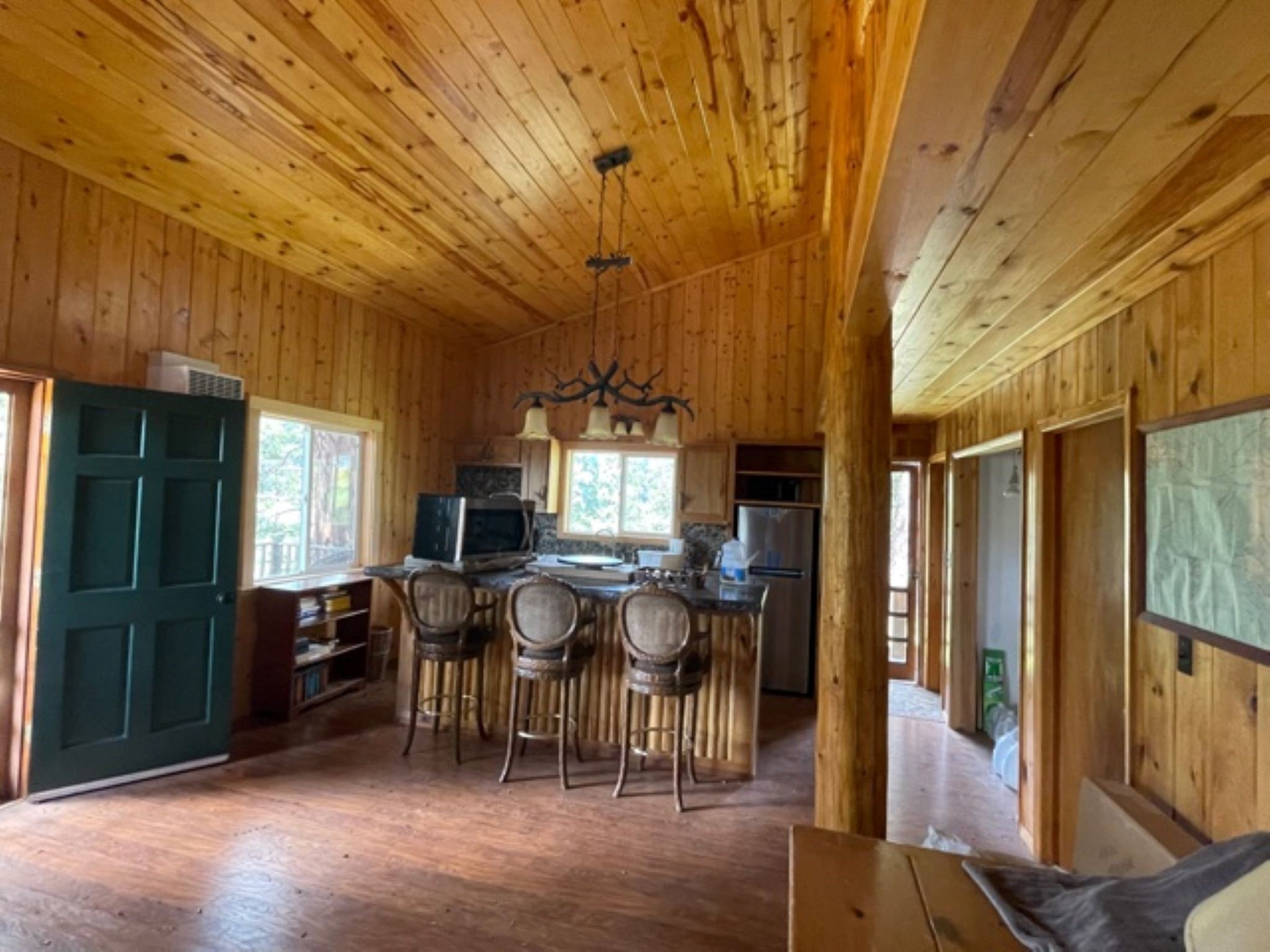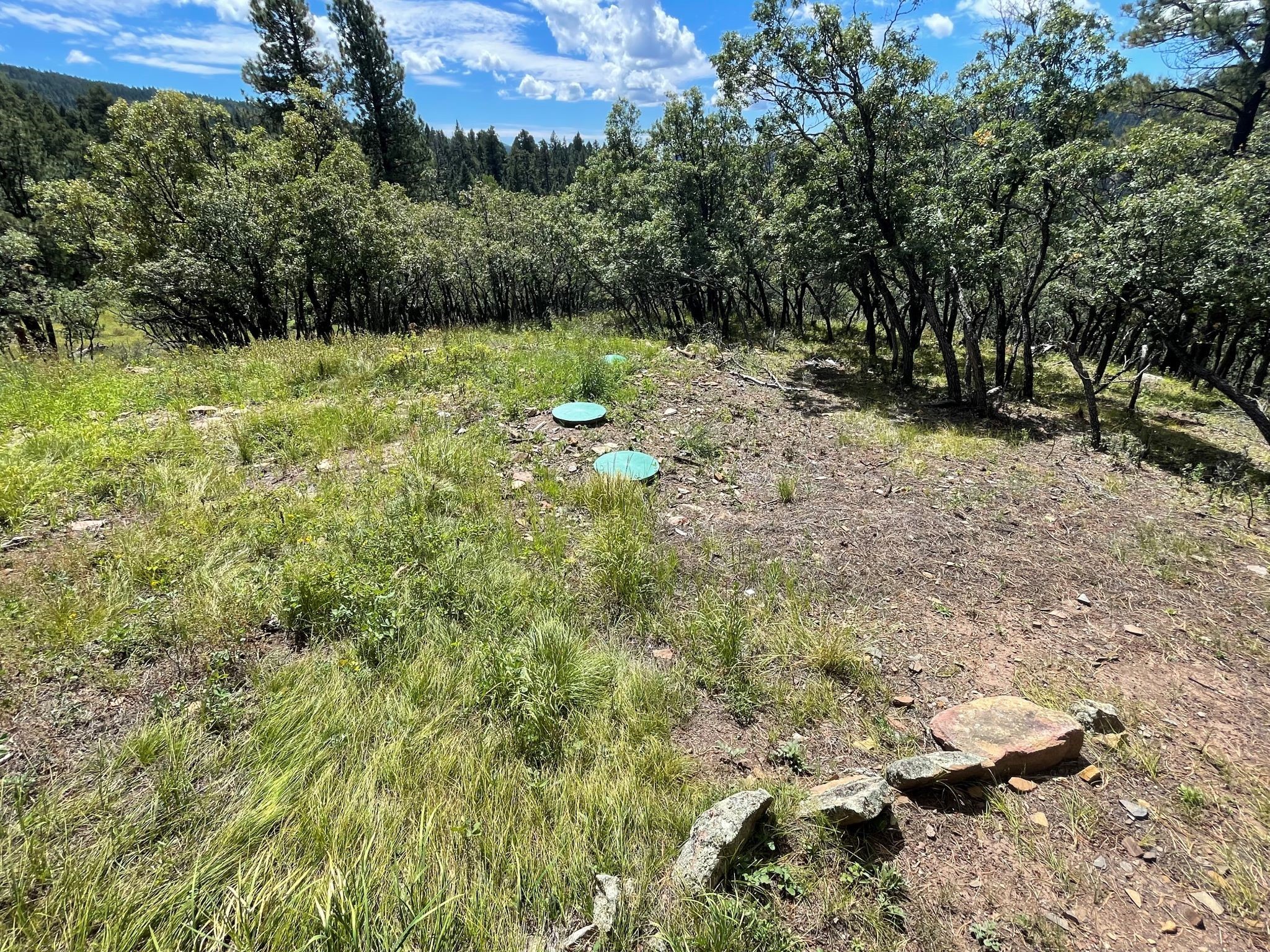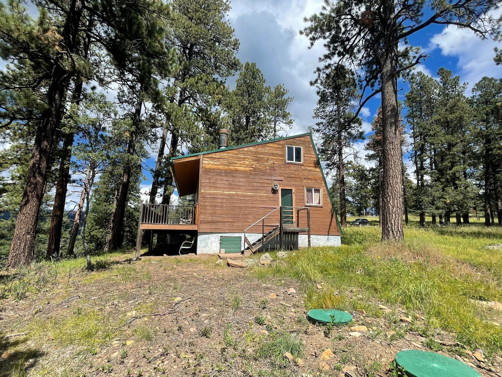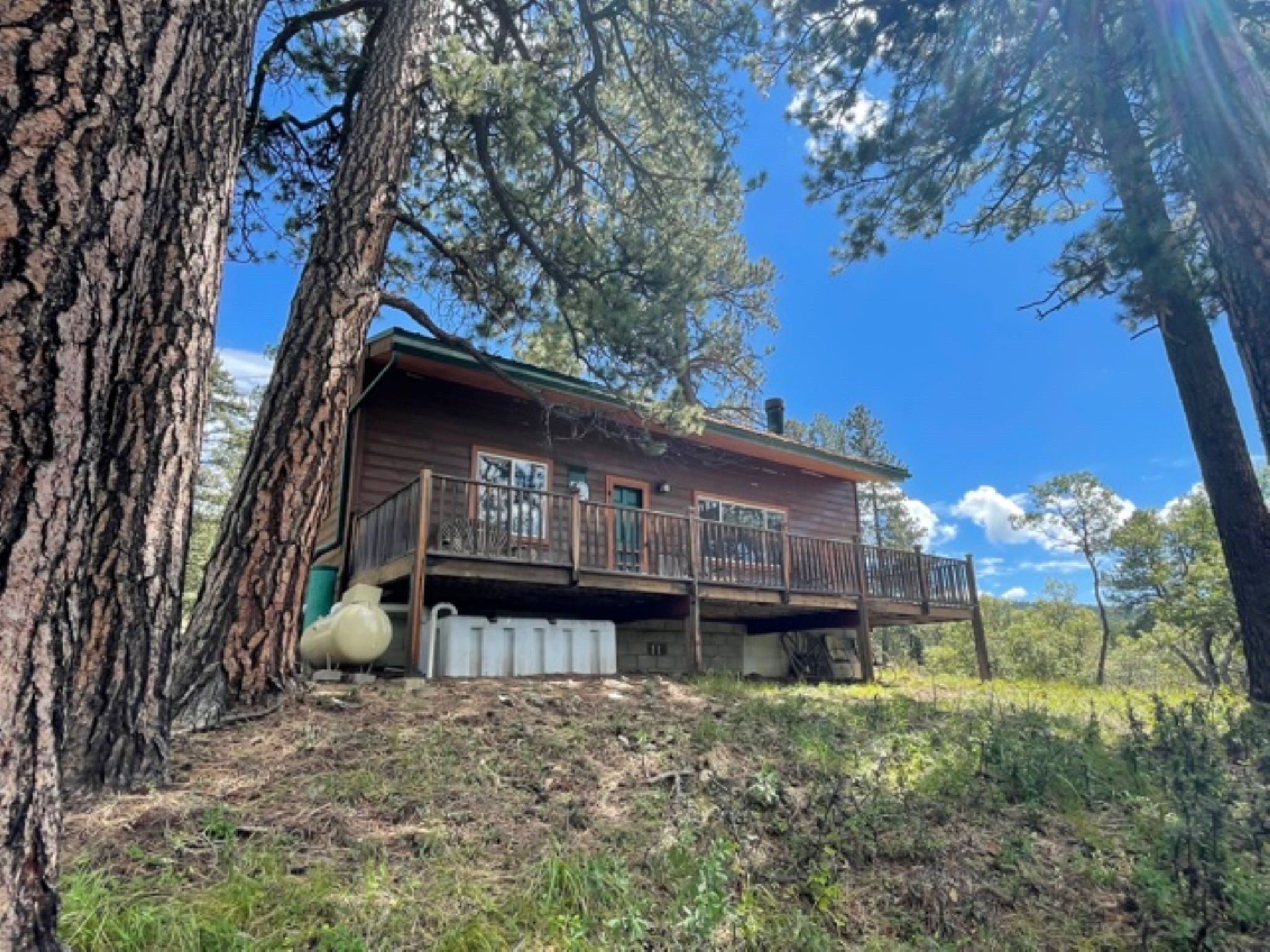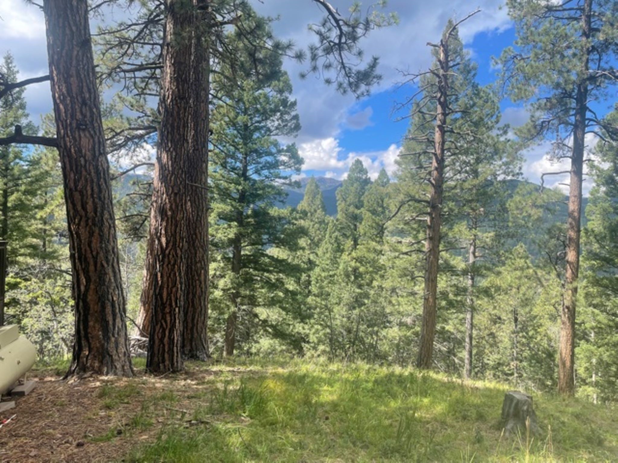RARE, Grass Mountain cabin for sale (only one listed in Santa Fe MLS). The setting in the Santa Fe National Forest with 360 degree views is stunning. The owners have significantly renovated the frame cabin originally built in 1962. These enhancements include new custom built kitchen cabinets and island, rebuilt wooden wall on the south side, poured/stained cement countertops, new appliances (refrigerator, stove/oven, microwave) kitchen sink and faucets, new water lines, on demand hot water heater, tiled bathroom with stone floor, vanity, new flooring throughout, rebuilt custom balcony, stairs/railings, and new panel heater. The cabin has an open concept design, 2 bedrooms down, sleeping loft up. There is a full length deck accessed from the living room to the east affording sunset views. The water for the cabin is recycled from the pro-panel roof and is filtered then stored in a 500 gallon tank under the porch. The sellers installed a E.I.D. permitted septic tank. Buyer's are required to have a face to face meeting with Forest Officials prior to closing the sale following successful negotiations. For folks seeking a classic mountain get-away, 115 Iron Trail could be your place.