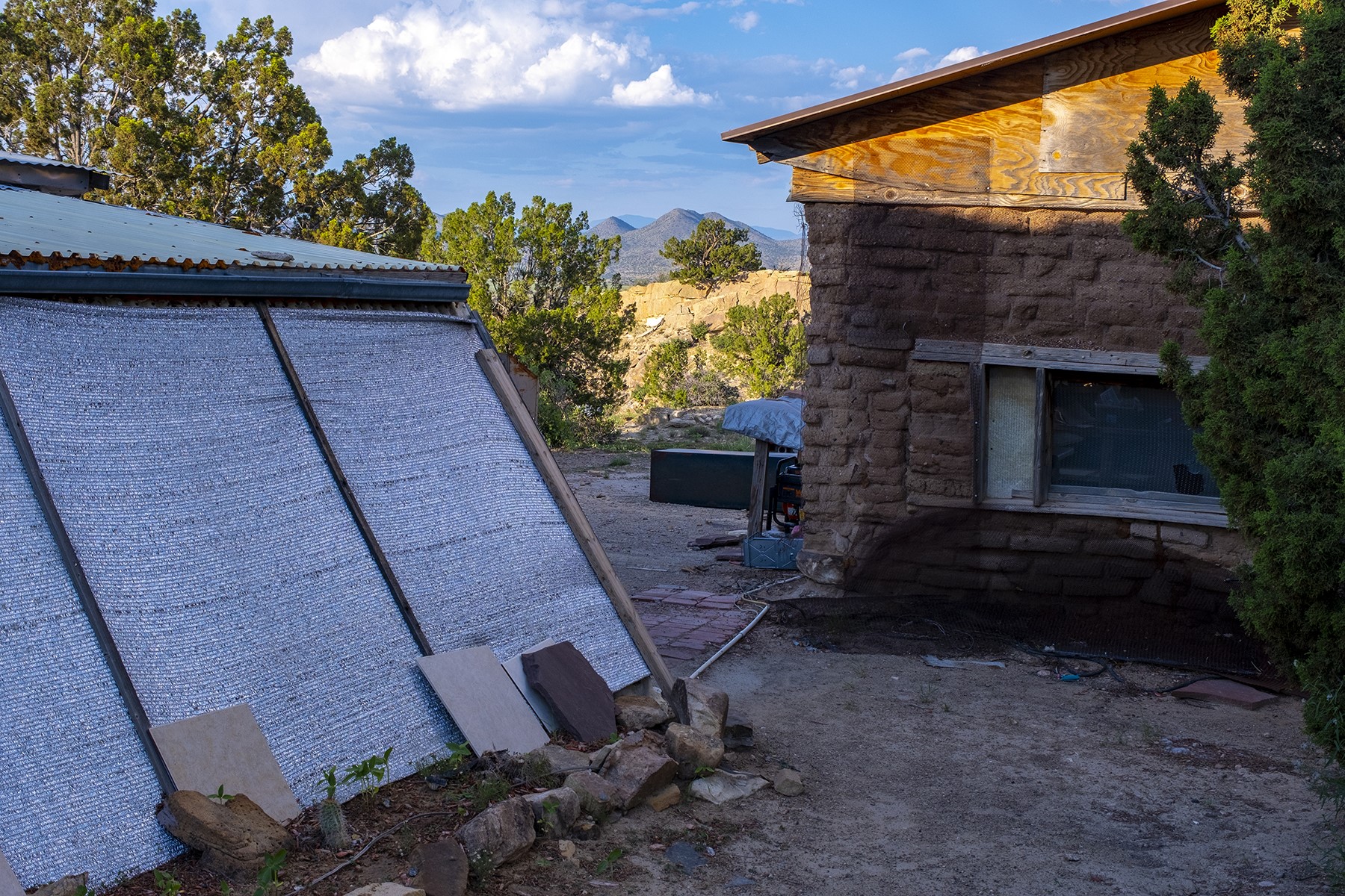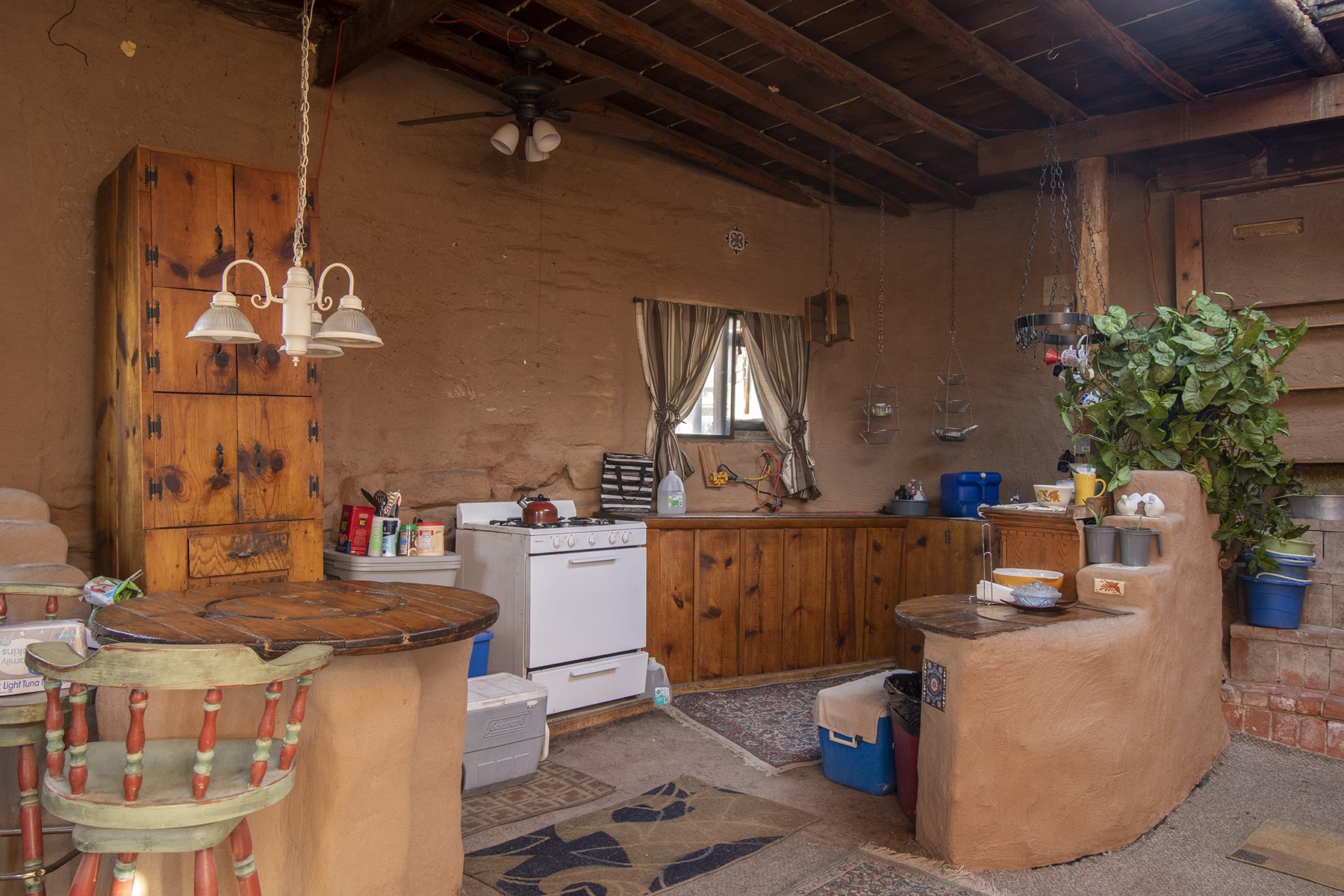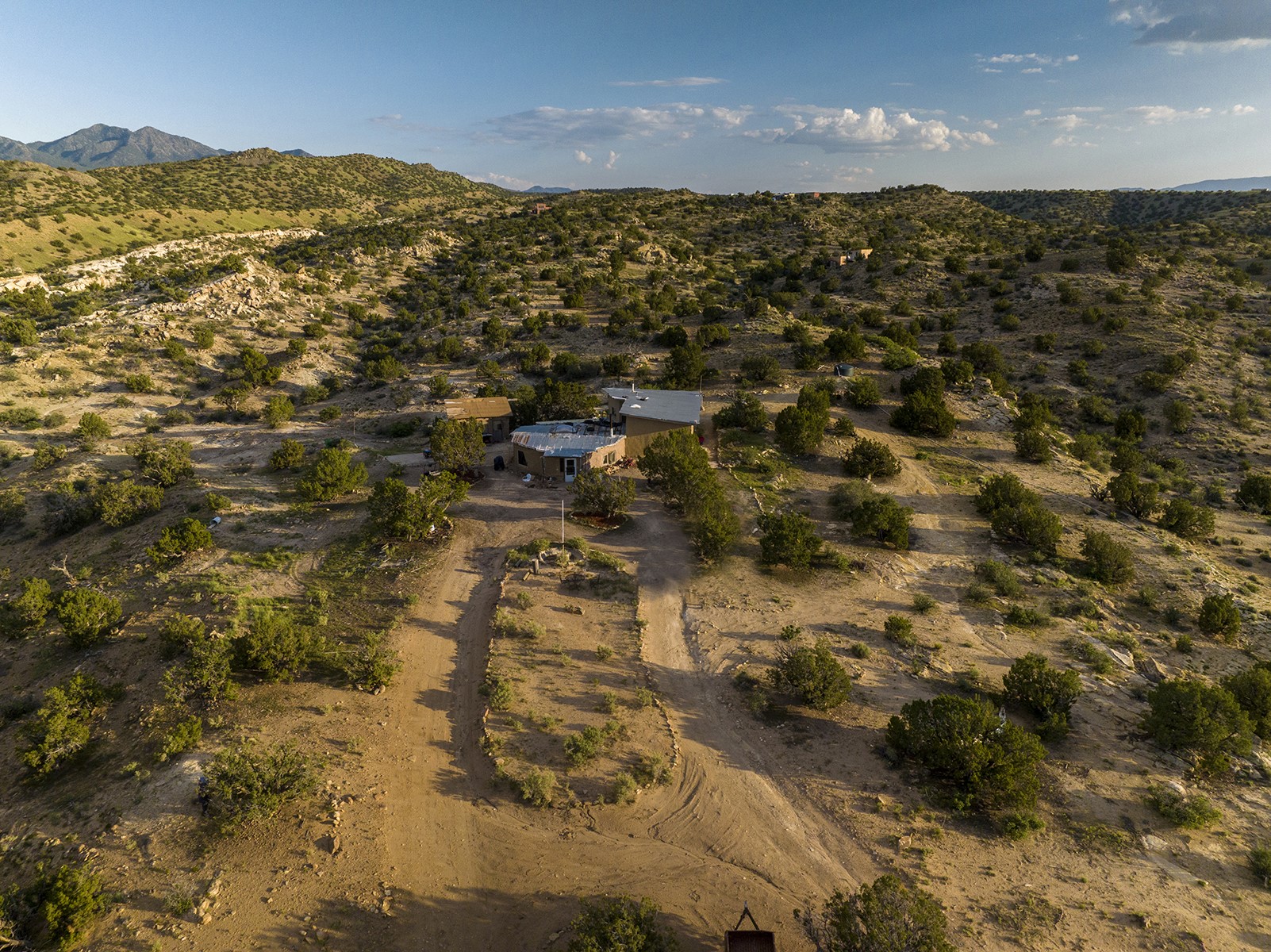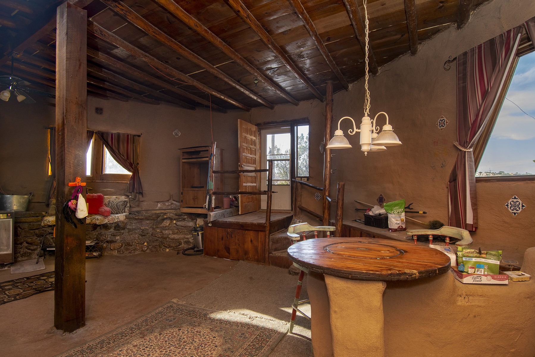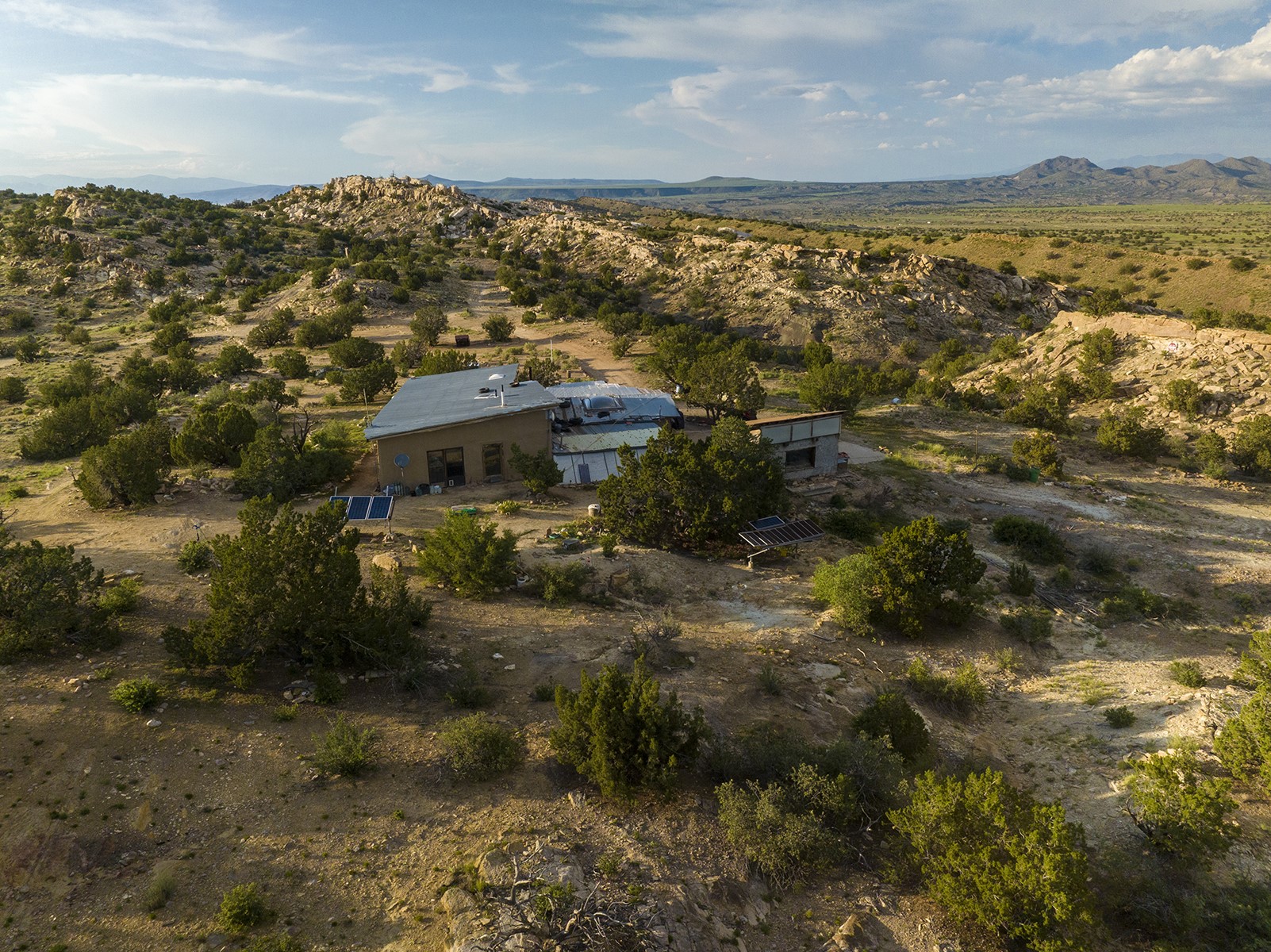 Listing updated to include entirety of property!Huge views, picturesque stone outcroppings and desert solitude. Listing is now for the entirely of 40 acres, two houses, two wells, with life-estate/use agreement to be granted to two residents who will have use of the smaller of the houses and 13 acres. Primary residence will have use of 27 high-desert acres with off-grid adobe and stone home in the round built into the earth for efficiency, with high ceilings, framed addition and attached greenhouse. 3 bedrooms and 1 bath, solar panels. Loved by the same owners/builders for four decades, the home needs work and is ready for new energy and care. Start your off-grid homestead. Less than three rough miles from pavement, where you might see grazing cattle or horses, and fifteen to twenty minutes to Interstate 25, depending on how you drive. Will not qualify for a normal mortgage, owner may finance with $65k down. Second home shown upon acceptance of offer.