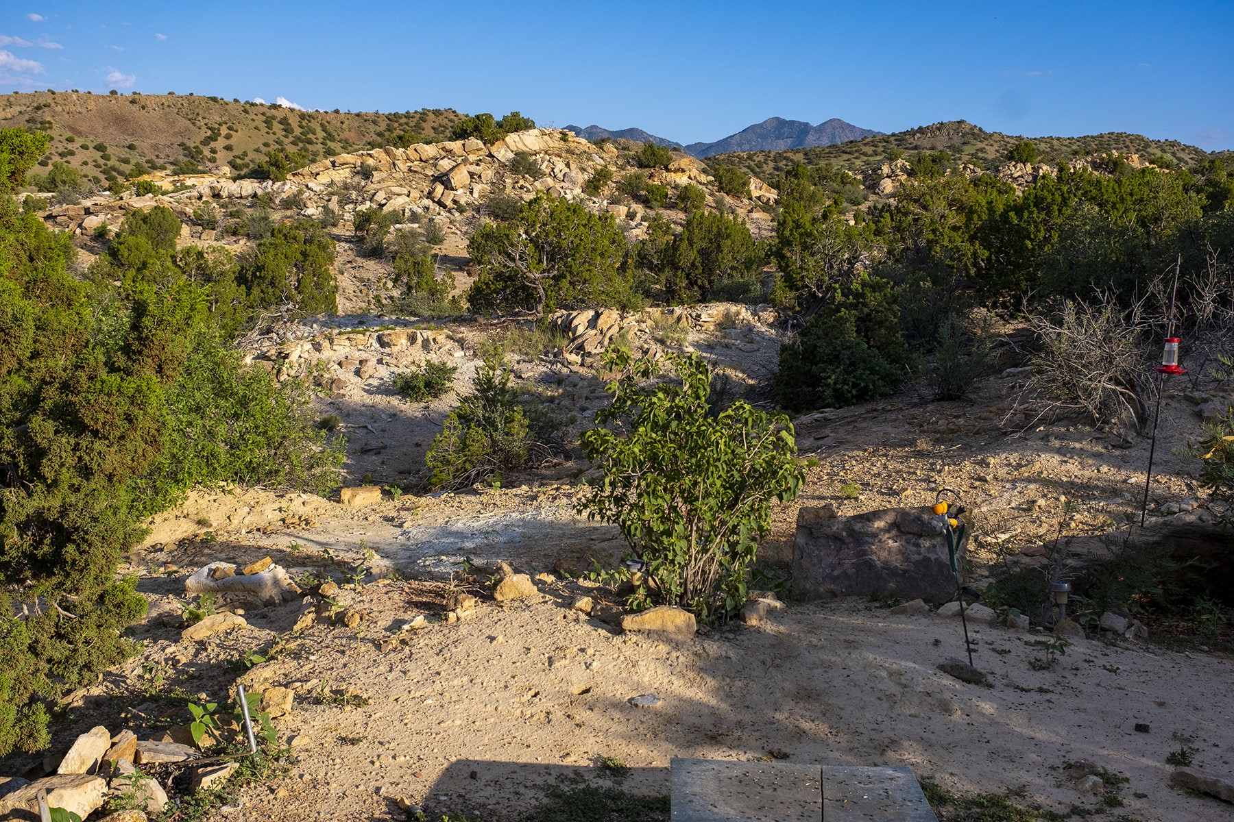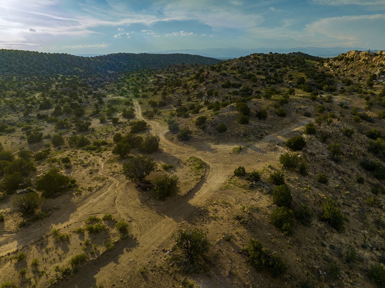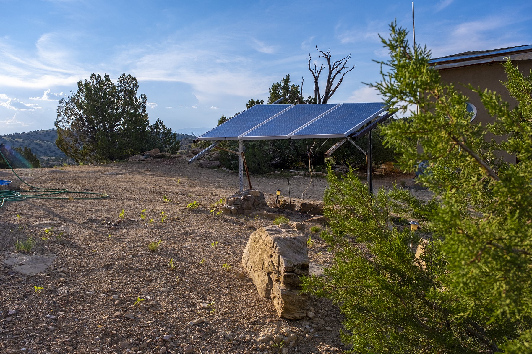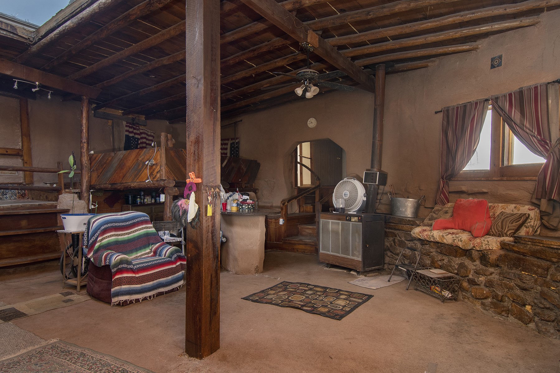 Listing updated to include entirety of property!Huge views, picturesque stone outcroppings and desert solitude. Listing is now for the entirely of 40 acres, two houses, two wells, with life-estate/use agreement to be granted to two residents who will have use of the smaller of the houses and 13 acres. Primary residence will have use of 27 high-desert acres with off-grid adobe and stone home in the round built into the earth for efficiency, with high ceilings, framed addition and attached greenhouse. 3 bedrooms and 1 bath, solar panels. Loved by the same owners/builders for four decades, the home needs work and is ready for new energy and care. Start your off-grid homestead. Less than three rough miles from pavement, where you might see grazing cattle or horses, and fifteen to twenty minutes to Interstate 25, depending on how you drive. Will not qualify for a normal mortgage, owner may finance with $65k down. Second home shown upon acceptance of offer.