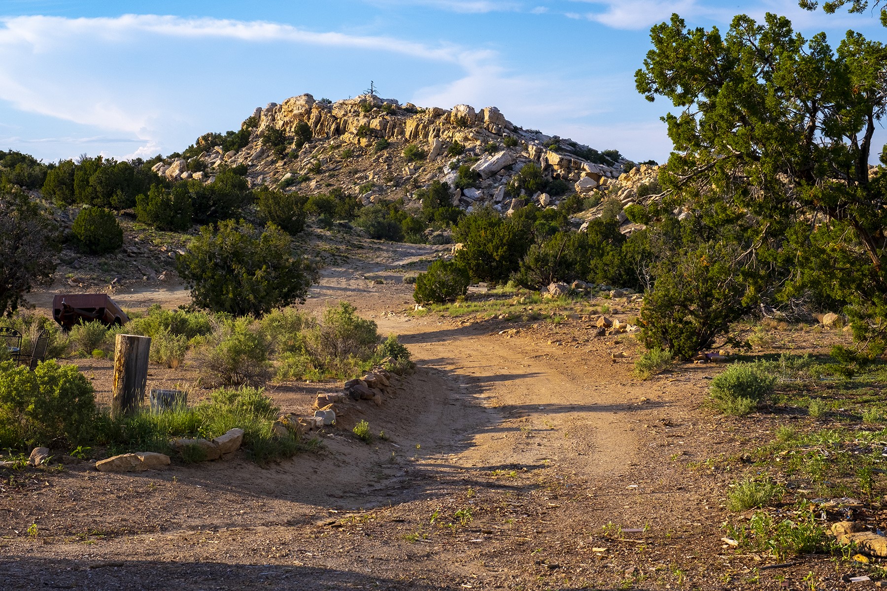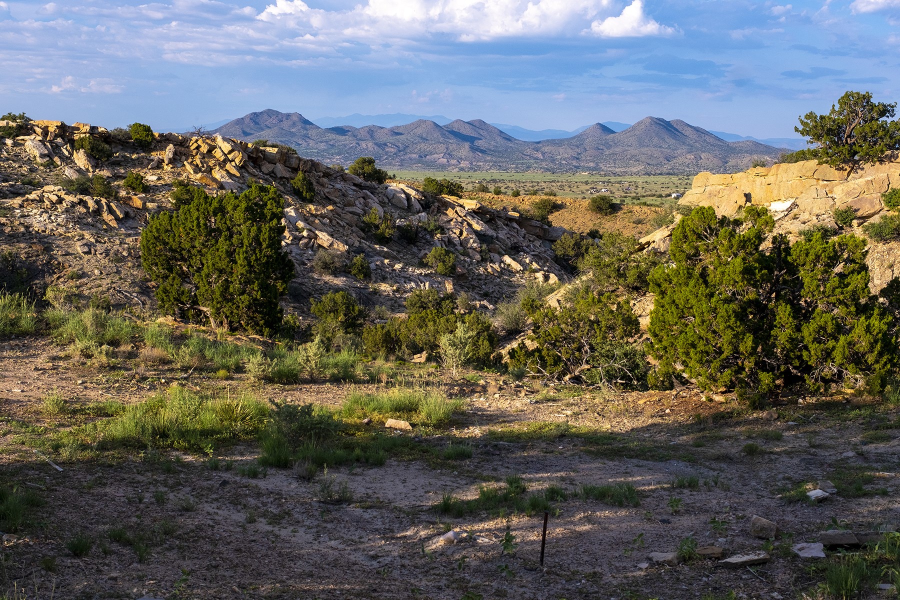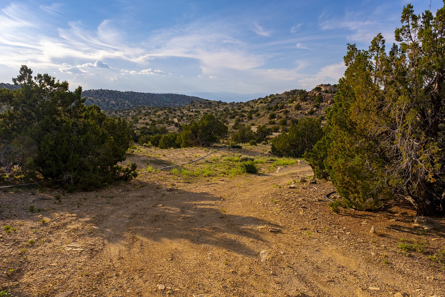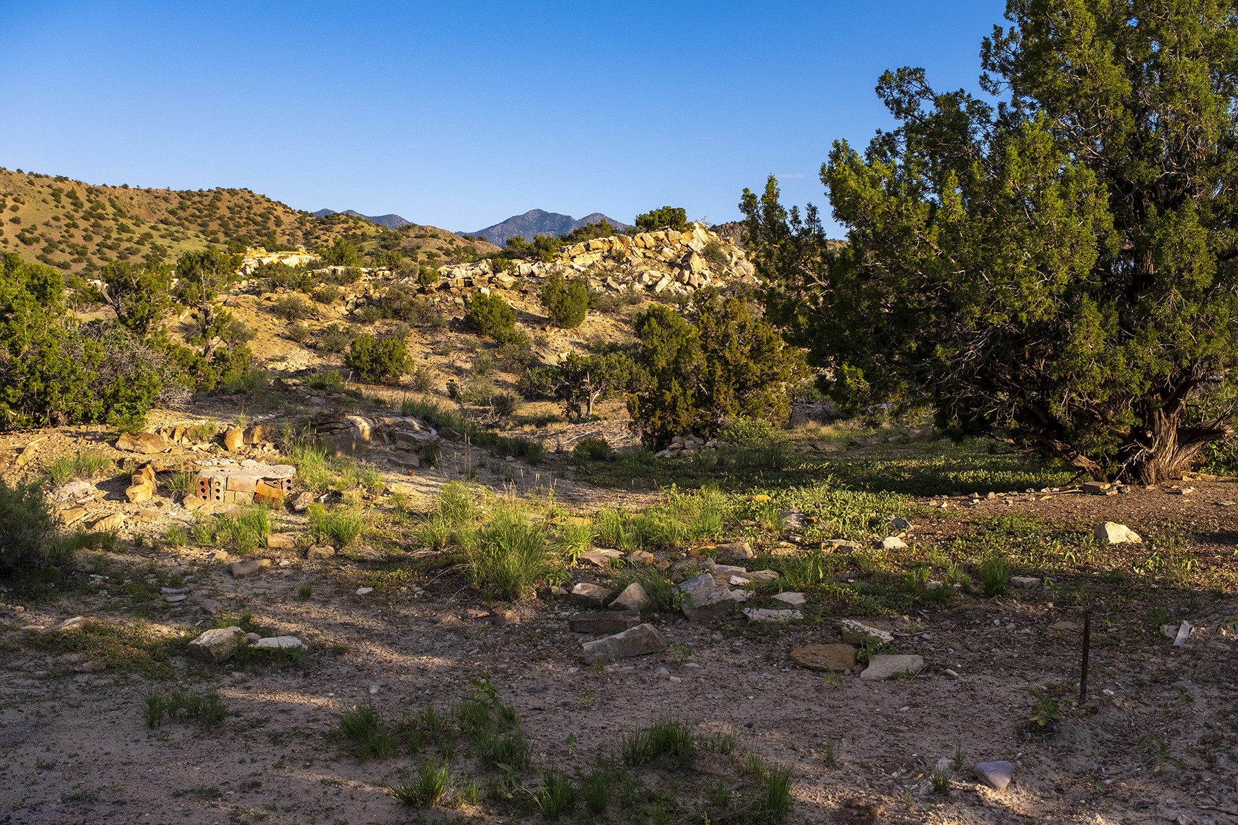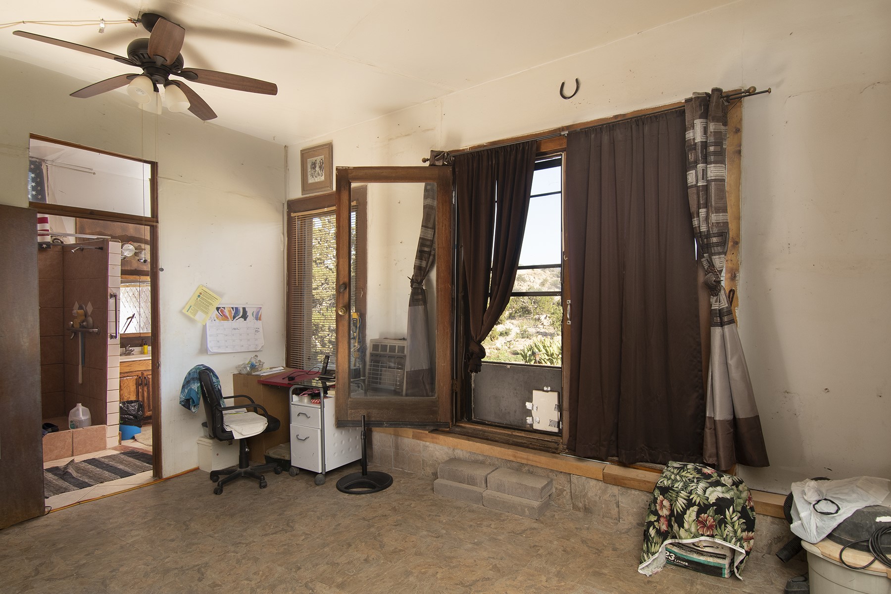 Listing updated to include entirety of property!Huge views, picturesque stone outcroppings and desert solitude. Listing is now for the entirely of 40 acres, two houses, two wells, with life-estate/use agreement to be granted to two residents who will have use of the smaller of the houses and 13 acres. Primary residence will have use of 27 high-desert acres with off-grid adobe and stone home in the round built into the earth for efficiency, with high ceilings, framed addition and attached greenhouse. 3 bedrooms and 1 bath, solar panels. Loved by the same owners/builders for four decades, the home needs work and is ready for new energy and care. Start your off-grid homestead. Less than three rough miles from pavement, where you might see grazing cattle or horses, and fifteen to twenty minutes to Interstate 25, depending on how you drive. Will not qualify for a normal mortgage, owner may finance with $65k down. Second home shown upon acceptance of offer.
