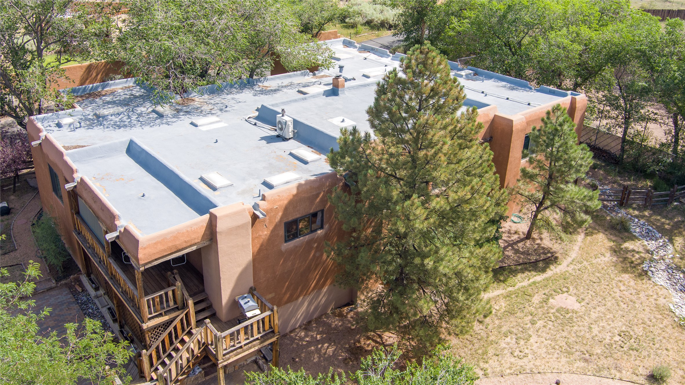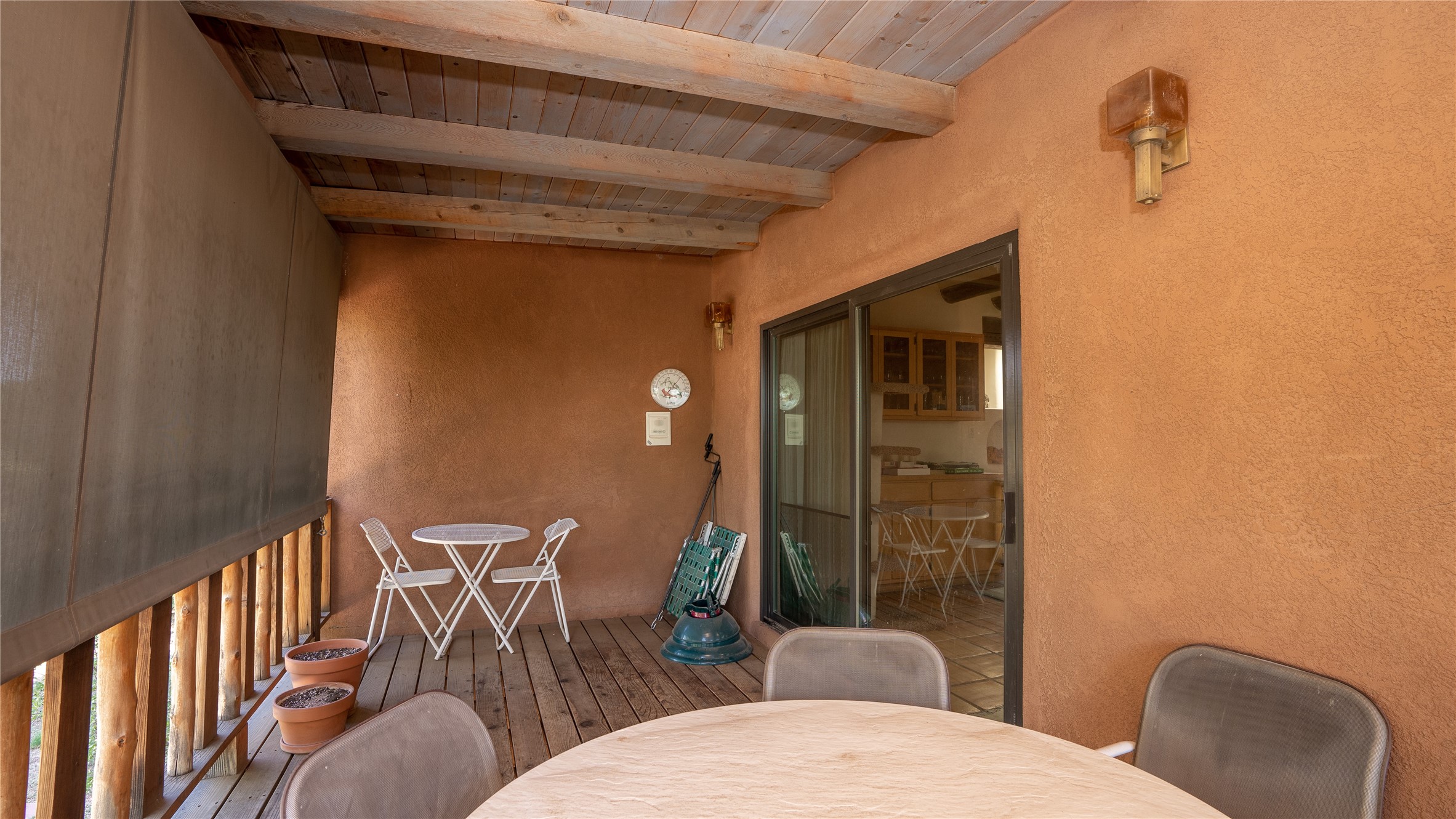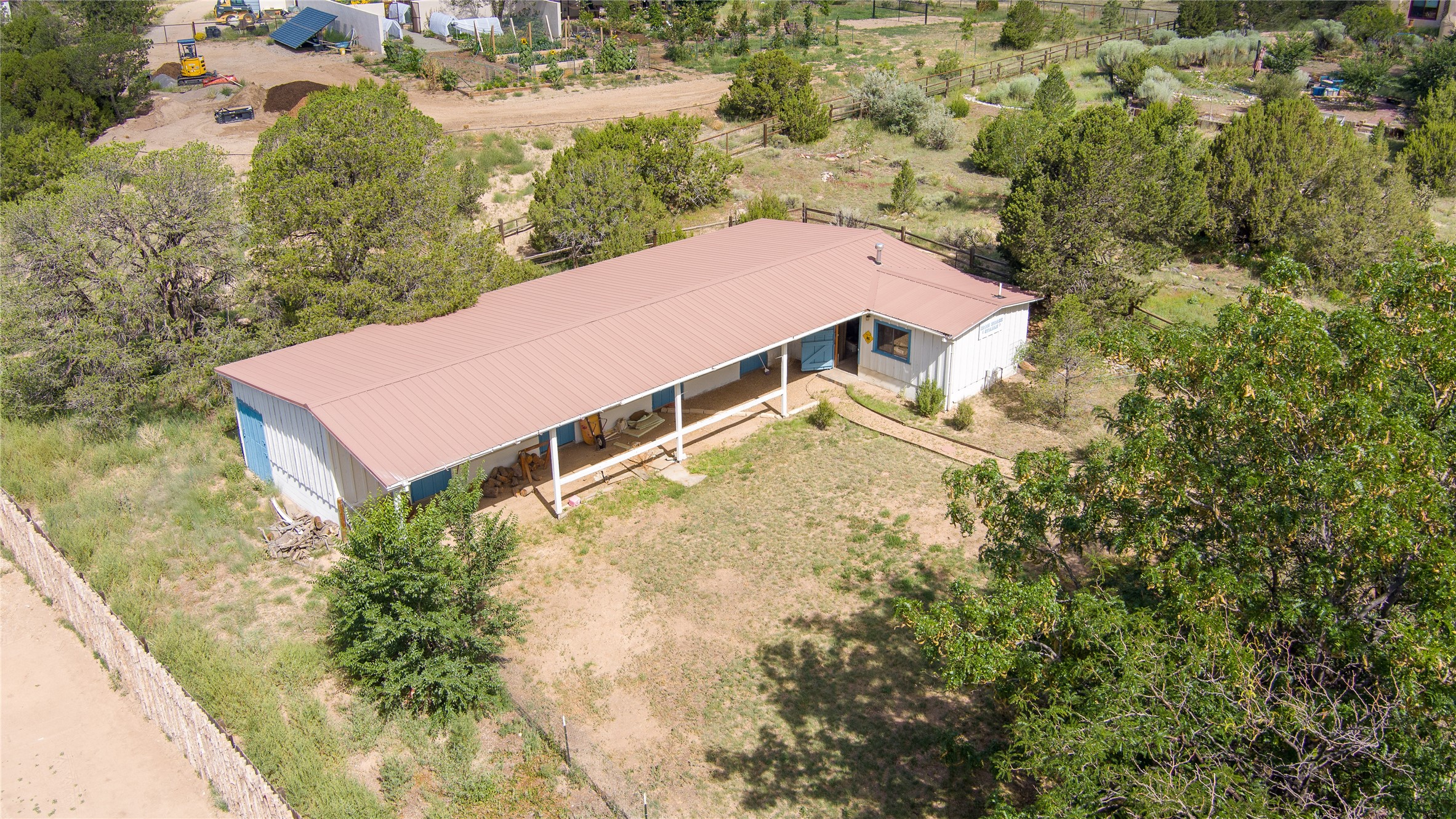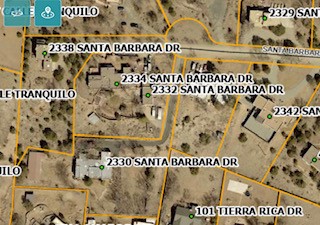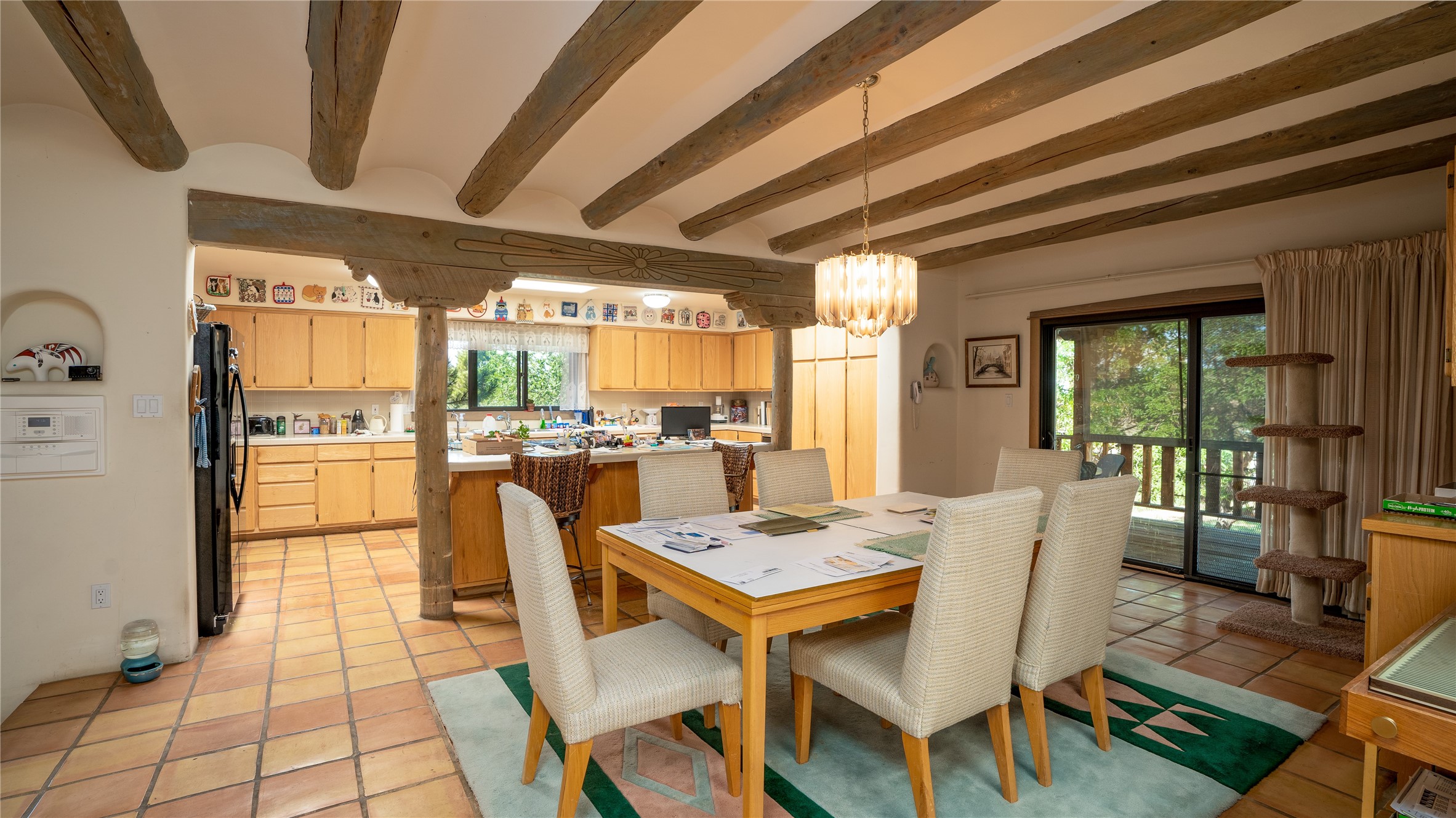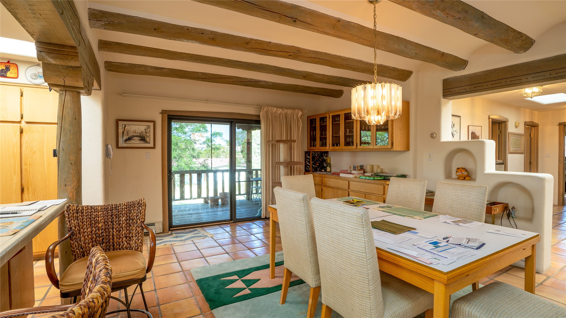 Sol Y Lomas 4 Bed/2Bath Home on 1.244 acre lot with mature trees. Large Sunken Living Room for lots of entertaining with beautiful wood burning Kiva Fireplace in the center including Vigas and Beams with T&G. Home has great separation of the primary suite from the guest rooms. Primary Suite is roomy with the ductless mini-split for your comfort along with an oversized tub, separate shower, dual sinks and large walk-in closet. At the other end of the home are the 3 bedrooms and full bath with double sinks. Kitchen includes 2 ovens with newer refrigerator, dishwasher, microwave, trash compactor and electric stove top. Dining Room has built-in buffet with Niches. The sliding glass door heads out to the patio deck and just down a few steps is the gas line for your grill. Outside is the brick patio and the outdoor water feature. The Stables now houses the trains with tracks. The approx. 1,500 sq ft stables also includes gas, electric, and a half bath with plumbing already installed for a shower. On the other side of the home was a tennis court. The 2 car garage is oversized with a tub for your pets and leads into the large laundry room. Minutes to Downtown Santa Fe, hospital, shopping, and I-25.