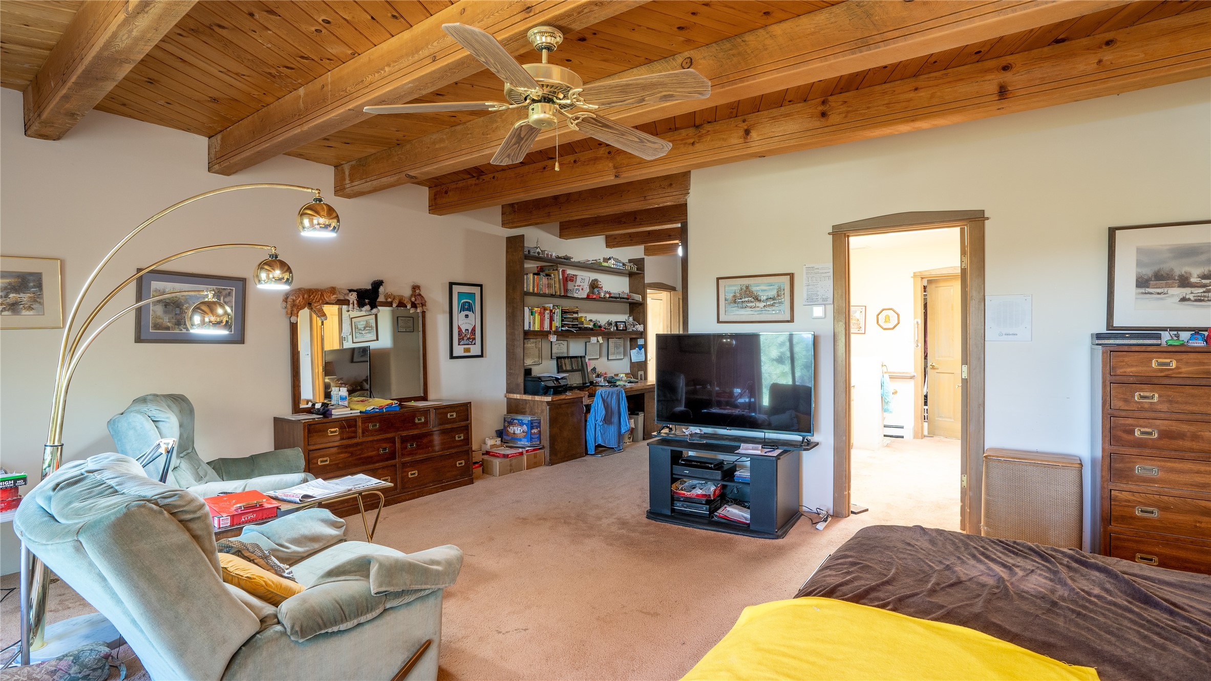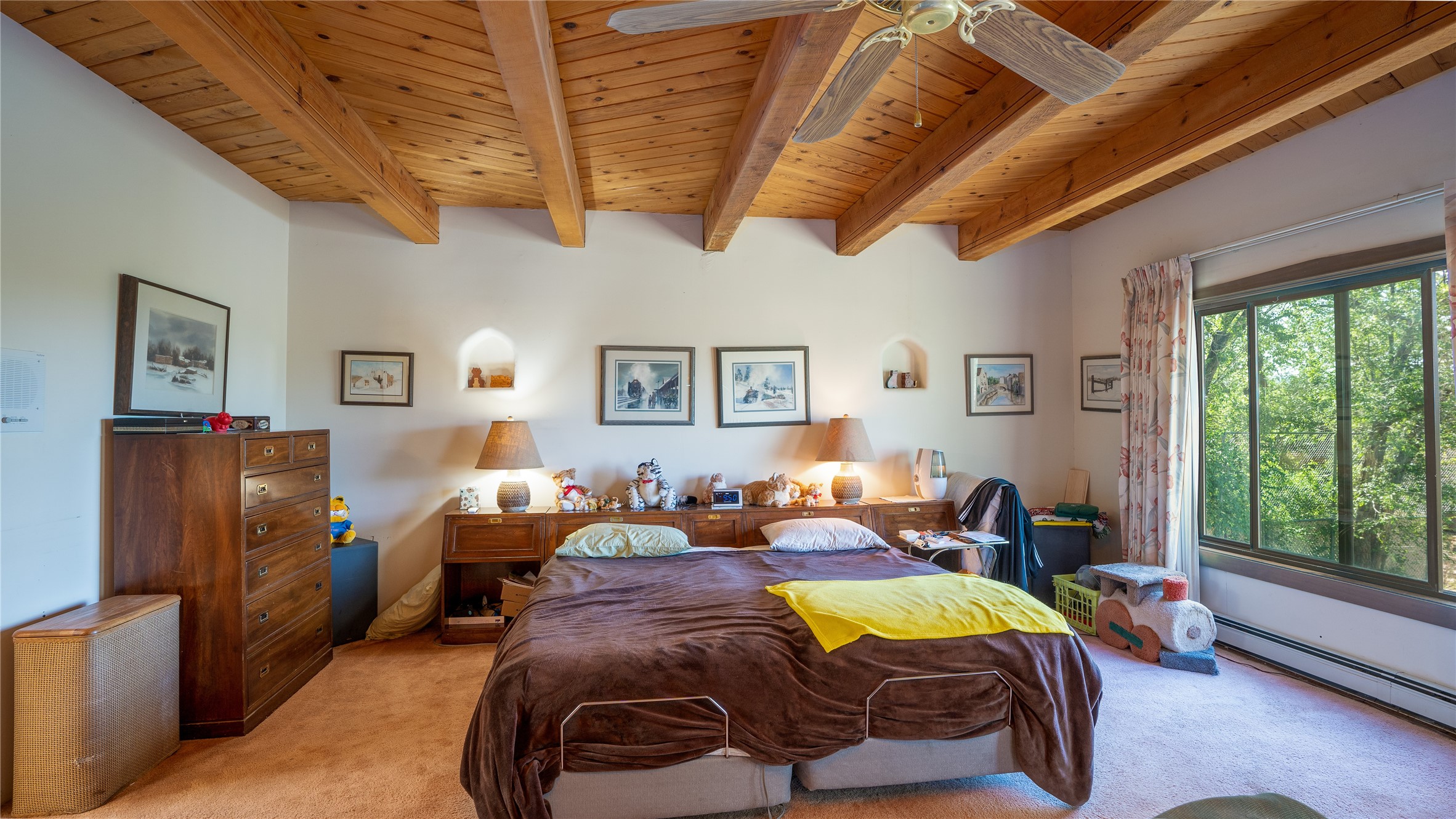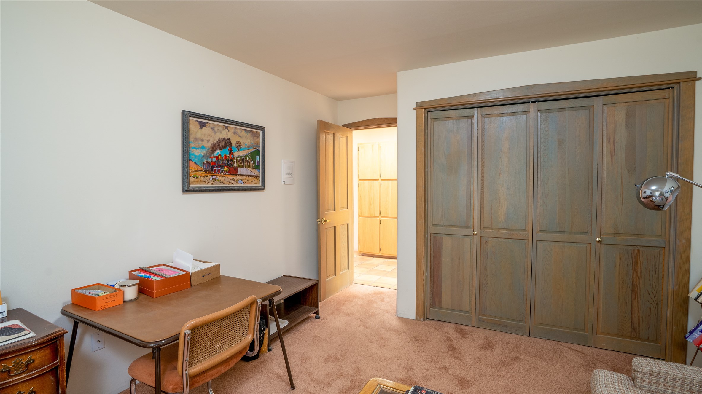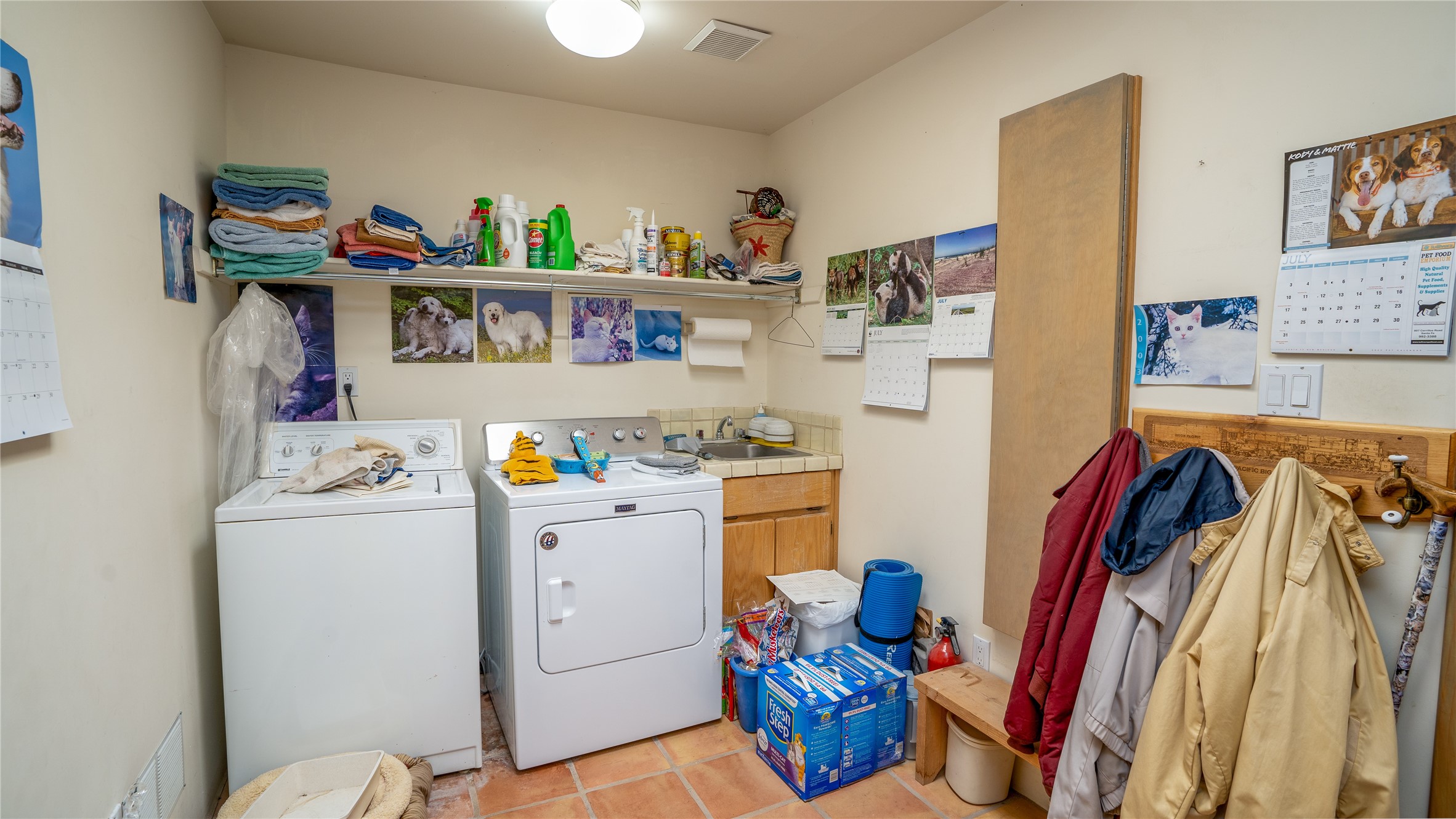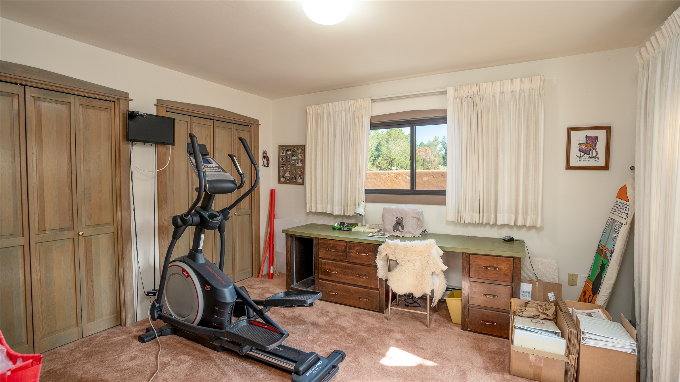 Sol Y Lomas 4 Bed/2Bath Home on 1.244 acre lot with mature trees. Large Sunken Living Room for lots of entertaining with beautiful wood burning Kiva Fireplace in the center including Vigas and Beams with T&G. Home has great separation of the primary suite from the guest rooms. Primary Suite is roomy with the ductless mini-split for your comfort along with an oversized tub, separate shower, dual sinks and large walk-in closet. At the other end of the home are the 3 bedrooms and full bath with double sinks. Kitchen includes 2 ovens with newer refrigerator, dishwasher, microwave, trash compactor and electric stove top. Dining Room has built-in buffet with Niches. The sliding glass door heads out to the patio deck and just down a few steps is the gas line for your grill. Outside is the brick patio and the outdoor water feature. The Stables now houses the trains with tracks. The approx. 1,500 sq ft stables also includes gas, electric, and a half bath with plumbing already installed for a shower. On the other side of the home was a tennis court. The 2 car garage is oversized with a tub for your pets and leads into the large laundry room. Minutes to Downtown Santa Fe, hospital, shopping, and I-25.