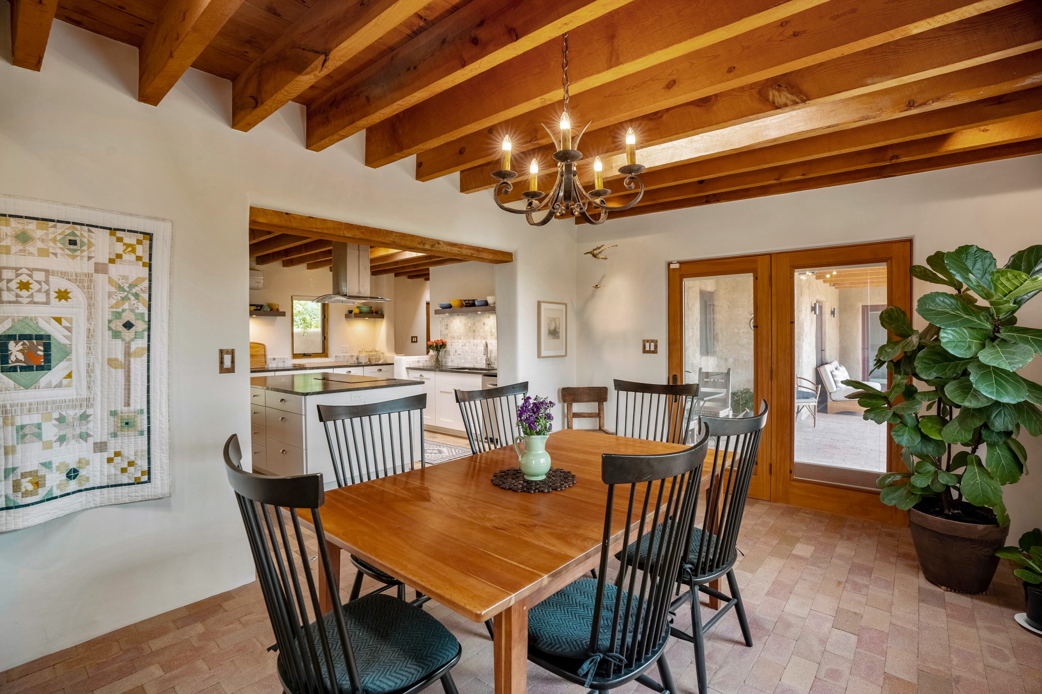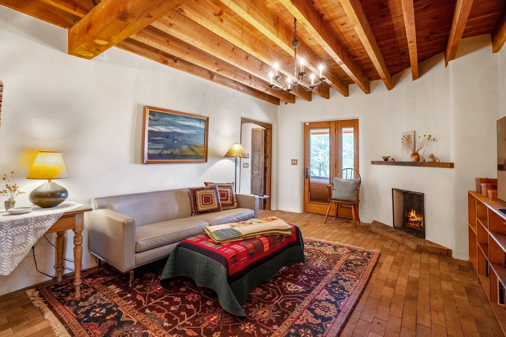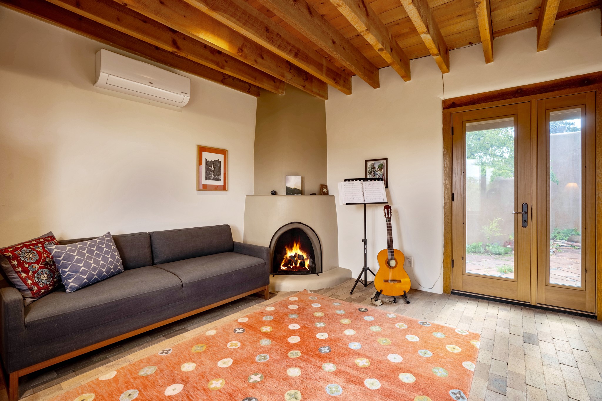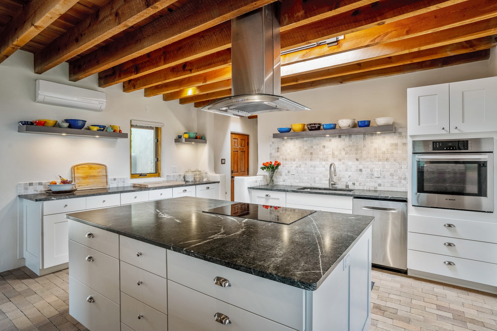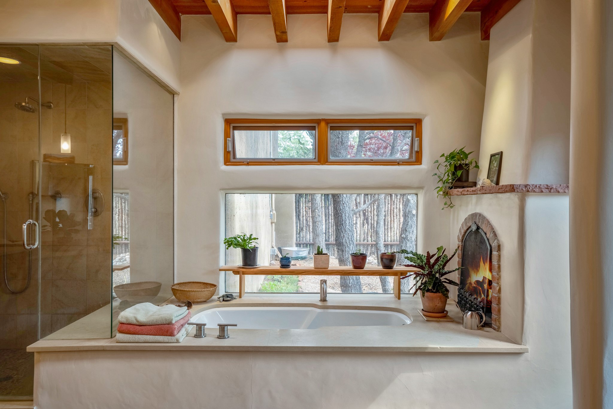 A beautifully renovated House /Guest House with panoramic views in Vista Redonda! 20 minutes to downtown Santa Fe and yet worlds away, this peaceful property has a soulful, organic feel that is 'home'. Sited on 5 view-filled acres, the 2900 sq. ft. MAIN HOUSE has a large owner's suite with a private den, private office and a spa-like bathroom. The guest bedroom is in its own wing of the house, offering great privacy with direct access to the lovely front courtyard. The kitchen was completely remodeled in 2020 with custom white cabinetry, soapstone countertops and a large island. Open to the kitchen, but maintaining a sense of intimacy, the main living area has wide plank pine flooring, a kiva fireplace and more views! The grounds are whimsical with beautiful landscaping, stone paths and a glorious hot tub for sunset viewing. GUEST HOUSE: The 1050 sq. ft. 1 bed/1 bath guest house has a newly renovated kitchen and is an absolute treasure, mirroring the same organic aesthetic of the main house. With a new roof in 2020 on the original part of the main house, community water and endless amounts of love and care, this beloved property is now available for a lucky homeowner!
