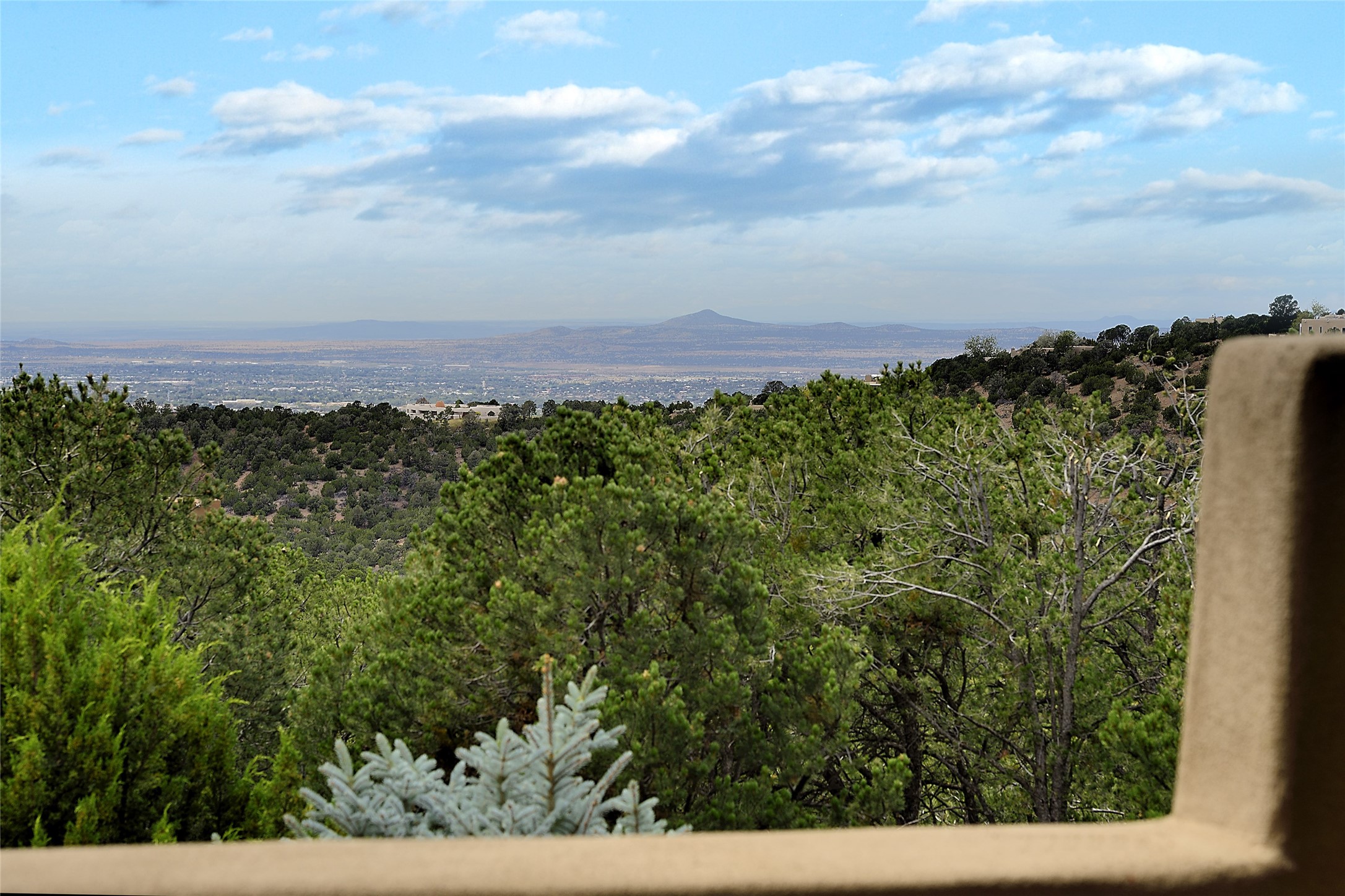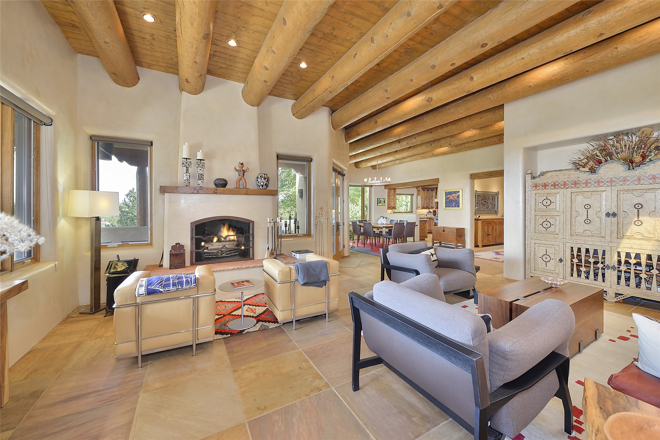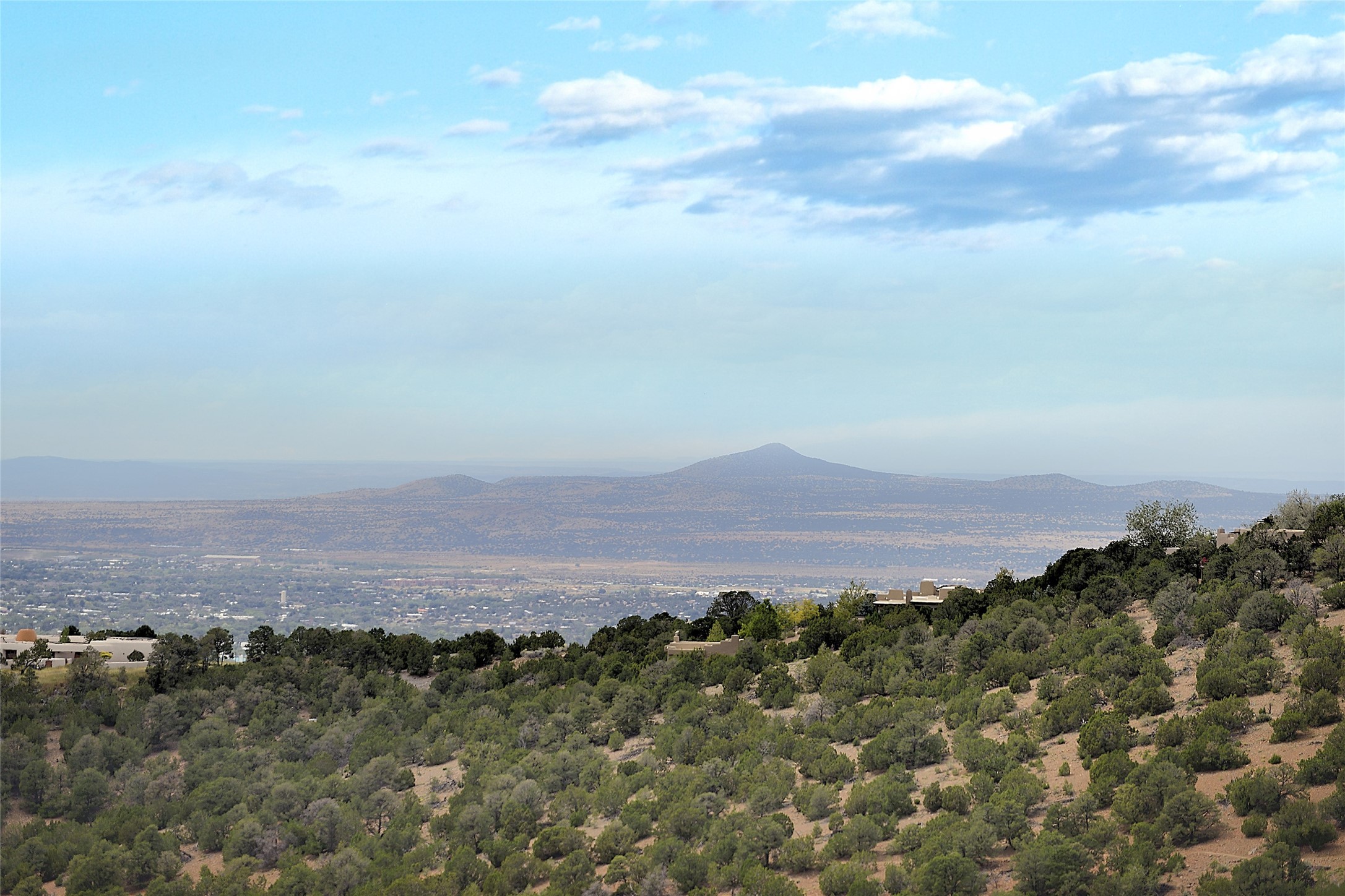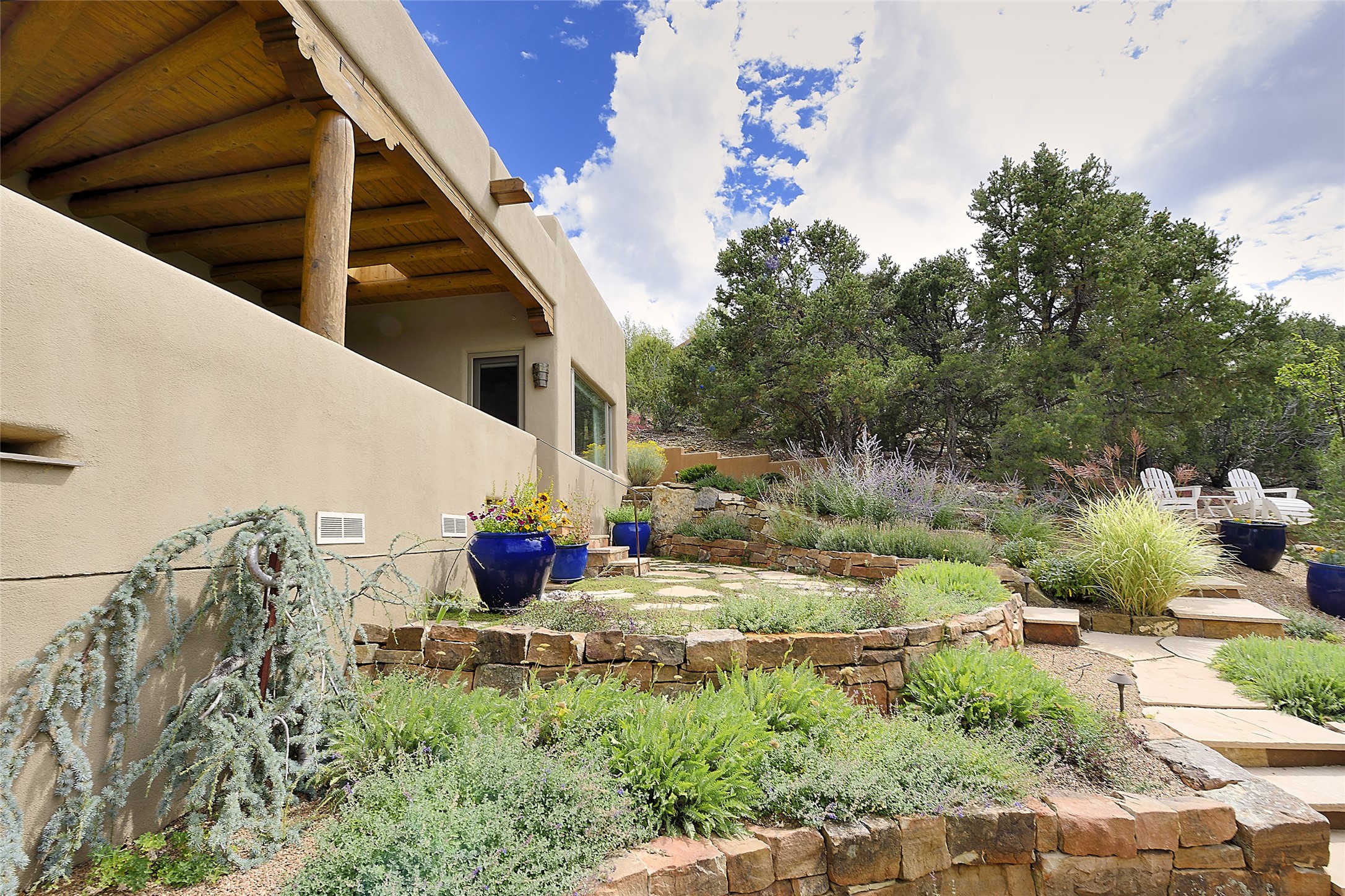This is an exceptional offering in the gated and sought after High Summit. This compound estateconsists of a 3 Bedroom , 2.5 Bath main home built in 2009 and a 2 Bedroom, 2 Bath plus office/studioguest home completed in 2013. The homes are on a combined .7 acre lot and are nicely separated forprivacy with their own direct entry 2 car garages. The covered portals flow from the living spaces andoffer wonderful sunset views to the South and West. Upon entering you immediately notice the highend finishes and features such as nichos, vigas, stone floors and custom doors & cabinetry. The kitchensoffer all the conveniences with quality appliances and islands and bars for gathering and entertaining.Central forced air heating and air conditioning in the guest house and radiant in-floor heating andevaporative cooling in the main house keep things comfortable year-round. The grounds arewonderfully landscaped and planted featuring tall aspens, pinons and water features. This gatedcommunity with a sensible HOA is a stone's throw away from Ten Thousand waves and 12 miles toSanta Fe Ski Basin, yet only 5 miles away from the heart of downtown, Canyon road, restaurants and artgalleries.