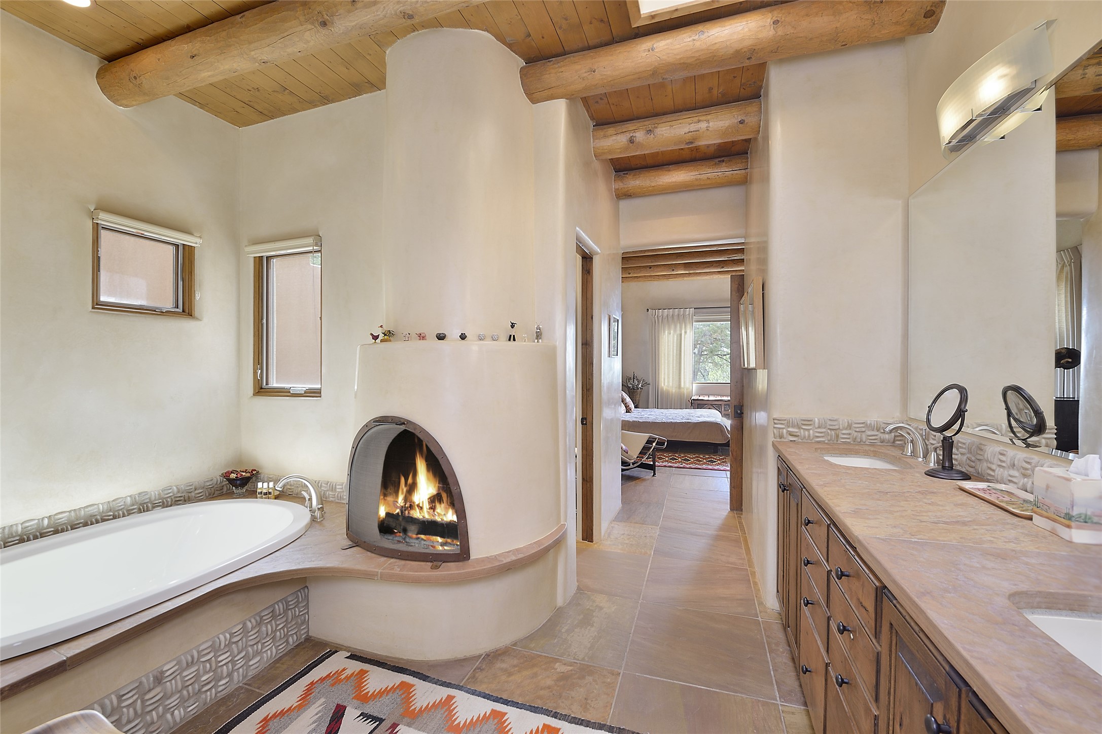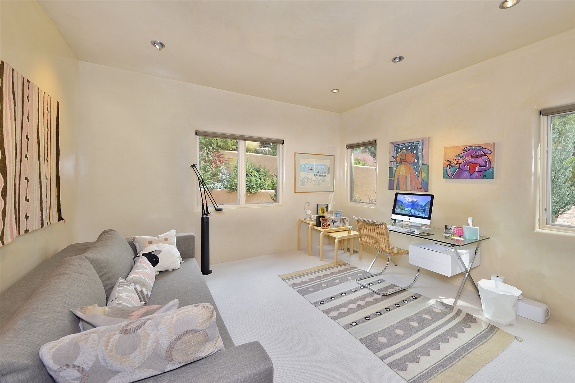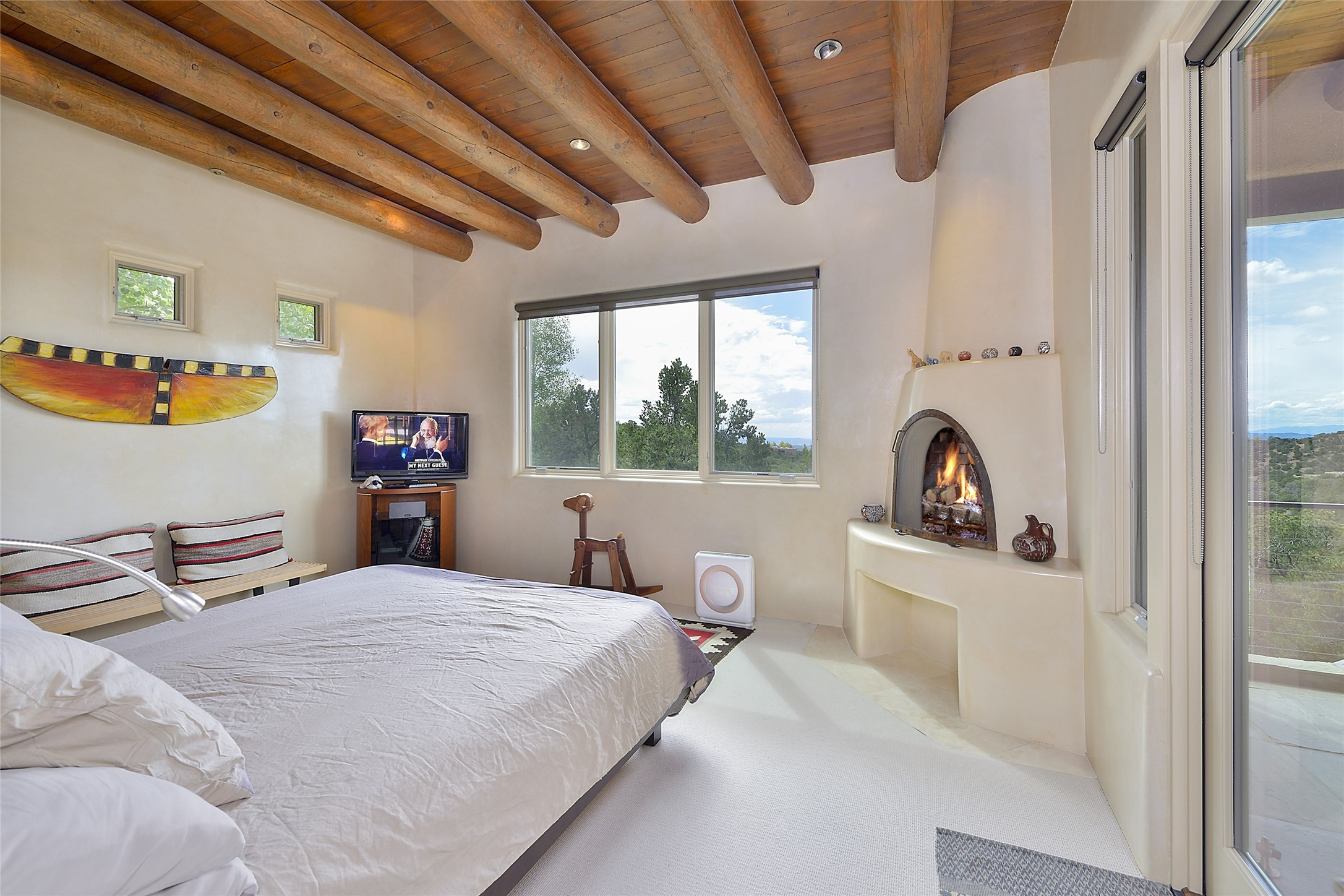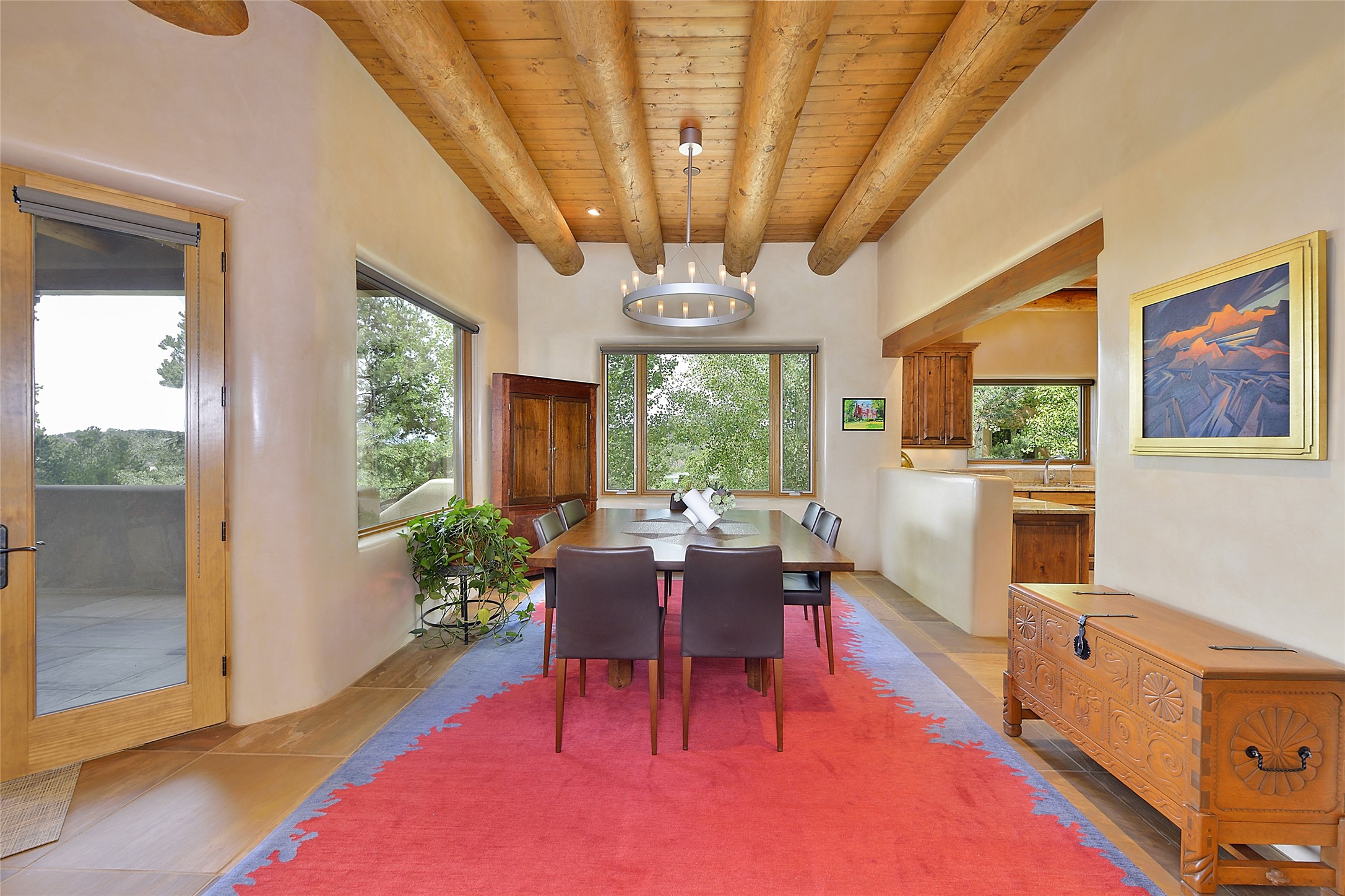 This is an exceptional offering in the gated and sought after High Summit. This compound estateconsists of a 3 Bedroom , 2.5 Bath main home built in 2009 and a 2 Bedroom, 2 Bath plus office/studioguest home completed in 2013. The homes are on a combined .7 acre lot and are nicely separated forprivacy with their own direct entry 2 car garages. The covered portals flow from the living spaces andoffer wonderful sunset views to the South and West. Upon entering you immediately notice the highend finishes and features such as nichos, vigas, stone floors and custom doors & cabinetry. The kitchensoffer all the conveniences with quality appliances and islands and bars for gathering and entertaining.Central forced air heating and air conditioning in the guest house and radiant in-floor heating andevaporative cooling in the main house keep things comfortable year-round. The grounds arewonderfully landscaped and planted featuring tall aspens, pinons and water features. This gatedcommunity with a sensible HOA is a stone's throw away from Ten Thousand waves and 12 miles toSanta Fe Ski Basin, yet only 5 miles away from the heart of downtown, Canyon road, restaurants and artgalleries.