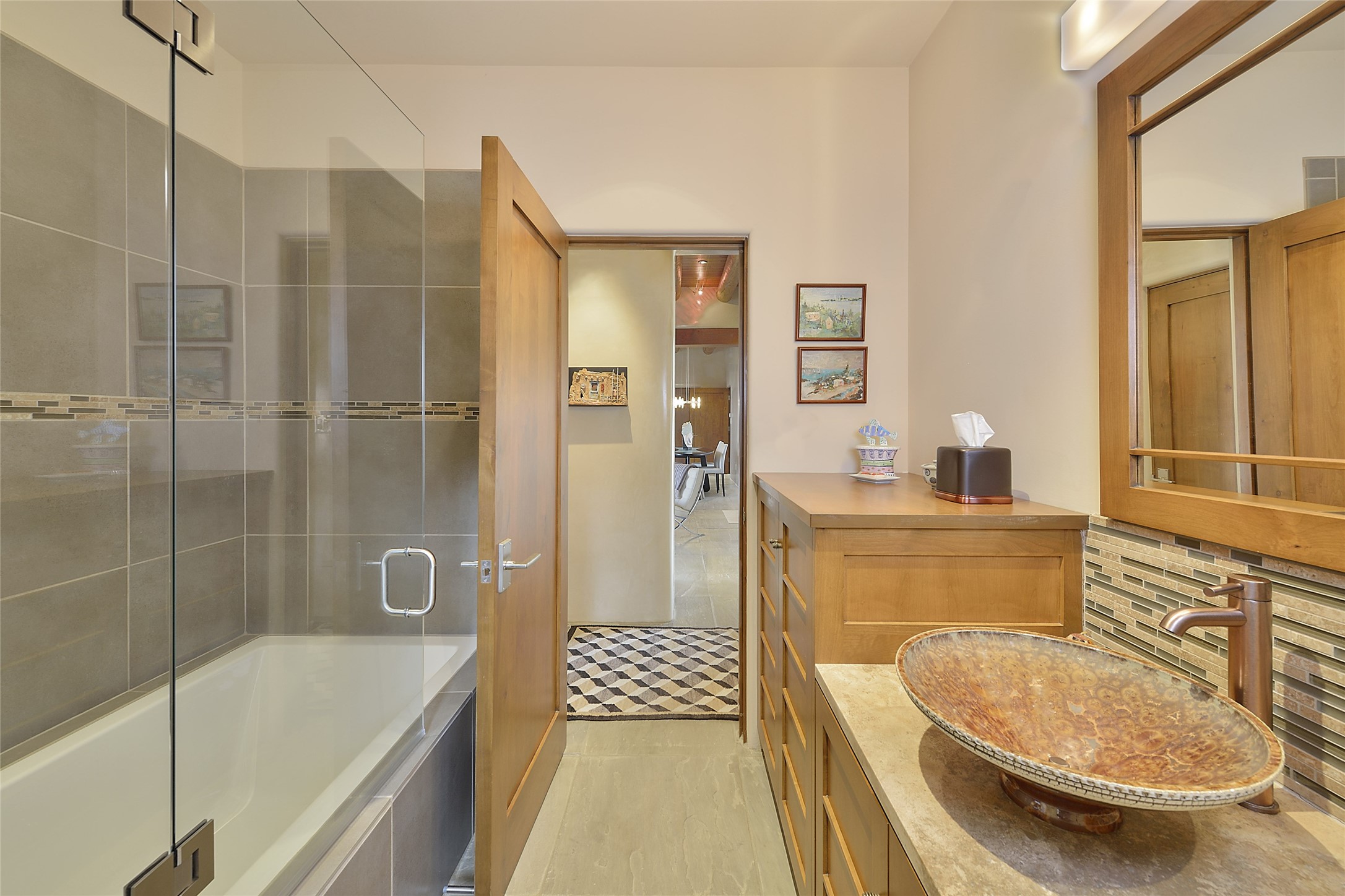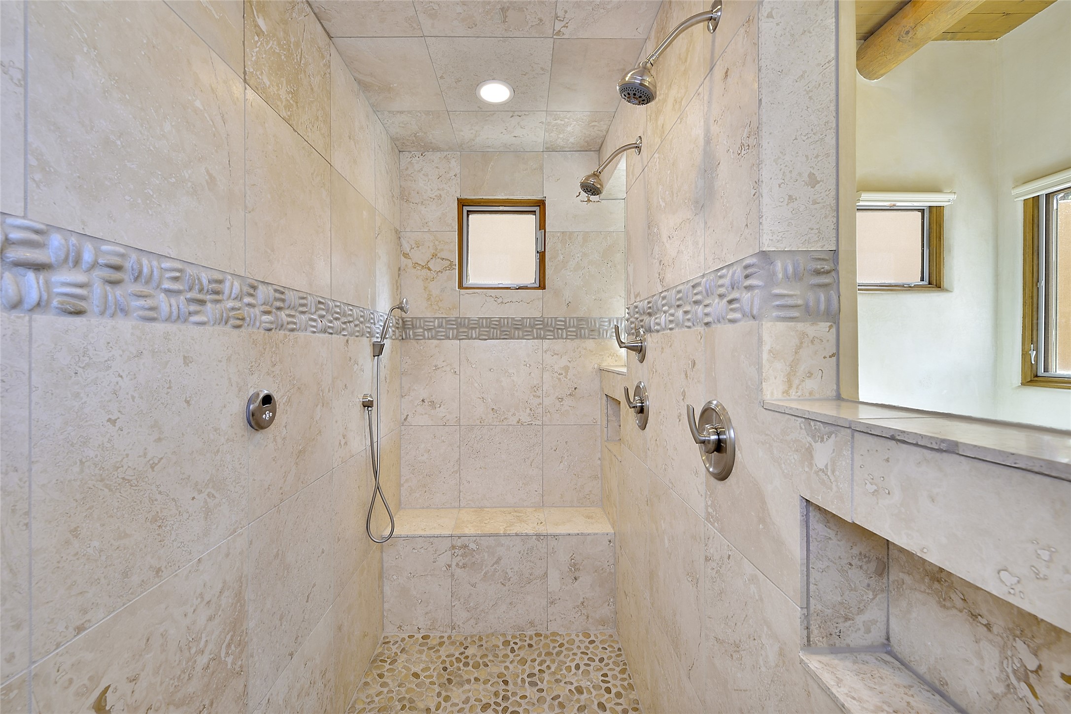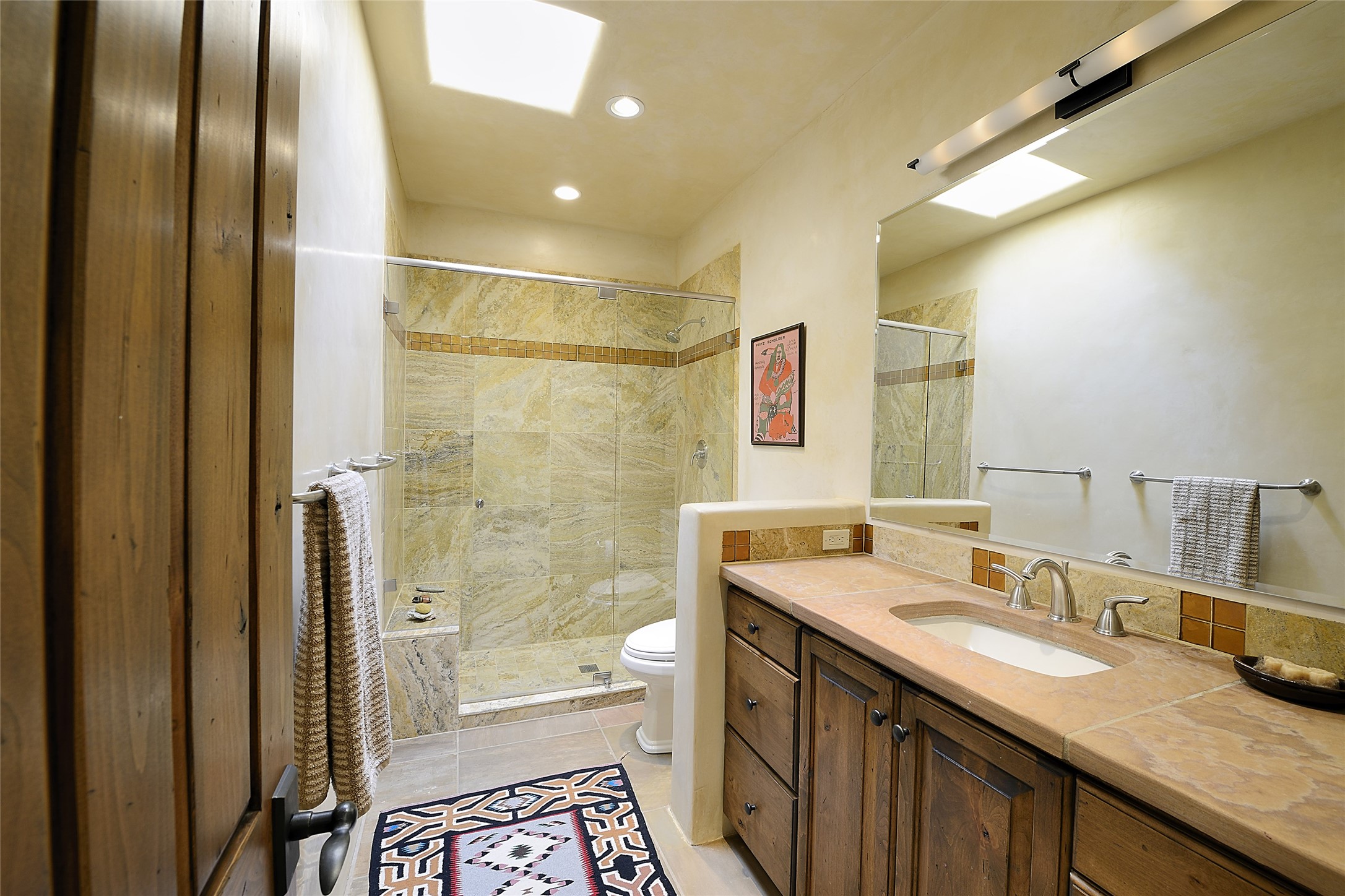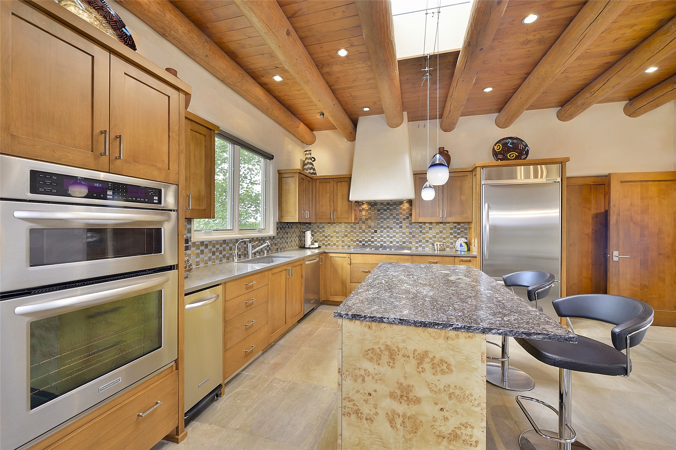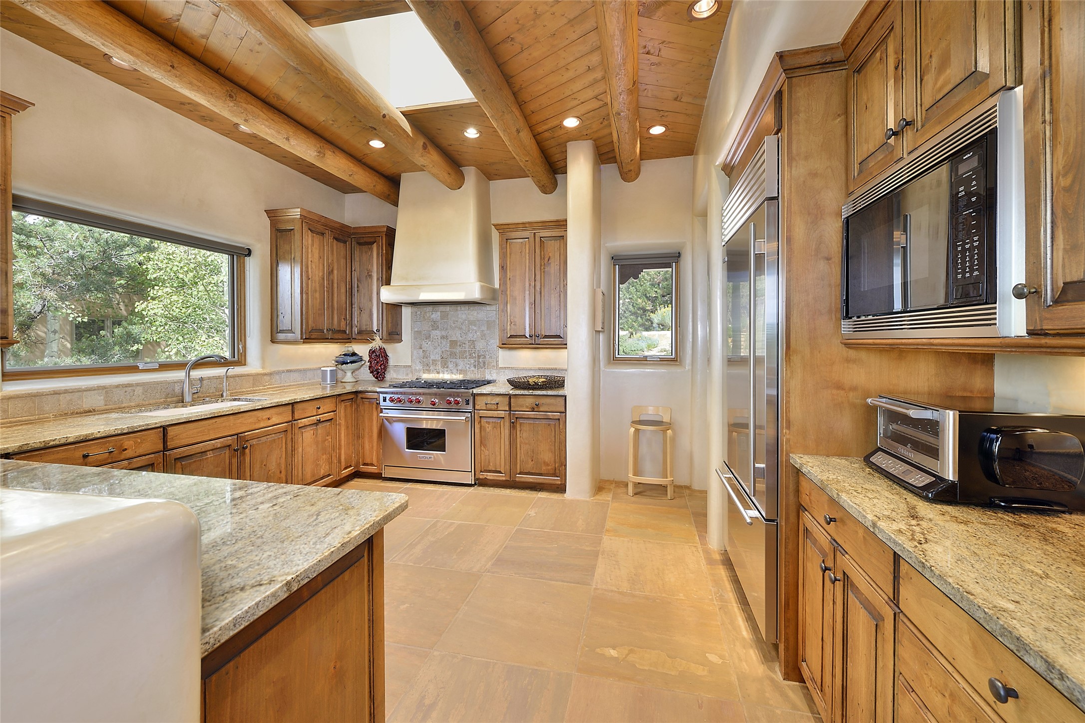 This is an exceptional offering in the gated and sought after High Summit. This compound estateconsists of a 3 Bedroom , 2.5 Bath main home built in 2009 and a 2 Bedroom, 2 Bath plus office/studioguest home completed in 2013. The homes are on a combined .7 acre lot and are nicely separated forprivacy with their own direct entry 2 car garages. The covered portals flow from the living spaces andoffer wonderful sunset views to the South and West. Upon entering you immediately notice the highend finishes and features such as nichos, vigas, stone floors and custom doors & cabinetry. The kitchensoffer all the conveniences with quality appliances and islands and bars for gathering and entertaining.Central forced air heating and air conditioning in the guest house and radiant in-floor heating andevaporative cooling in the main house keep things comfortable year-round. The grounds arewonderfully landscaped and planted featuring tall aspens, pinons and water features. This gatedcommunity with a sensible HOA is a stone's throw away from Ten Thousand waves and 12 miles toSanta Fe Ski Basin, yet only 5 miles away from the heart of downtown, Canyon road, restaurants and artgalleries.
