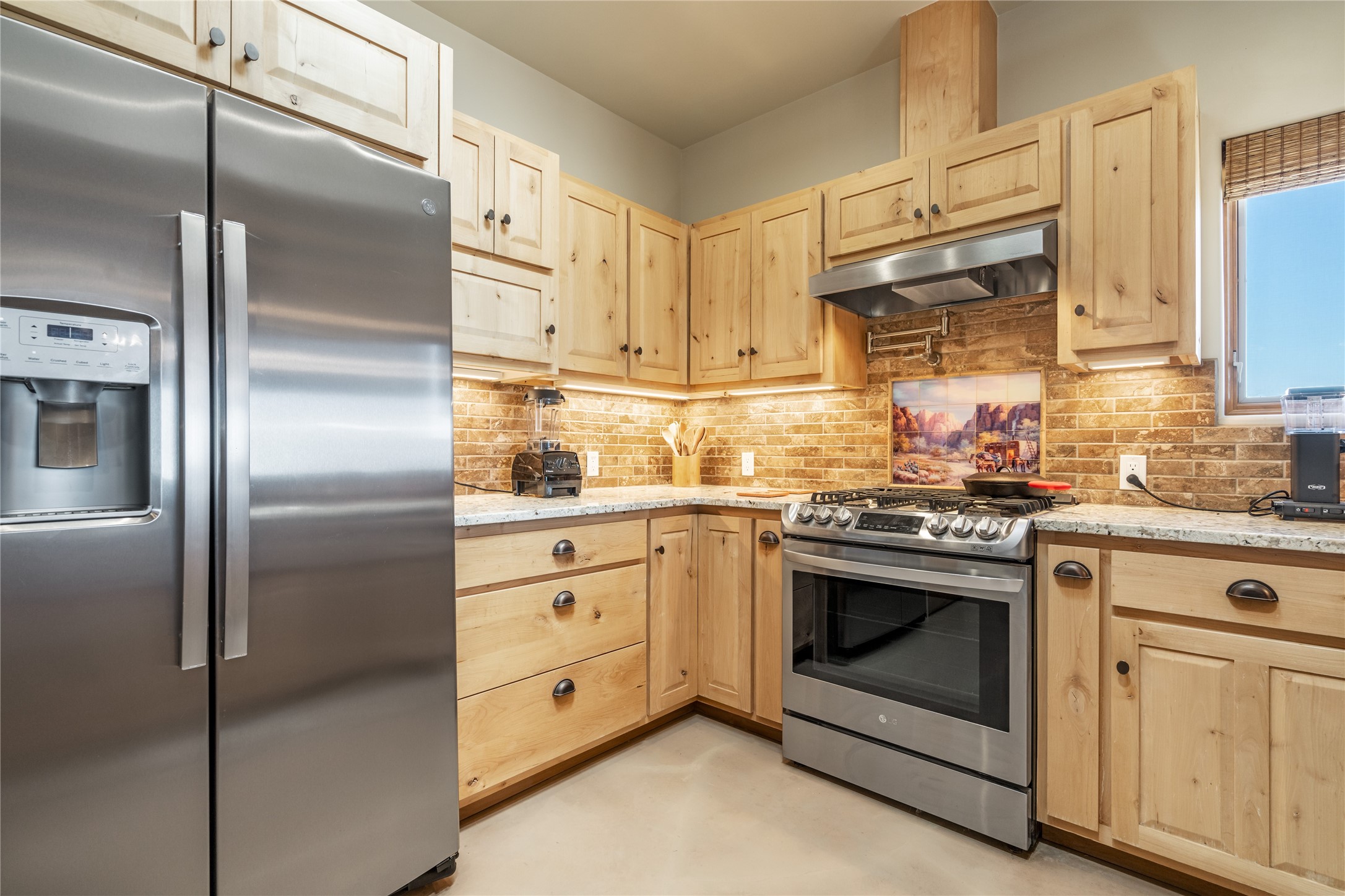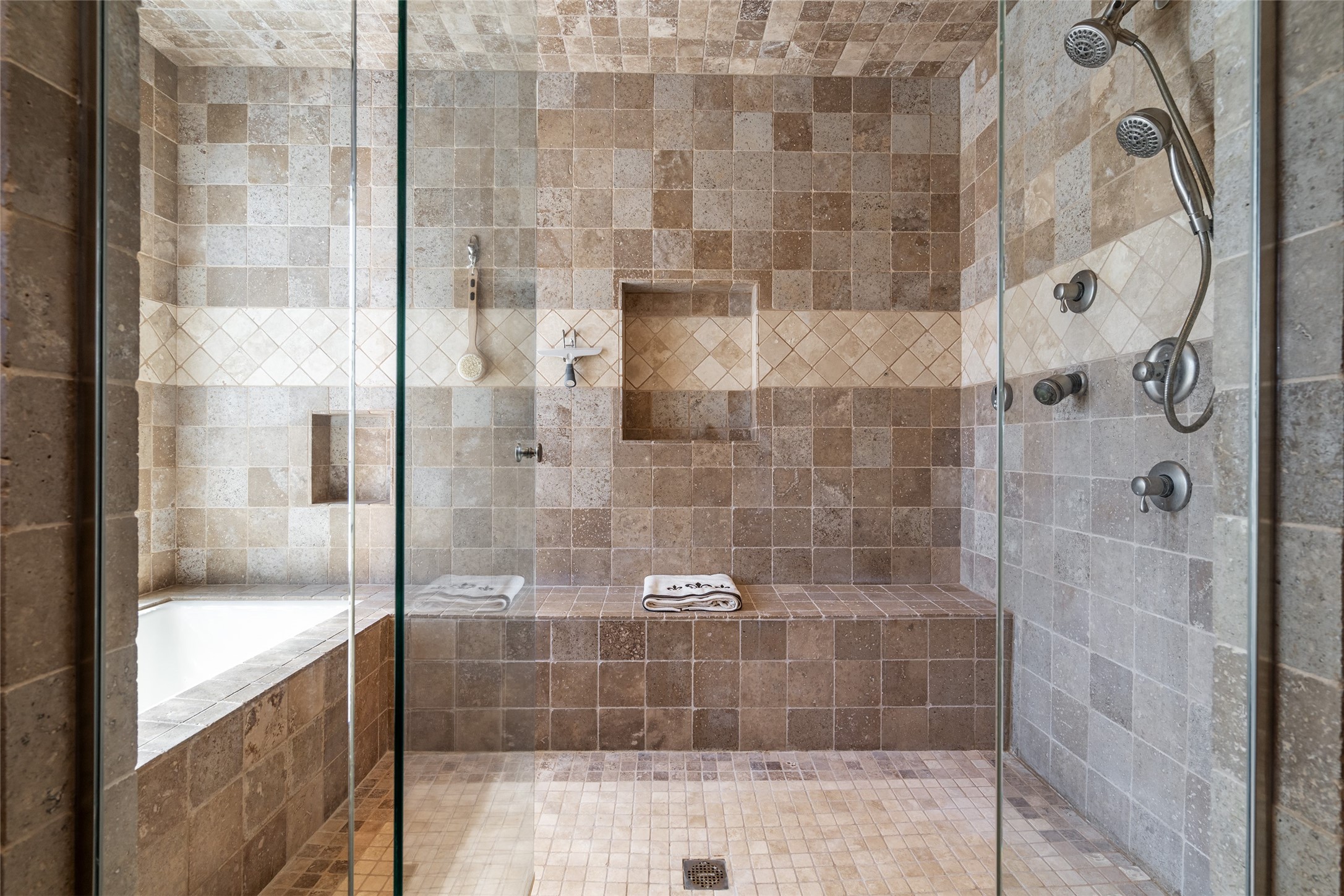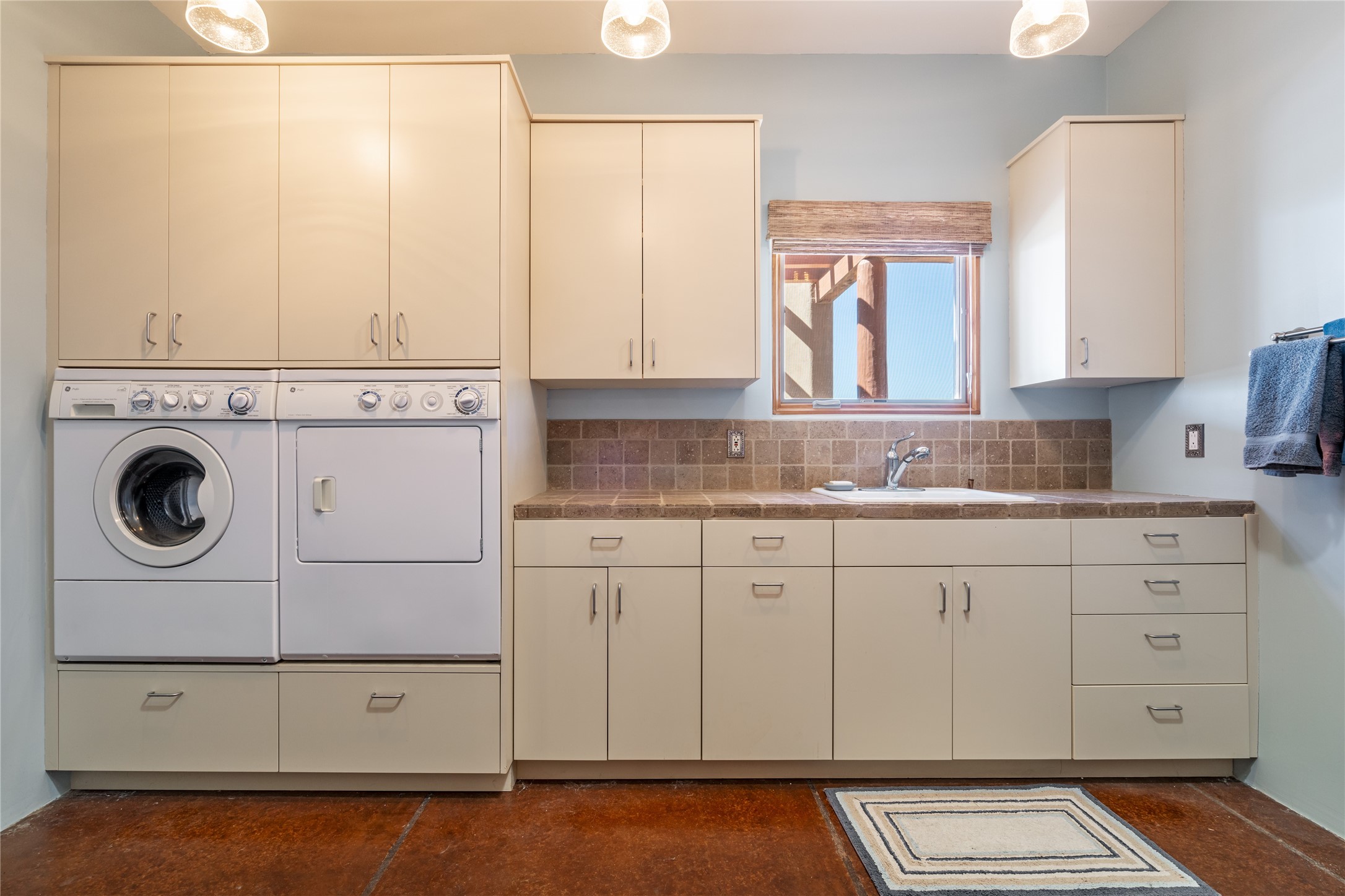 15 Silver Saddle is a 3 BRM/ 3.5 BATH main home with diamond plaster walls, polished concrete floors and wood beam high- ceilings throughout. The master suite is located on the western side of the house apart from the two additional en-suite guest bedrooms-- all with outdoor access. The master suite is well-appointed with a walk-in closet, a master bath with his and her sinks and water closets- along with a walk-in steam shower and soaking tub. Outdoor access from the master suite leads to a private outdoor area with a jacuzzi. However, it is the open concept cook's kitchen and adjacent entertaining room with a built-in wood bar that are the home's showstoppers. The almost 17-acre property also boasts a newly built (2017) two-bedroom 1,400 square foot guest house with high-end finishes and appliances throughout. Approx. 15 minutes to Santa Fe and conveniently located 5 minutes from the shopping area at Eldorado Santa Fe. For horse lovers the property has a Cleary barn, 3 horse stalls, an insulated tack room, an arena, a turnout and pasture. As an added bonus, there is direct access to Galisteo Basin Trails.