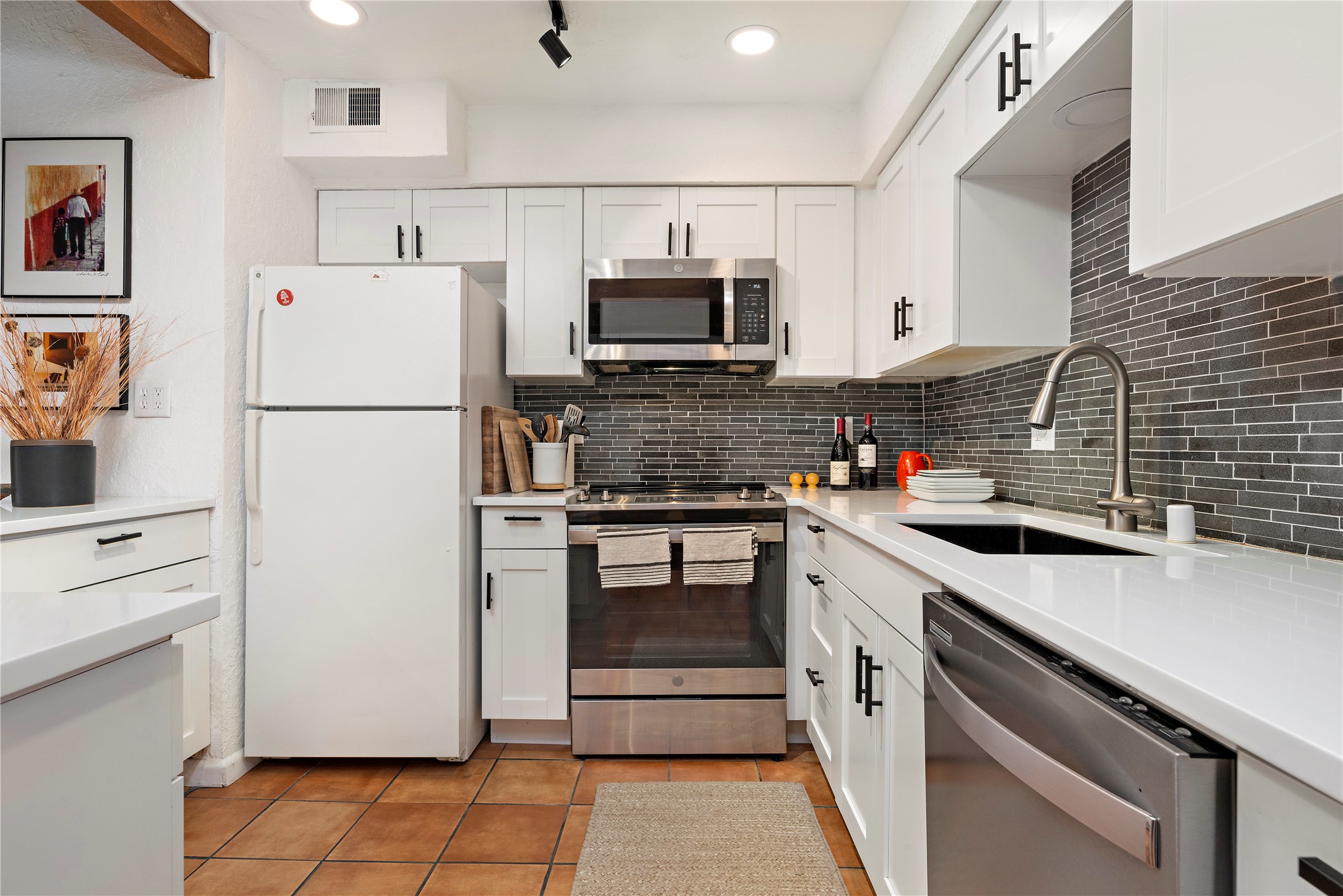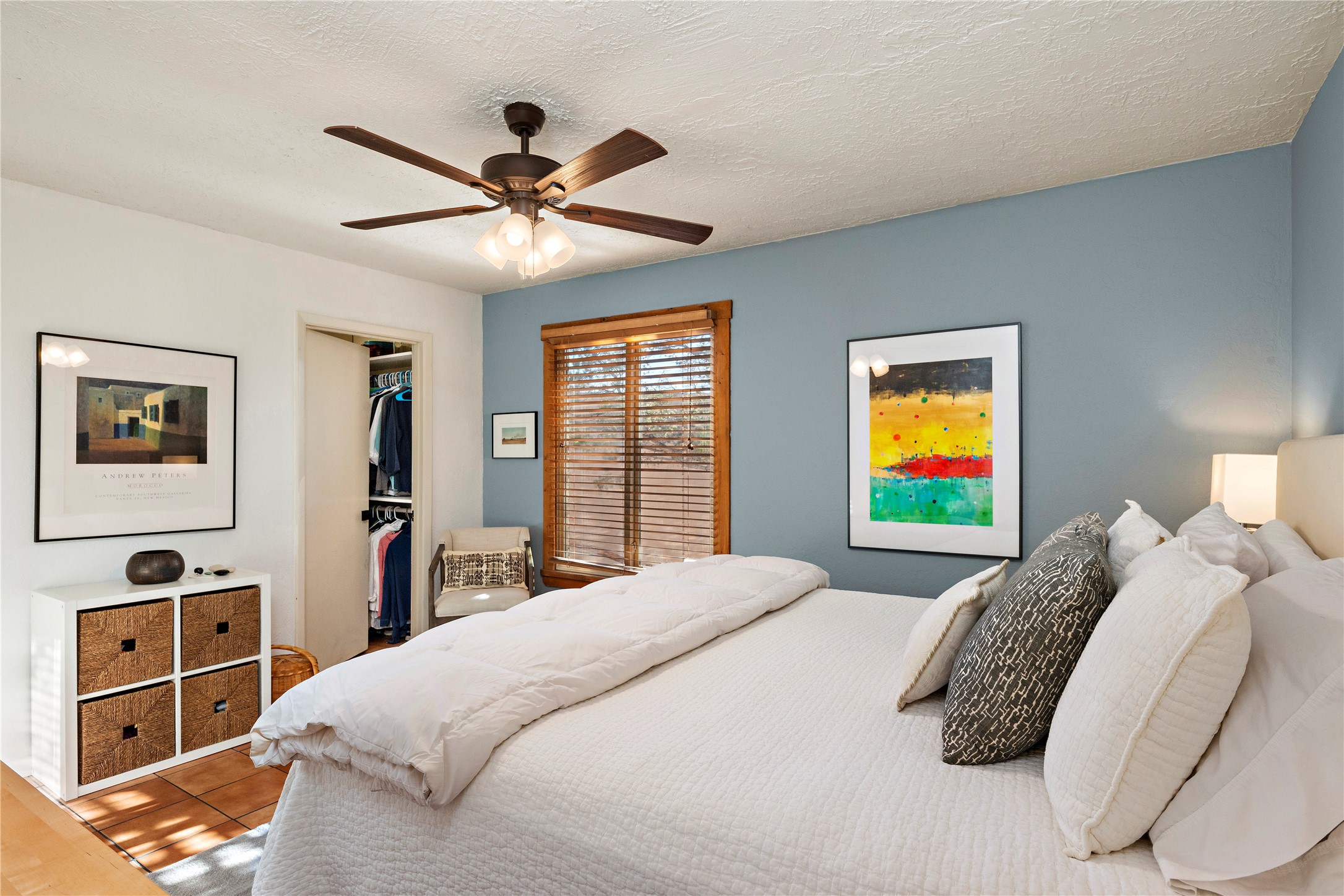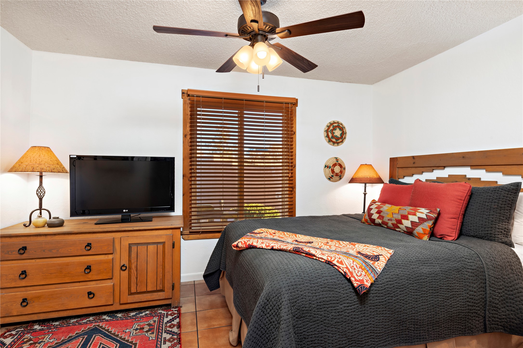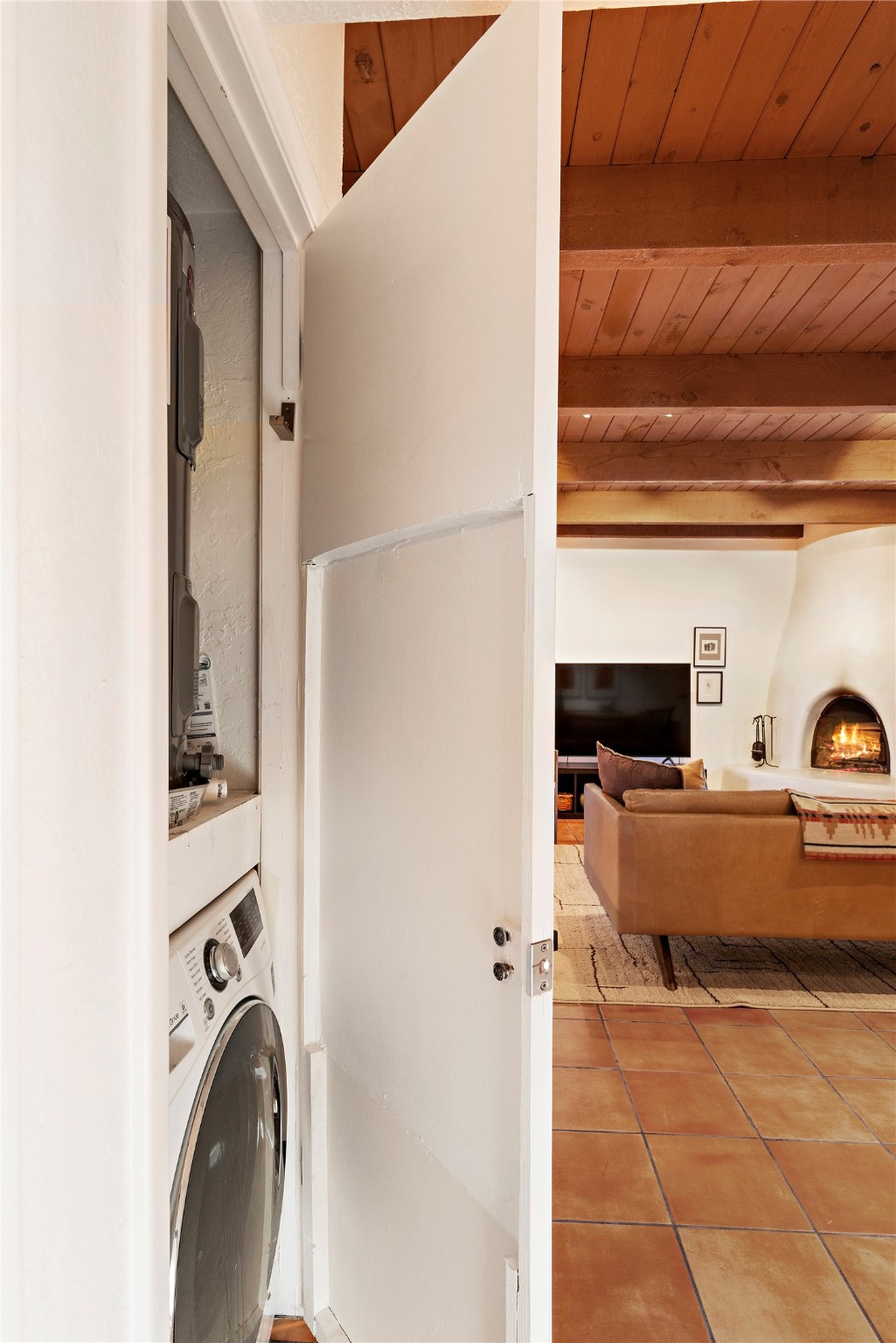 Walk to the Santa Fe historic plaza from this lovely condo. It has been refreshed, top to bottom, including beautiful tile flooring throughout, all new cabinetry with soft-close doors and drawers, new appliances, countertops and all new bathrooms. Single-level living made easy and comfortable, enjoy the central refrigerated air-conditioning in the warmer months, and the wood burning kiva fireplace on the cooler evening. Cental forced-air heating will keep you warm, no matter how cold it is outside. Offered with a limited furniture package, this condo is truly turn-key! On-site management offers a short-term rental program, specializing in short-term vacation rentals. Use as a full-time residence, part-time vacation home, long term rental, or short-term rental. The city's Short-term Rental Permit may not be required. Ask listing broker for details. To view CC & R's, go to https://allseasonshoa.com/associations/fort-marcy-hotel-suites/. Title is open with Greta at Prima/Stewart.