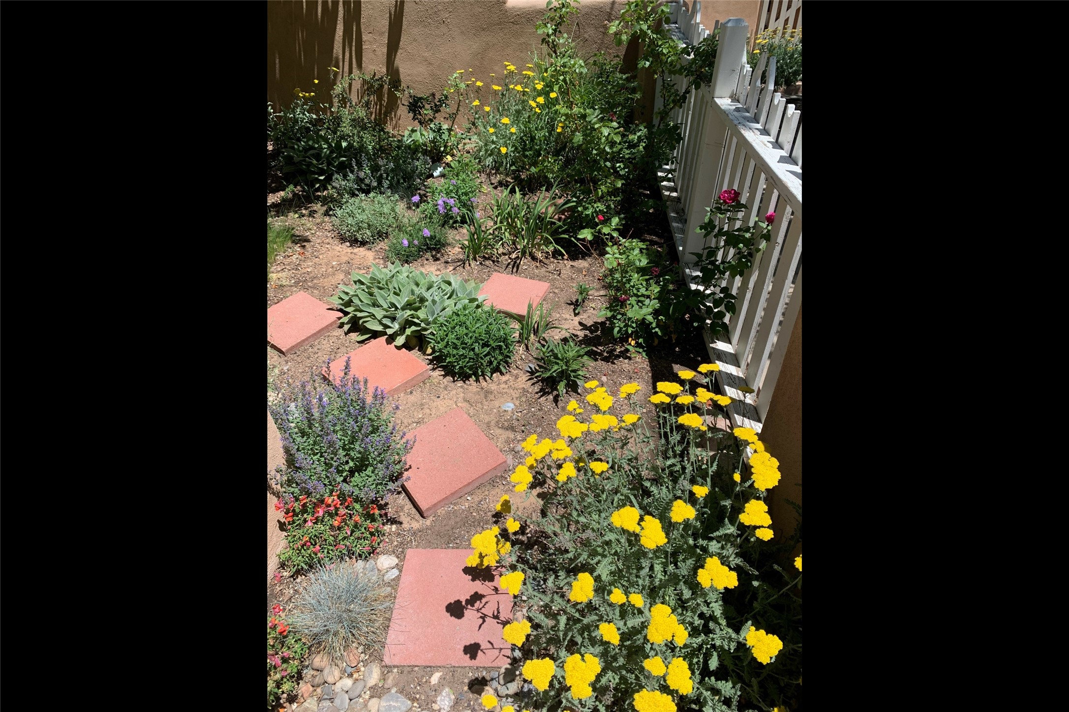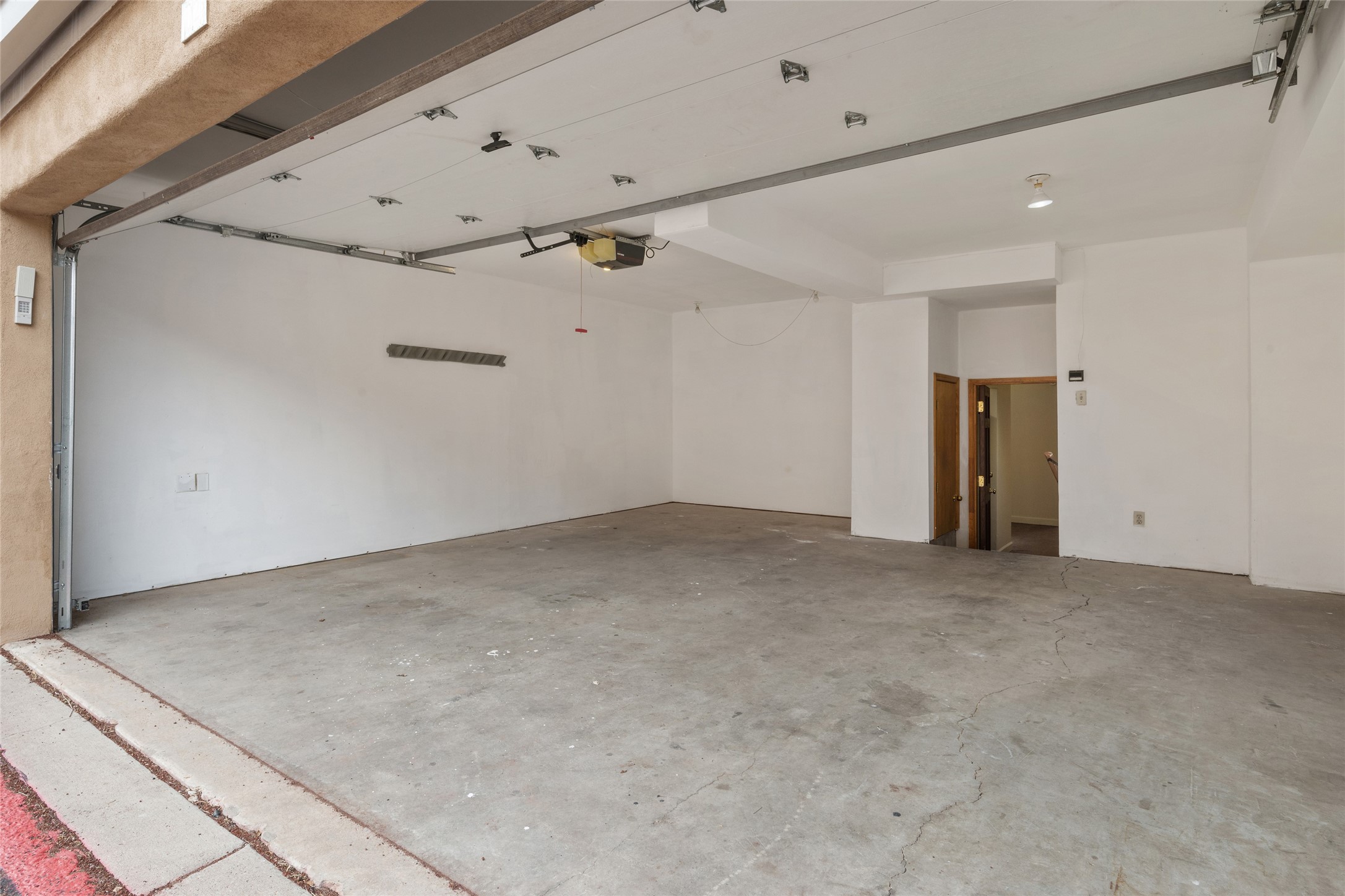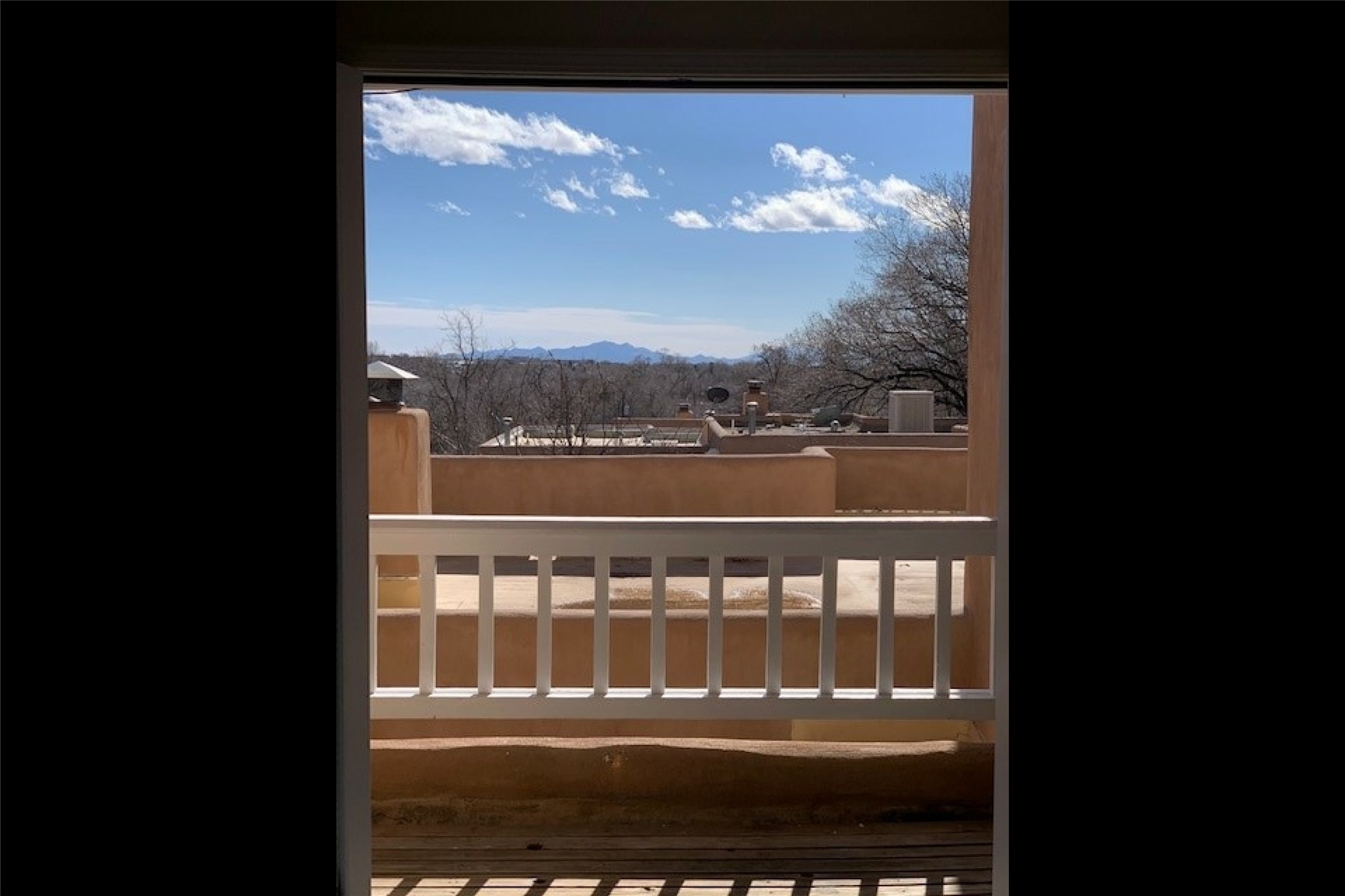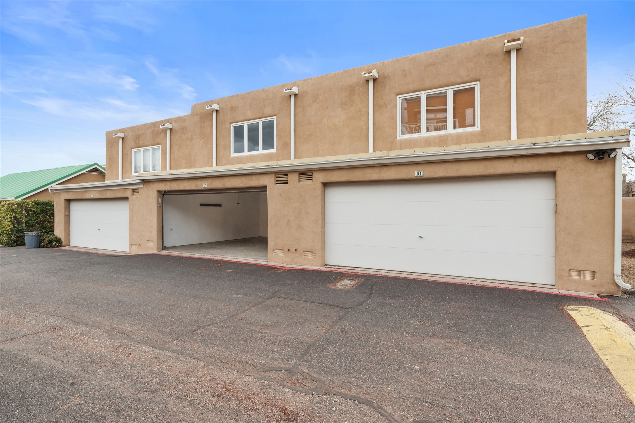 Ideally located in the Pueblo Del Rosario condo community near the swimming pool and community clubhouse, this 2- story, 2 bed-2 bath condo has a high walkability rating for convenience to downtown Santa Fe shopping, restaurants, galleries, museums and nearby parks. The main living area on the first floor includes the living and dining rooms, walled patio area, kitchen and bathroom. Two bedrooms, one with balcony providing over-city views of the Ortiz mountains, primary bathroom and laundry closet are upstairs. Included with the property is a large two-car attached garage with automatic door and direct entry near the kitchen area. Off street parking is also available. Additional features include a sizable walled, open patio area between the dining and living rooms; front patio area with crabapple tree off the living room, newer forced air furnace with high quality air filters, newer kitchen appliances and washer/dryer, and ample storage throughout.
