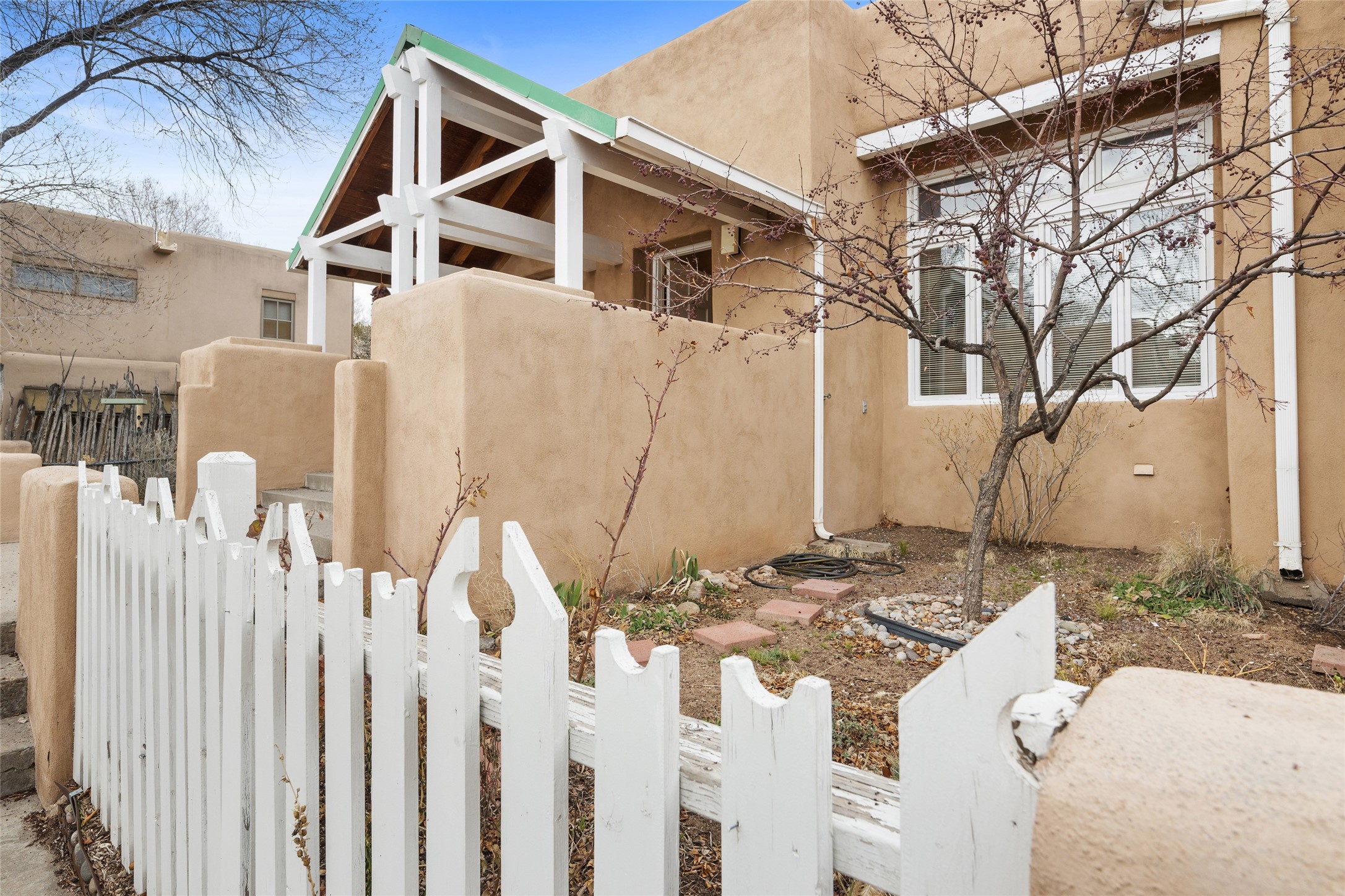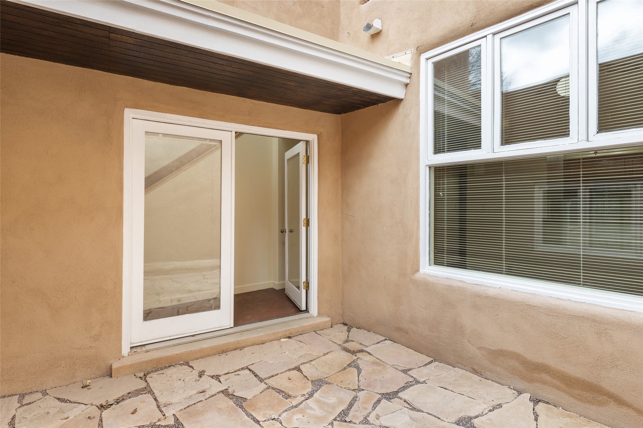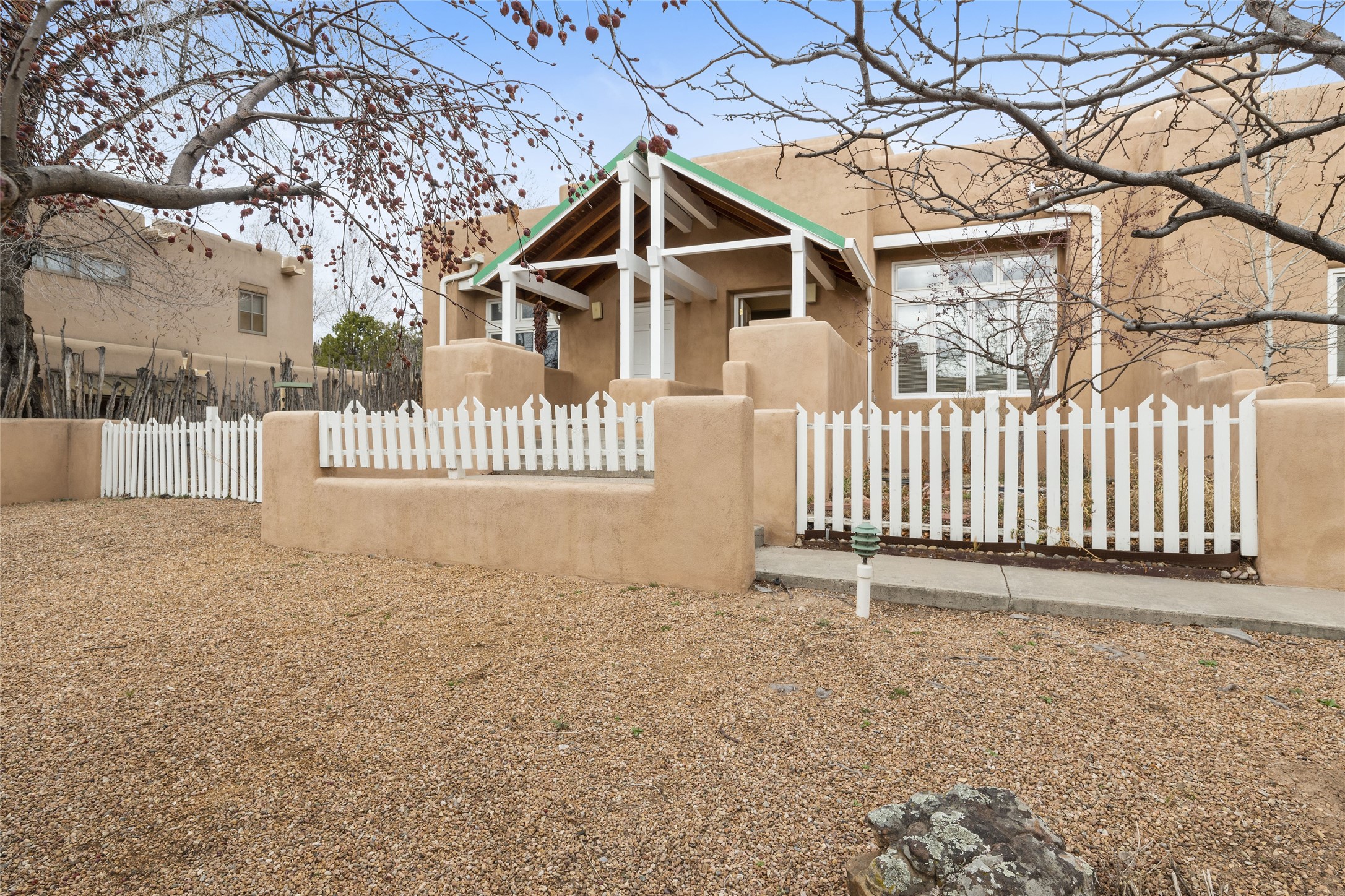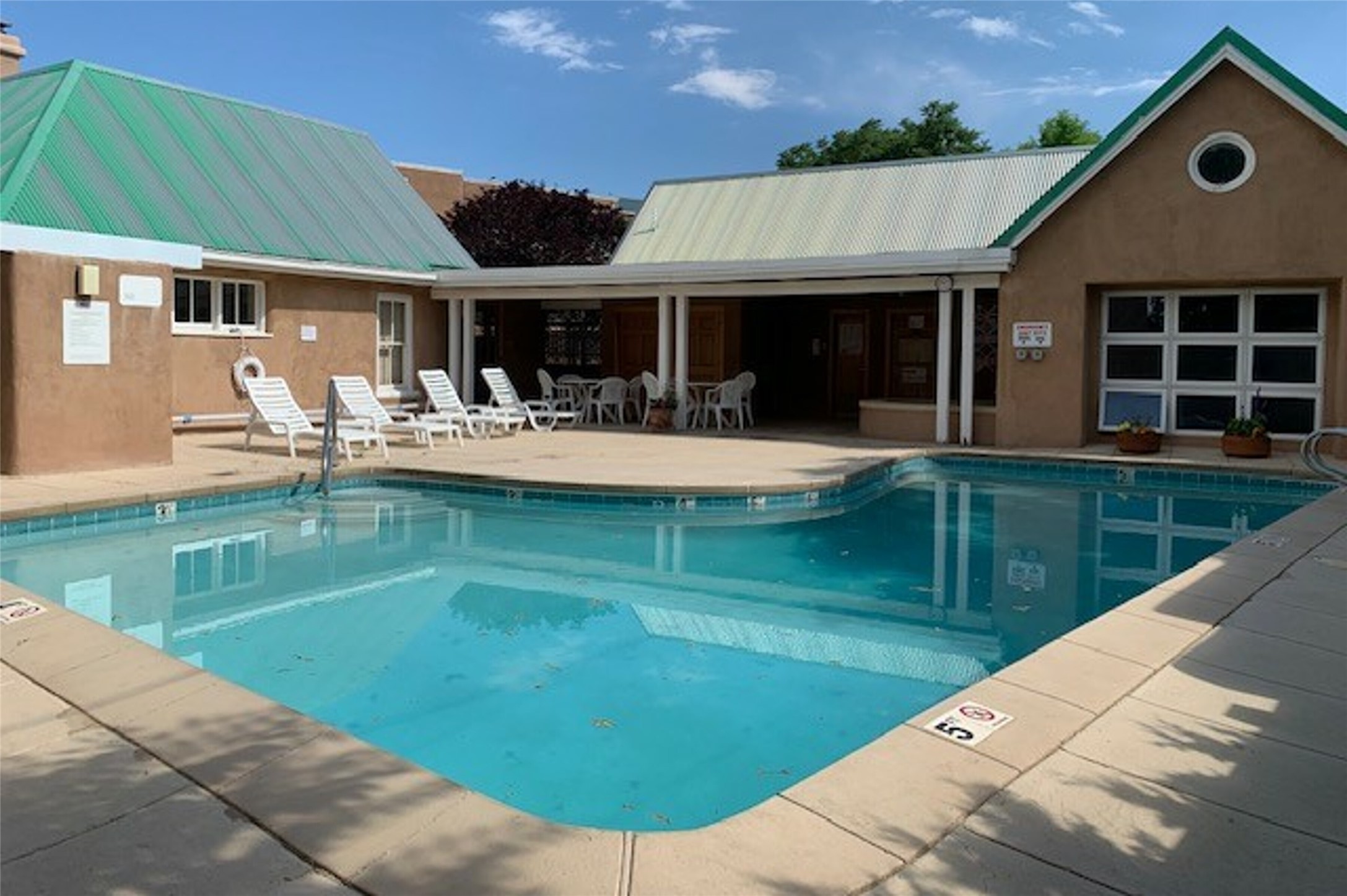 Ideally located in the Pueblo Del Rosario condo community near the swimming pool and community clubhouse, this 2- story, 2 bed-2 bath condo has a high walkability rating for convenience to downtown Santa Fe shopping, restaurants, galleries, museums and nearby parks. The main living area on the first floor includes the living and dining rooms, walled patio area, kitchen and bathroom. Two bedrooms, one with balcony providing over-city views of the Ortiz mountains, primary bathroom and laundry closet are upstairs. Included with the property is a large two-car attached garage with automatic door and direct entry near the kitchen area. Off street parking is also available. Additional features include a sizable walled, open patio area between the dining and living rooms; front patio area with crabapple tree off the living room, newer forced air furnace with high quality air filters, newer kitchen appliances and washer/dryer, and ample storage throughout.
