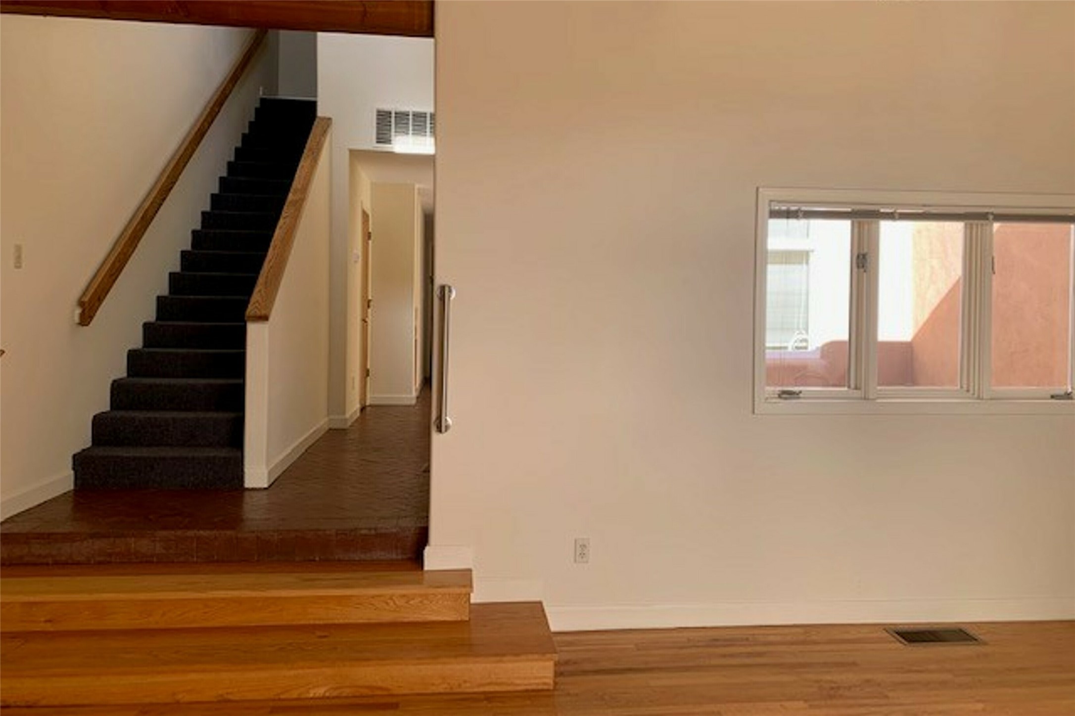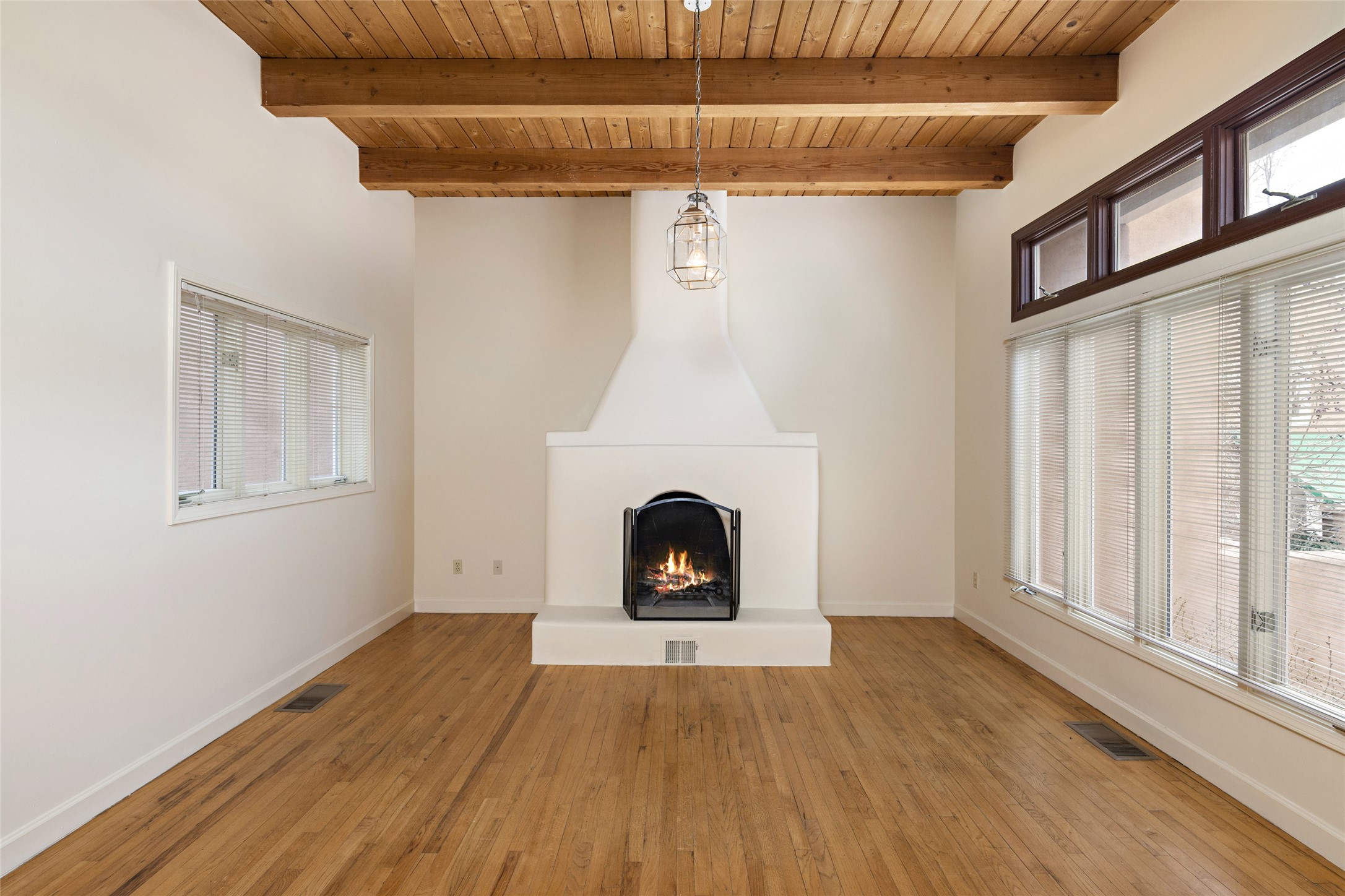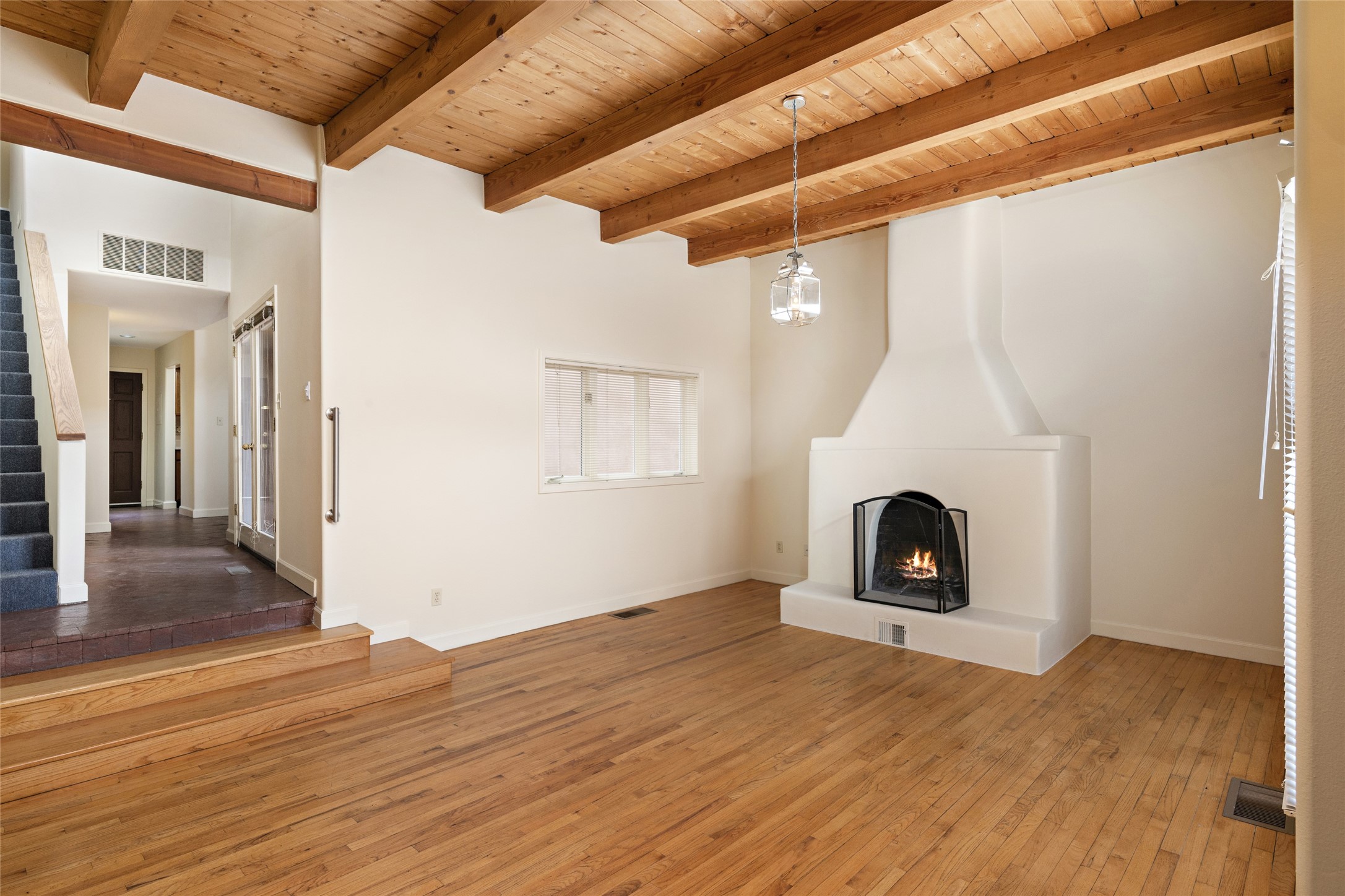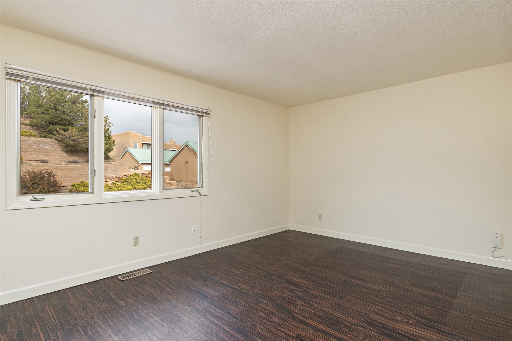 Ideally located in the Pueblo Del Rosario condo community near the swimming pool and community clubhouse, this 2- story, 2 bed-2 bath condo has a high walkability rating for convenience to downtown Santa Fe shopping, restaurants, galleries, museums and nearby parks. The main living area on the first floor includes the living and dining rooms, walled patio area, kitchen and bathroom. Two bedrooms, one with balcony providing over-city views of the Ortiz mountains, primary bathroom and laundry closet are upstairs. Included with the property is a large two-car attached garage with automatic door and direct entry near the kitchen area. Off street parking is also available. Additional features include a sizable walled, open patio area between the dining and living rooms; front patio area with crabapple tree off the living room, newer forced air furnace with high quality air filters, newer kitchen appliances and washer/dryer, and ample storage throughout.
