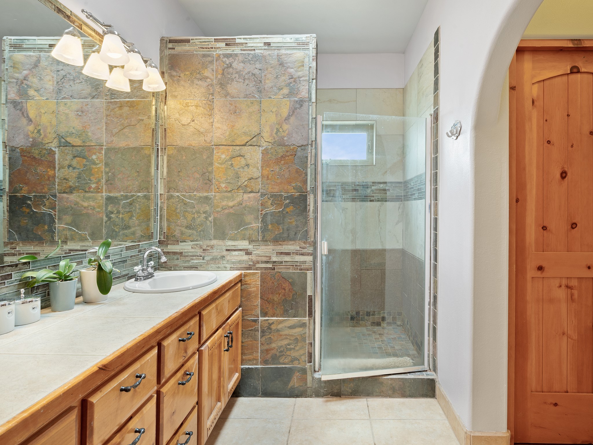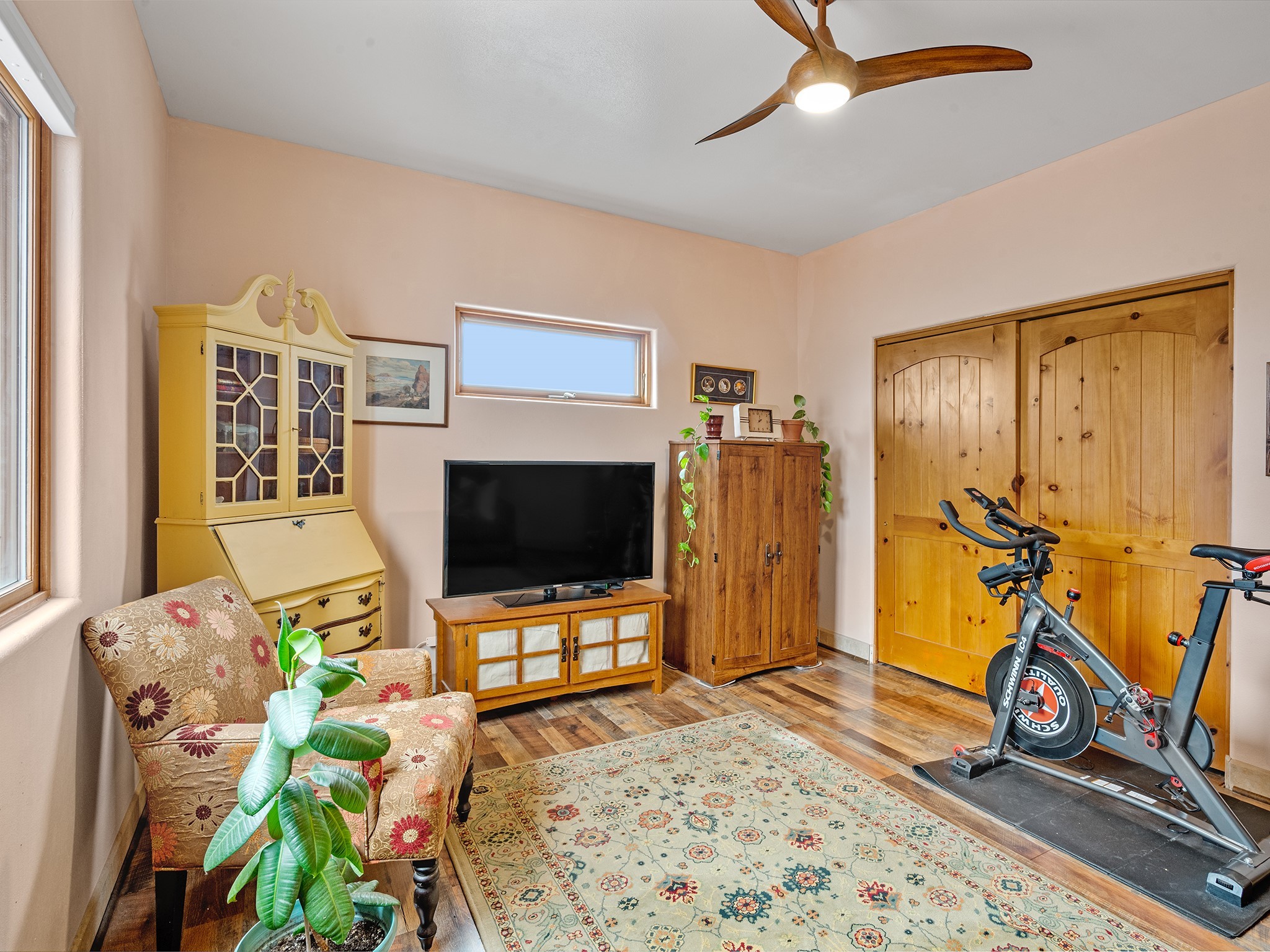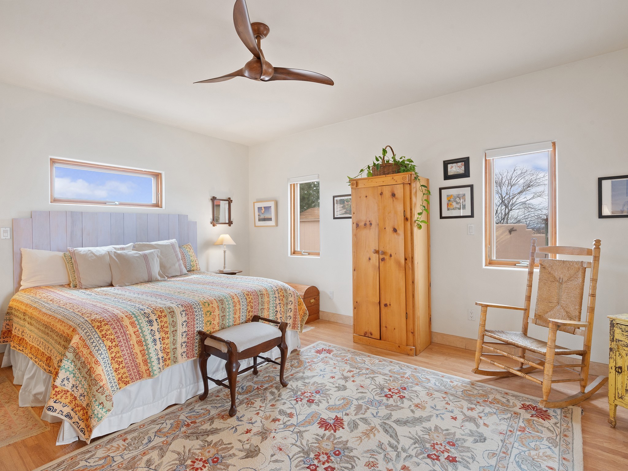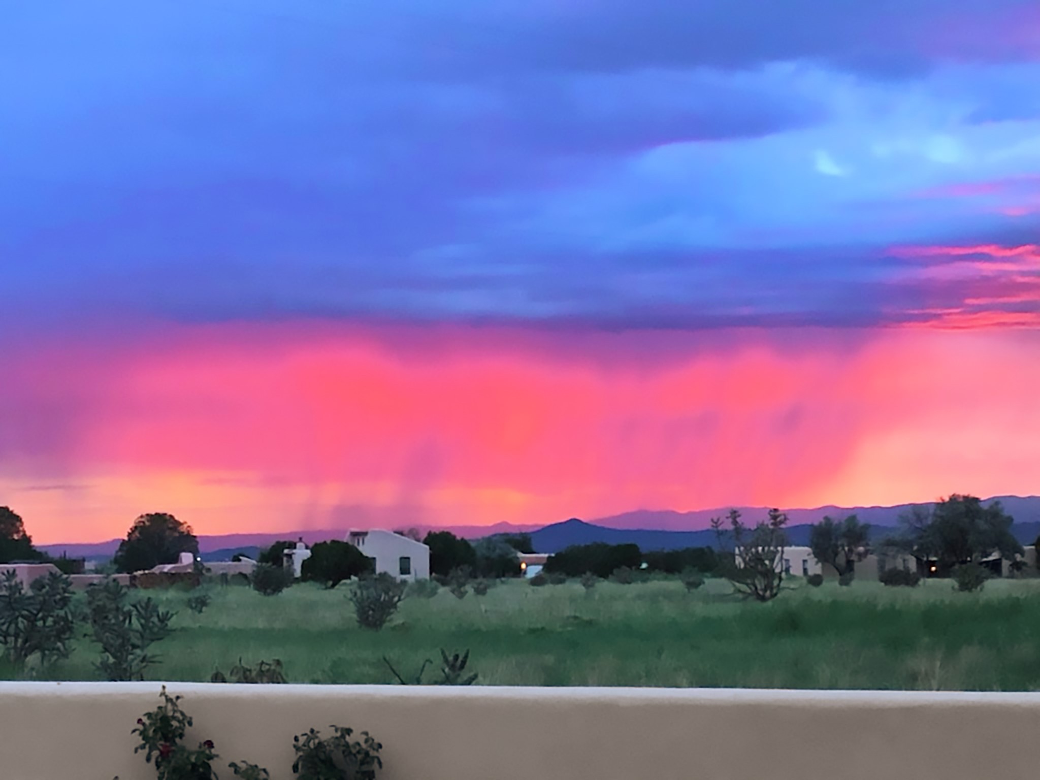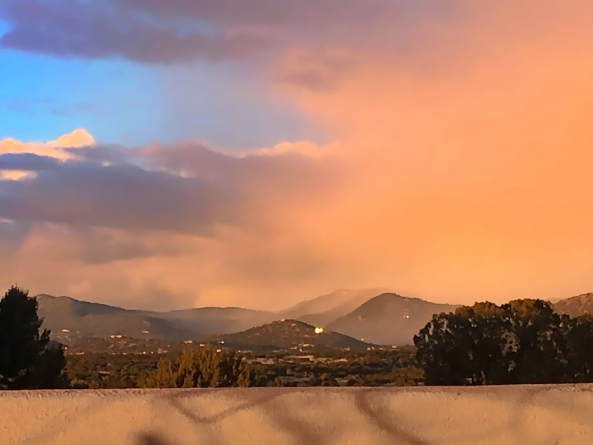 Absolute Eldorado charmer with magnificent mountain views in all directions! This thoughtfully laid out, single level 1800 +/- square feet, 3BD-2BA home is sited perfectly to capture surrounding views of the Jemez, Sandia and Sangre mountain ranges. The living room's high ceilings, sophisticated built-in bookcase, classic vigas, cozy wood burning kiva fireplace, and large picture windows make it the perfect space to soak in long-range views. A set of french doors leads to a very functional media room or office just off the main living space. Connected to the living room is a bright dining area with access to the back portal and yard. The kitchen is full of recent improvements including granite countertops, Blanco sink, newer refrigerator (2021) and dishwasher (2020). All three bedrooms are nicely separated on a long hallway on the opposite side of the living room. The primary suite is spacious and bright, and once again, features spectacular views out all windows and glass doors. Two walk-in closets with built-in shelving connect the primary bedroom to the ensuite bathroom. Down the hall are two nicely sized guest bedrooms and a full bathroom. The backyard is an oasis of its own. Plenty of covered patio space makes for a very comfortable outdoor entertainment, dining and lounging area almost year-round. Gorgeous native plants and bushes fill the walled-in backyard. Spectacular sunsets and beautiful summer blooms await!
