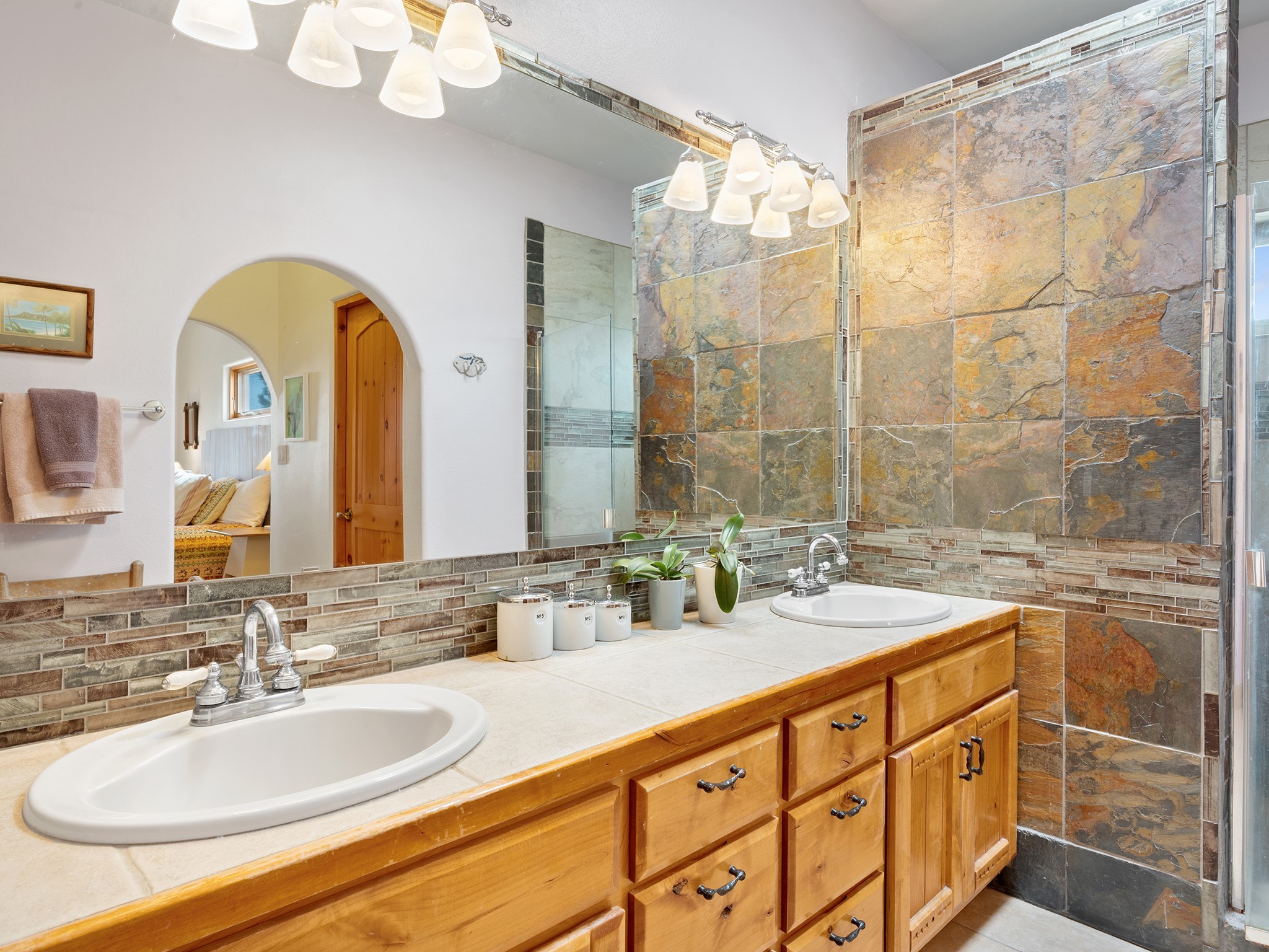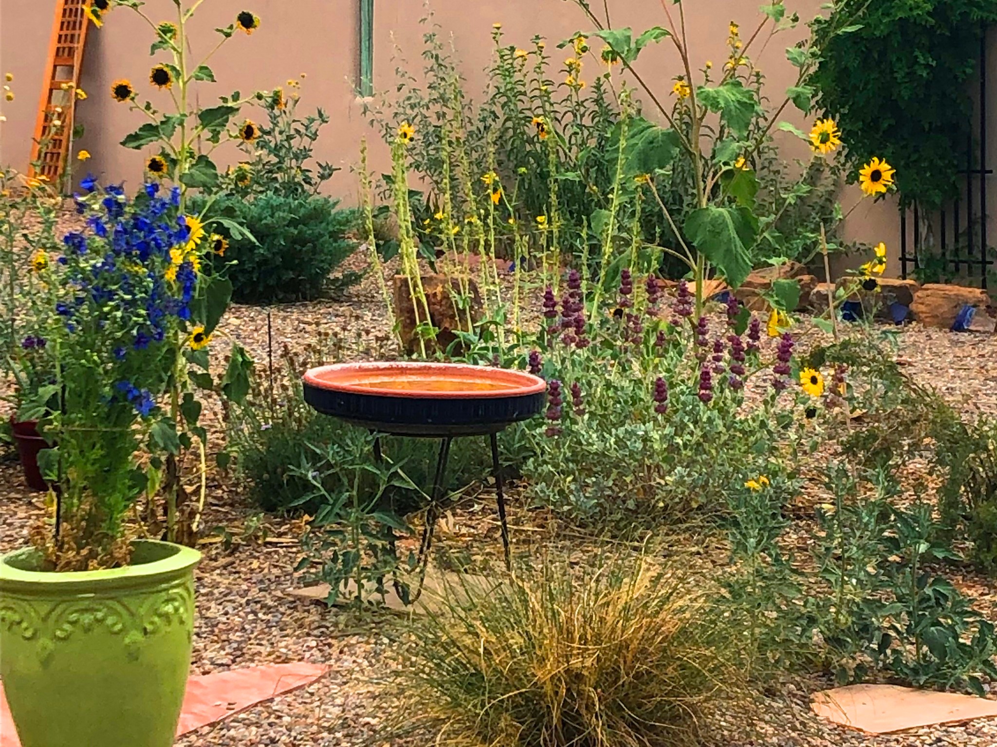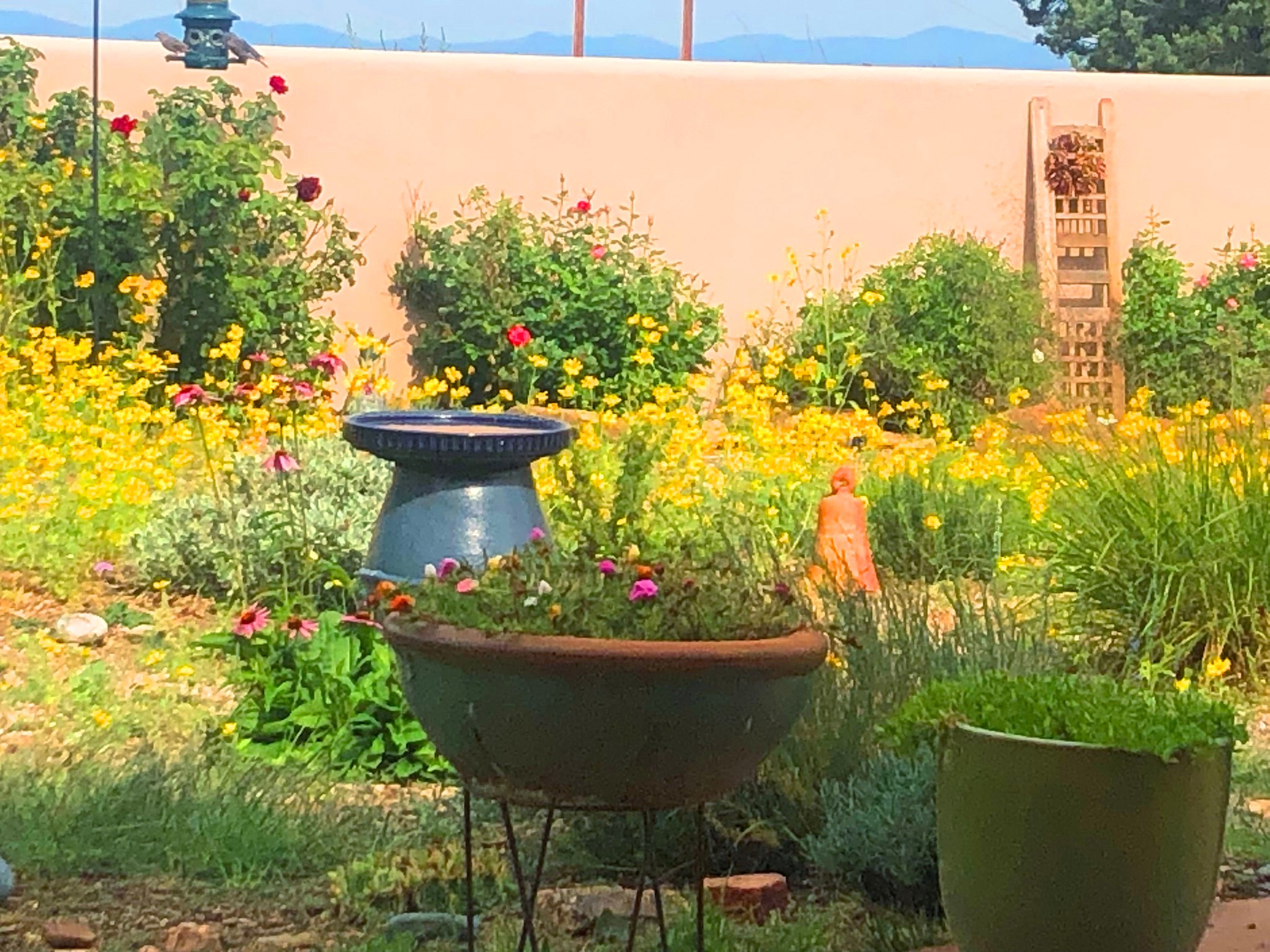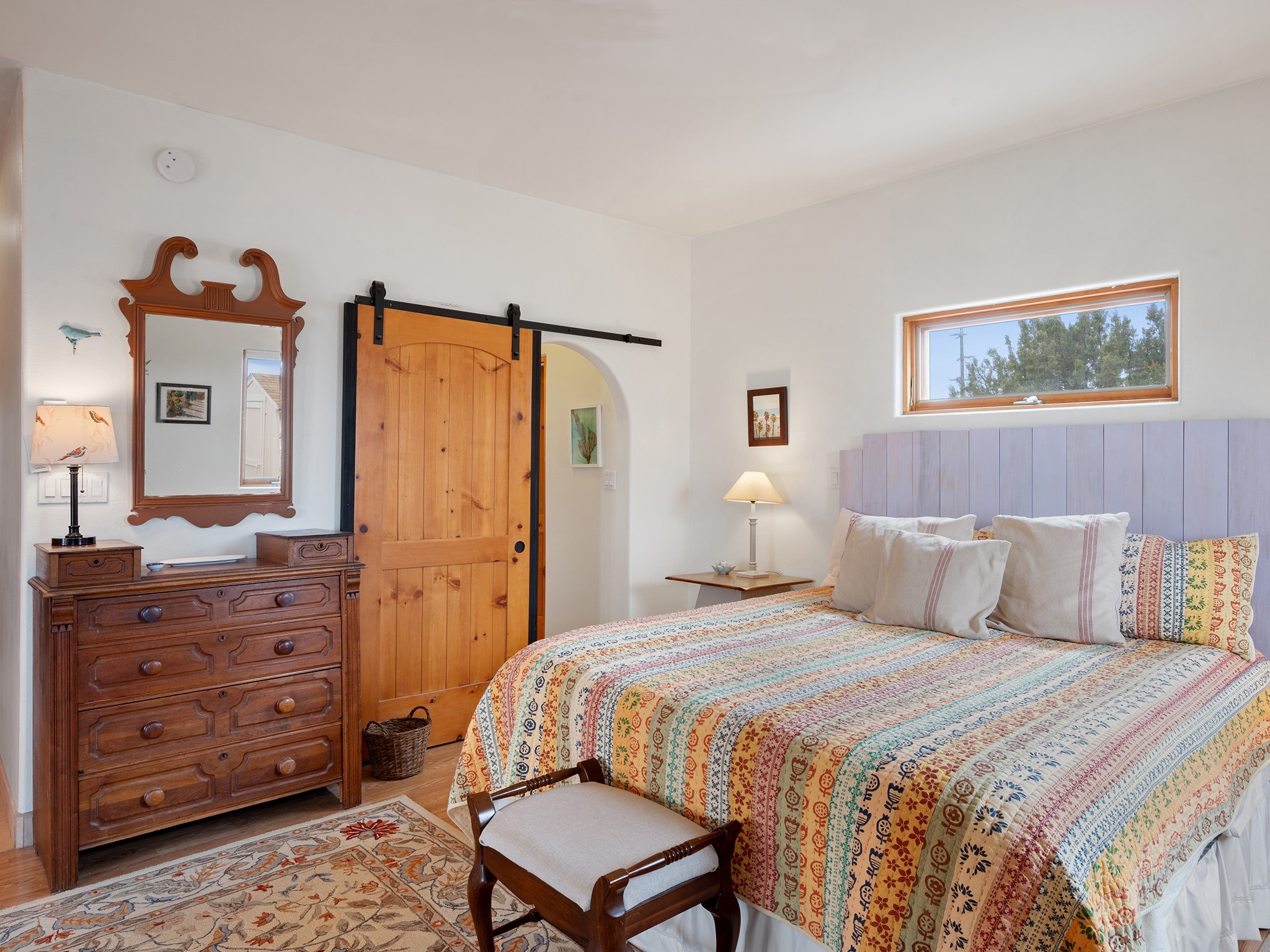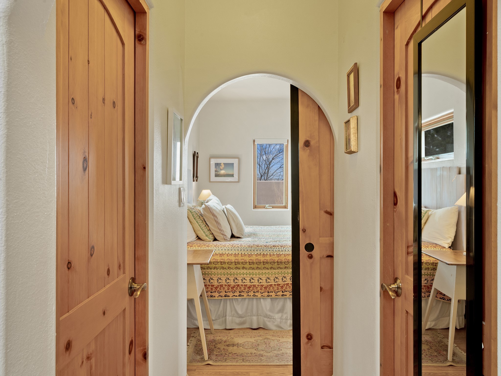 Absolute Eldorado charmer with magnificent mountain views in all directions! This thoughtfully laid out, single level 1800 +/- square feet, 3BD-2BA home is sited perfectly to capture surrounding views of the Jemez, Sandia and Sangre mountain ranges. The living room's high ceilings, sophisticated built-in bookcase, classic vigas, cozy wood burning kiva fireplace, and large picture windows make it the perfect space to soak in long-range views. A set of french doors leads to a very functional media room or office just off the main living space. Connected to the living room is a bright dining area with access to the back portal and yard. The kitchen is full of recent improvements including granite countertops, Blanco sink, newer refrigerator (2021) and dishwasher (2020). All three bedrooms are nicely separated on a long hallway on the opposite side of the living room. The primary suite is spacious and bright, and once again, features spectacular views out all windows and glass doors. Two walk-in closets with built-in shelving connect the primary bedroom to the ensuite bathroom. Down the hall are two nicely sized guest bedrooms and a full bathroom. The backyard is an oasis of its own. Plenty of covered patio space makes for a very comfortable outdoor entertainment, dining and lounging area almost year-round. Gorgeous native plants and bushes fill the walled-in backyard. Spectacular sunsets and beautiful summer blooms await!