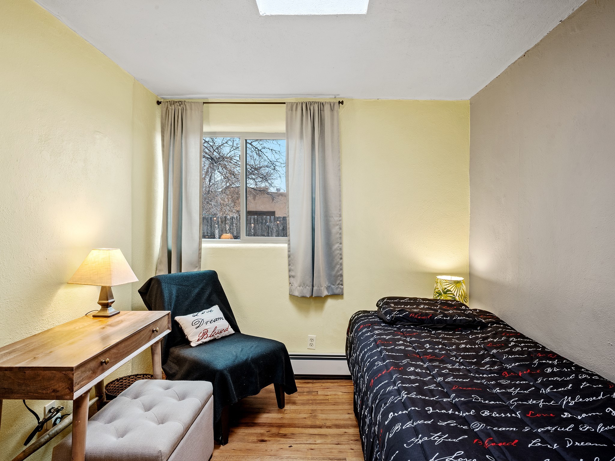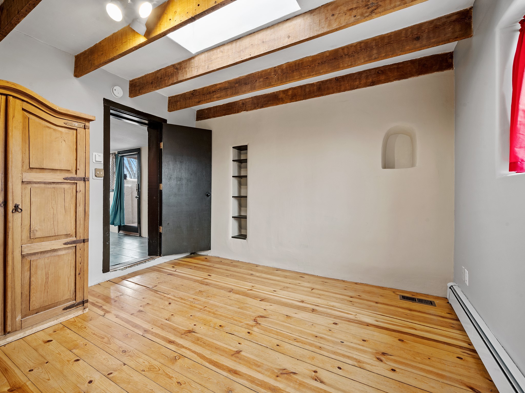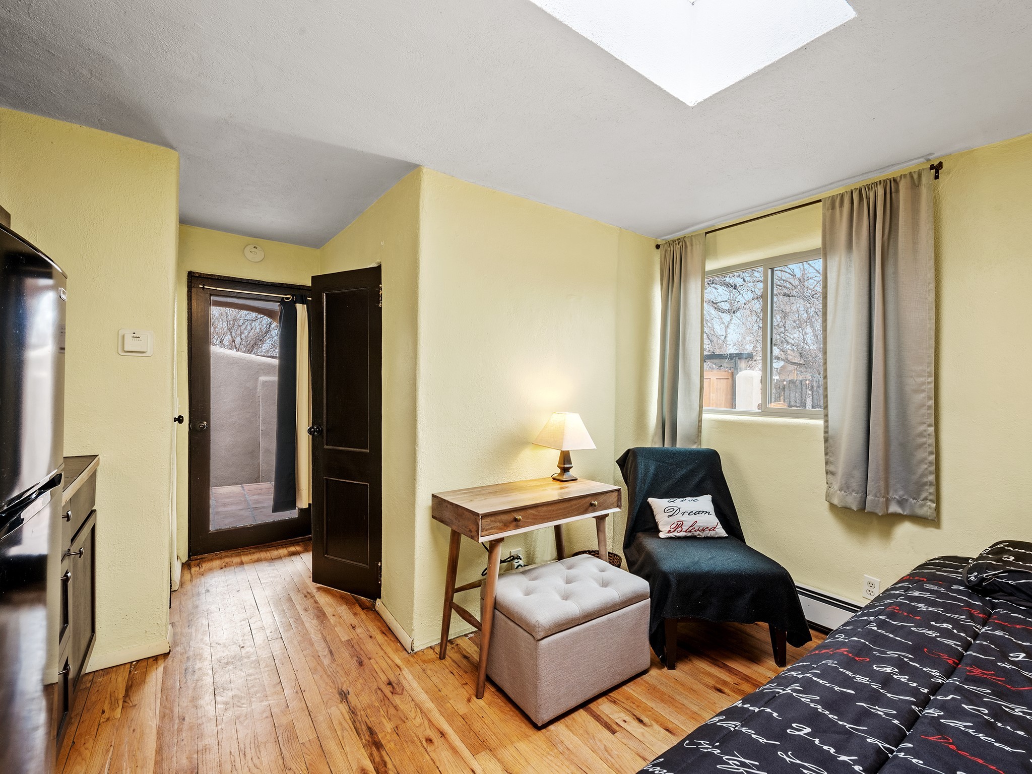 Location! This 3 bedroom home is close to the Tuneup Cafe and numerous other outdoor, shopping and entertainment conveniences. Whole Foods, Trader Joes, and Devargas Mall are a short drive away. The kitchen and casita were recently remodeled with updated kitchen flooring, cabinets and appliances. The Casita bathroom has been updated. Beautiful flooring has been refinished and replaced throughout. The home features a paver walkway and storage shed placed in the outdoor yard space with a view of the mountains. The property has off-street parking.