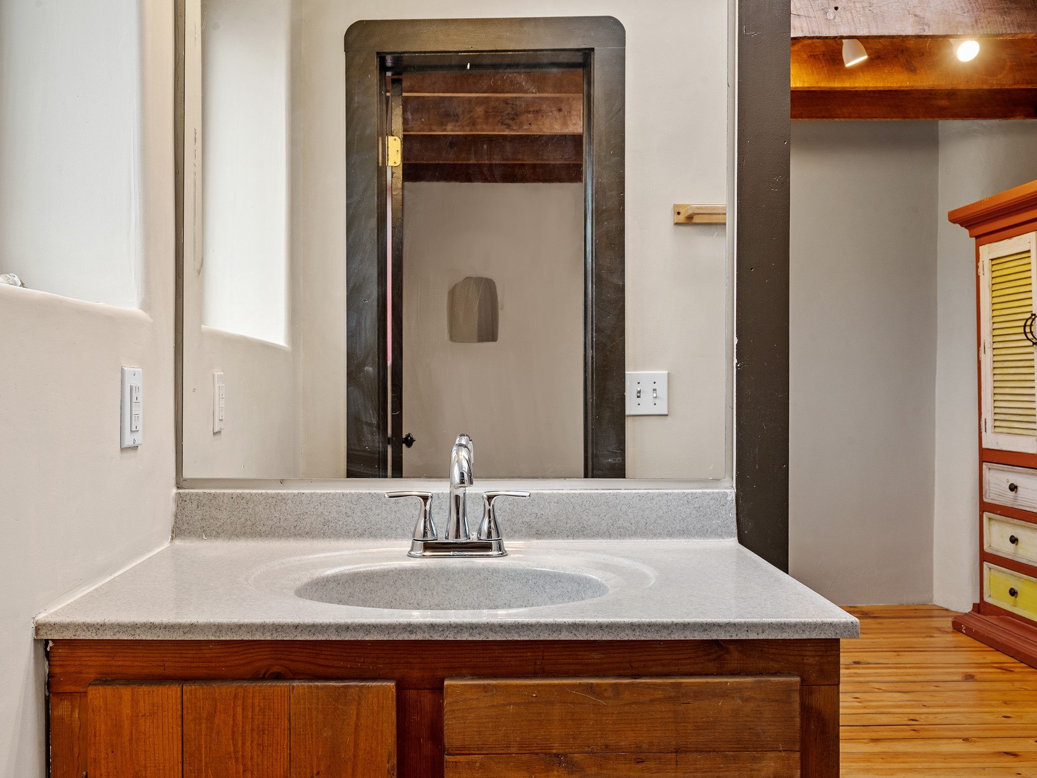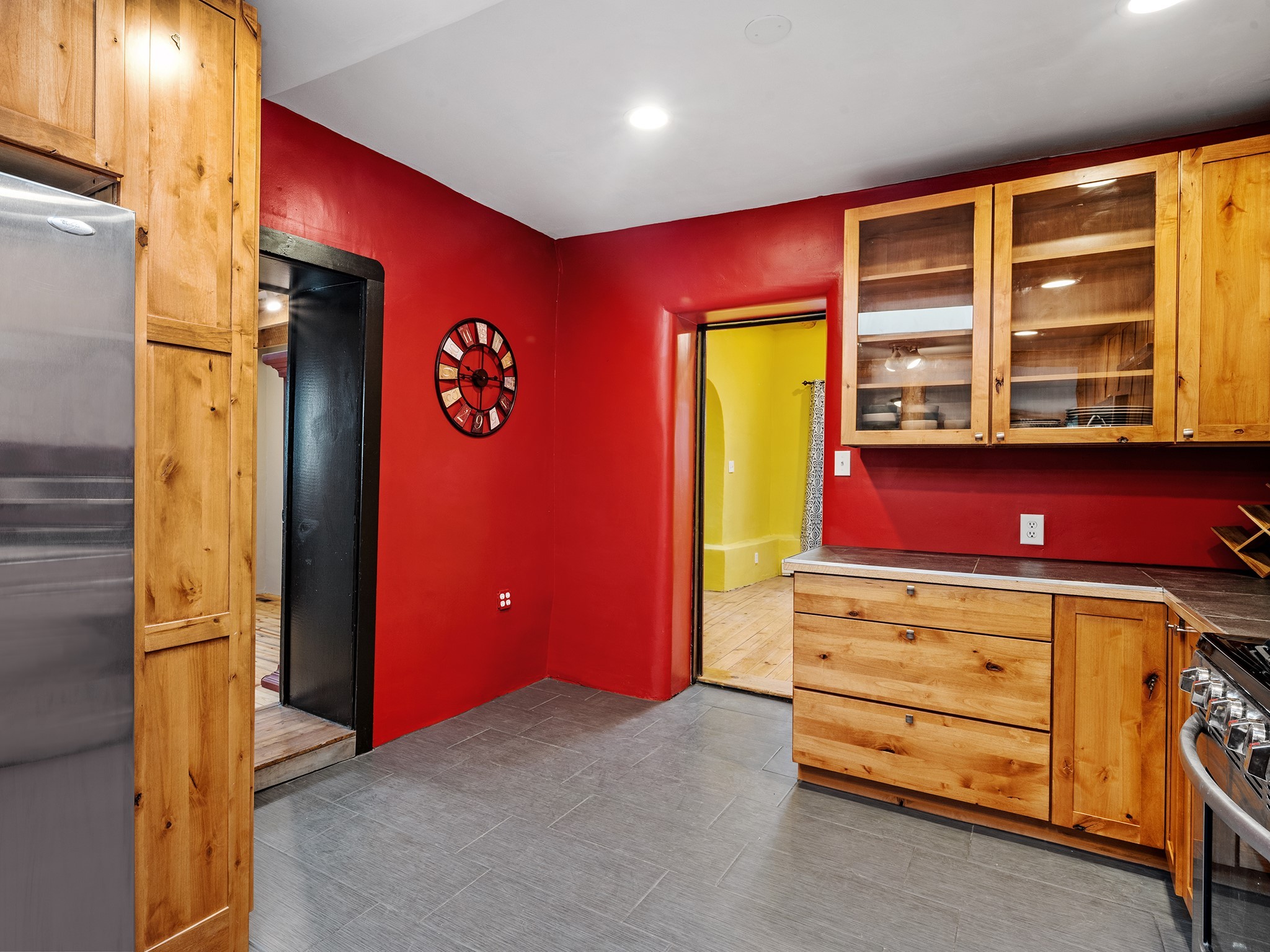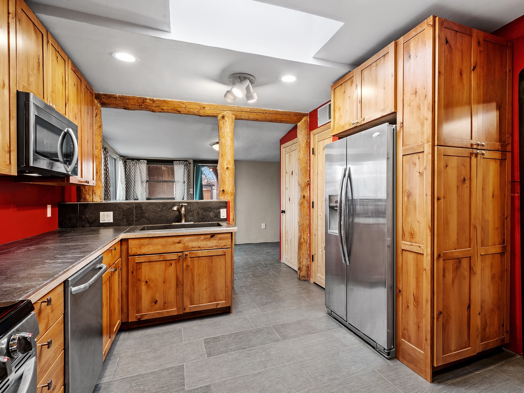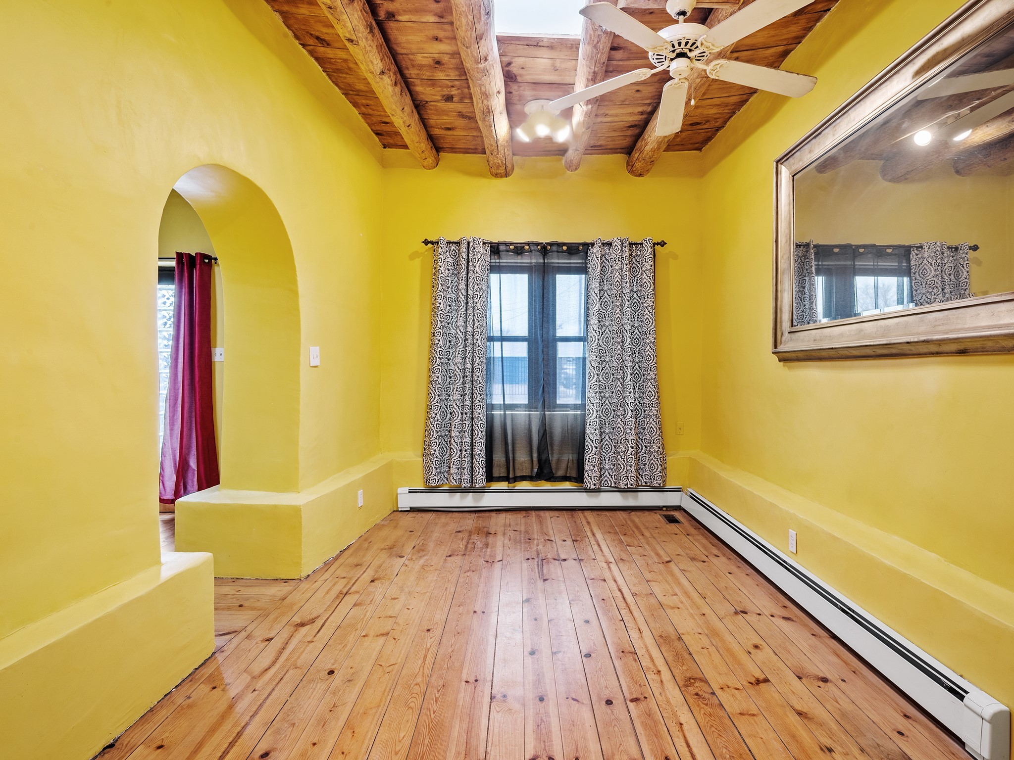 Location! This 3 bedroom home is close to the Tuneup Cafe and numerous other outdoor, shopping and entertainment conveniences. Whole Foods, Trader Joes, and Devargas Mall are a short drive away. The kitchen and casita were recently remodeled with updated kitchen flooring, cabinets and appliances. The Casita bathroom has been updated. Beautiful flooring has been refinished and replaced throughout. The home features a paver walkway and storage shed placed in the outdoor yard space with a view of the mountains. The property has off-street parking.