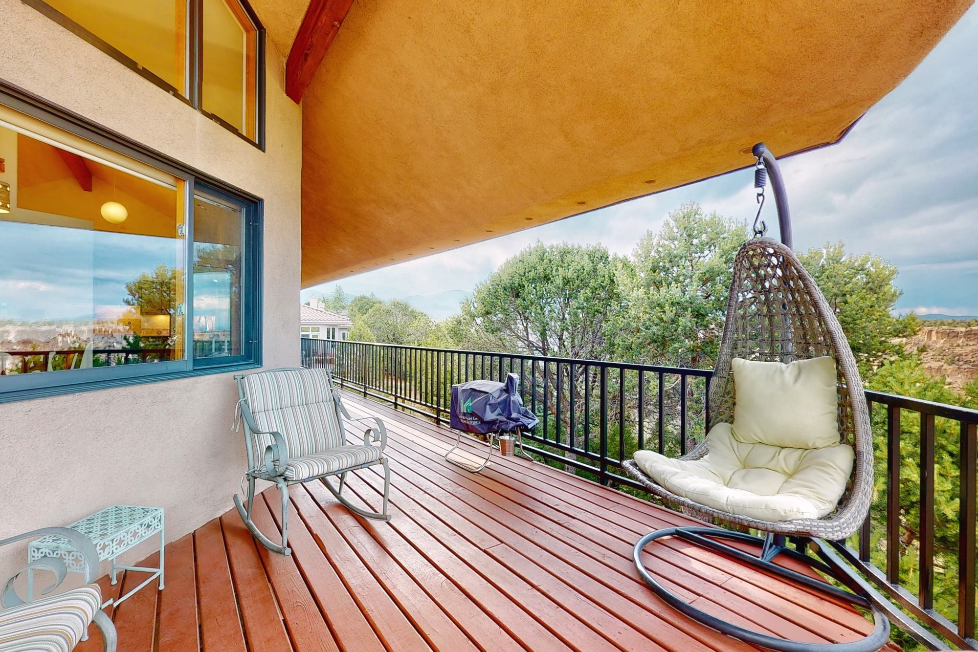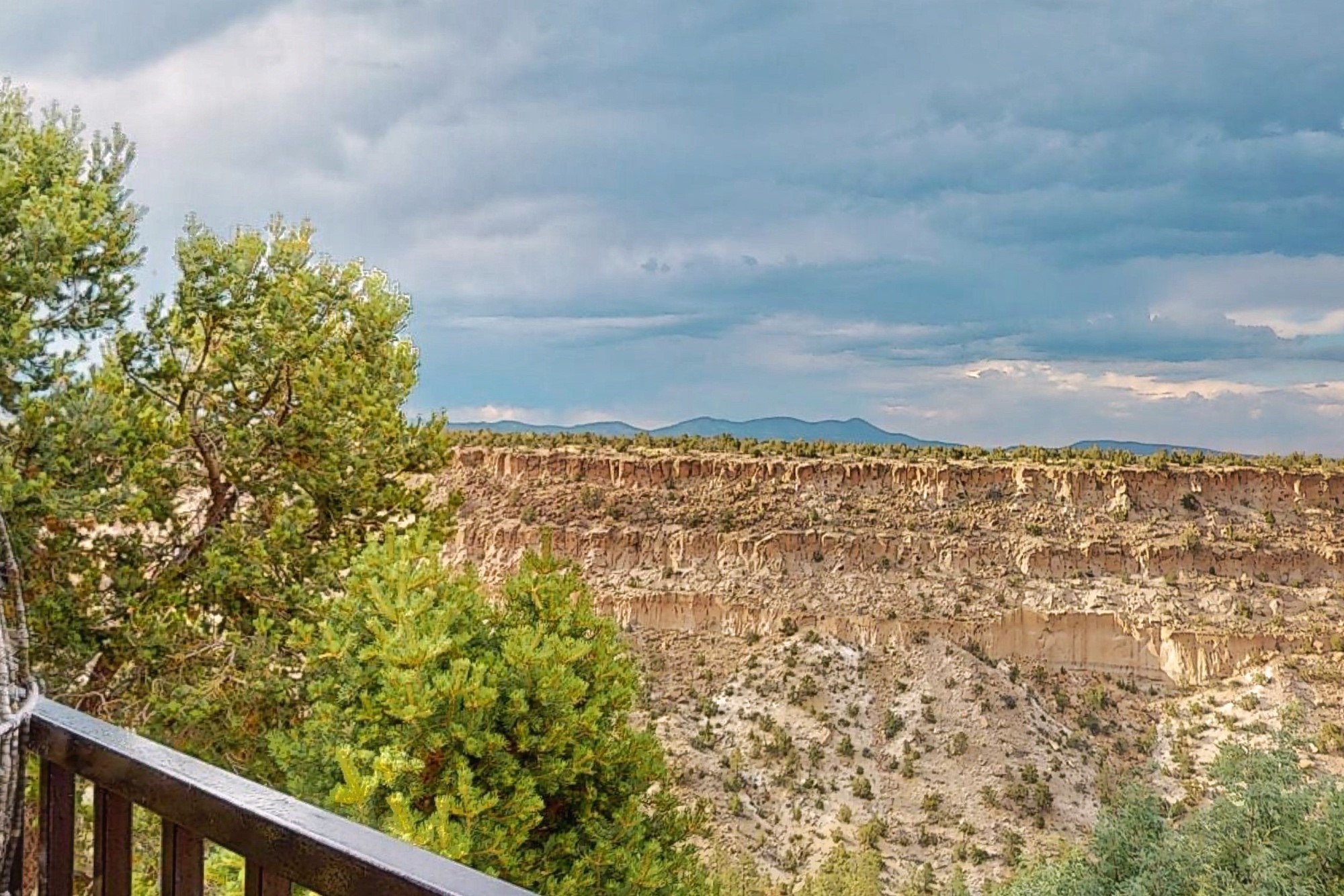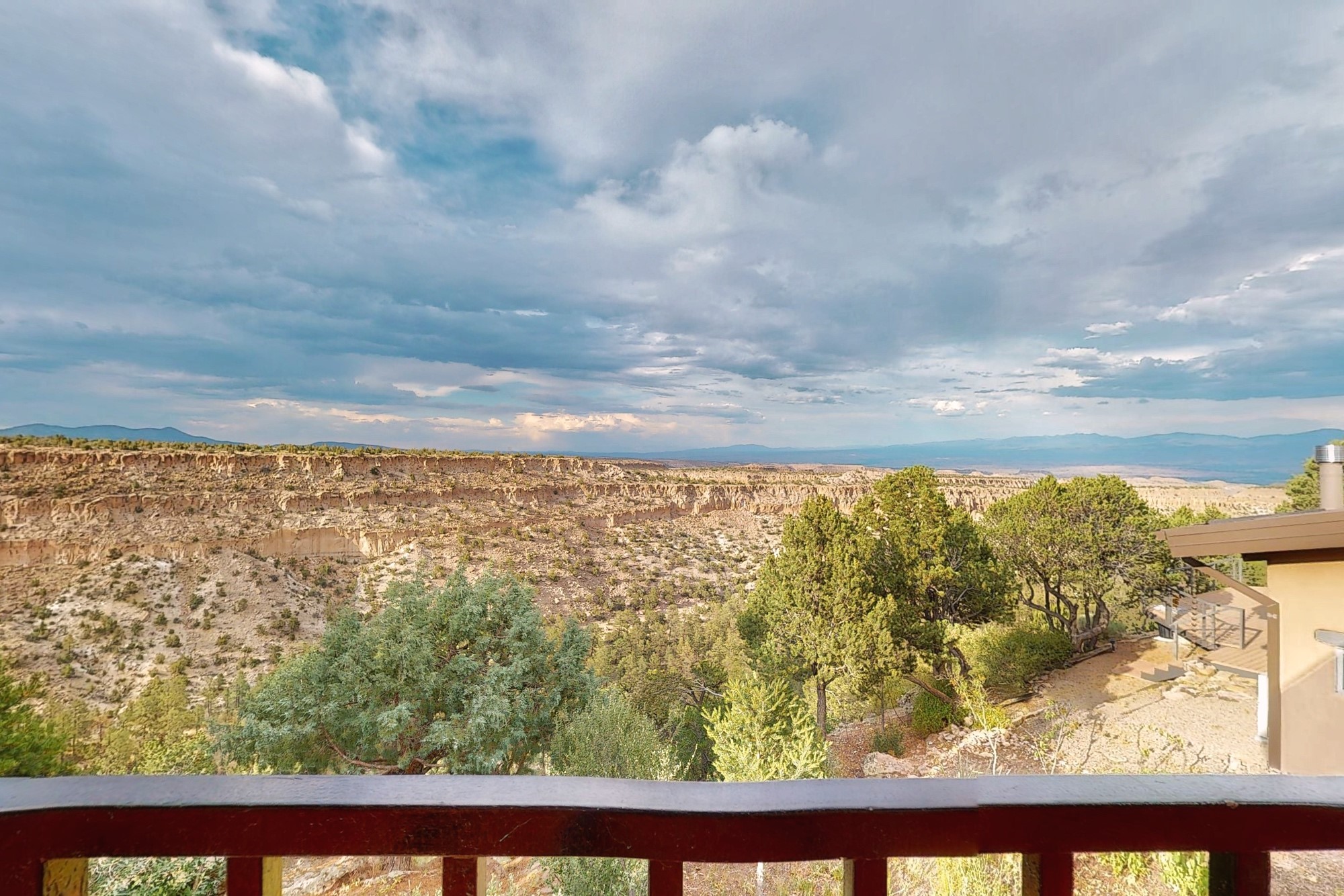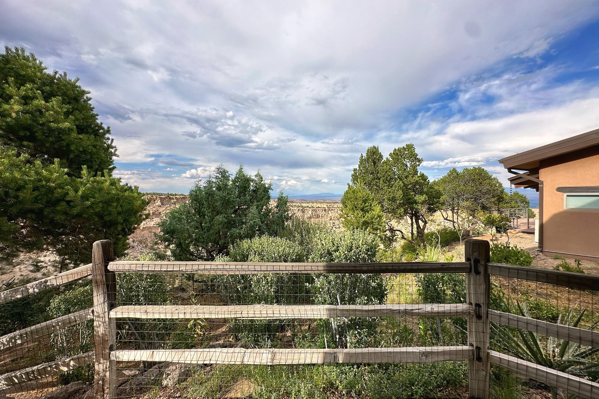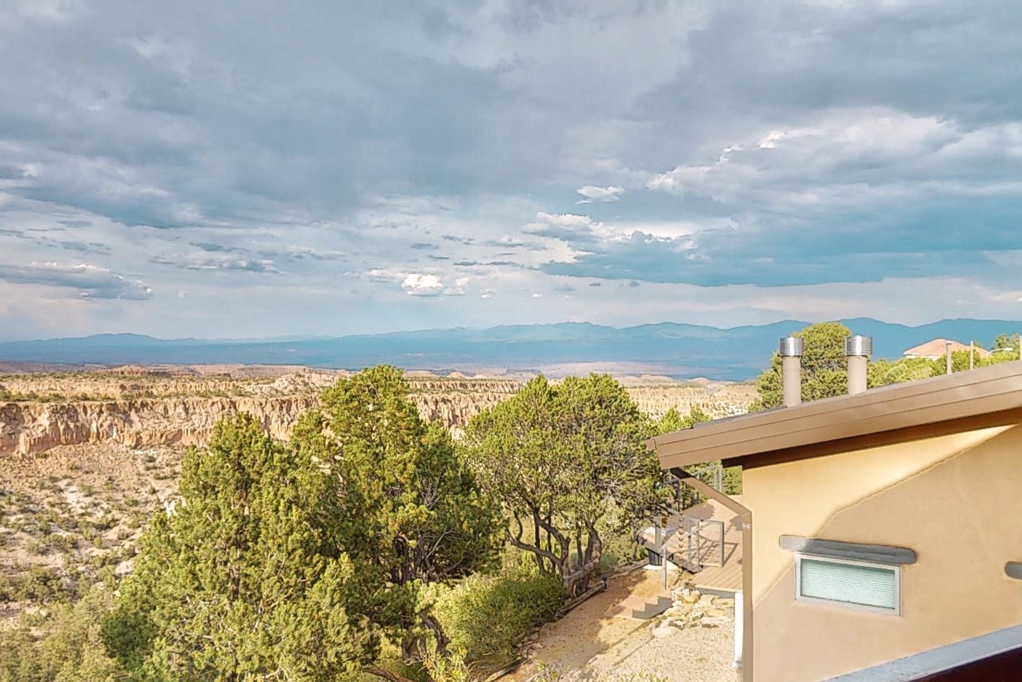 Welcome to your dream home! This gorgeous, custom-built gem is now available in the highly desirable neighborhood you've always dreamed of. With its phenomenal views and luxurious features, this property is a rare find. This contemporary-style property is designed by Northern New Mexico architect Herman Cardon. With views of canyon and mountain vistas including the Jemez Mountains, Deer Trap Mesa, the Sangre de Cristos, Black Mesa and the Truchas Peaks all visible from the main living areas. This home is also minutes from a trailhead allowing access to the county trail system. Step inside this 3-bedroom, 2-bathroom haven and be amazed by the thoughtful design and attention to detail. Not only does it boast spacious bedrooms, but it also includes versatile bonus rooms that can be transformed into your personal office, a dedicated exercise room, or even a convenient storage space. There is updated flooring throughout much of the house, and the heating system (zoned) was installed in 2016. You can also stay cool in the summer with the multi-split air conditioning. The large and bright living area is the perfect space for relaxation and entertainment, with plenty of natural light flooding through the windows, providing a warm and inviting ambiance. Multiple doors allow access to the expansive deck and backyard patio.Storage won't be an issue in this home, as it comes equipped with numerous built-ins thoughtfully placed throughout, allowing you to keep your space clutter-free and organized.And there is more! This home offers ample garage space to accommodate all your vehicles and belongings. Don't miss this opportunity to own your dream home in this highly sought-after neighborhood, complete with phenomenal views and outstanding features.***OPEN HOUSE Sunday, August 13, 2023, 11:00am-1:00pm***