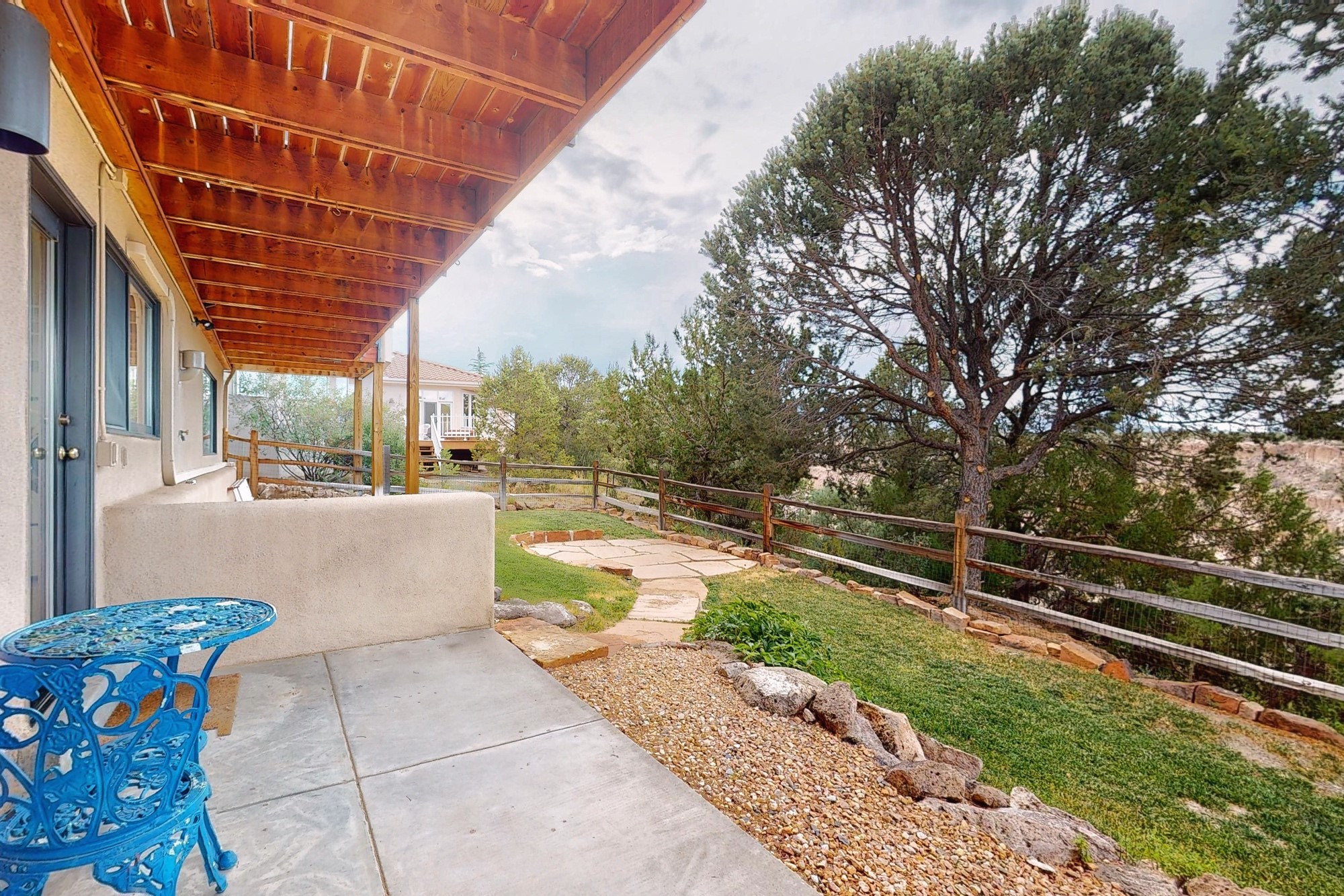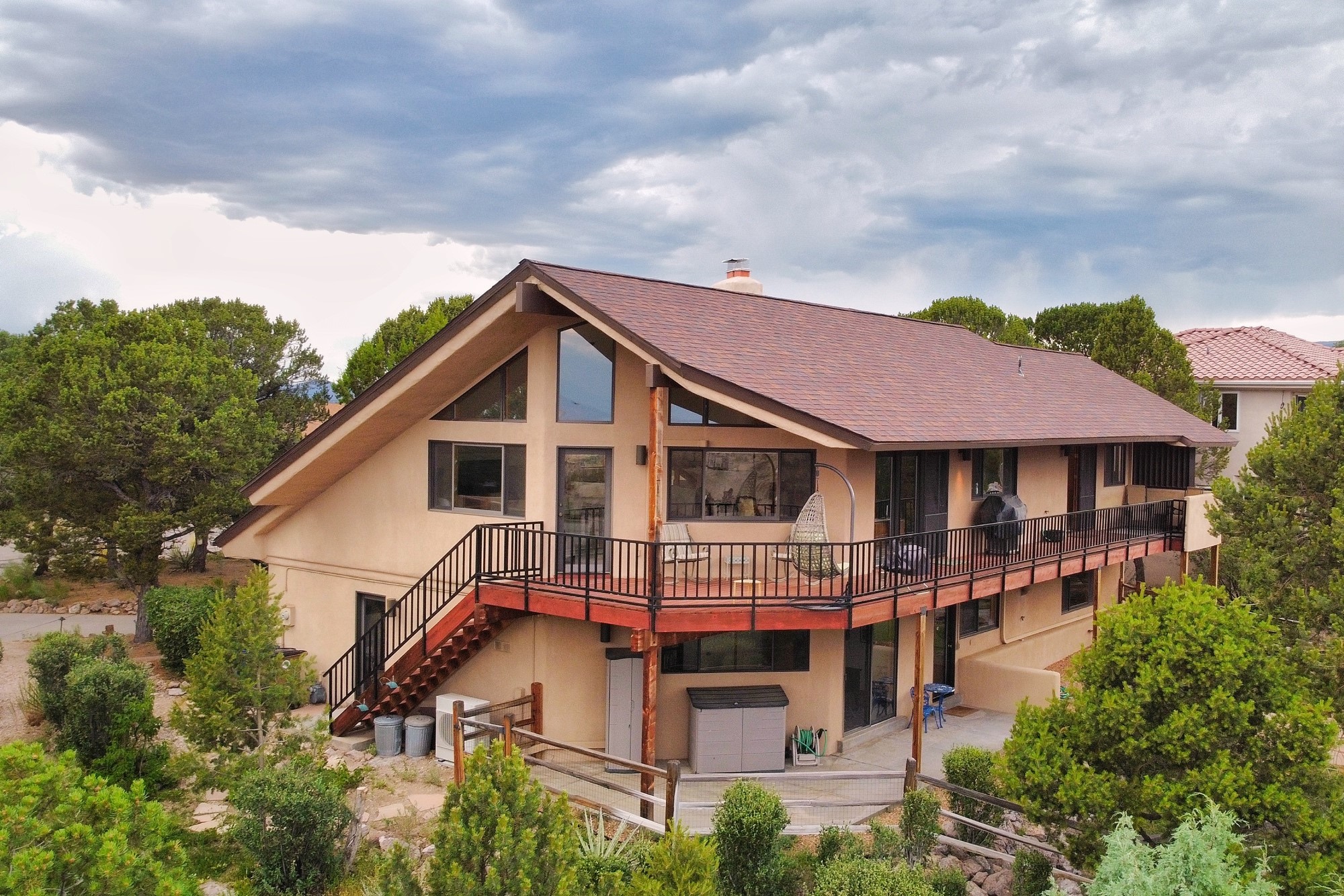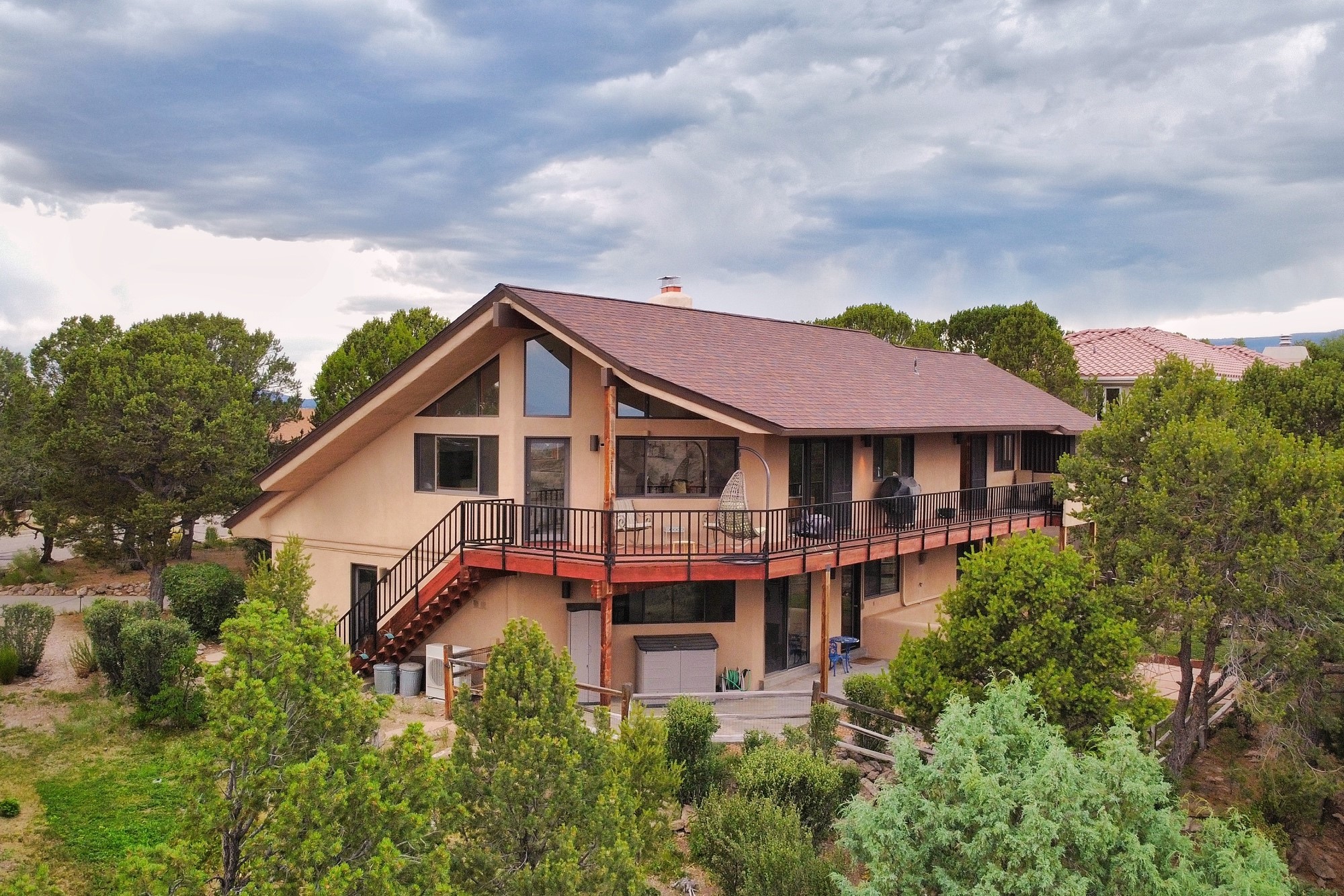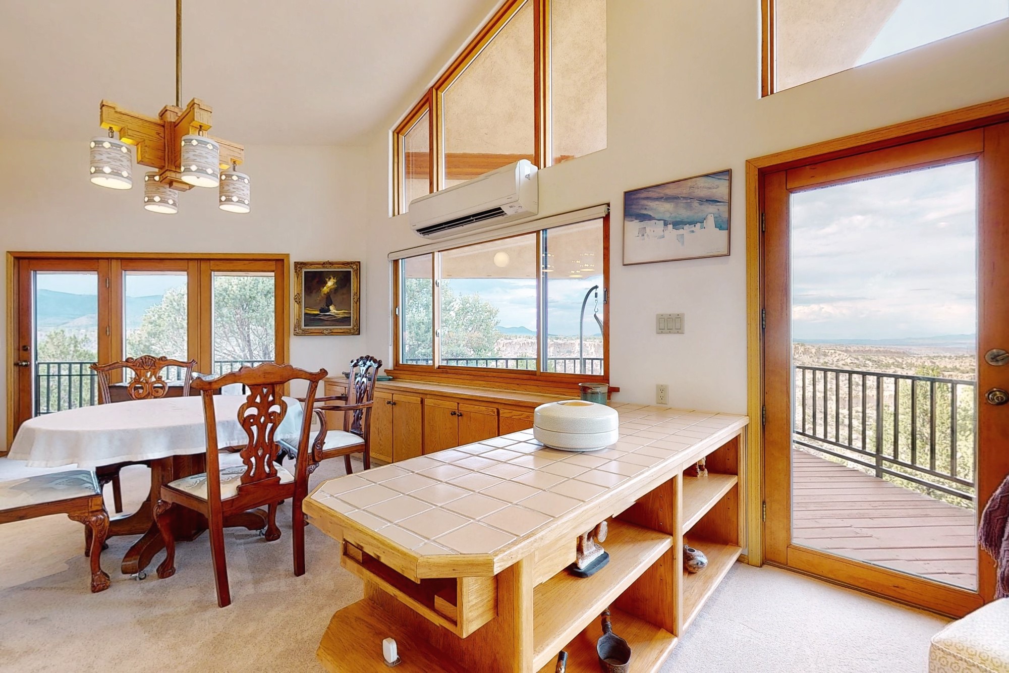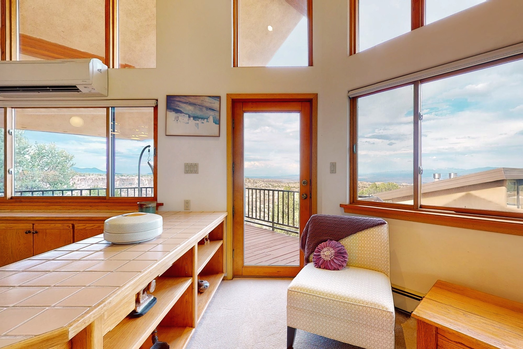 Welcome to your dream home! This gorgeous, custom-built gem is now available in the highly desirable neighborhood you've always dreamed of. With its phenomenal views and luxurious features, this property is a rare find. This contemporary-style property is designed by Northern New Mexico architect Herman Cardon. With views of canyon and mountain vistas including the Jemez Mountains, Deer Trap Mesa, the Sangre de Cristos, Black Mesa and the Truchas Peaks all visible from the main living areas. This home is also minutes from a trailhead allowing access to the county trail system. Step inside this 3-bedroom, 2-bathroom haven and be amazed by the thoughtful design and attention to detail. Not only does it boast spacious bedrooms, but it also includes versatile bonus rooms that can be transformed into your personal office, a dedicated exercise room, or even a convenient storage space. There is updated flooring throughout much of the house, and the heating system (zoned) was installed in 2016. You can also stay cool in the summer with the multi-split air conditioning. The large and bright living area is the perfect space for relaxation and entertainment, with plenty of natural light flooding through the windows, providing a warm and inviting ambiance. Multiple doors allow access to the expansive deck and backyard patio.Storage won't be an issue in this home, as it comes equipped with numerous built-ins thoughtfully placed throughout, allowing you to keep your space clutter-free and organized.And there is more! This home offers ample garage space to accommodate all your vehicles and belongings. Don't miss this opportunity to own your dream home in this highly sought-after neighborhood, complete with phenomenal views and outstanding features.***OPEN HOUSE Sunday, August 13, 2023, 11:00am-1:00pm***