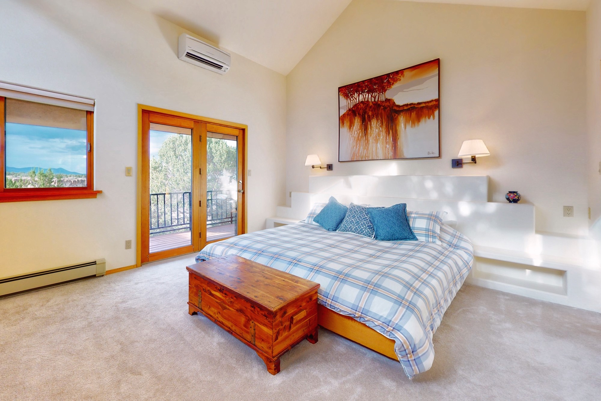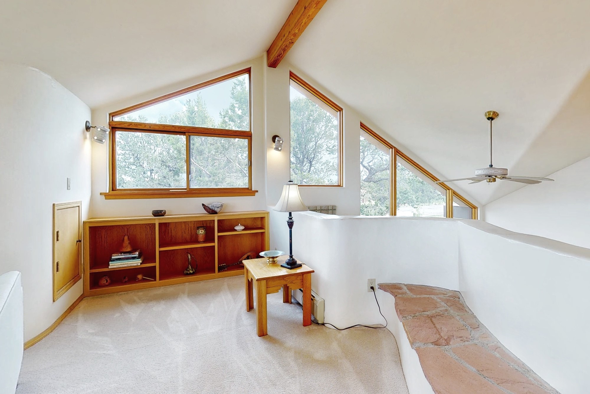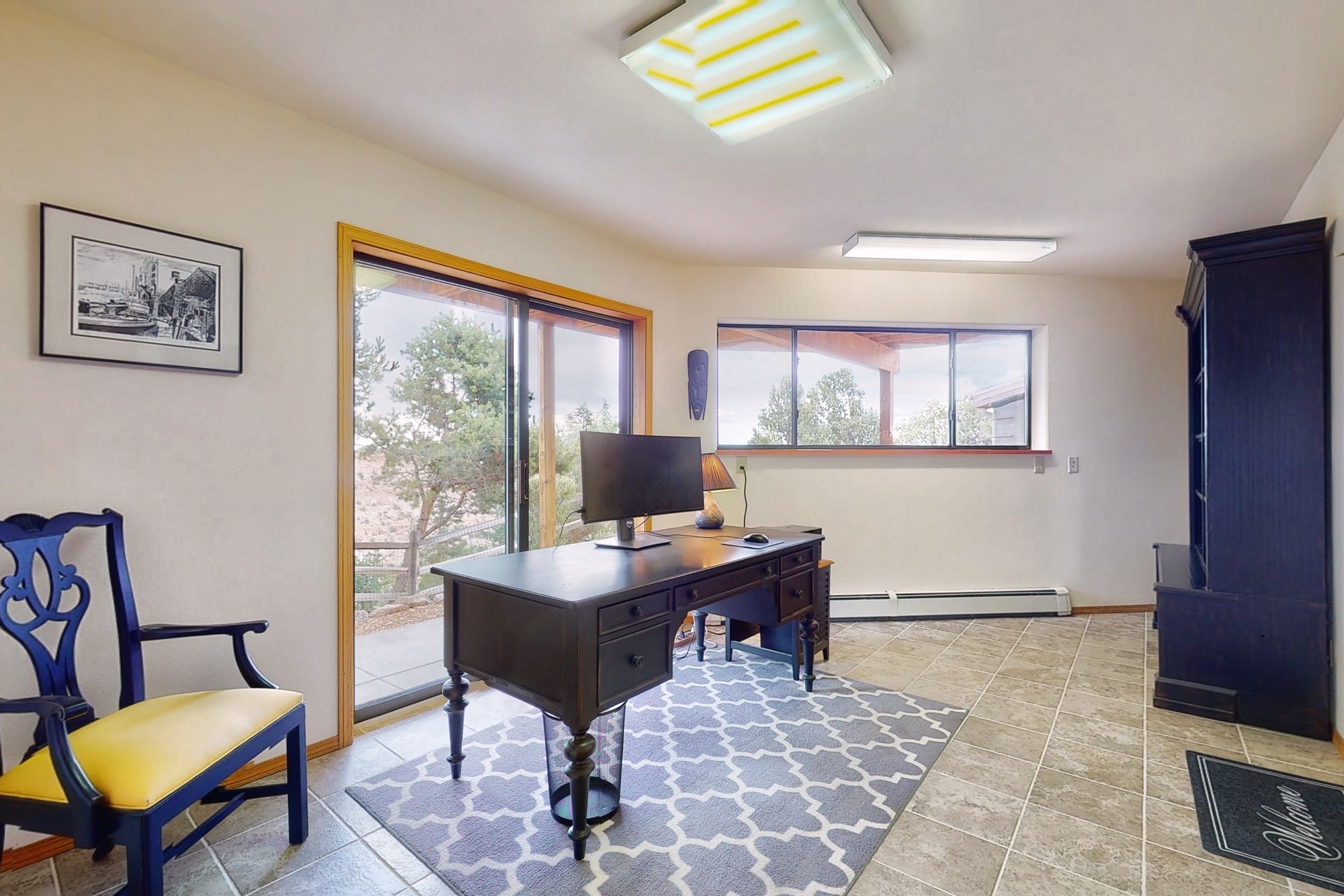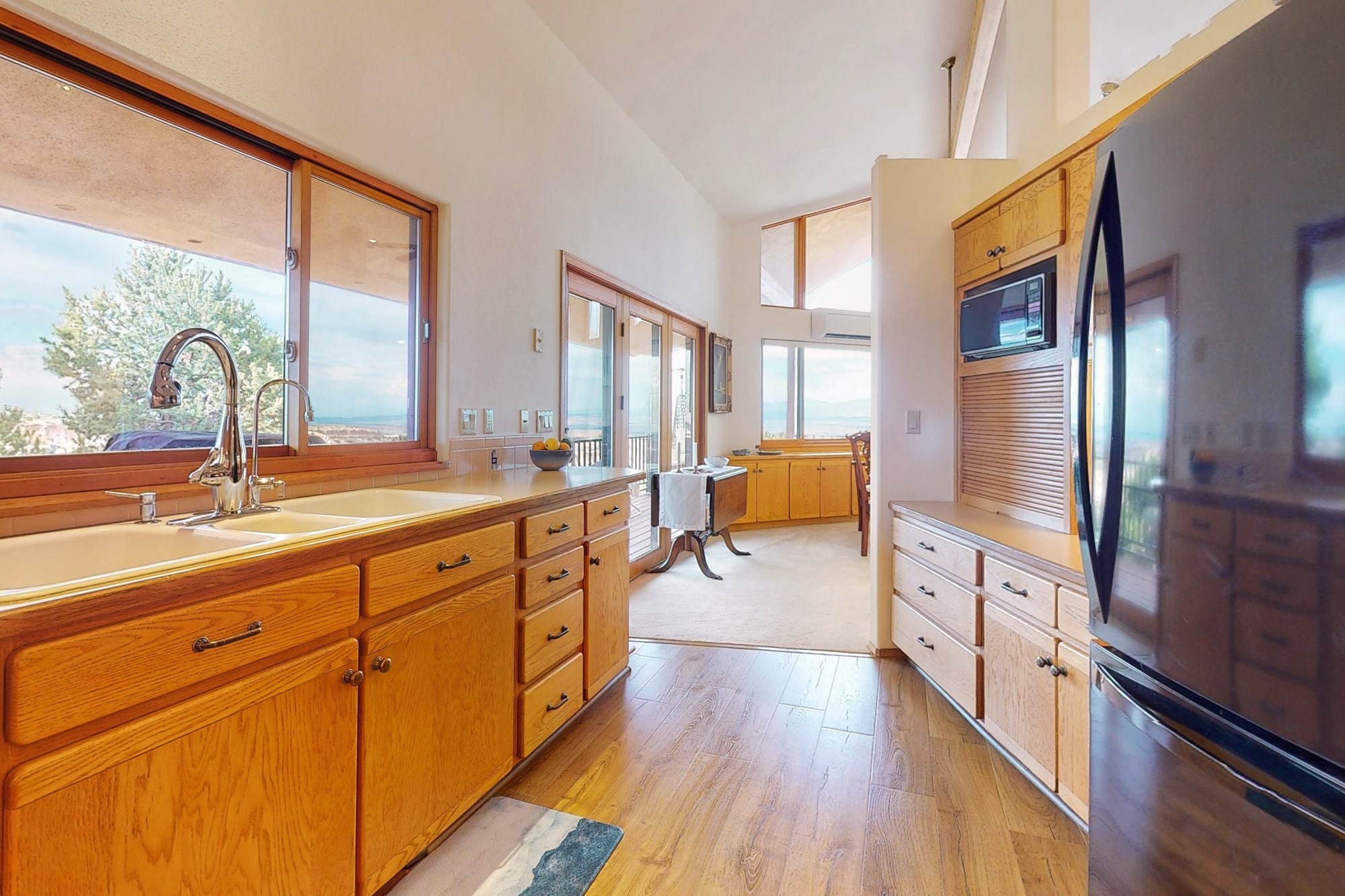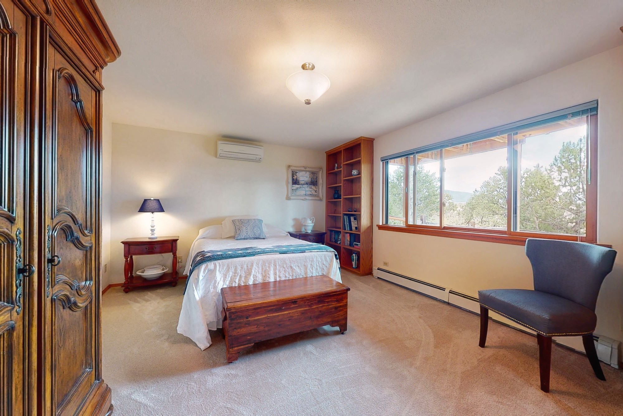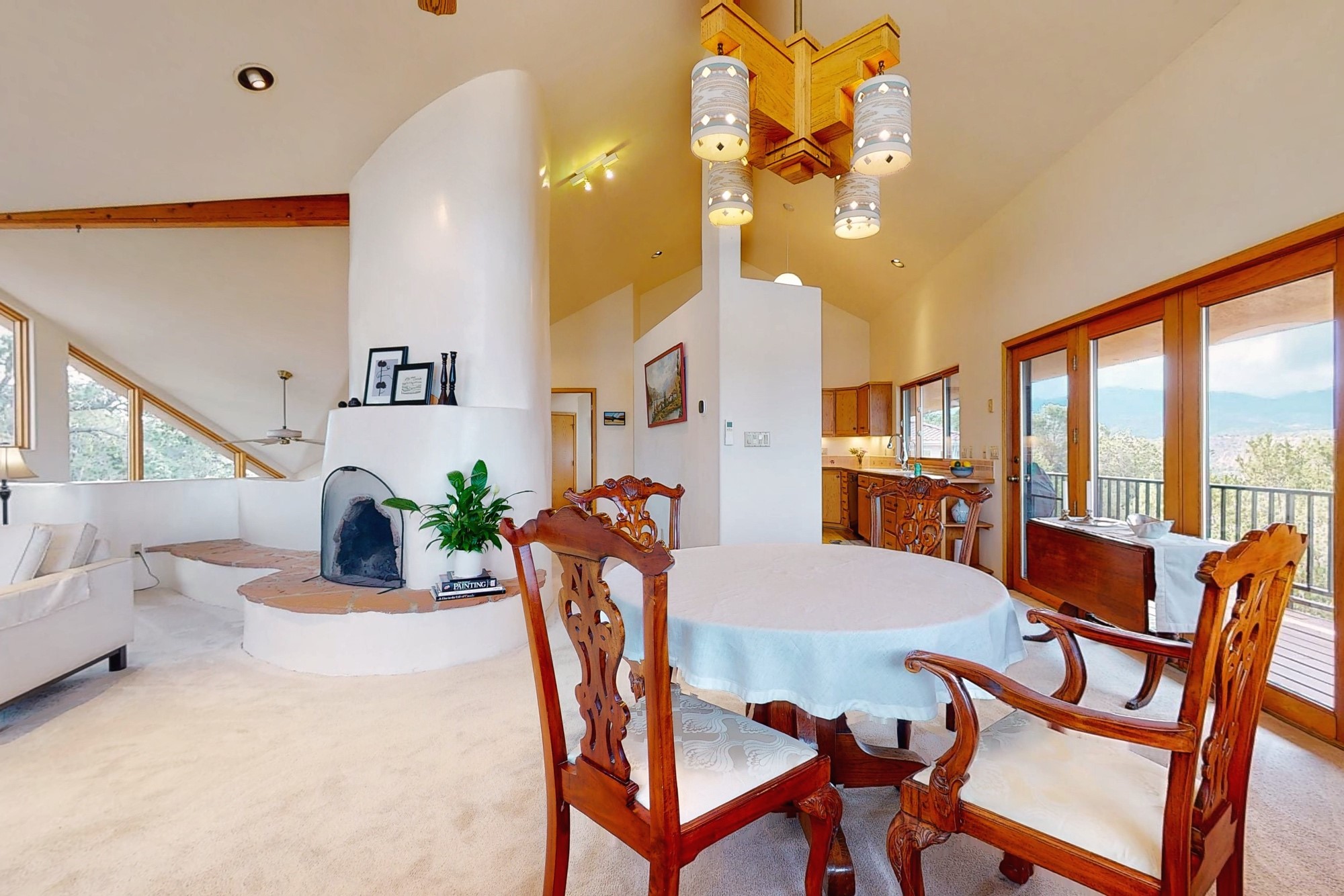 Welcome to your dream home! This gorgeous, custom-built gem is now available in the highly desirable neighborhood you've always dreamed of. With its phenomenal views and luxurious features, this property is a rare find. This contemporary-style property is designed by Northern New Mexico architect Herman Cardon. With views of canyon and mountain vistas including the Jemez Mountains, Deer Trap Mesa, the Sangre de Cristos, Black Mesa and the Truchas Peaks all visible from the main living areas. This home is also minutes from a trailhead allowing access to the county trail system. Step inside this 3-bedroom, 2-bathroom haven and be amazed by the thoughtful design and attention to detail. Not only does it boast spacious bedrooms, but it also includes versatile bonus rooms that can be transformed into your personal office, a dedicated exercise room, or even a convenient storage space. There is updated flooring throughout much of the house, and the heating system (zoned) was installed in 2016. You can also stay cool in the summer with the multi-split air conditioning. The large and bright living area is the perfect space for relaxation and entertainment, with plenty of natural light flooding through the windows, providing a warm and inviting ambiance. Multiple doors allow access to the expansive deck and backyard patio.Storage won't be an issue in this home, as it comes equipped with numerous built-ins thoughtfully placed throughout, allowing you to keep your space clutter-free and organized.And there is more! This home offers ample garage space to accommodate all your vehicles and belongings. Don't miss this opportunity to own your dream home in this highly sought-after neighborhood, complete with phenomenal views and outstanding features.***OPEN HOUSE Sunday, August 13, 2023, 11:00am-1:00pm***