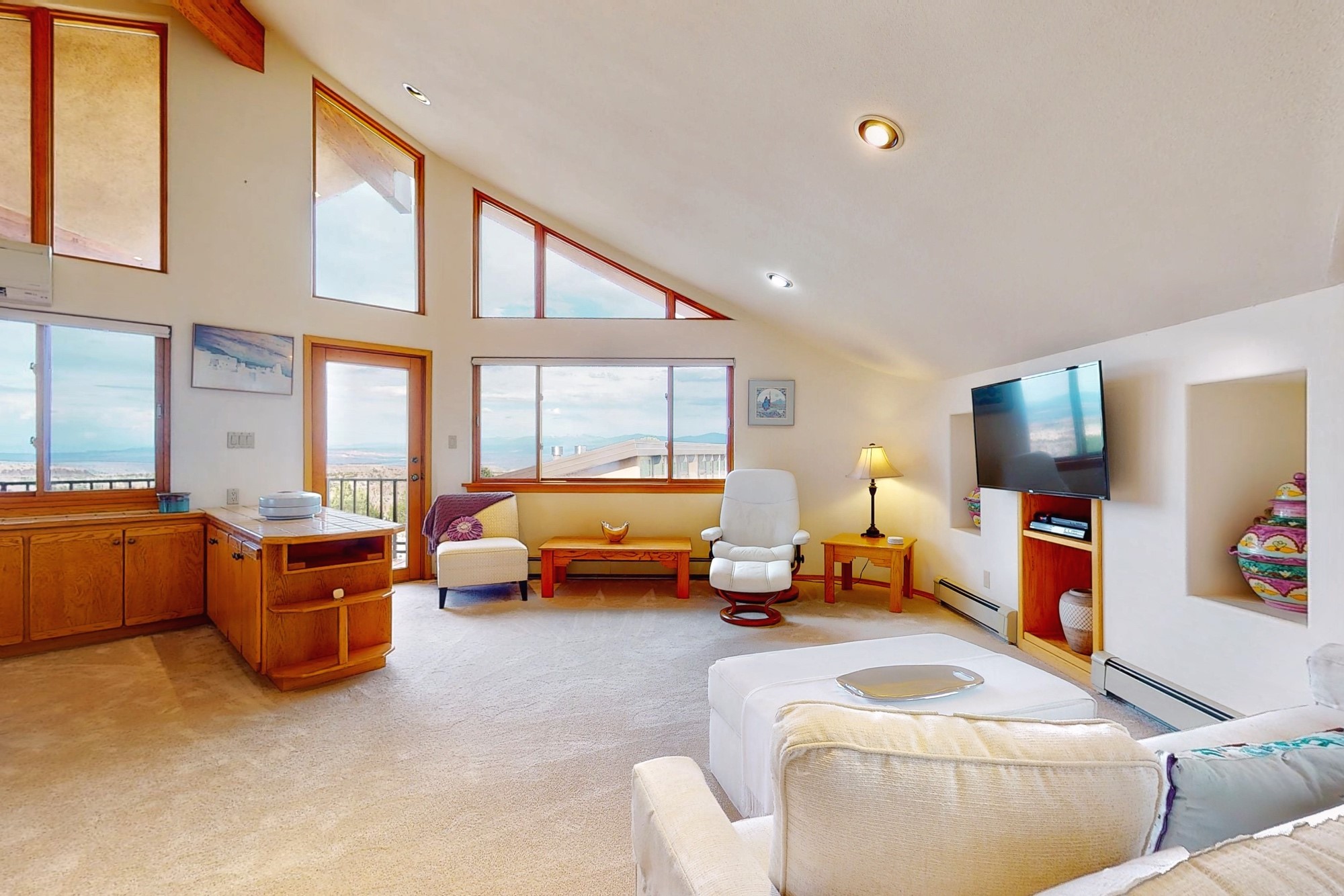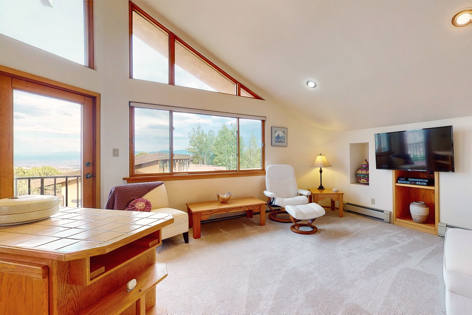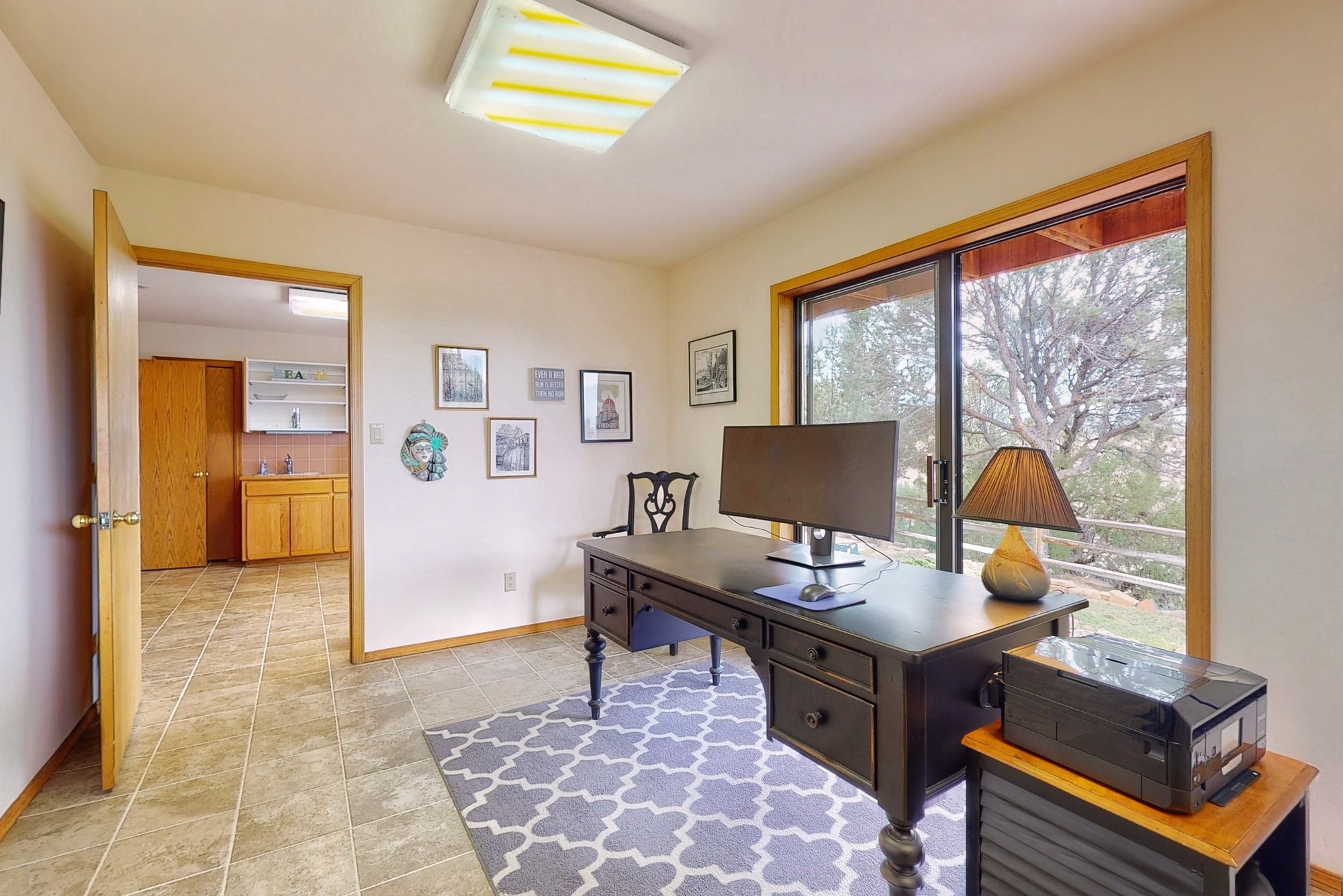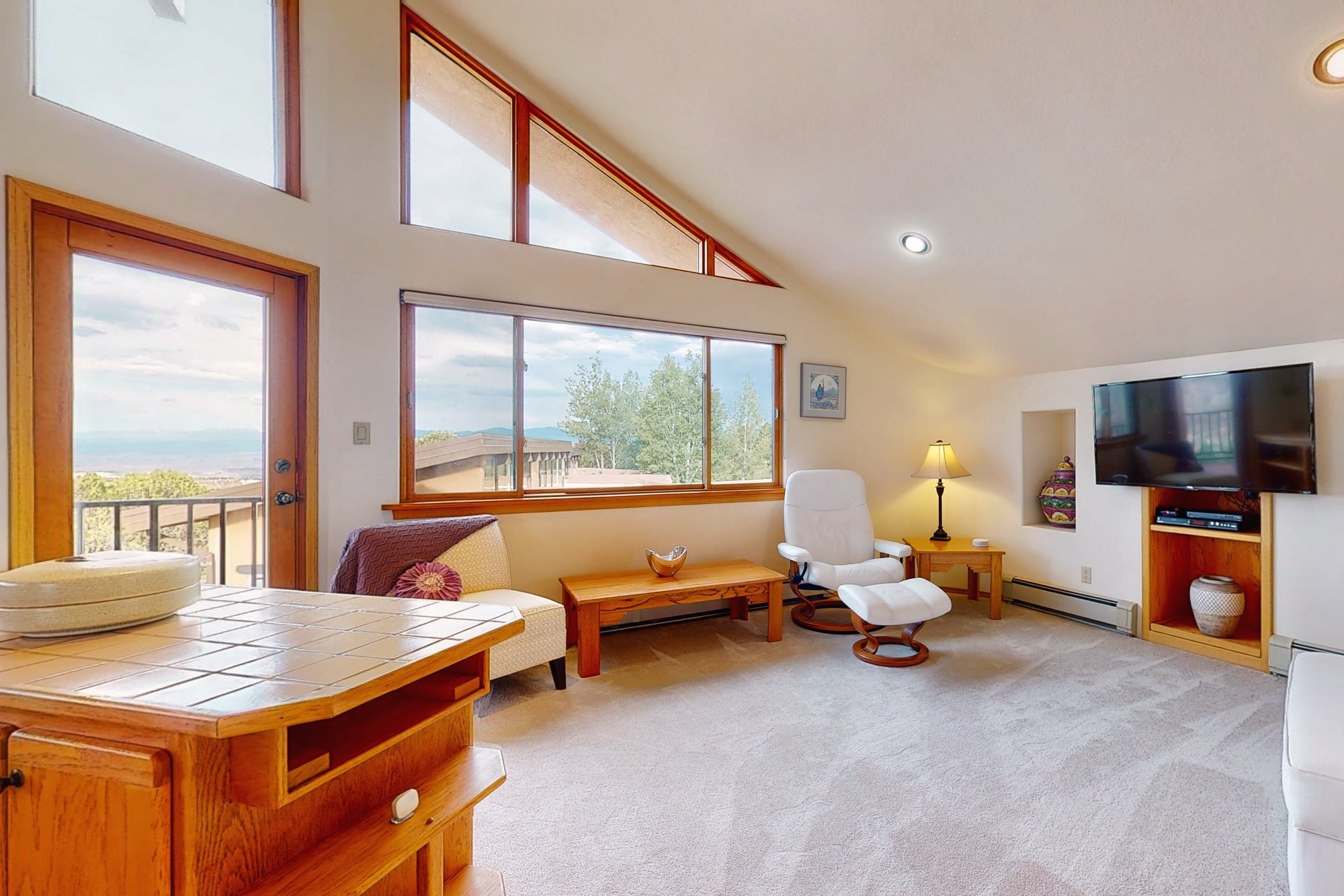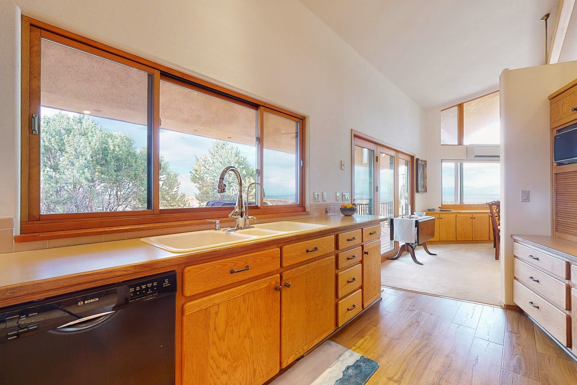 Welcome to your dream home! This gorgeous, custom-built gem is now available in the highly desirable neighborhood you've always dreamed of. With its phenomenal views and luxurious features, this property is a rare find. This contemporary-style property is designed by Northern New Mexico architect Herman Cardon. With views of canyon and mountain vistas including the Jemez Mountains, Deer Trap Mesa, the Sangre de Cristos, Black Mesa and the Truchas Peaks all visible from the main living areas. This home is also minutes from a trailhead allowing access to the county trail system. Step inside this 3-bedroom, 2-bathroom haven and be amazed by the thoughtful design and attention to detail. Not only does it boast spacious bedrooms, but it also includes versatile bonus rooms that can be transformed into your personal office, a dedicated exercise room, or even a convenient storage space. There is updated flooring throughout much of the house, and the heating system (zoned) was installed in 2016. You can also stay cool in the summer with the multi-split air conditioning. The large and bright living area is the perfect space for relaxation and entertainment, with plenty of natural light flooding through the windows, providing a warm and inviting ambiance. Multiple doors allow access to the expansive deck and backyard patio.Storage won't be an issue in this home, as it comes equipped with numerous built-ins thoughtfully placed throughout, allowing you to keep your space clutter-free and organized.And there is more! This home offers ample garage space to accommodate all your vehicles and belongings. Don't miss this opportunity to own your dream home in this highly sought-after neighborhood, complete with phenomenal views and outstanding features.***OPEN HOUSE Sunday, August 13, 2023, 11:00am-1:00pm***