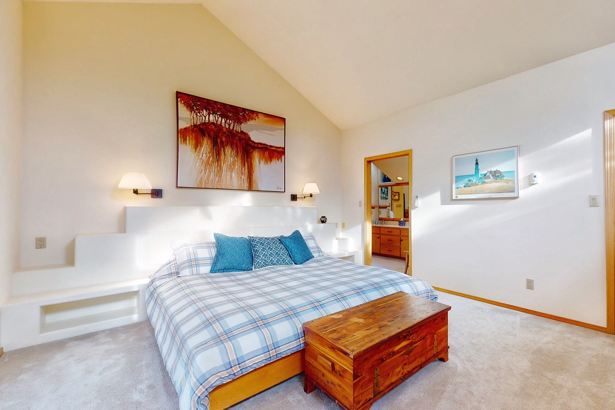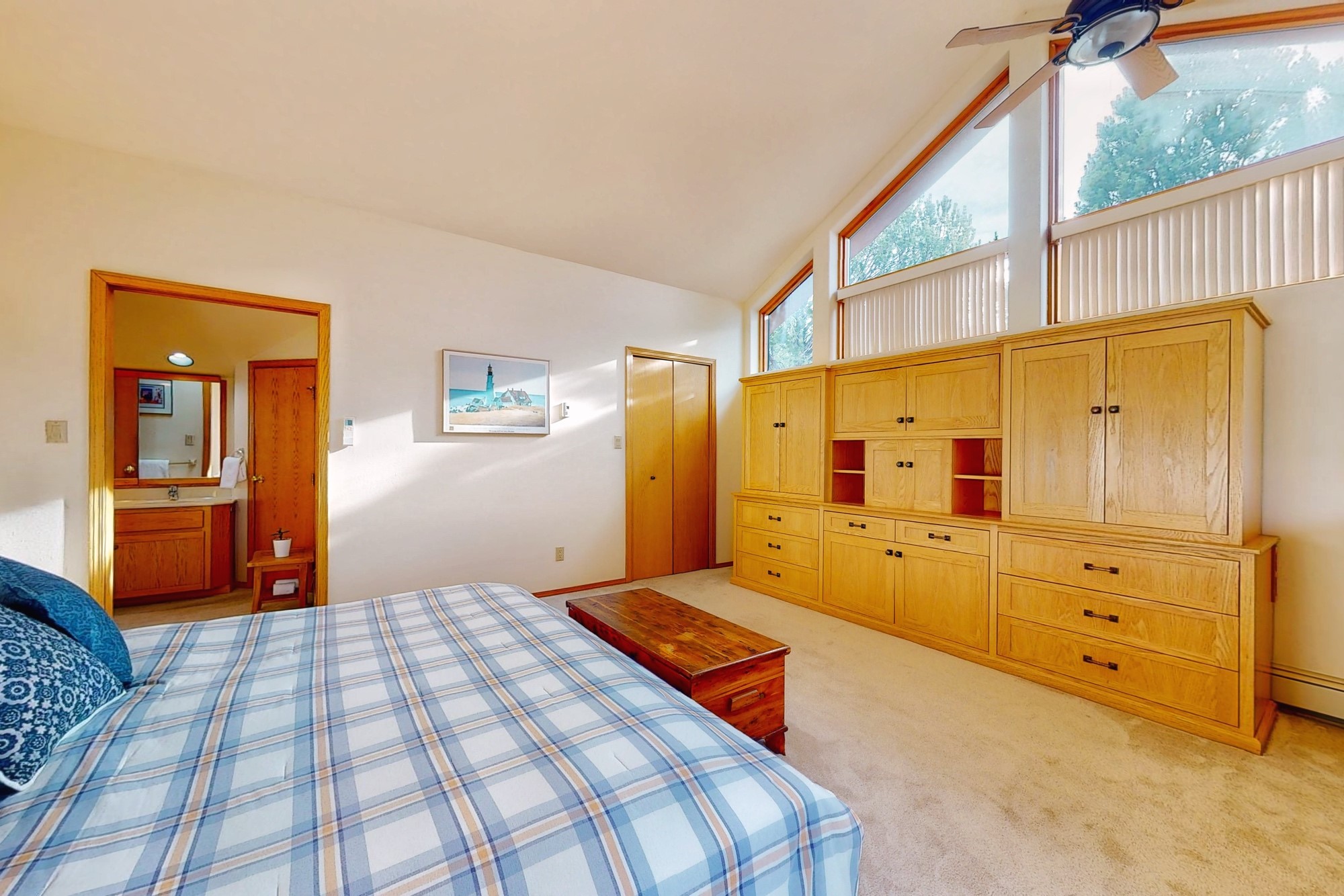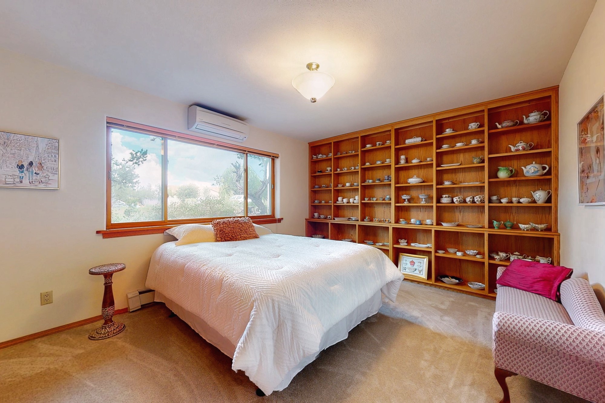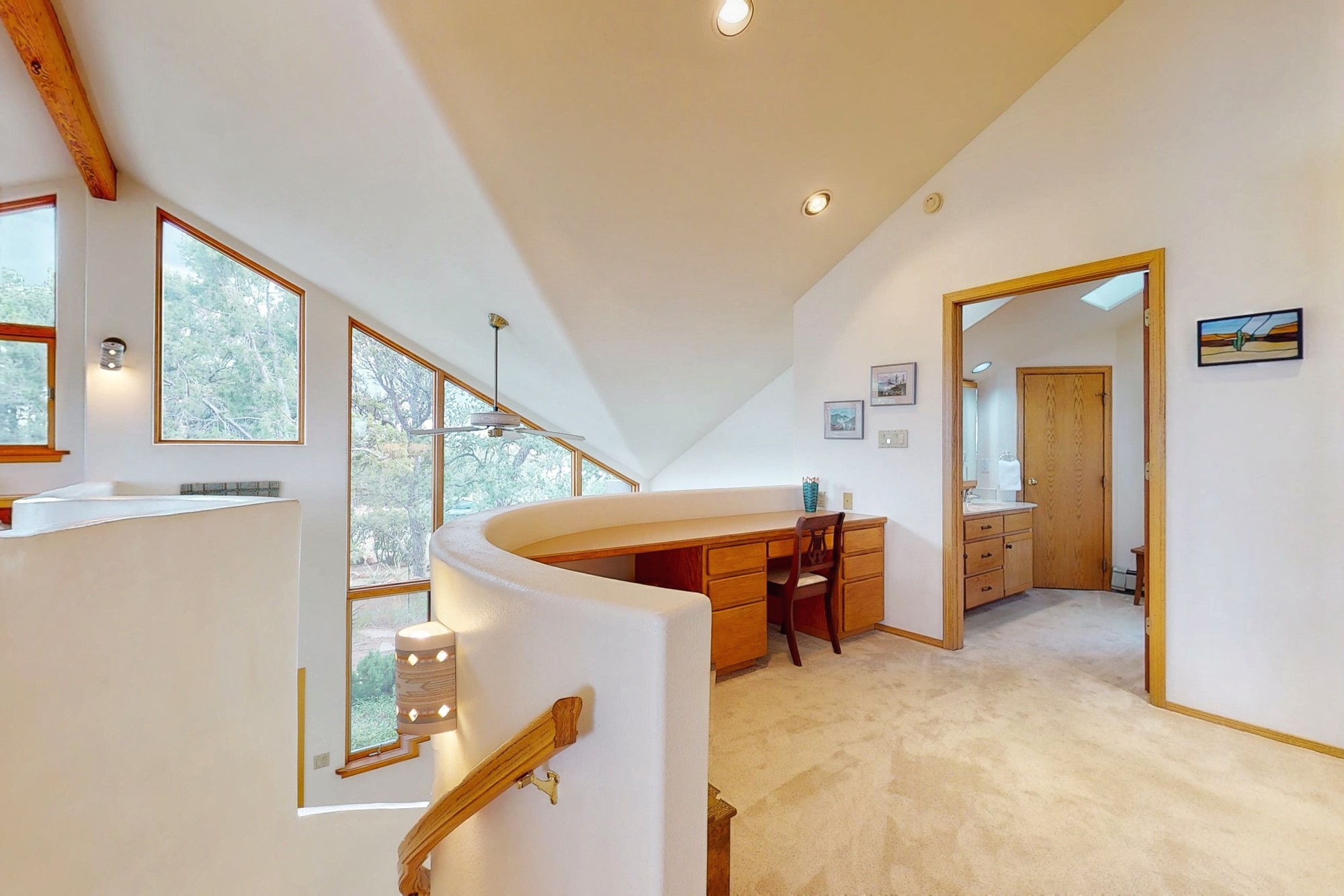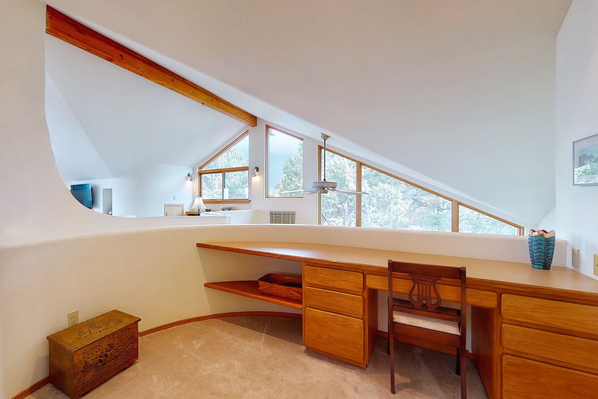 Welcome to your dream home! This gorgeous, custom-built gem is now available in the highly desirable neighborhood you've always dreamed of. With its phenomenal views and luxurious features, this property is a rare find. This contemporary-style property is designed by Northern New Mexico architect Herman Cardon. With views of canyon and mountain vistas including the Jemez Mountains, Deer Trap Mesa, the Sangre de Cristos, Black Mesa and the Truchas Peaks all visible from the main living areas. This home is also minutes from a trailhead allowing access to the county trail system. Step inside this 3-bedroom, 2-bathroom haven and be amazed by the thoughtful design and attention to detail. Not only does it boast spacious bedrooms, but it also includes versatile bonus rooms that can be transformed into your personal office, a dedicated exercise room, or even a convenient storage space. There is updated flooring throughout much of the house, and the heating system (zoned) was installed in 2016. You can also stay cool in the summer with the multi-split air conditioning. The large and bright living area is the perfect space for relaxation and entertainment, with plenty of natural light flooding through the windows, providing a warm and inviting ambiance. Multiple doors allow access to the expansive deck and backyard patio.Storage won't be an issue in this home, as it comes equipped with numerous built-ins thoughtfully placed throughout, allowing you to keep your space clutter-free and organized.And there is more! This home offers ample garage space to accommodate all your vehicles and belongings. Don't miss this opportunity to own your dream home in this highly sought-after neighborhood, complete with phenomenal views and outstanding features.***OPEN HOUSE Sunday, August 13, 2023, 11:00am-1:00pm***
