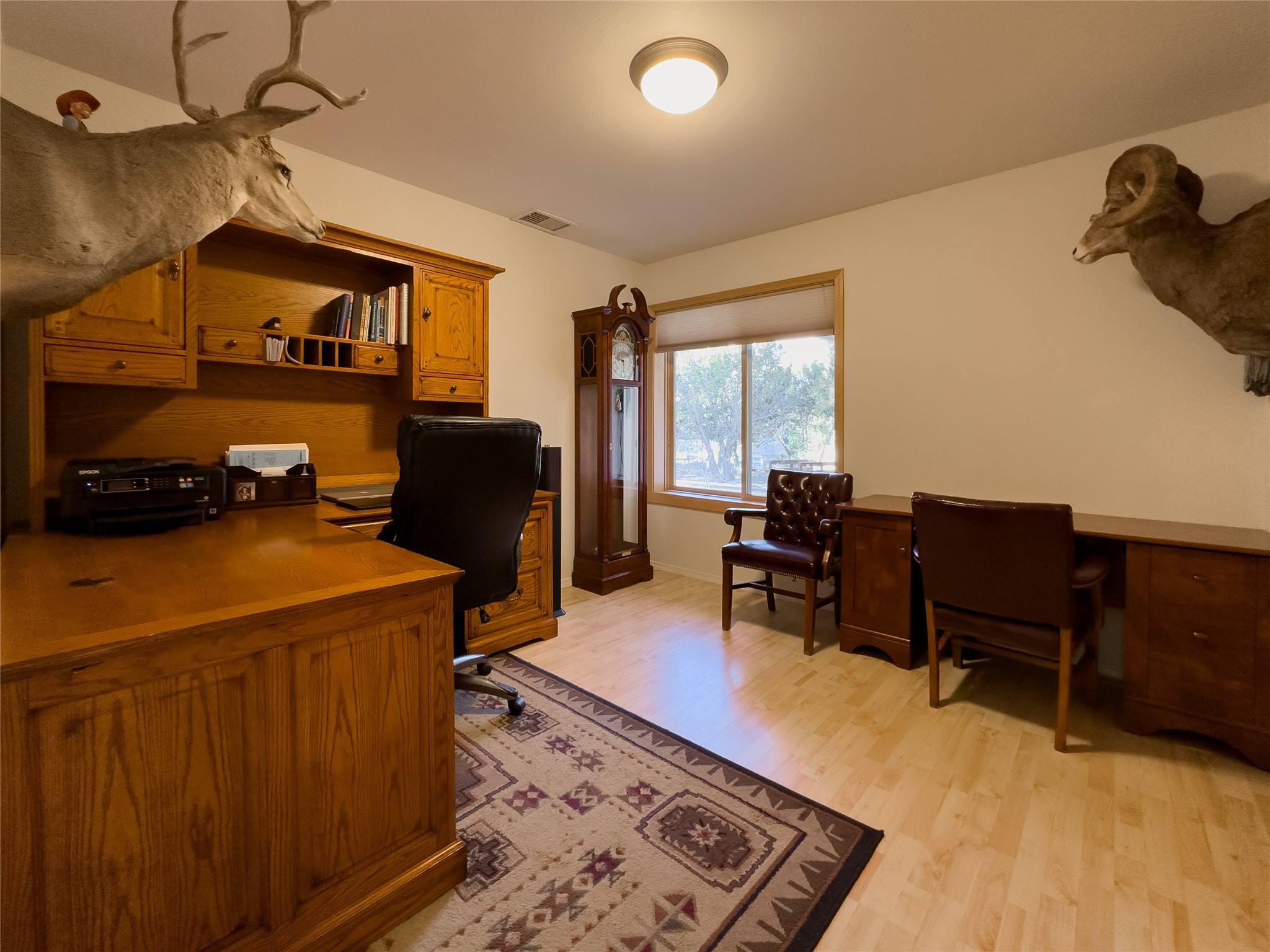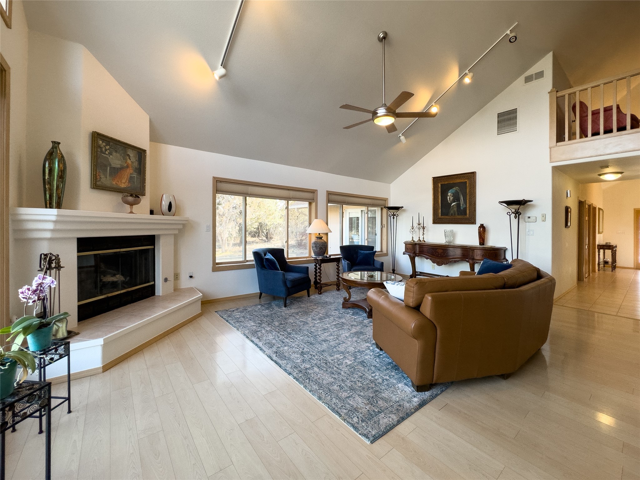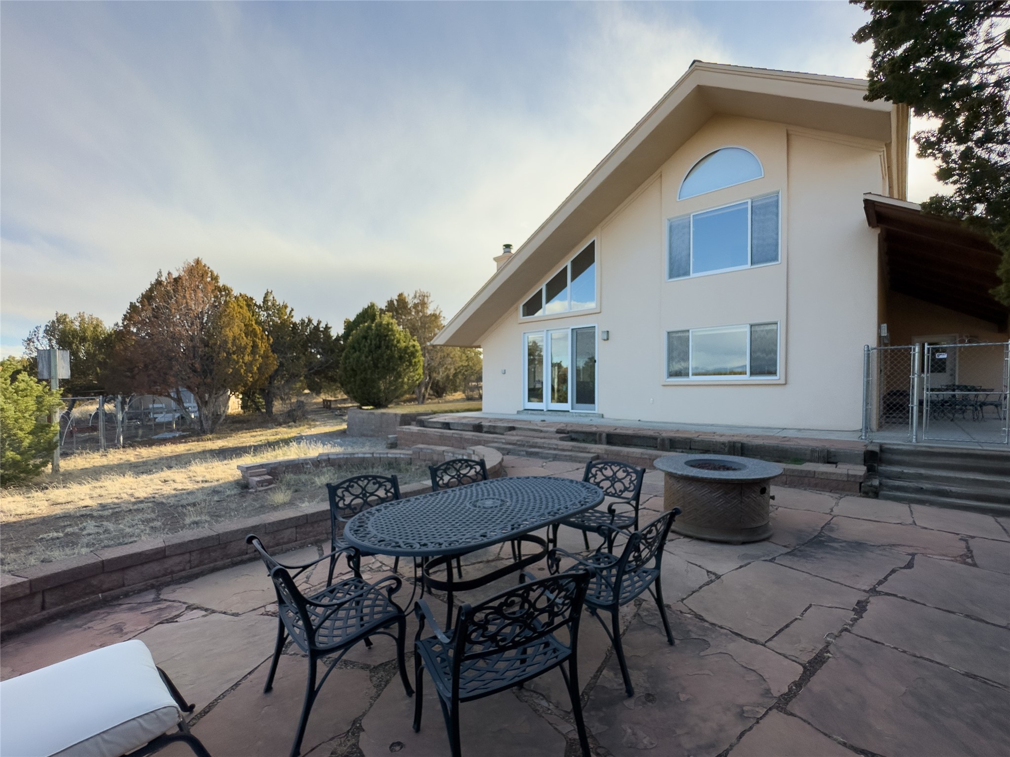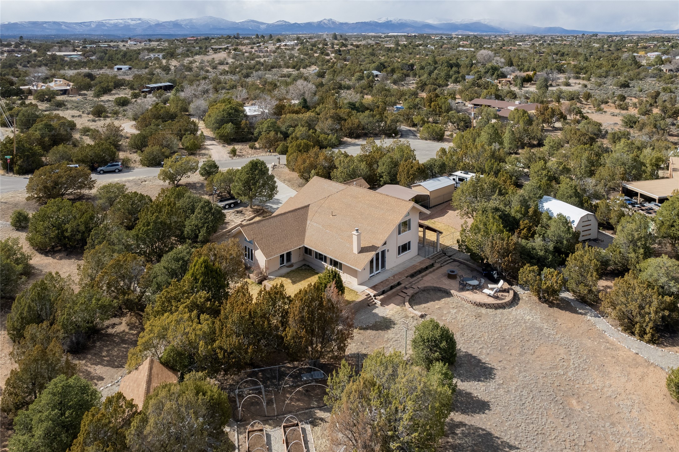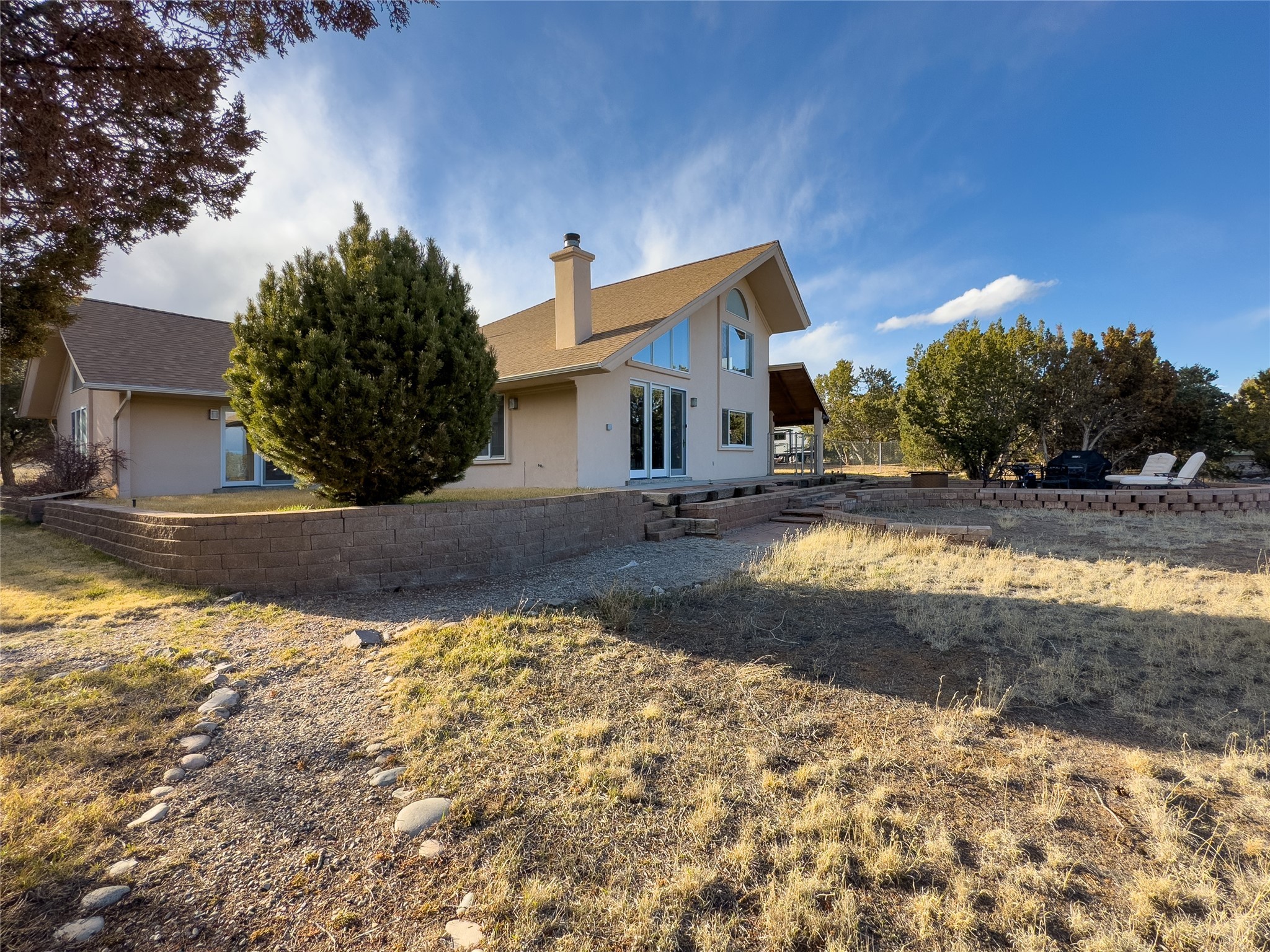 Welcome to 242 Rio Bravo a beautiful home that sits on nearly 3 acres. This is an Elwood Cardin designed home that is perfectly positioned for passive solar with large picture windows, soaring ceilings, and modern finishes. This beautiful home features an open floor plan that has an ease for entertaining. The family room is open to the large dining area that is open to the well designed kitchen which includes a large expansive eat at bar. Stunning Granite countertops, Maple cabinets, Granite Blanco double sink and a huge butlers pantry. This is a great prep kitchen with a sink, tons of counter and cabinet space with access to the 3 car garage. Main floor owners suite, additional office or 4th bedroom lends to easy living. Upstairs has two very large bedrooms with on-suite bathrooms, large walk in closets and a sitting area in between.A floored attic space provides tons of storage, central air conditioning throughout the house and ample parking includes, a 3 car garage, RV parking, covered carport and circular drive. There are 2 Morgan sheds, Both have power and one that is insulated with power, additional storage shed and garden shed with garden beds and a drip system. There is a fenced area with grass and sprinklers make a great area for young children or pets. The acreage also includes a walking path and the most beautiful views of the Sangre De Cristo mountains makes a stunning sunrise and views in the afternoon. Too many beautiful features to list.