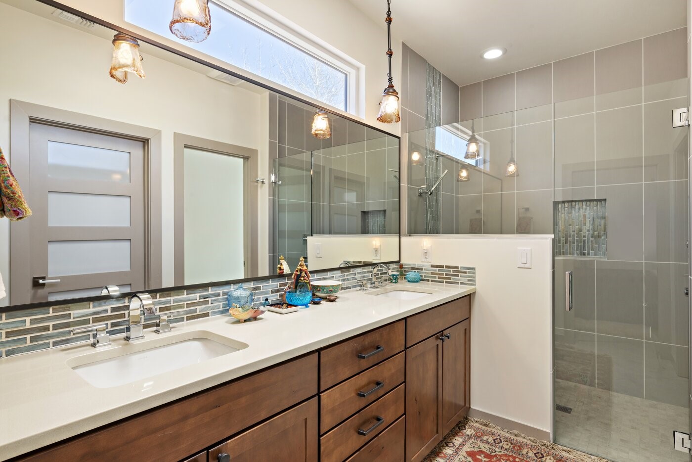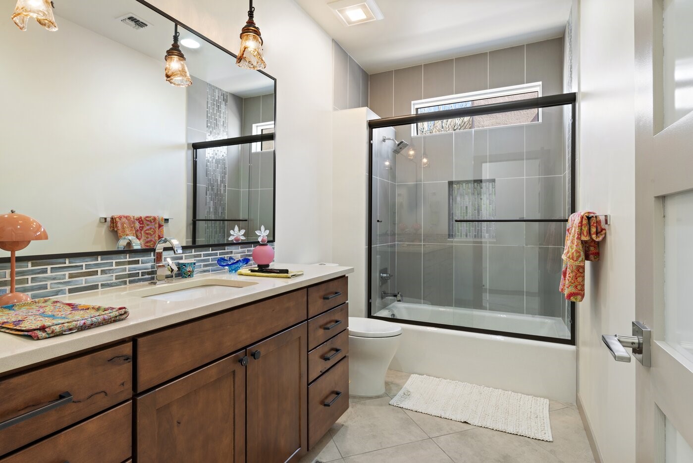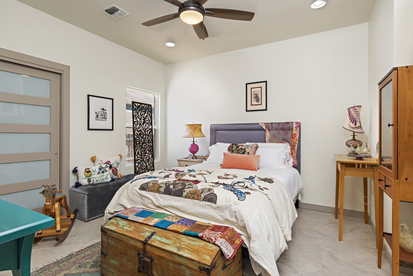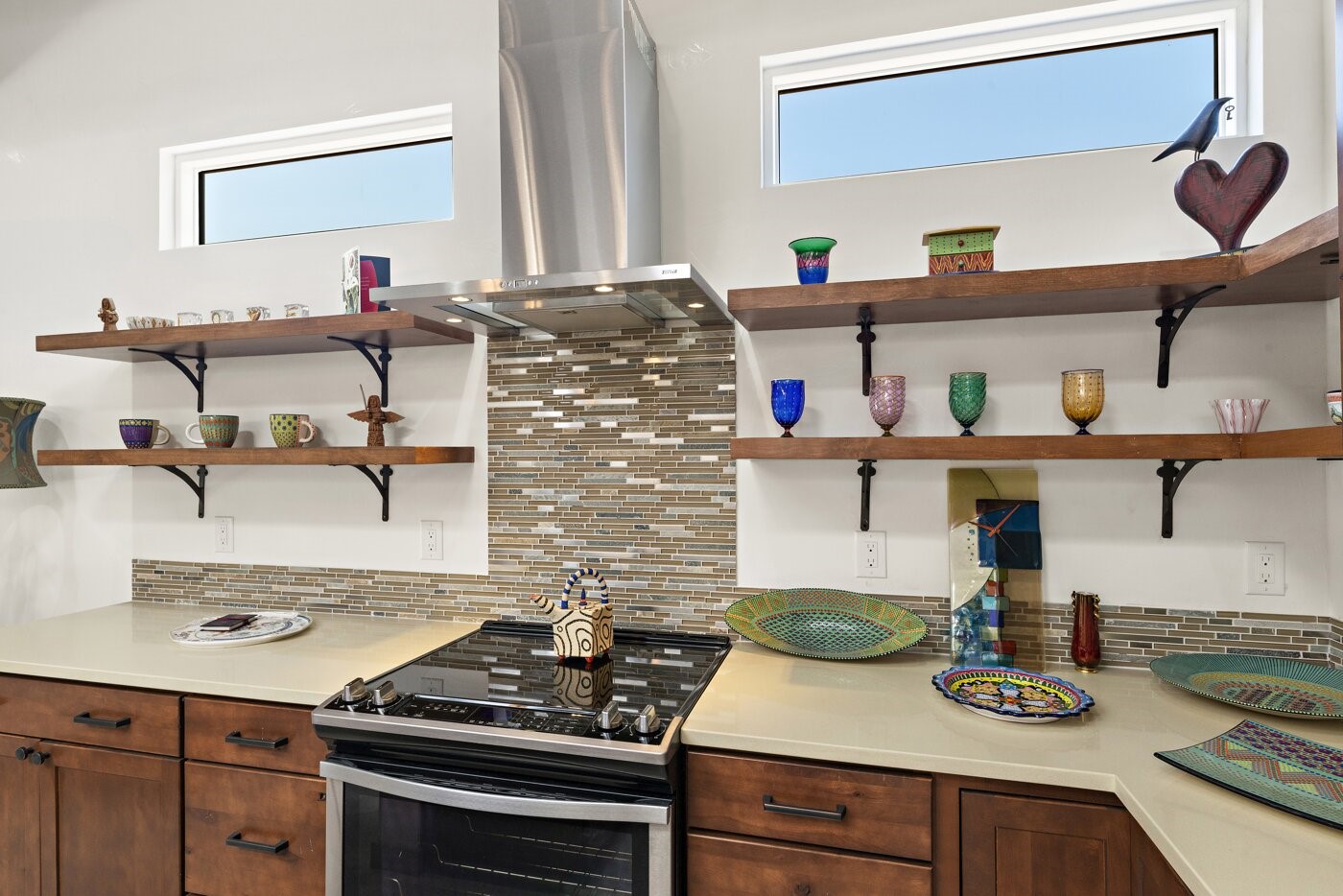 Beautiful open concept home that was rarely used since it's completion in 2018 and only minutes to downtown Santa Fe. Natural light is in abundance in this open concept home with multiple skylights and double glass doors leading to an inviting back courtyard. Multiple luxury features are an added bonus to this centrally located home. You are so close to many of Santa Fe's restaurants, fitness facilities, shopping, and only blocks from major hospital and medical facilities. Wonderful separation of the large main suite and the guestrooms for added privacy. A dual sided fireplace brings relaxing enjoyment inside the home and in the back courtyard.