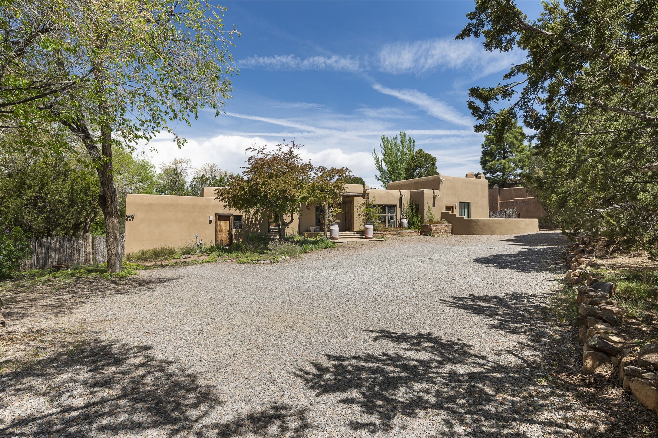 Just minutes away from the vibrant Santa Fe Plaza, this 3-bedroom, 3-bathroom home is nestled in a park-like setting on a sprawling .72-acre lot, this property offers the perfect blend of tranquility and convenience.As you enter, you'll be greeted by an open and flowing floor plan, seamlessly connecting the living room, den, and formal dining room--a true haven for entertaining guests. The two primary suites provide a luxurious retreat, while the additional rooms can be flexibly utilized as bedrooms, studios, or separate offices, catering to your unique needs. Revel in the charm of tile flooring, complemented by the elegance of some beam ceilings and the warmth of two Kiva fireplaces. A walled courtyard off the front primary suites adds a touch of serenity and seclusion to your living space.The home boasts a large backyard, perfect for outdoor activities and relaxation. Additionally, a long Portal enhances the comfort of the home during the delightful spring and summer months, offering an ideal setting for al fresco dining, grilling, and entertaining guests. The established landscaping, gardens, and raised beds provide opportunities for those with a green thumb to indulge in their passion.This home has been thoughtfully upgraded over time, ensuring modern comfort and functionality. The generously sized rooms provide ample space, while the bathrooms boast walk-in showers, adding a touch of luxury to your daily routine.Seize the opportunity to explore this captivating property today and discover if it's the perfect fit for you. Schedule a visit and embark on a journey to witness the timeless charm and remarkable features that make this home a true gem.