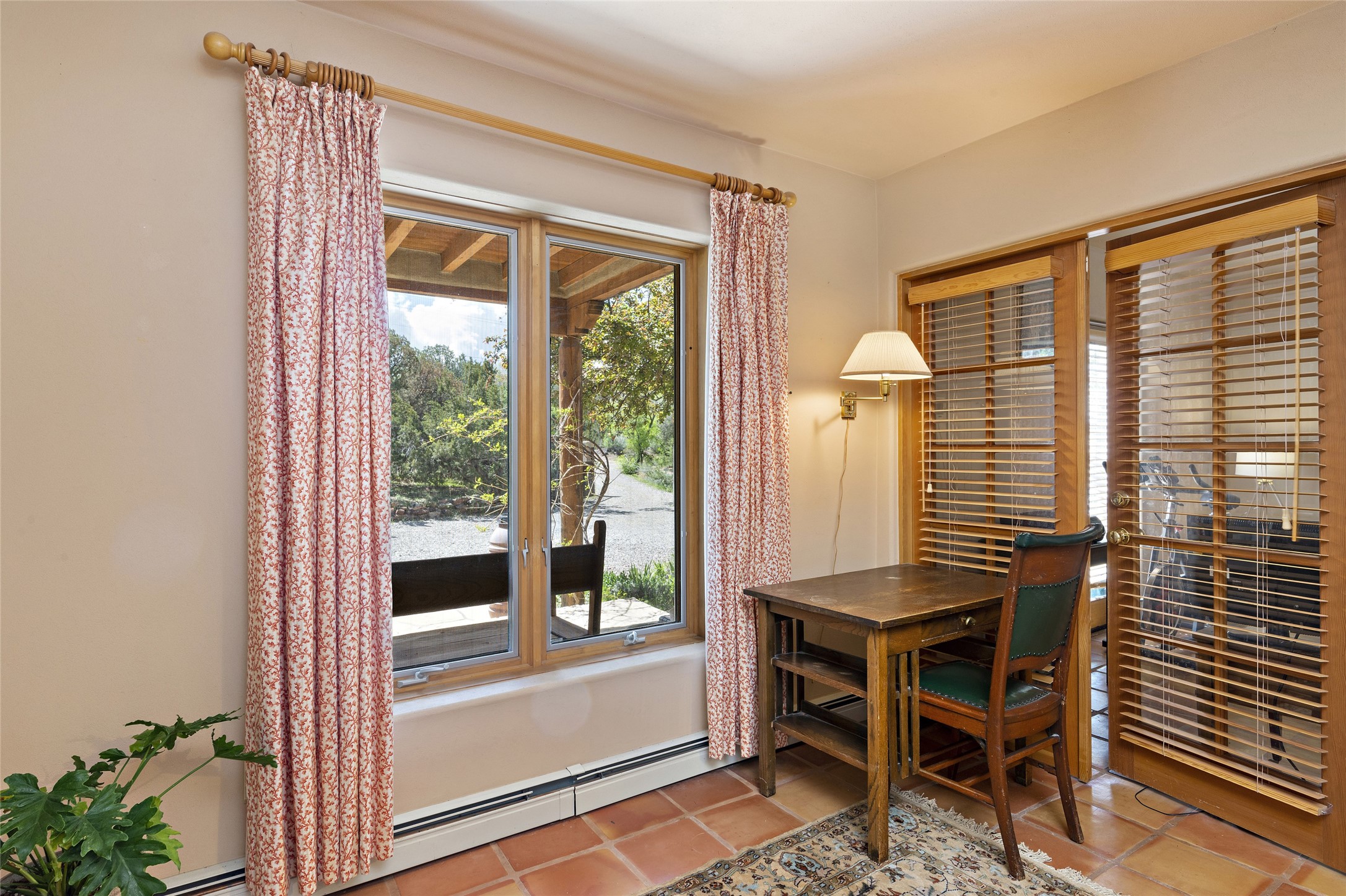 Just minutes away from the vibrant Santa Fe Plaza, this 3-bedroom, 3-bathroom home is nestled in a park-like setting on a sprawling .72-acre lot, this property offers the perfect blend of tranquility and convenience.As you enter, you'll be greeted by an open and flowing floor plan, seamlessly connecting the living room, den, and formal dining room--a true haven for entertaining guests. The two primary suites provide a luxurious retreat, while the additional rooms can be flexibly utilized as bedrooms, studios, or separate offices, catering to your unique needs. Revel in the charm of tile flooring, complemented by the elegance of some beam ceilings and the warmth of two Kiva fireplaces. A walled courtyard off the front primary suites adds a touch of serenity and seclusion to your living space.The home boasts a large backyard, perfect for outdoor activities and relaxation. Additionally, a long Portal enhances the comfort of the home during the delightful spring and summer months, offering an ideal setting for al fresco dining, grilling, and entertaining guests. The established landscaping, gardens, and raised beds provide opportunities for those with a green thumb to indulge in their passion.This home has been thoughtfully upgraded over time, ensuring modern comfort and functionality. The generously sized rooms provide ample space, while the bathrooms boast walk-in showers, adding a touch of luxury to your daily routine.Seize the opportunity to explore this captivating property today and discover if it's the perfect fit for you. Schedule a visit and embark on a journey to witness the timeless charm and remarkable features that make this home a true gem.