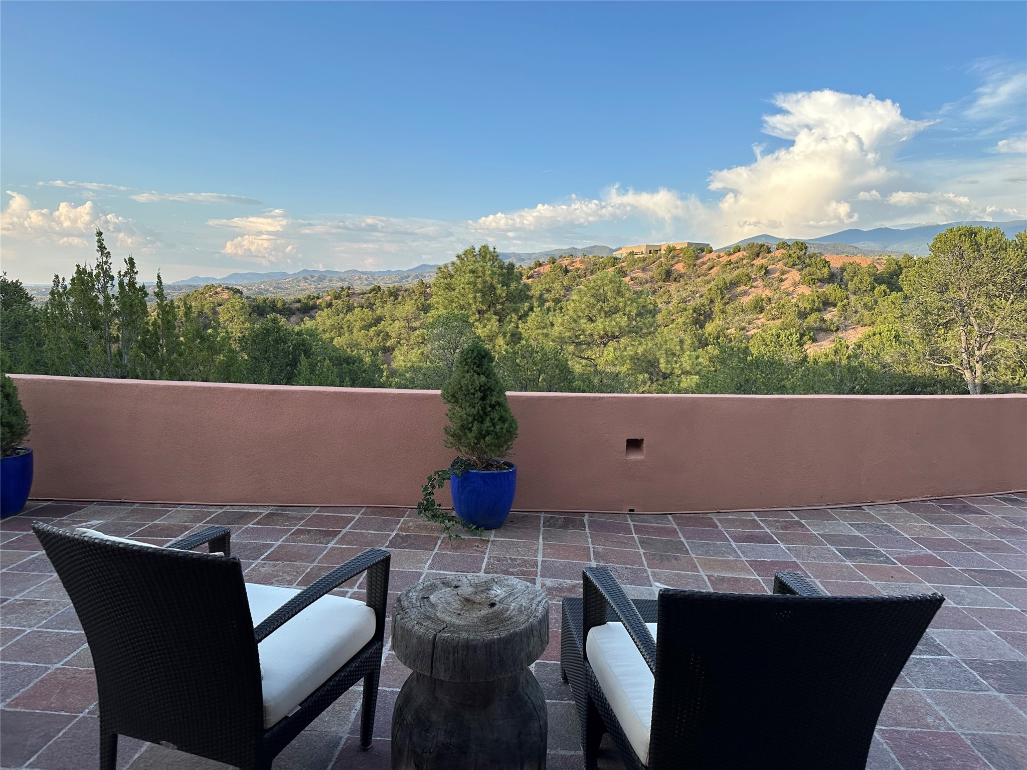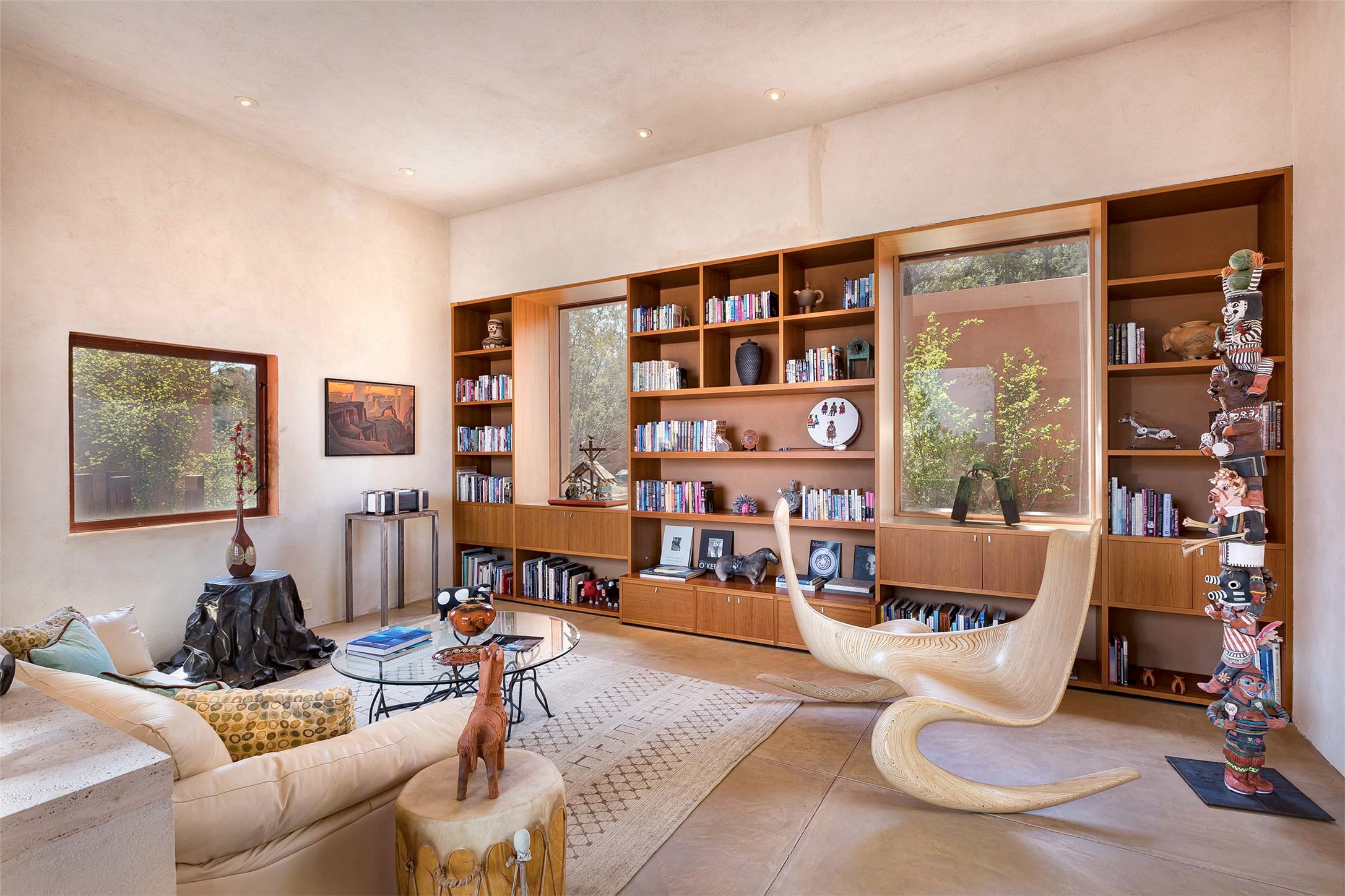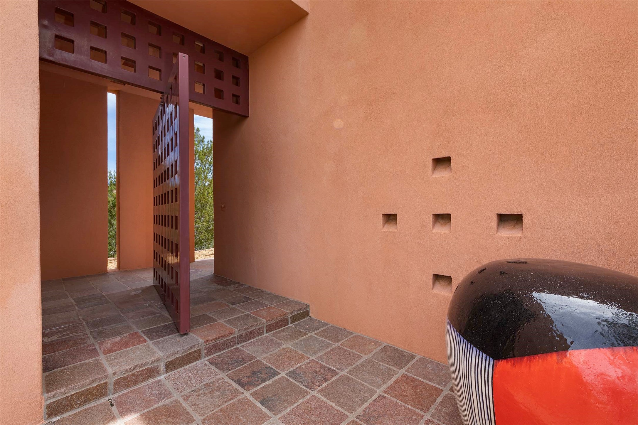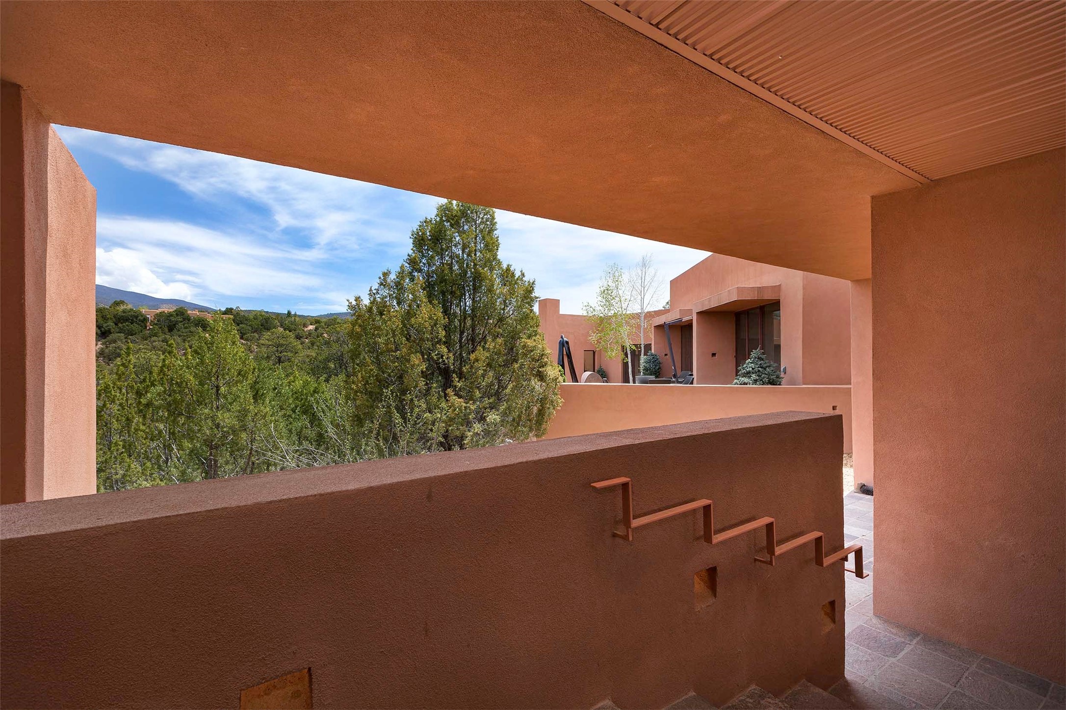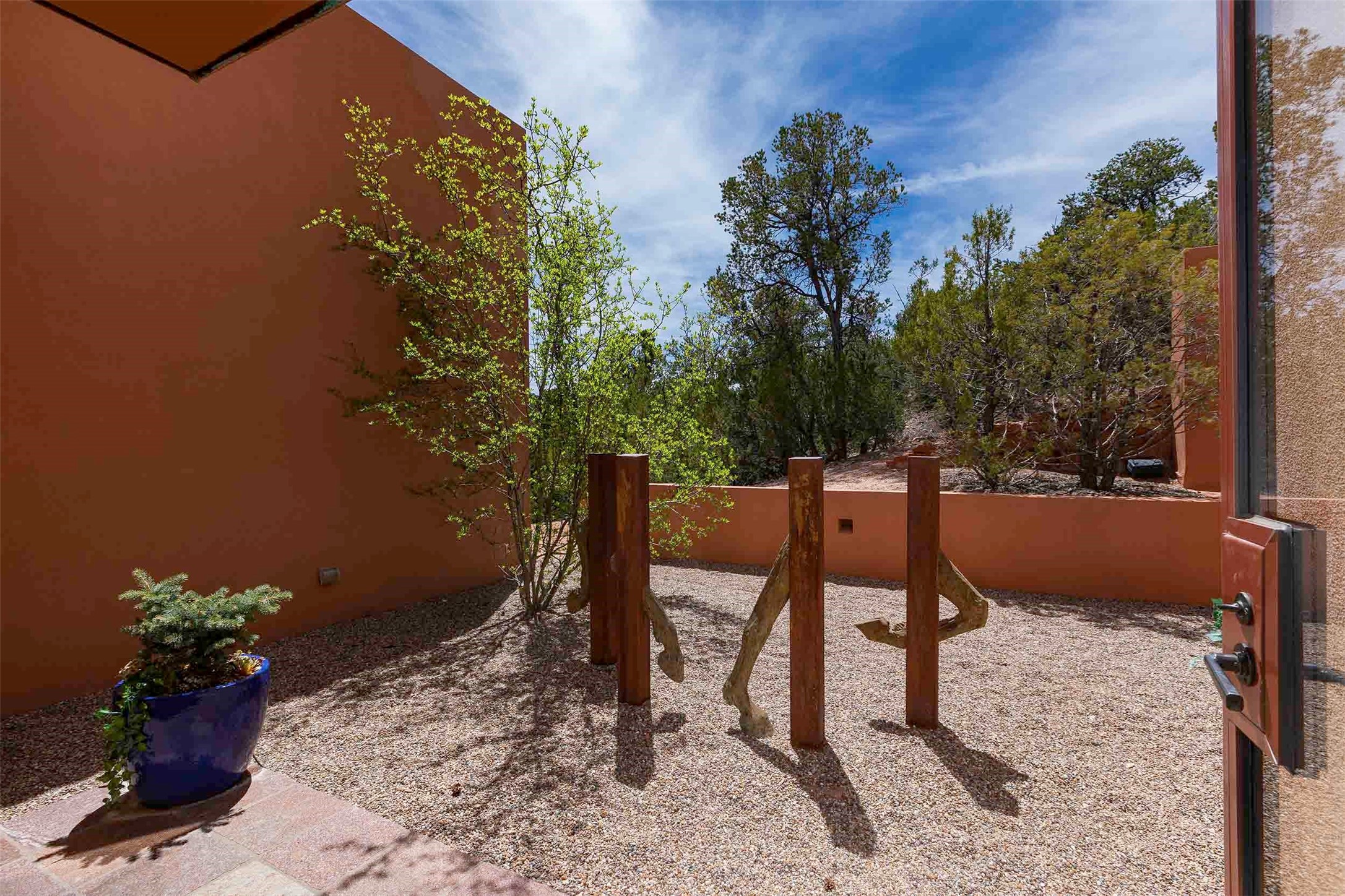 This stunning contemporary home combines the beautiful lines of renowned architect, Ricardo Legorreta, and the beautiful mountain views of Santa Fe. Located in the exclusive gated Circle Drive Compound, this home offers world-class luxury and privacy, perfect for relaxation and enjoyment. The generous open floor plan provides options for gatherings of any size. Large terraces create a perfect platform for cocktails, entertainment, and outdoor dining. Chefs will appreciate the well-stocked kitchen and the pantry/household management office. Interior walls juxtapose between expanses of glass and the exterior views and large walls perfect for an art collection on the interior. The main house has an opulent owner's suite while the separate but attached guest suite has two additional bedroom suites. Built by Doug McDowell with Rastra construction, stained concrete and marble floors, American Clay wall surfaces throughout. Community Tennis/Pickleball court.