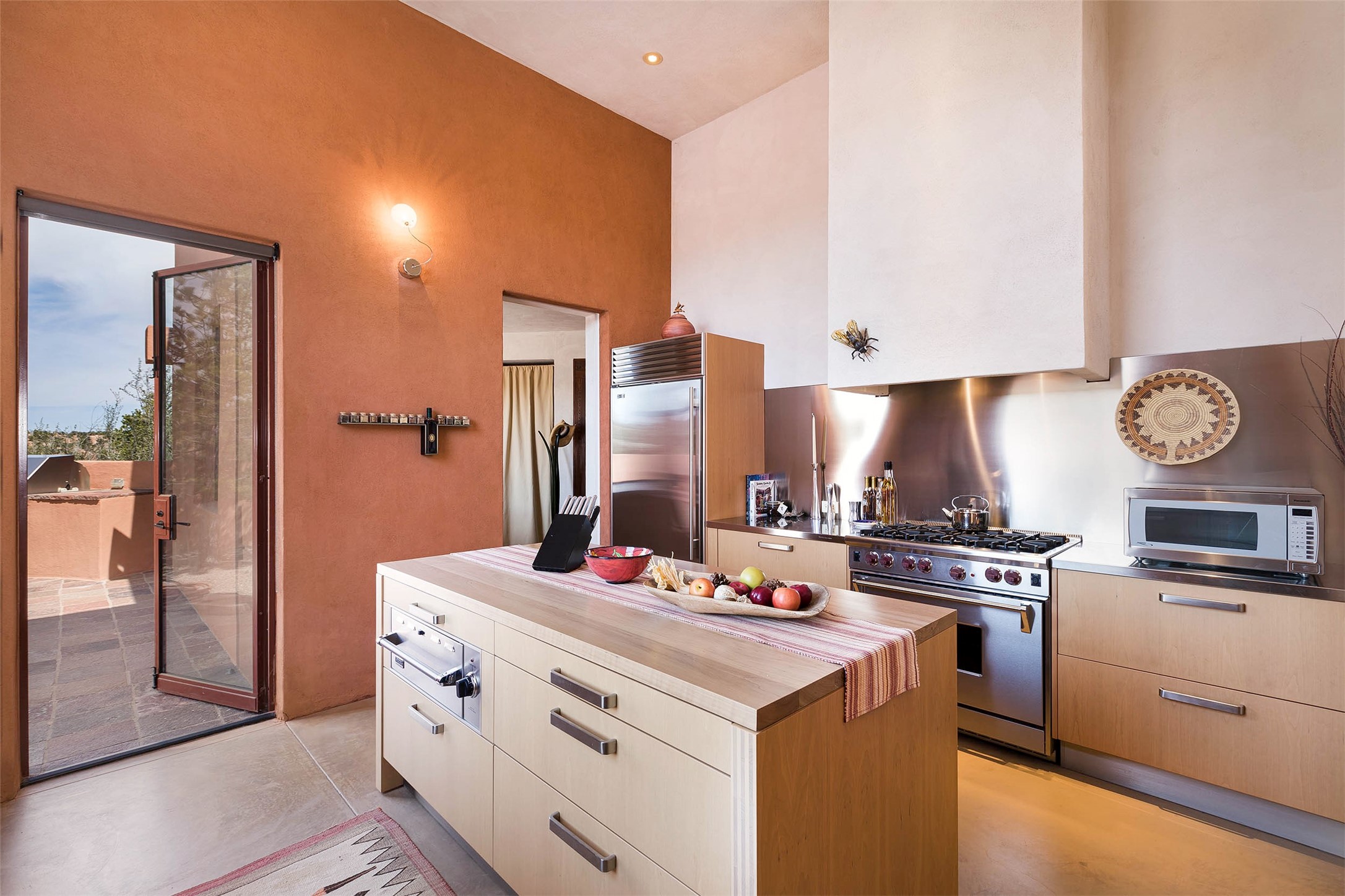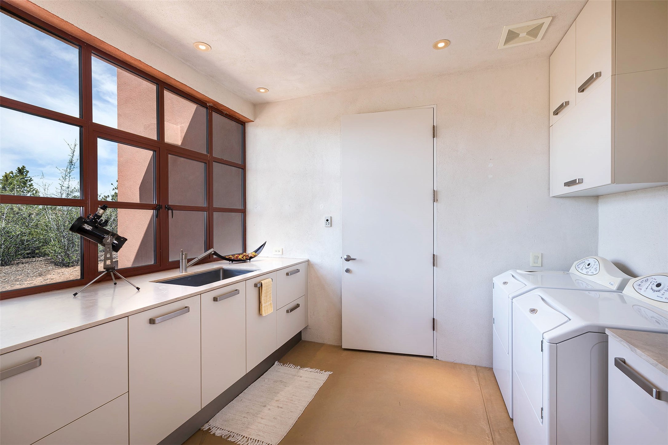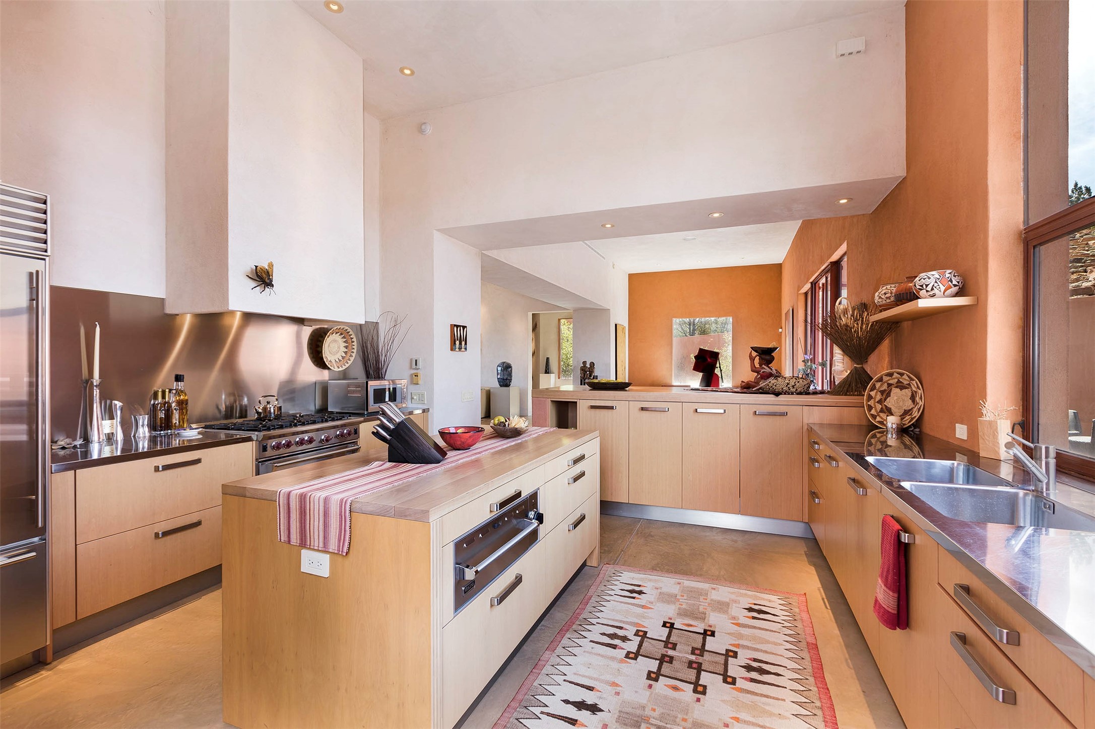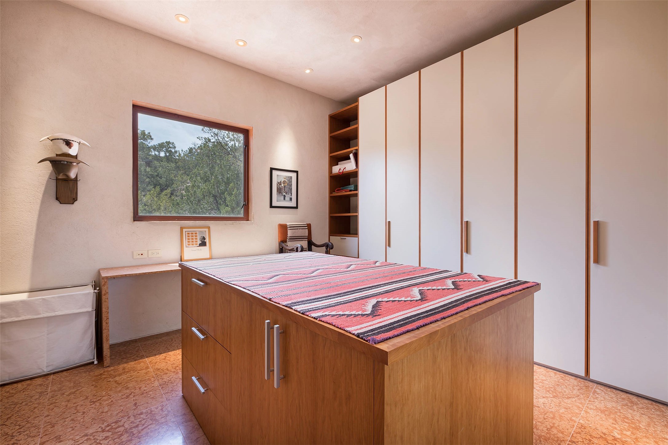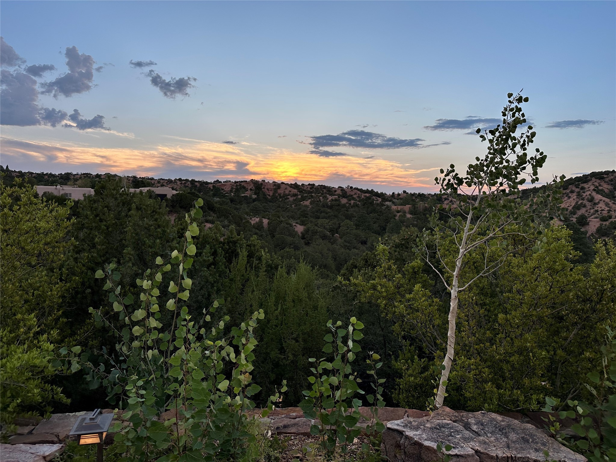 This stunning contemporary home combines the beautiful lines of renowned architect, Ricardo Legorreta, and the beautiful mountain views of Santa Fe. Located in the exclusive gated Circle Drive Compound, this home offers world-class luxury and privacy, perfect for relaxation and enjoyment. The generous open floor plan provides options for gatherings of any size. Large terraces create a perfect platform for cocktails, entertainment, and outdoor dining. Chefs will appreciate the well-stocked kitchen and the pantry/household management office. Interior walls juxtapose between expanses of glass and the exterior views and large walls perfect for an art collection on the interior. The main house has an opulent owner's suite while the separate but attached guest suite has two additional bedroom suites. Built by Doug McDowell with Rastra construction, stained concrete and marble floors, American Clay wall surfaces throughout. Community Tennis/Pickleball court.