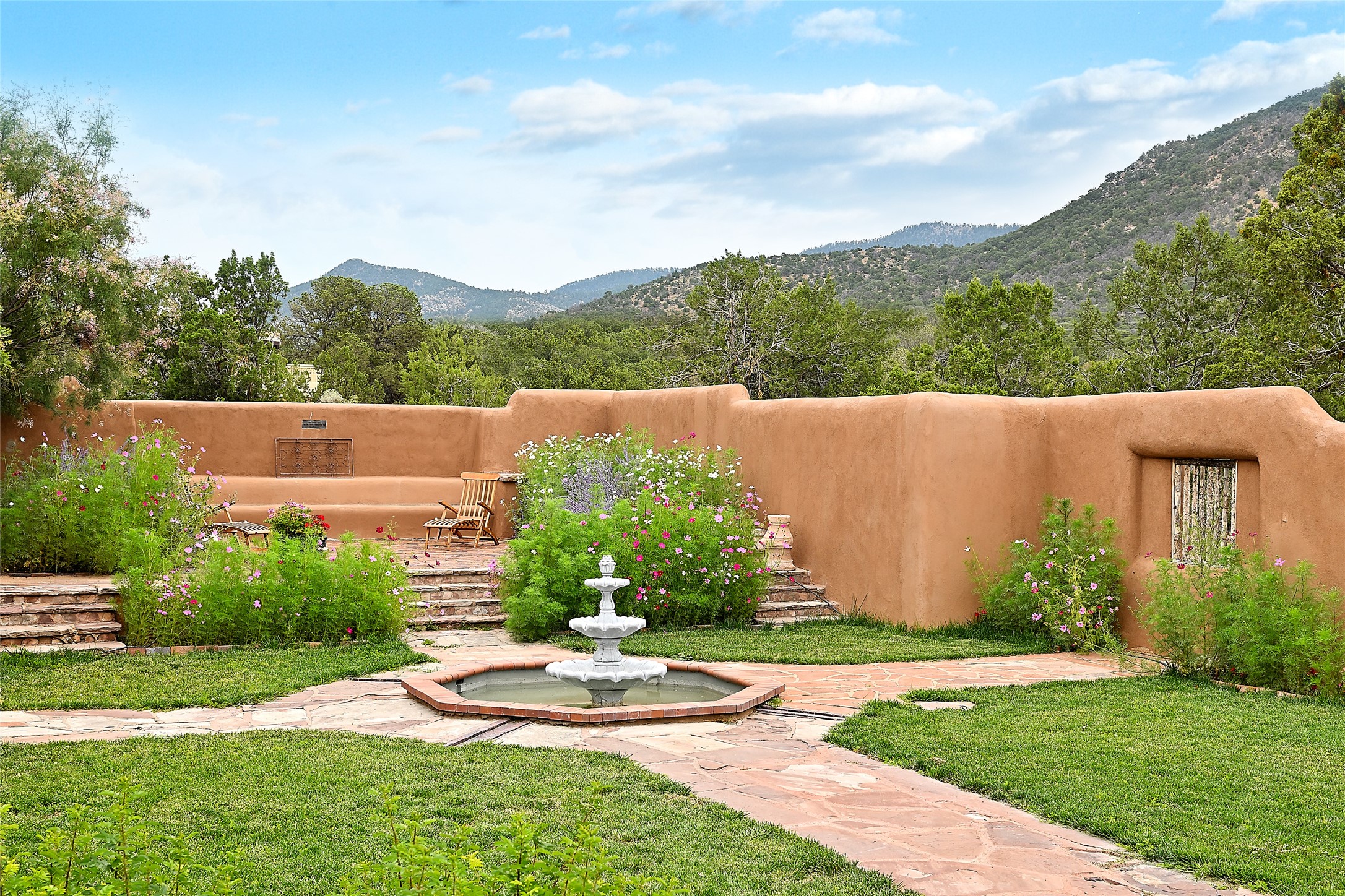 Designed by renowned architect John Gaw Meem and built in 1929, the historic Proctor Compound is sited on two acres in Sun Mountain Estates, on the edge of Museum Hill, and comprises a primary residence, a two-bedroom casita, and a spacious studio. The approximately 6,500-square-foot home is introduced by a courtyard with a classical fountain, a vintage fresco, flagstone terraces, and stunning mountain views. It features four bedrooms, six baths, five portals, a media room, a grand sala, formal dining room, spacious kitchen with superior appliances, a breakfast area, and two offices, laundry rooms, and sunrooms. The two-bedroom casita--which provides two baths, laundry facilities, a private courtyard, and the studio--which offers a full bath, a kitchen, and laundry facilities--lie across a second courtyard with fruit trees. While retaining the 1929 Pueblo Revival design elements and understated elegance for which Meem was known, the property has been carefully rejuvenated with updated systems: plumbing, electrical--including an 11.5 kilowatt solar array--heating, and cooling as well as a new roof, stucco, and windows. Contributing to the distinctive aesthetic are eight fireplaces, bancos, hand-carved doors, oak floors, vigas, beams, corbels, and replastered interior walls with original contours and soft edges. The skylit three-car garage could also serve as a workshop or studio. This is a rare opportunity not to be missed.