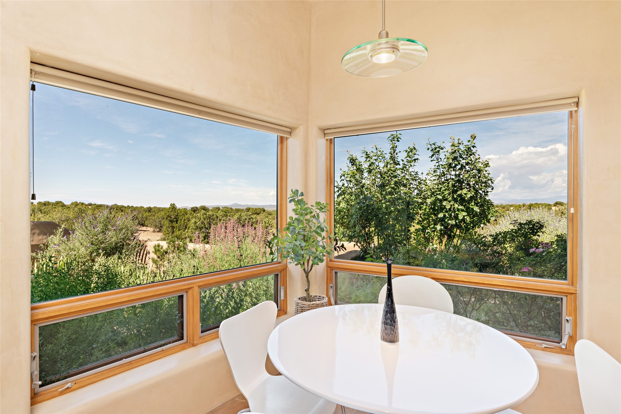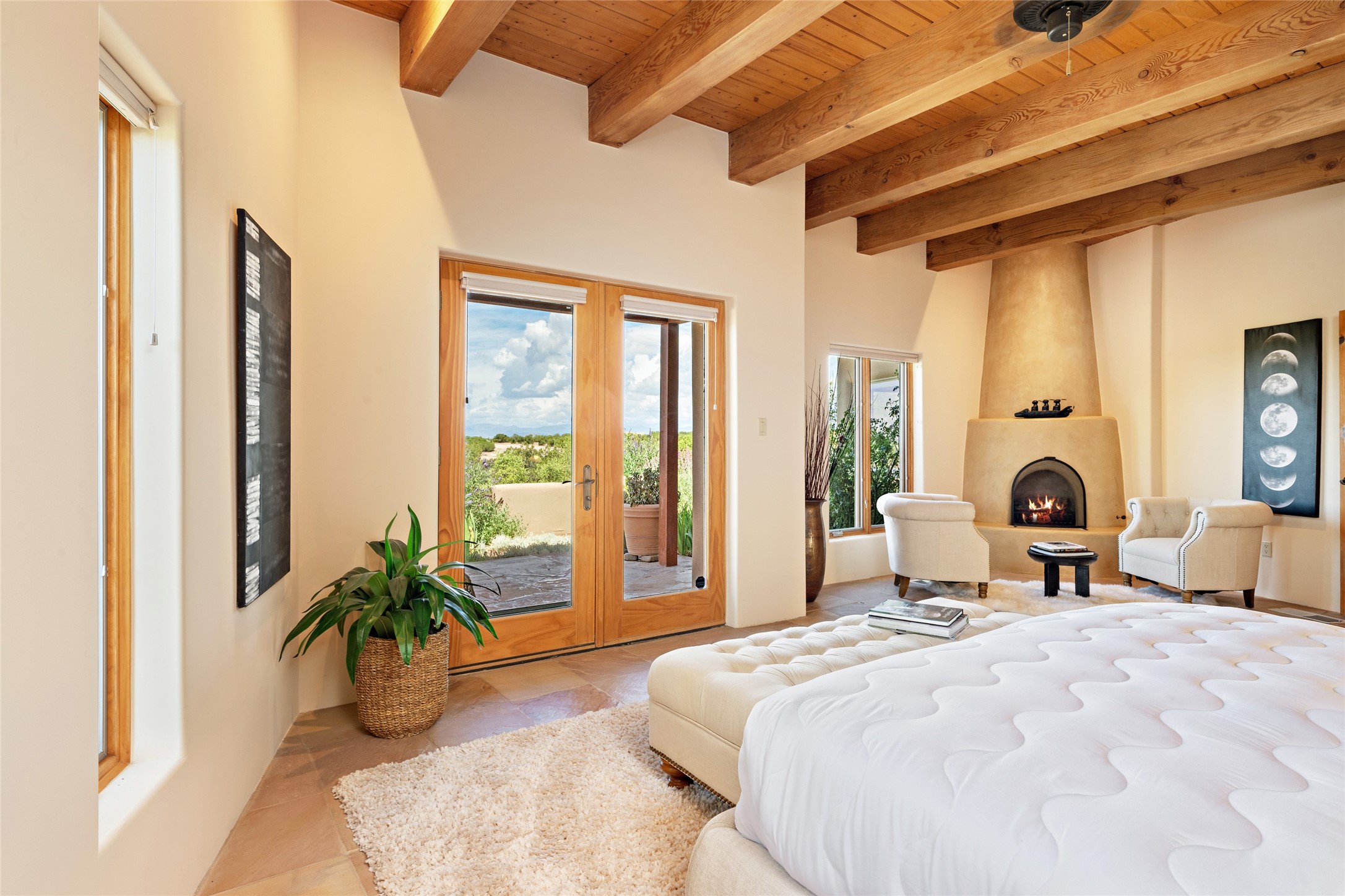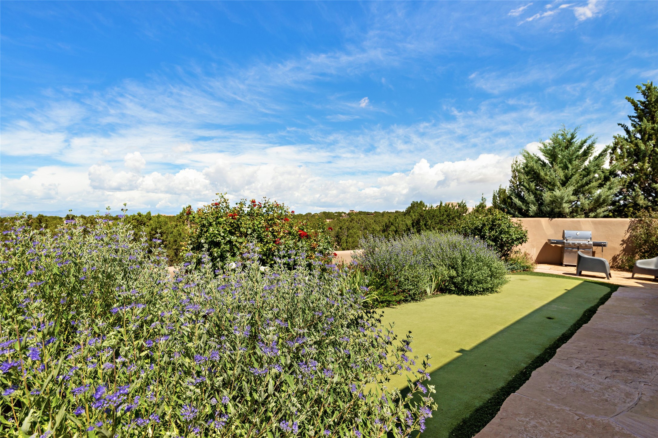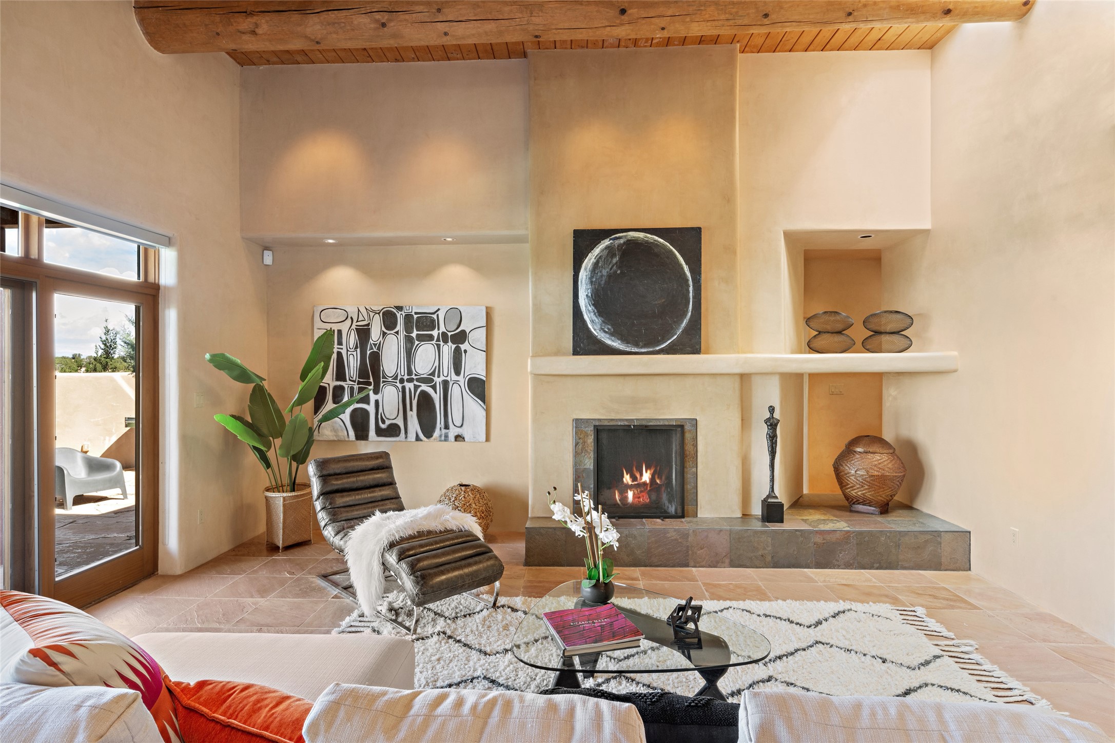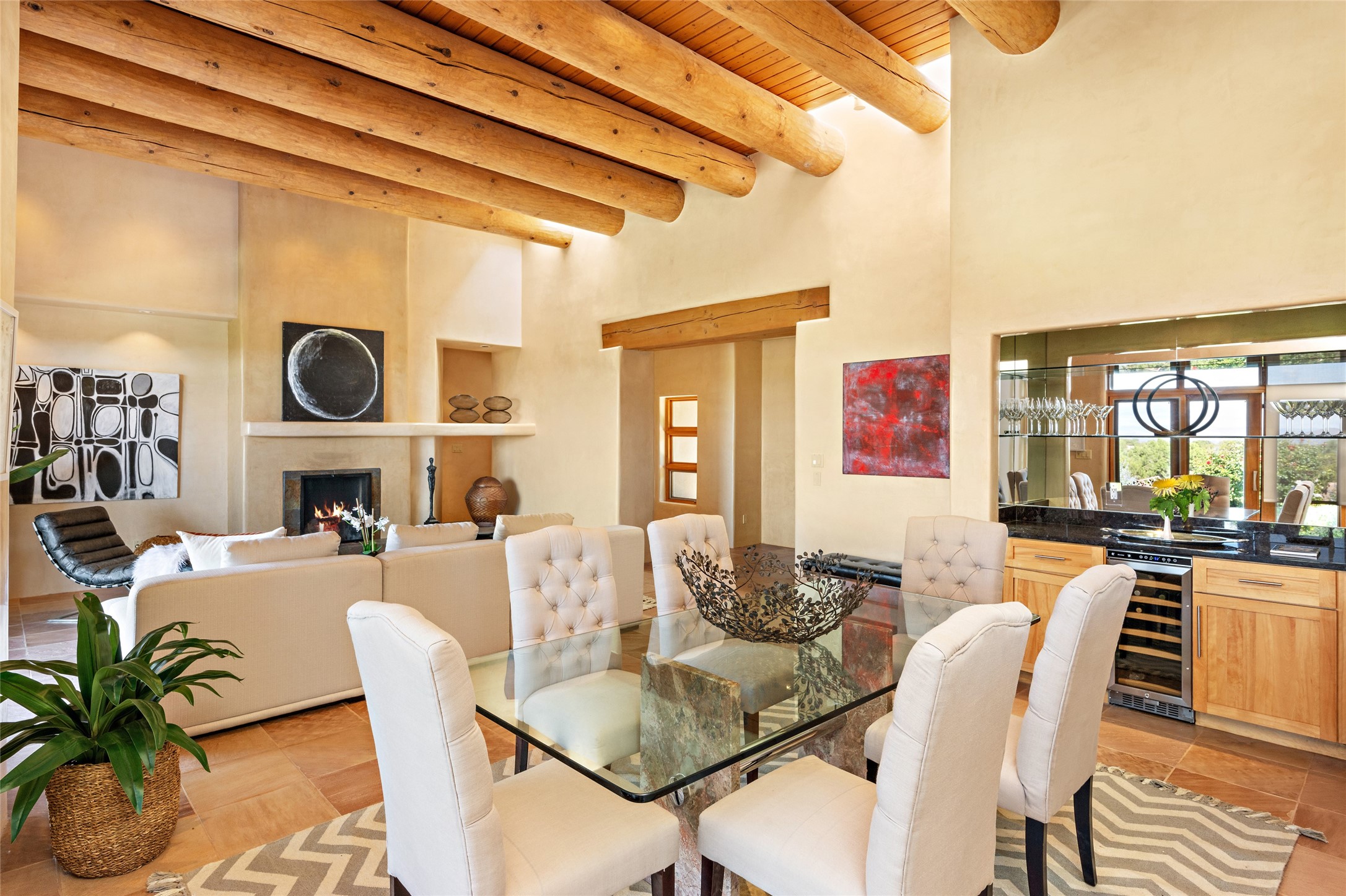 THIS LAS CAMPANAS SINGLE LEVEL HOME OPENS UP TO THE EXPANSIVE JEMEZ VIEWS AND WIDE-OPEN SKY OF SANTA FE! Welcome to the home of sweet dreams in Las Campanas, a prestigious gated community in Santa Fe, New Mexico. This stunning property offers unparalleled views of the Jemez Mountains and the surrounding natural beauty. Situated on a spacious 3-acre lot at the end of a sleepy cul-de-sac, this home is a peaceful oasis that invites you to relax and enjoy the serene lifestyle. This home features 3 bedrooms, a great office and 2.5 bathrooms. The interior design is a perfect blend of contemporary and traditional Santa Fe style, with high ceilings, vigas & beams, plaster walls, stone floors, fireplaces and skylights. The open floor plan allows for easy flow between the living room, dining room, and kitchen, creating a great space for entertaining or family gatherings. The gourmet kitchen is equipped with stainless steel appliances, granite countertops and a walk-in pantry. The master suite is a luxurious retreat with a fireplace, a walk-in closet and a spa-like bathroom with a soaking tub, a separate shower and dual sinks. The other two bedrooms are spacious and share a full bathroom. The outdoor living space is equally impressive, with a covered portal featuring a cozy seating area with a fireplace and an outdoor dining area that provides shade and comfort for the perfect indoor/outdoor lifestyle. The backyard is landscaped with native plants and trees that blend seamlessly with the natural surroundings. Walk for miles on the nearby trail system. From here, you can enjoy the spectacular views of the mountains and sunset. This home is truly a gem in Las Campanas, where members can enjoy the amenities of the private club - arranged separately and by invitation with the club - which offers 2 Jack Nicholus golf courses, the equestrian center, spa and tennis. Don't miss this opportunity to own this exquisite property that combines luxury, comfort and elegance.