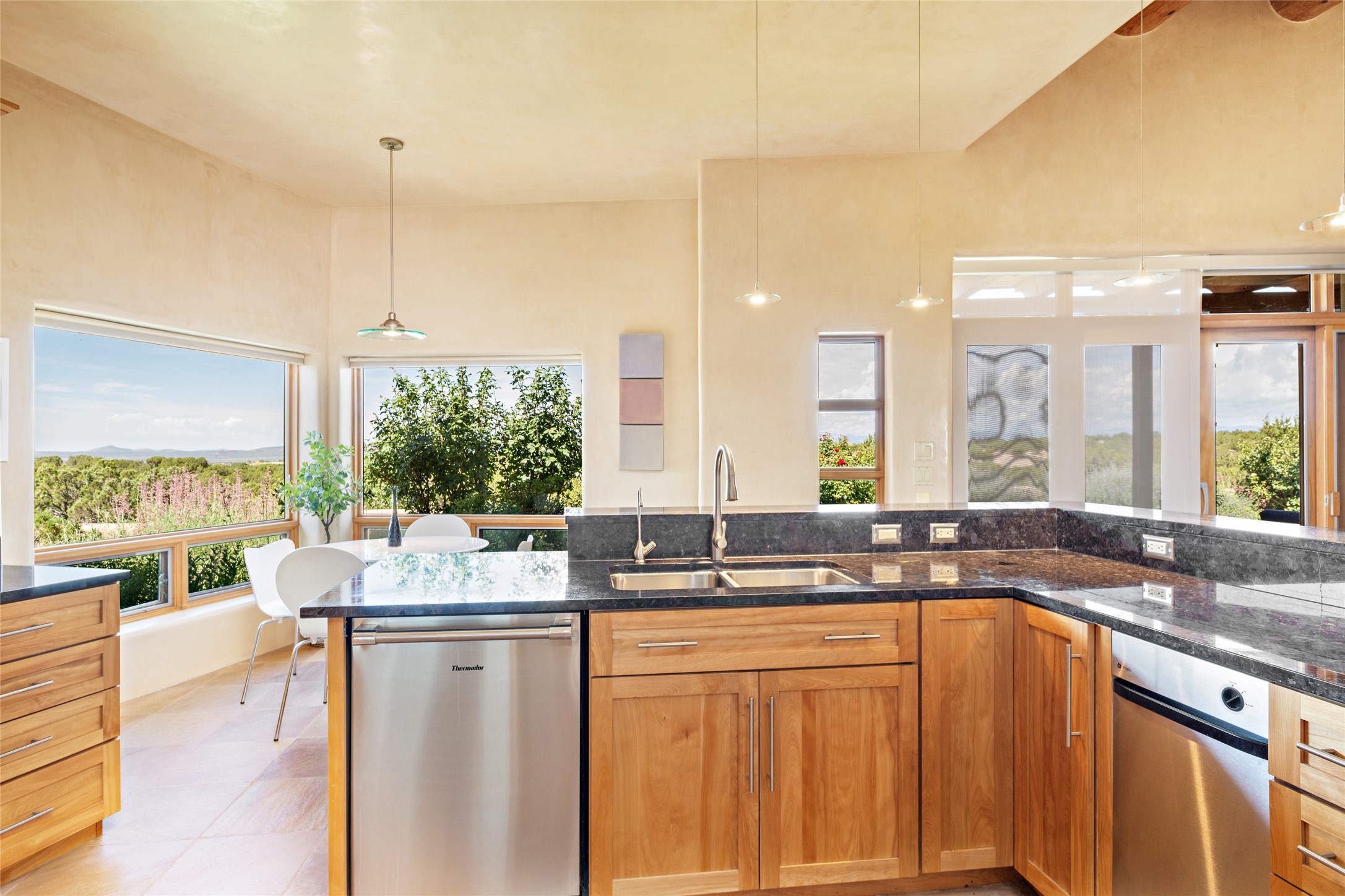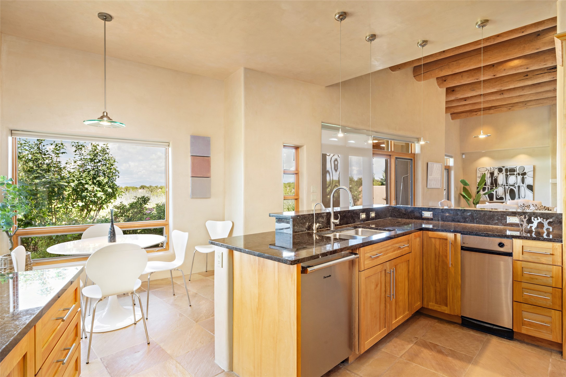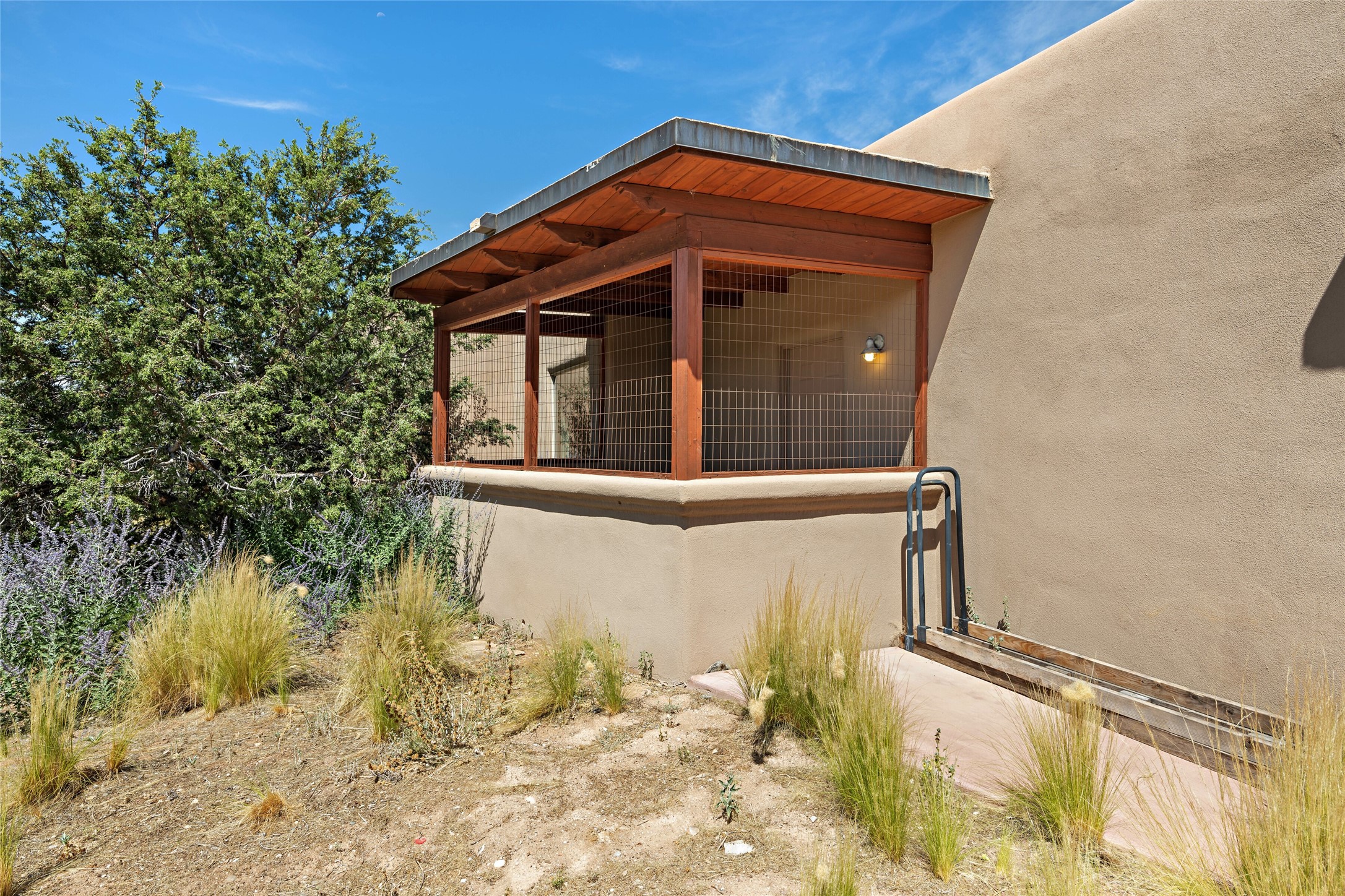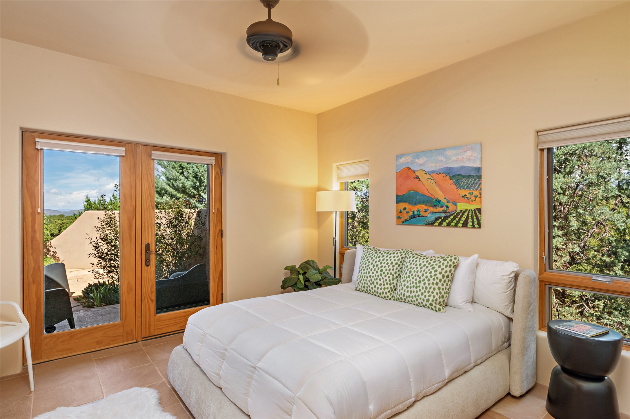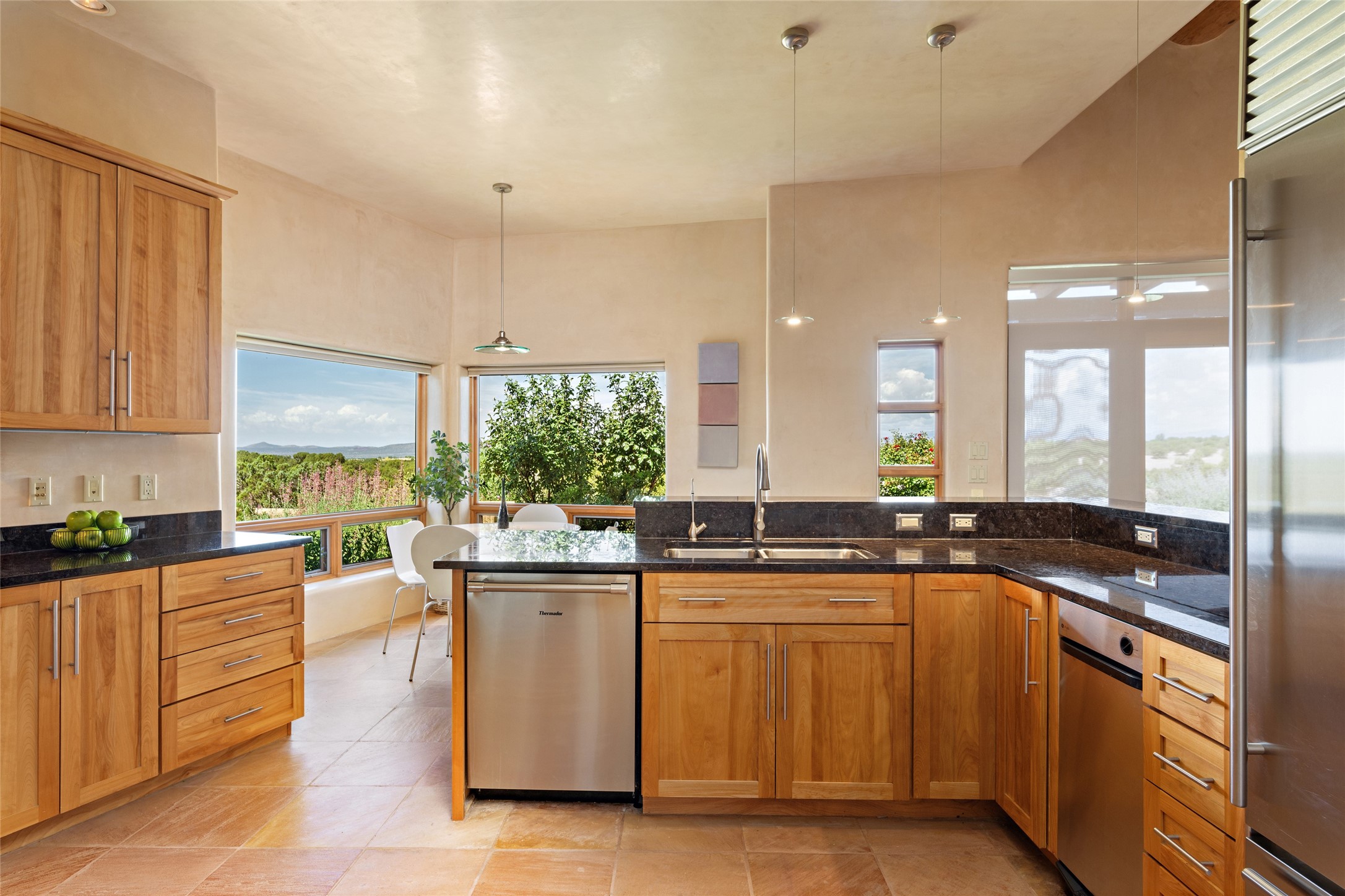 THIS LAS CAMPANAS SINGLE LEVEL HOME OPENS UP TO THE EXPANSIVE JEMEZ VIEWS AND WIDE-OPEN SKY OF SANTA FE! Welcome to the home of sweet dreams in Las Campanas, a prestigious gated community in Santa Fe, New Mexico. This stunning property offers unparalleled views of the Jemez Mountains and the surrounding natural beauty. Situated on a spacious 3-acre lot at the end of a sleepy cul-de-sac, this home is a peaceful oasis that invites you to relax and enjoy the serene lifestyle. This home features 3 bedrooms, a great office and 2.5 bathrooms. The interior design is a perfect blend of contemporary and traditional Santa Fe style, with high ceilings, vigas & beams, plaster walls, stone floors, fireplaces and skylights. The open floor plan allows for easy flow between the living room, dining room, and kitchen, creating a great space for entertaining or family gatherings. The gourmet kitchen is equipped with stainless steel appliances, granite countertops and a walk-in pantry. The master suite is a luxurious retreat with a fireplace, a walk-in closet and a spa-like bathroom with a soaking tub, a separate shower and dual sinks. The other two bedrooms are spacious and share a full bathroom. The outdoor living space is equally impressive, with a covered portal featuring a cozy seating area with a fireplace and an outdoor dining area that provides shade and comfort for the perfect indoor/outdoor lifestyle. The backyard is landscaped with native plants and trees that blend seamlessly with the natural surroundings. Walk for miles on the nearby trail system. From here, you can enjoy the spectacular views of the mountains and sunset. This home is truly a gem in Las Campanas, where members can enjoy the amenities of the private club - arranged separately and by invitation with the club - which offers 2 Jack Nicholus golf courses, the equestrian center, spa and tennis. Don't miss this opportunity to own this exquisite property that combines luxury, comfort and elegance.
