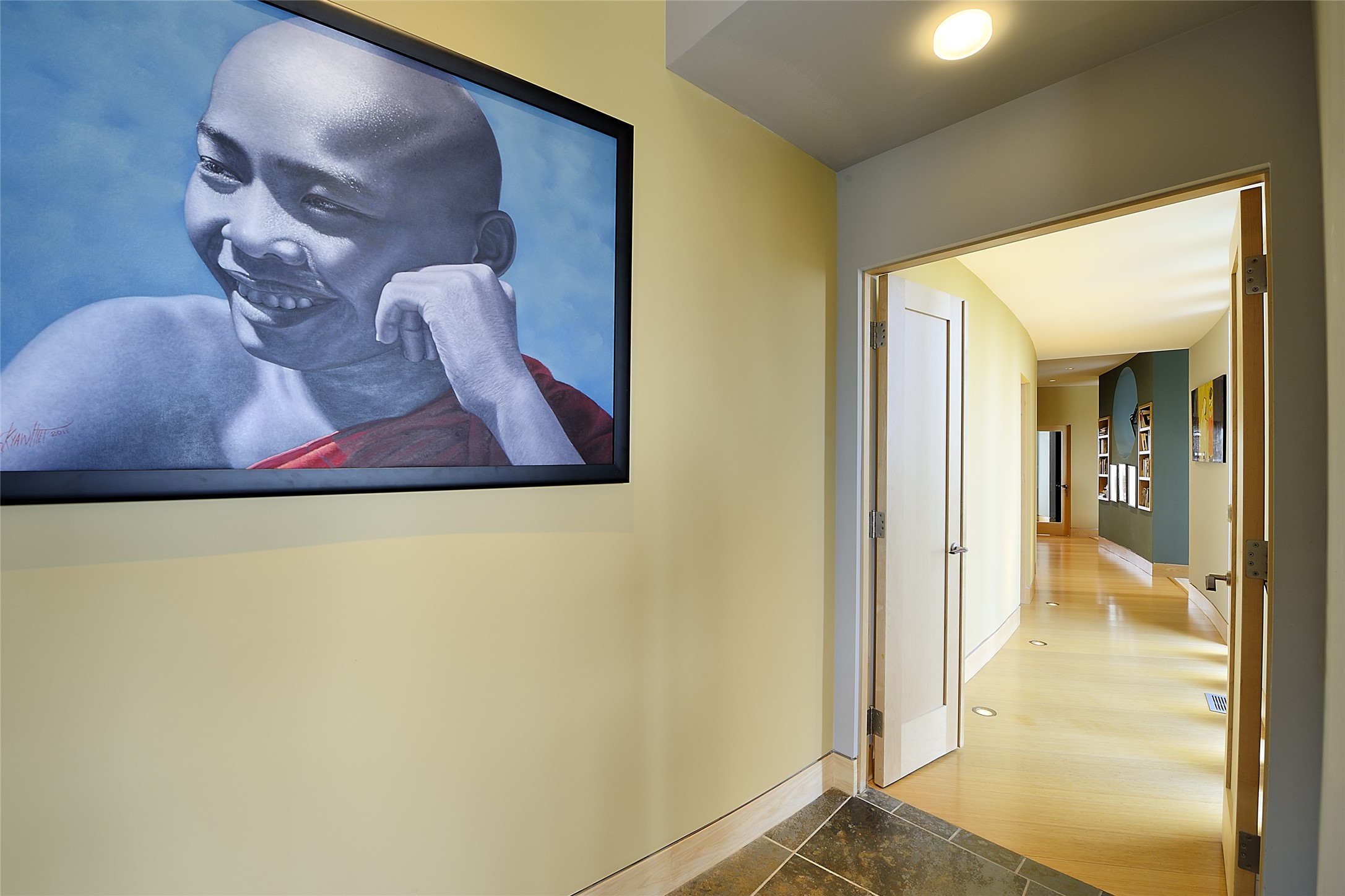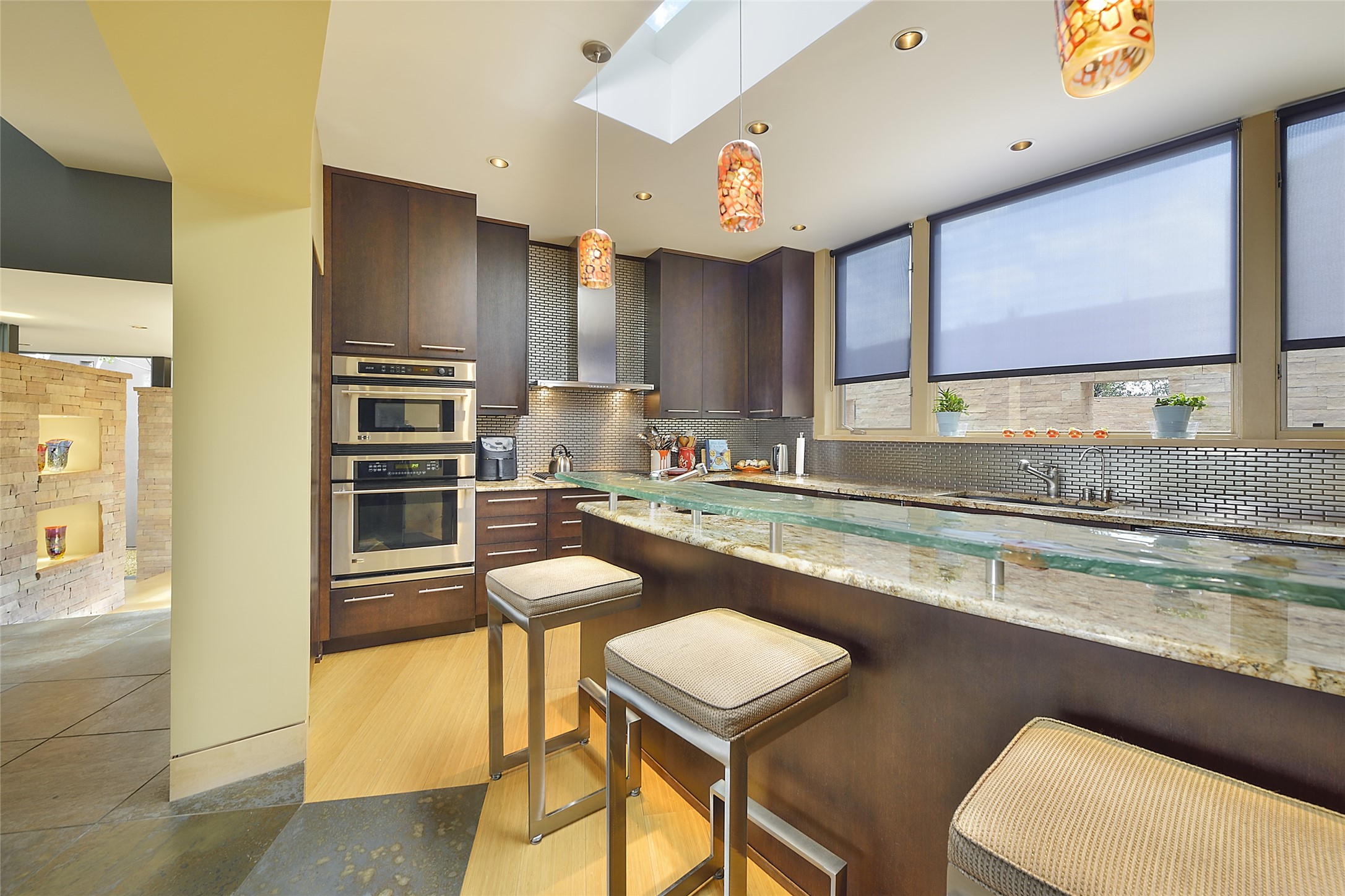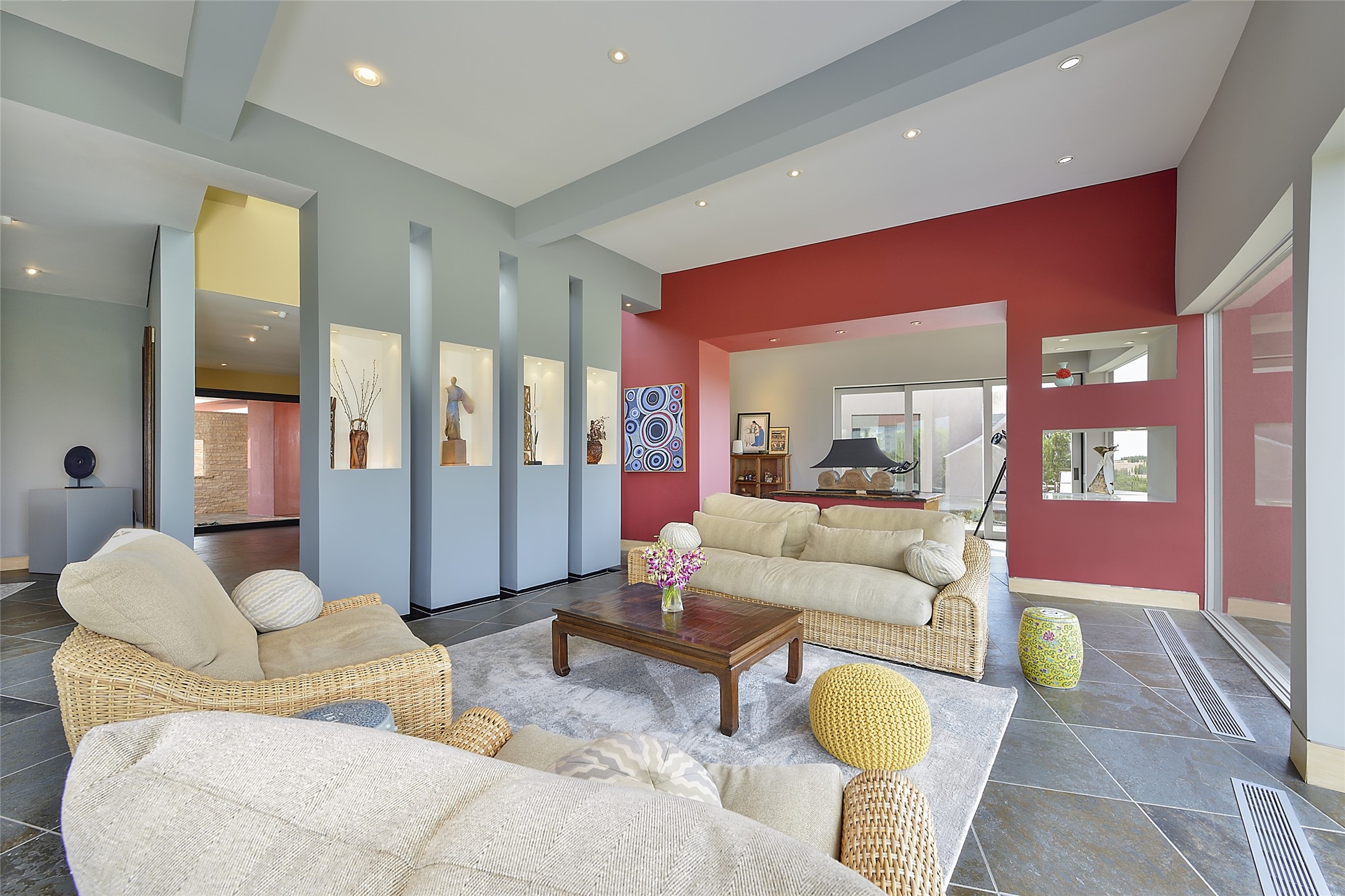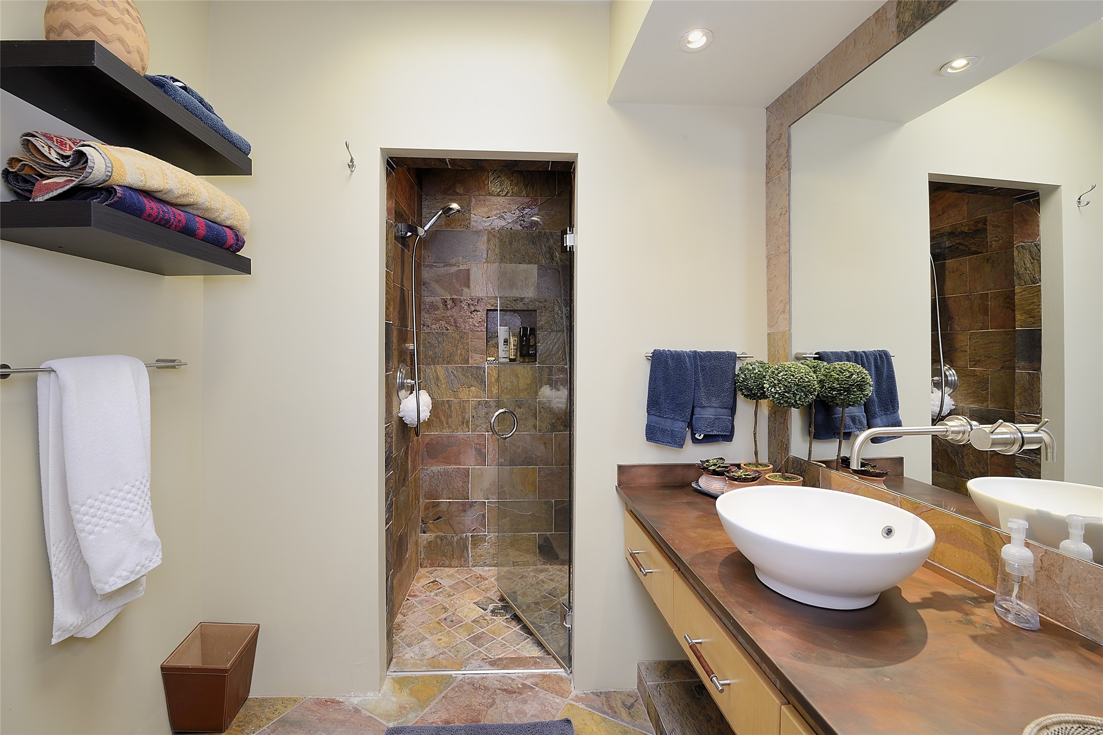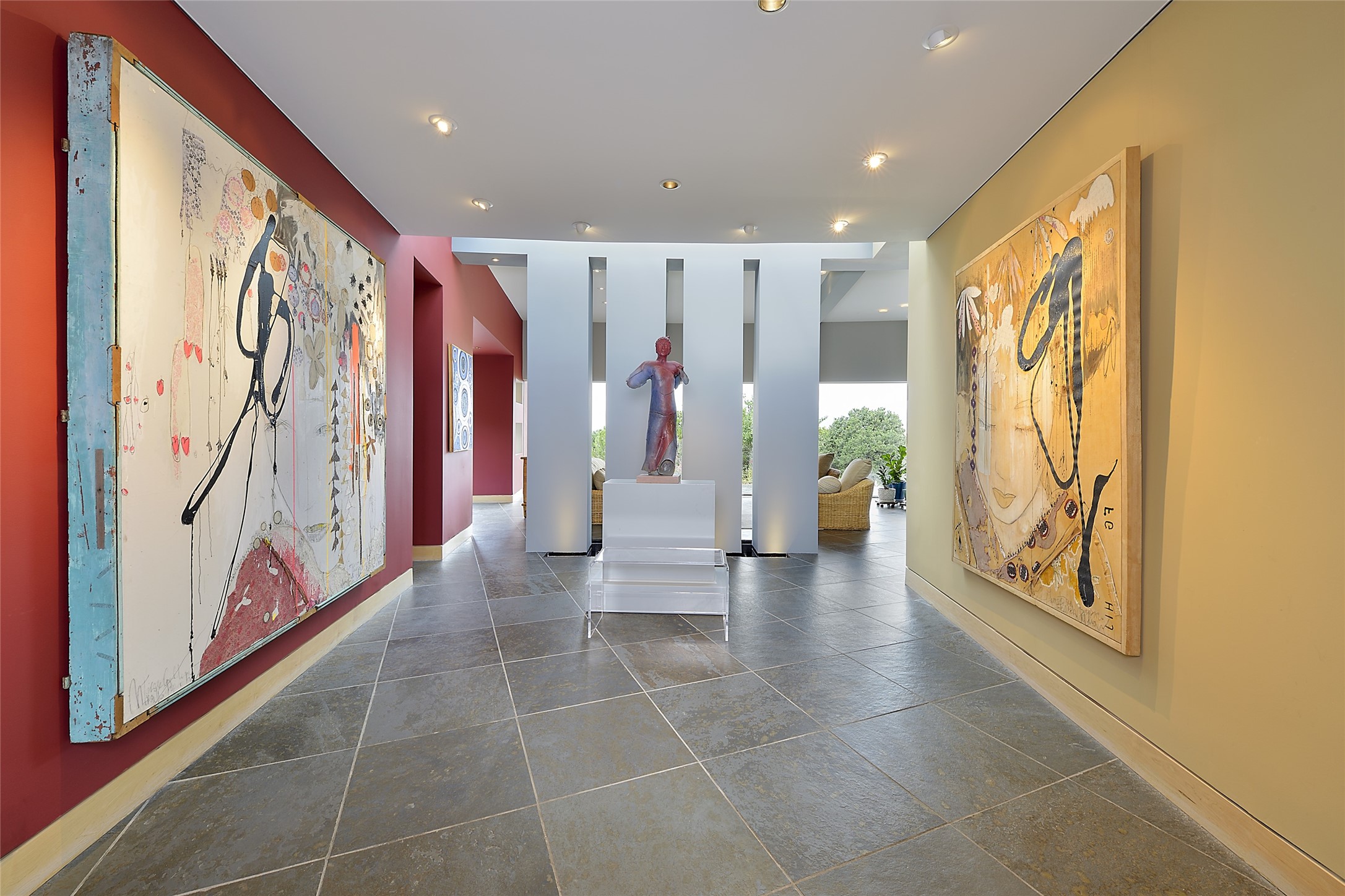 Casa de Vidrio (House of Glass), an extraordinary, gated contemporary estate, overlooks the world-renowned Santa Fe Opera with panoramic views of distant valleys and the Sangre de Cristo and Jemez Mountain ranges. The 5,600-square-foot main home and 1,600-square-foot guest house command 8.43 acres in the prestigious northside Tesuque area. Designed by Aaron Bohrer to emulate the architectural spirit of Chaco Canyon's Pueblo Bonito, Casa de Vidrio provides an enormous entry glass door, an observation deck, slate and bamboo floors, sliding pocket doors, multiple water features, a home theatre, unmatched art display facilities, an outdoor hot tub, and numerous patios and portals. The color-filled art and architecture, floor-to-ceiling windows, multiple outdoor living spaces, and native landscaping--along with nearby skiing, hiking, and biking--all combine to fulfill the dream of living the enchanting Santa Fe lifestyle.