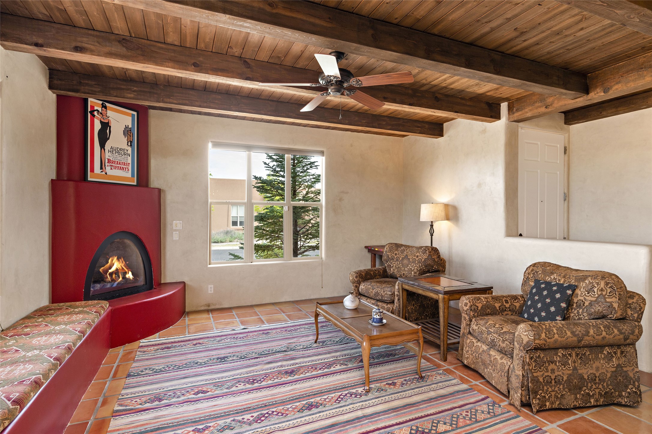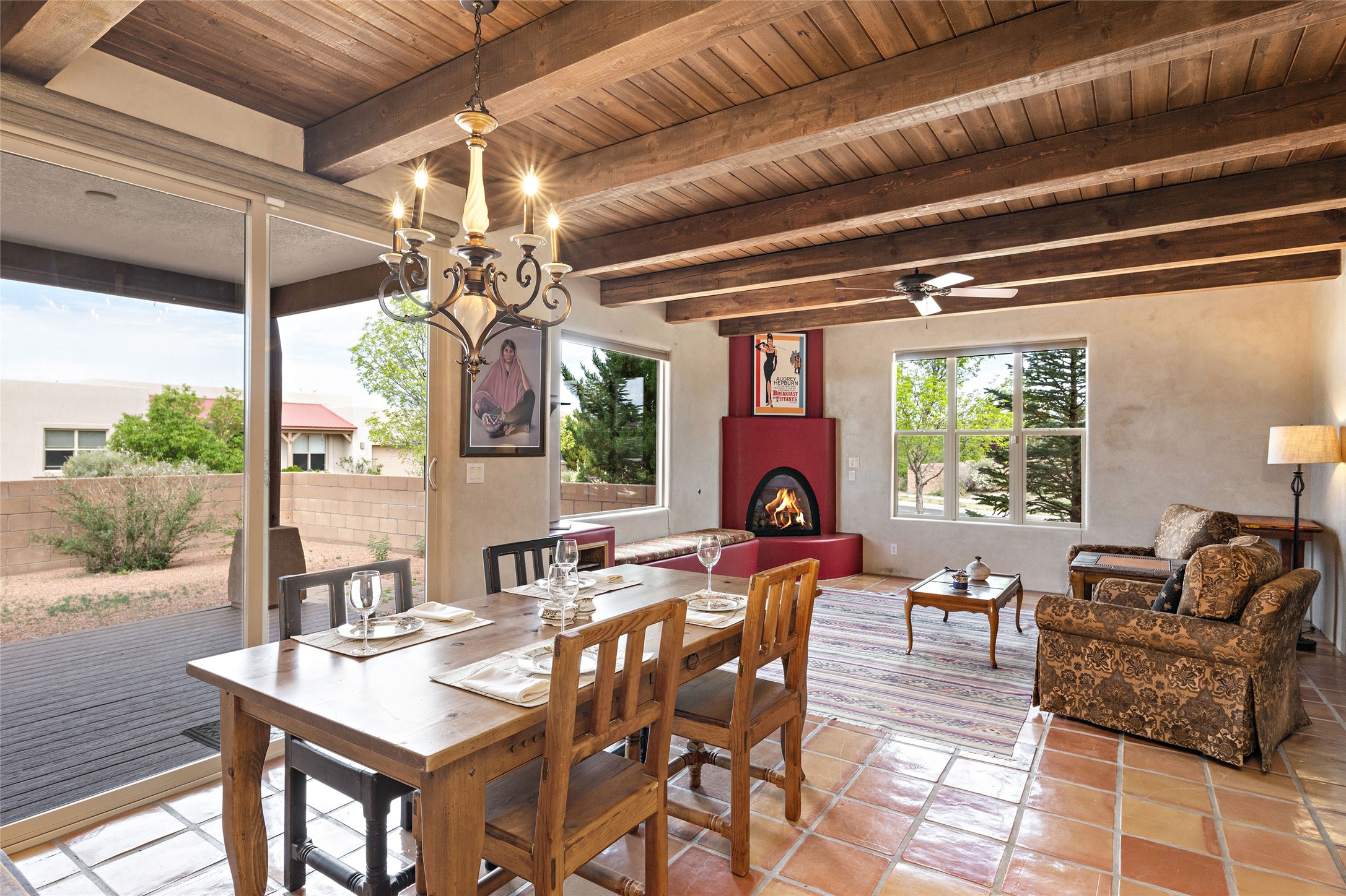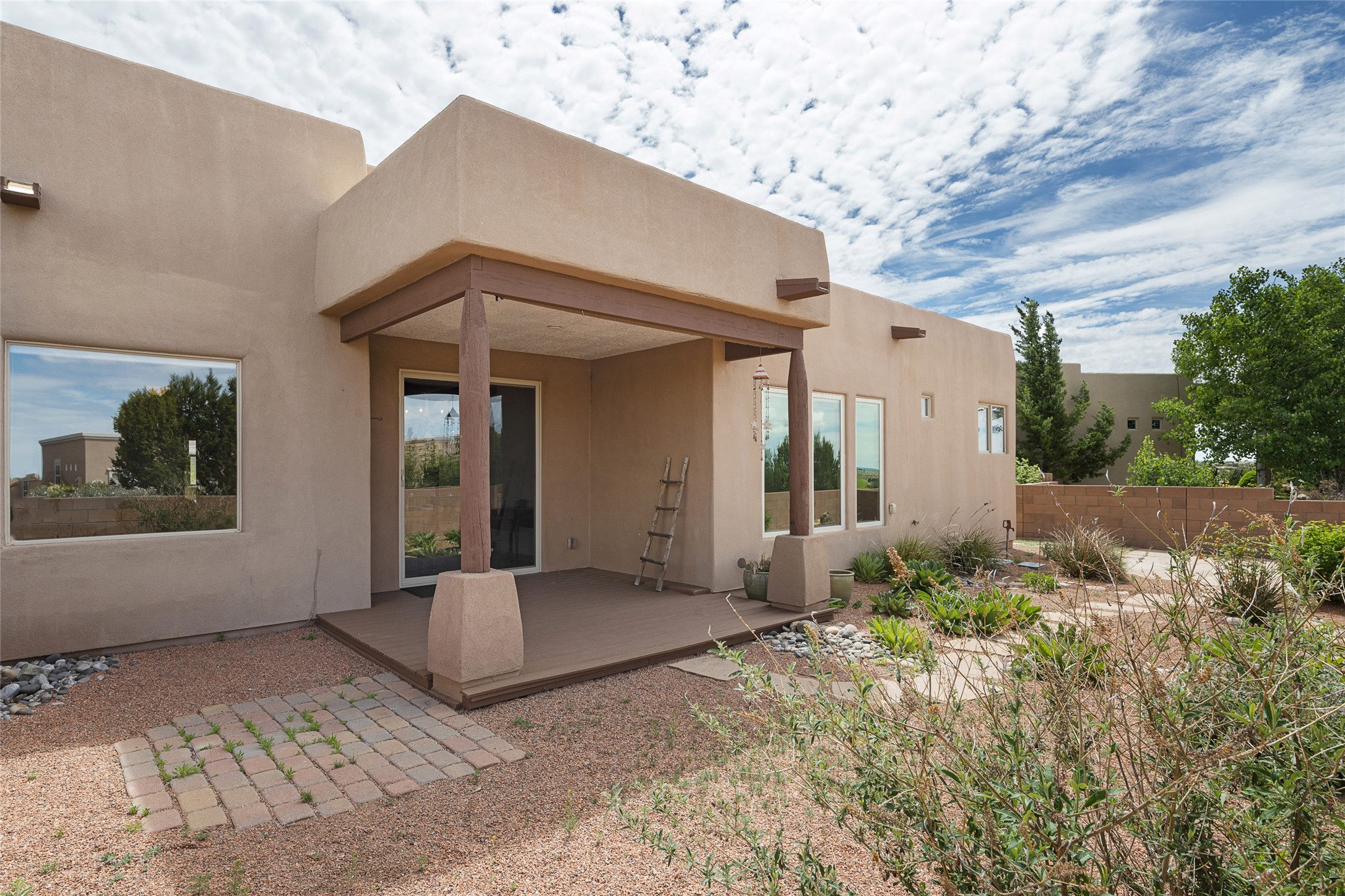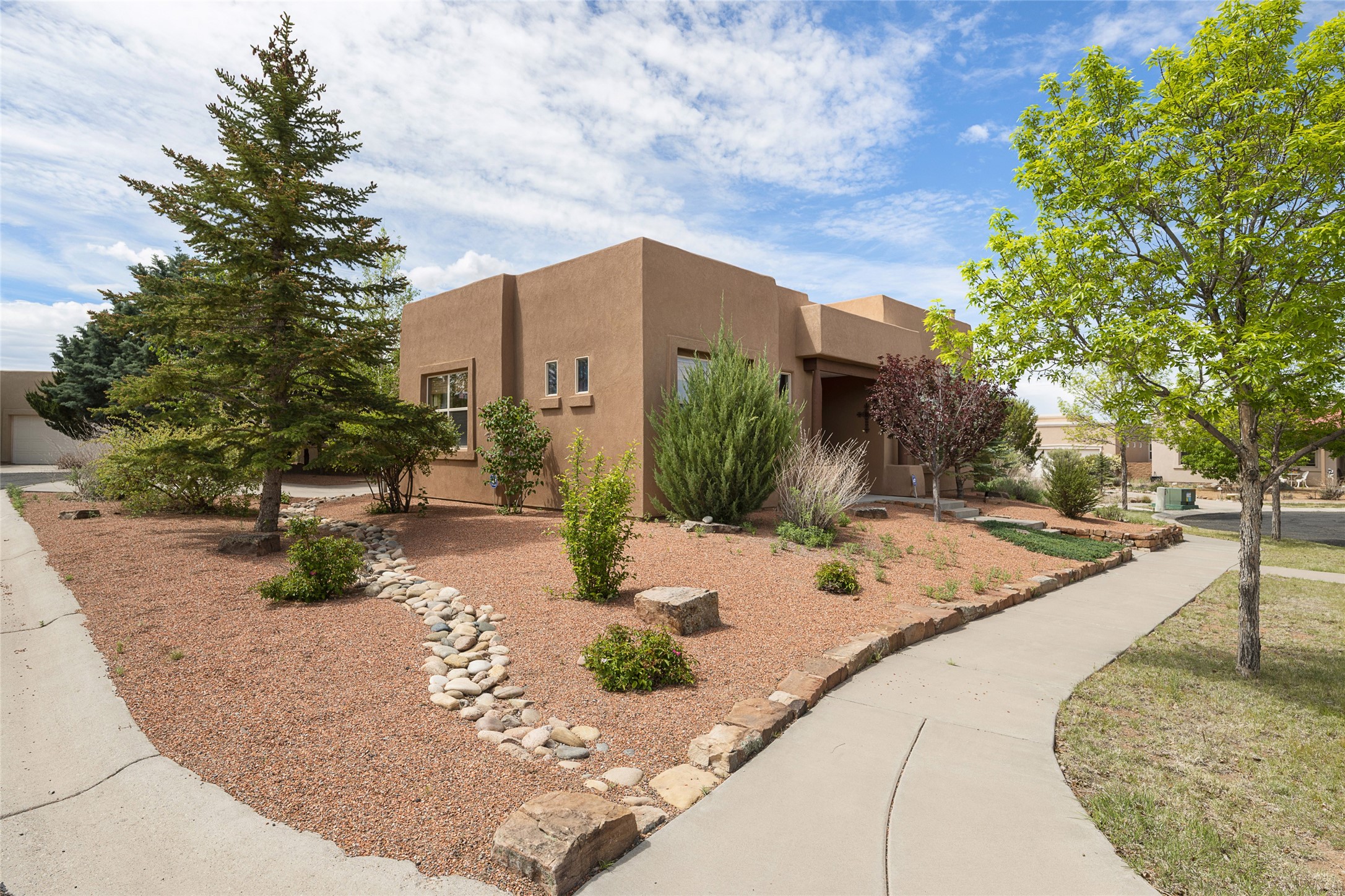 Lovely home in highly sought-after neighborhood of Rancho Viejo! Light and bright home on quiet cul de sac. This home has many upgrades including Saltillo tile, plaster walls, wood lined ceilings and kiva fireplace in main living area. Kitchen stainless steel appliances and direct access from the garage. There are 3 bedrooms with nice separation of the bedrooms. The bathrooms have been beautifully upgraded with a Santa Fe flare showcasing Talavera sinks. This home is move in ready with a landscaped backyard. Quiet and serene location backs to green belt and open space with access to the miles of paved trails the community has to offer. All while being a short distance to shopping centers, restaurants and the 599/I-25. Come see this Rancho Viejo gem today!