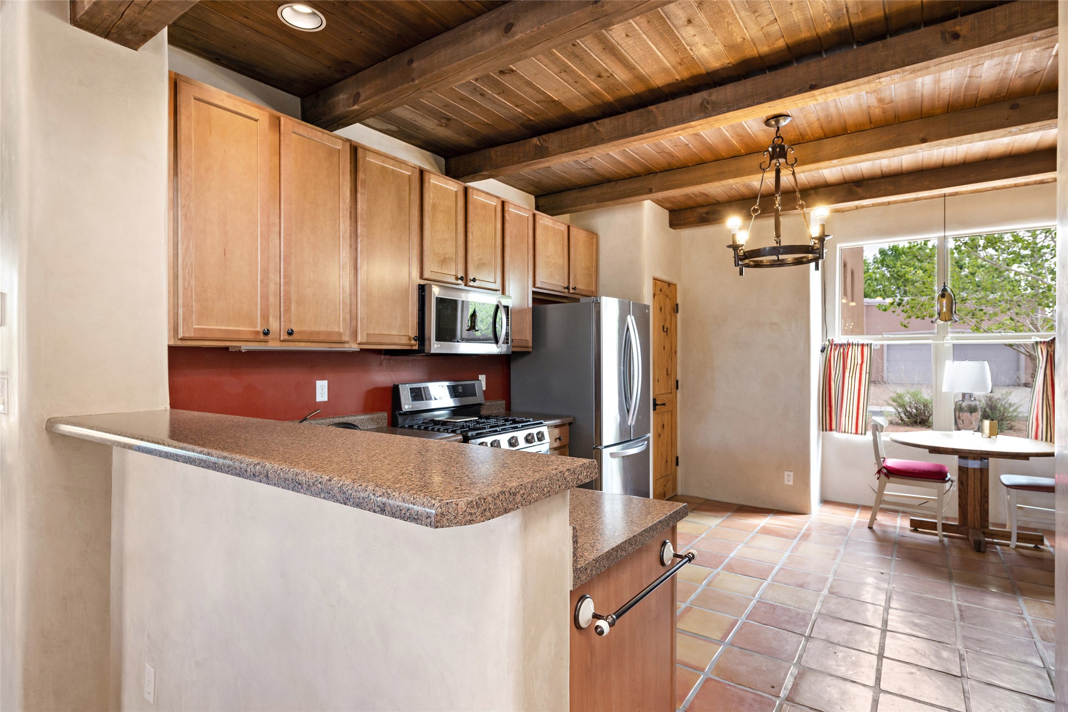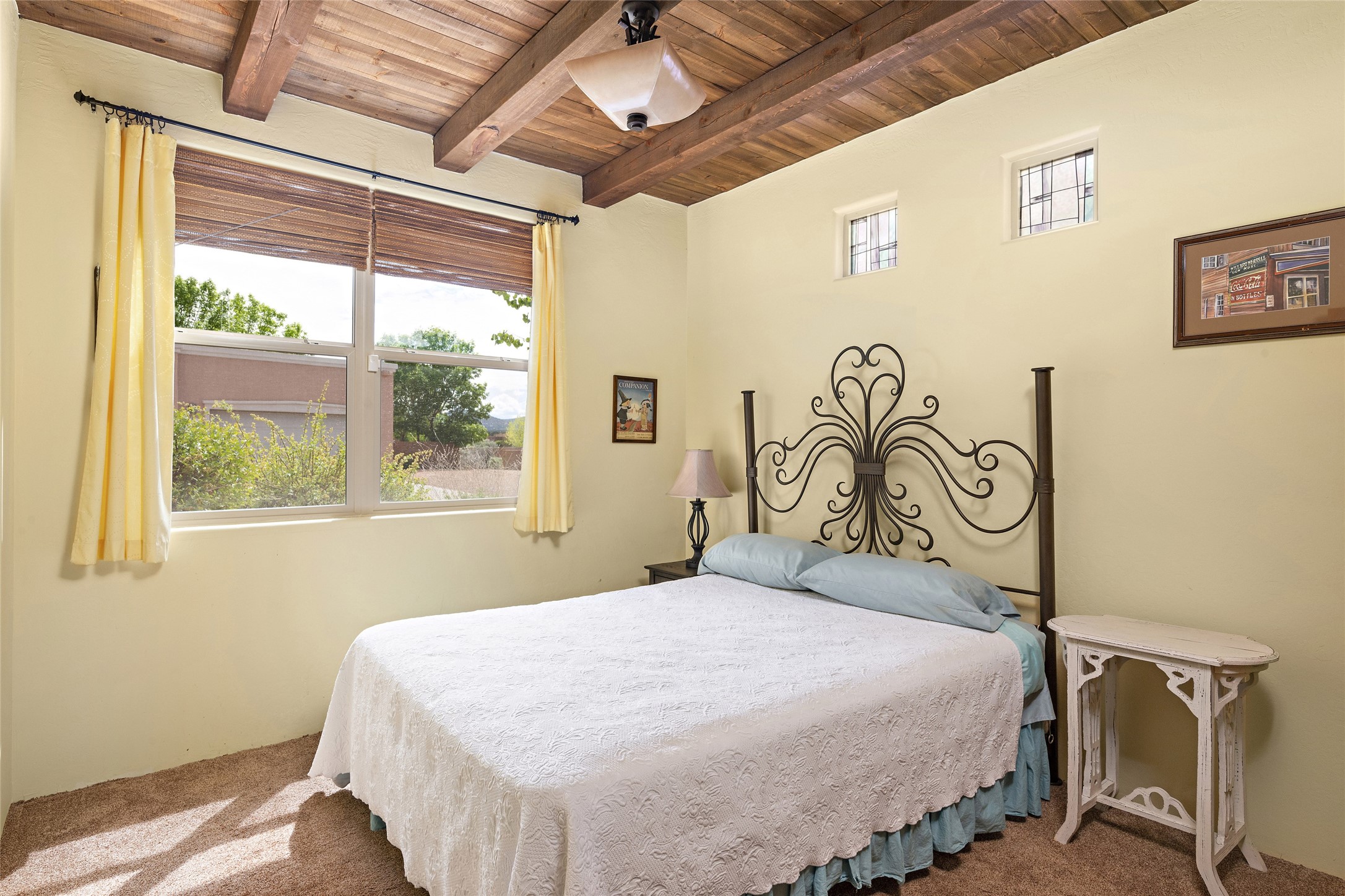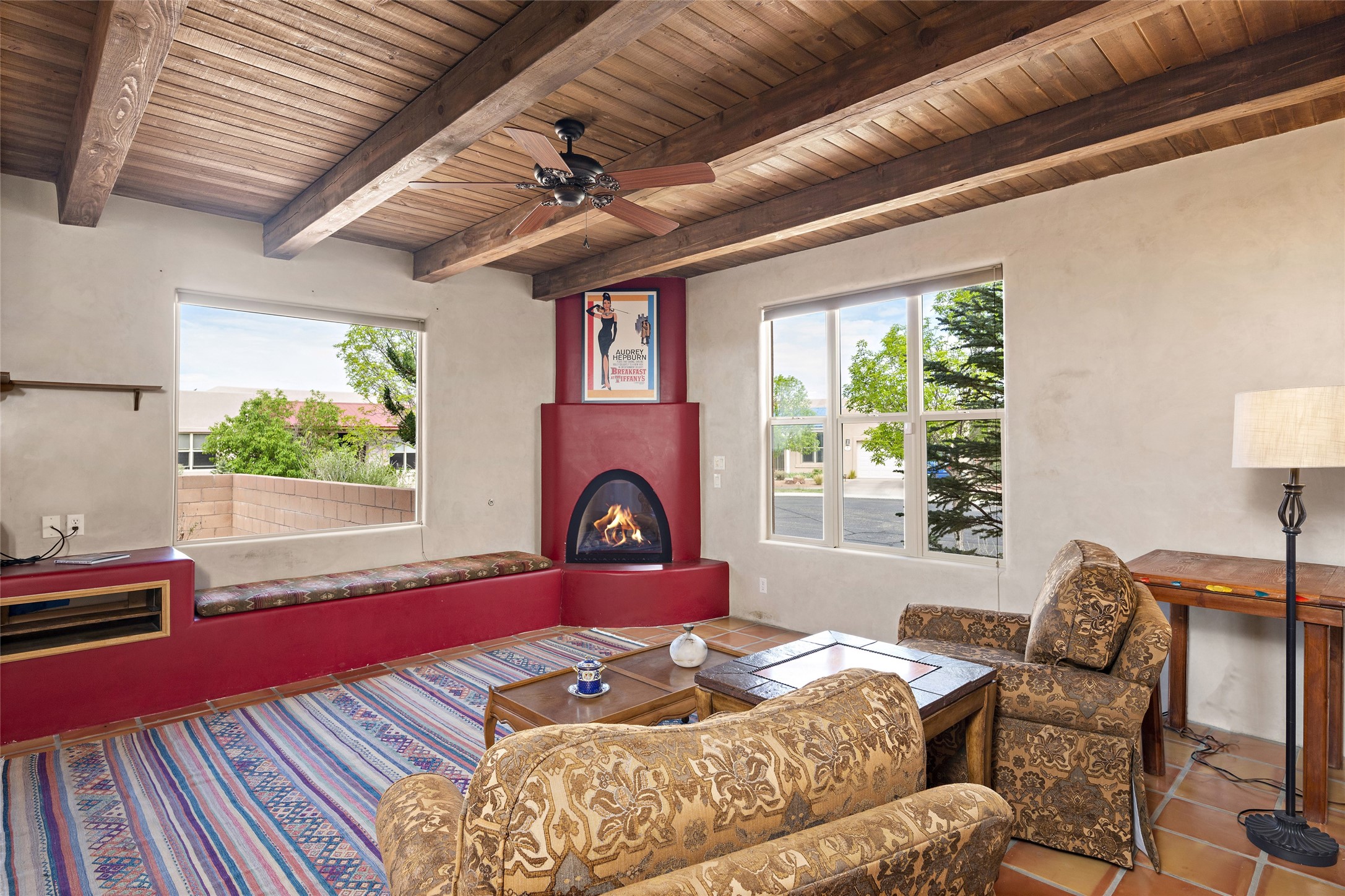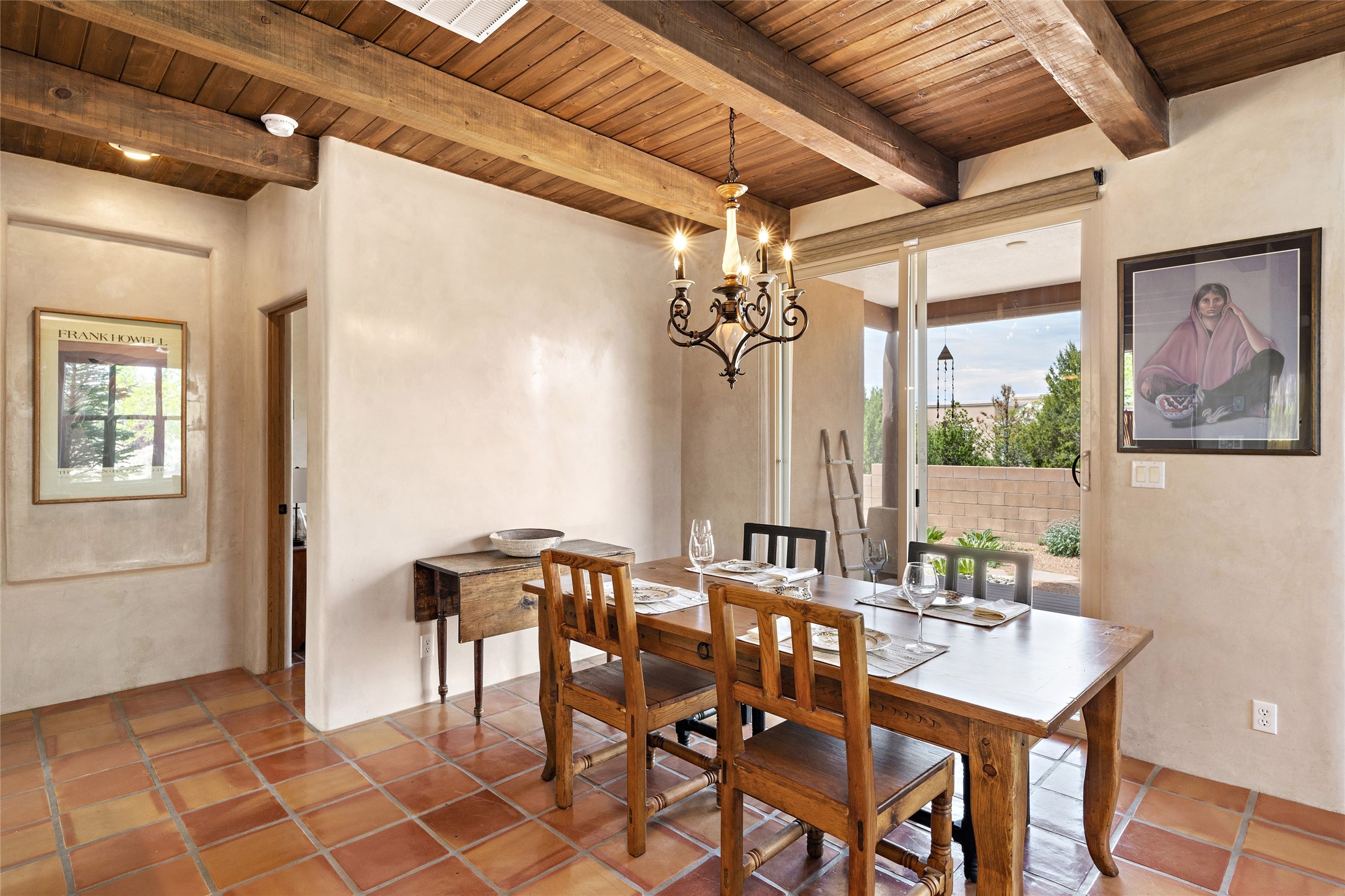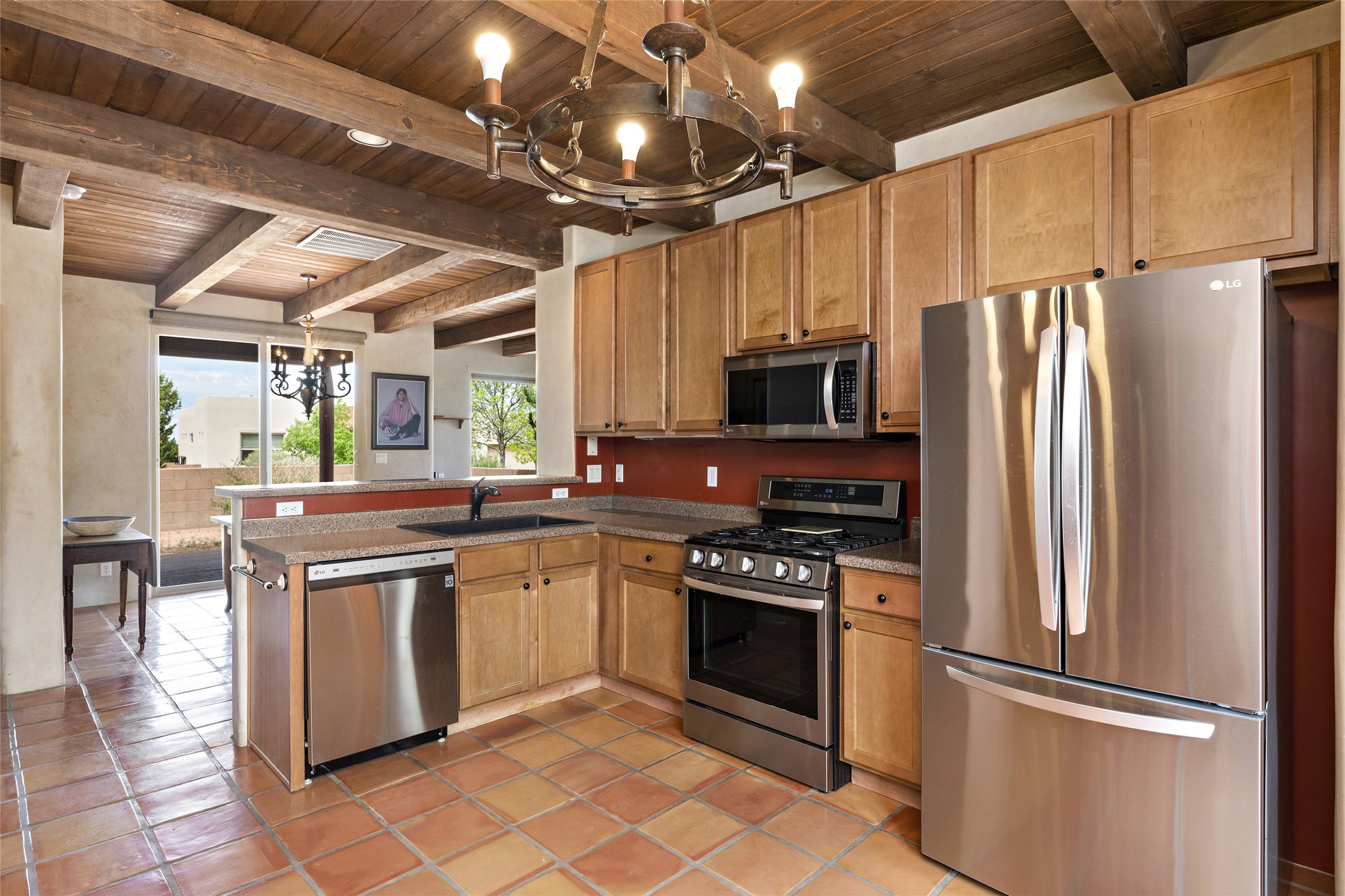 Lovely home in highly sought-after neighborhood of Rancho Viejo! Light and bright home on quiet cul de sac. This home has many upgrades including Saltillo tile, plaster walls, wood lined ceilings and kiva fireplace in main living area. Kitchen stainless steel appliances and direct access from the garage. There are 3 bedrooms with nice separation of the bedrooms. The bathrooms have been beautifully upgraded with a Santa Fe flare showcasing Talavera sinks. This home is move in ready with a landscaped backyard. Quiet and serene location backs to green belt and open space with access to the miles of paved trails the community has to offer. All while being a short distance to shopping centers, restaurants and the 599/I-25. Come see this Rancho Viejo gem today!