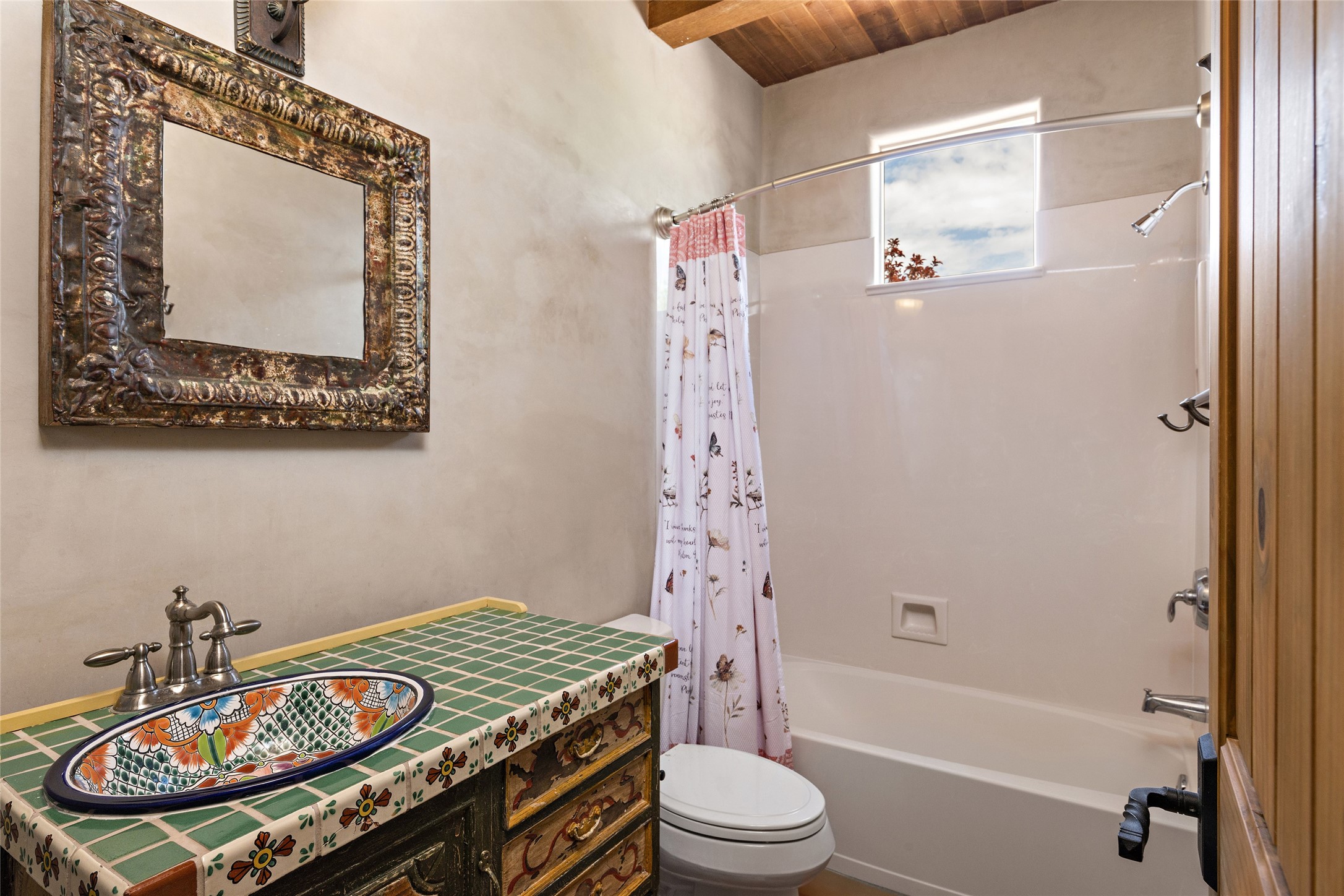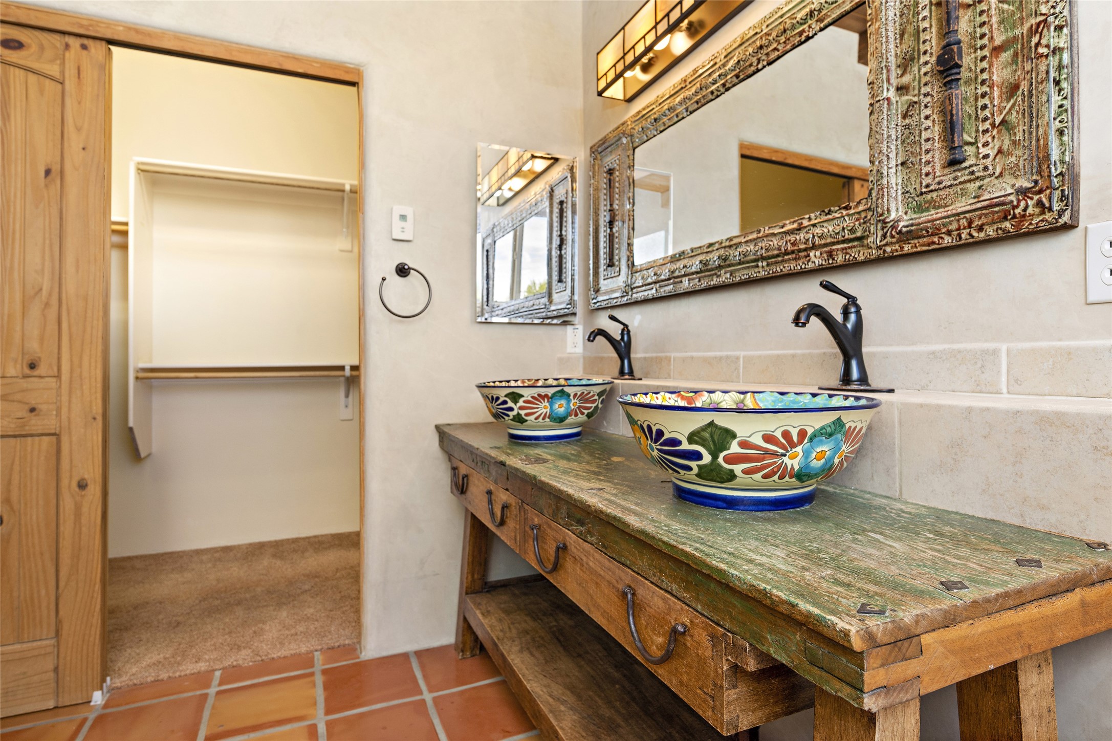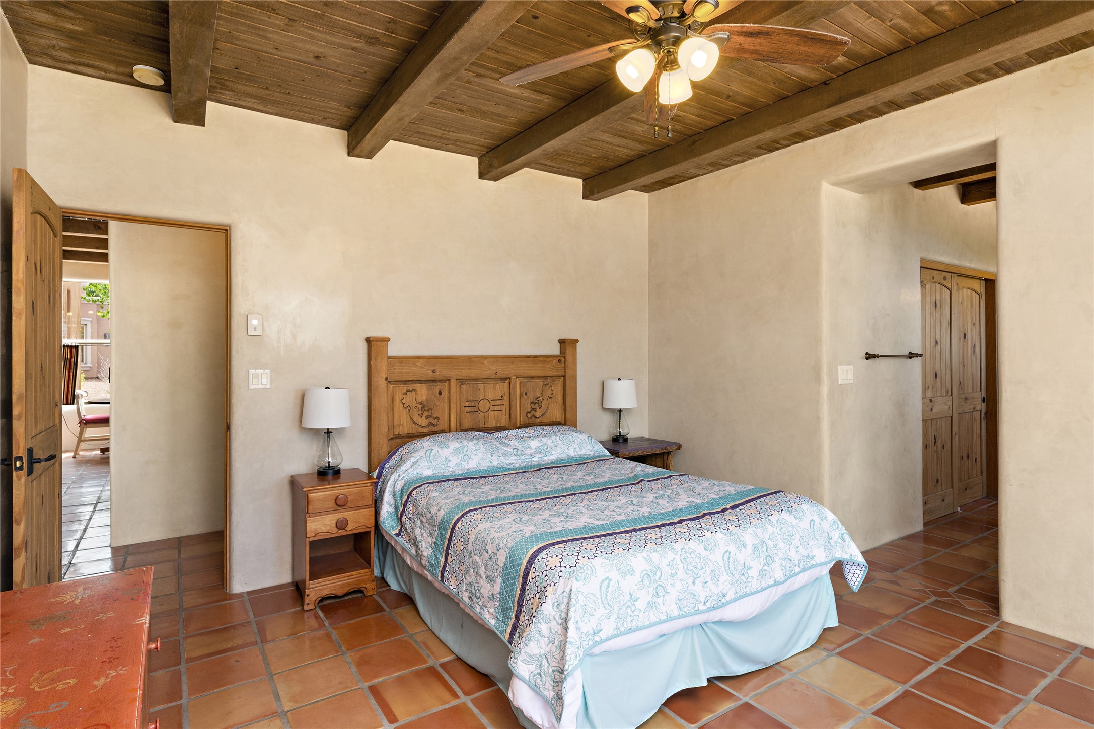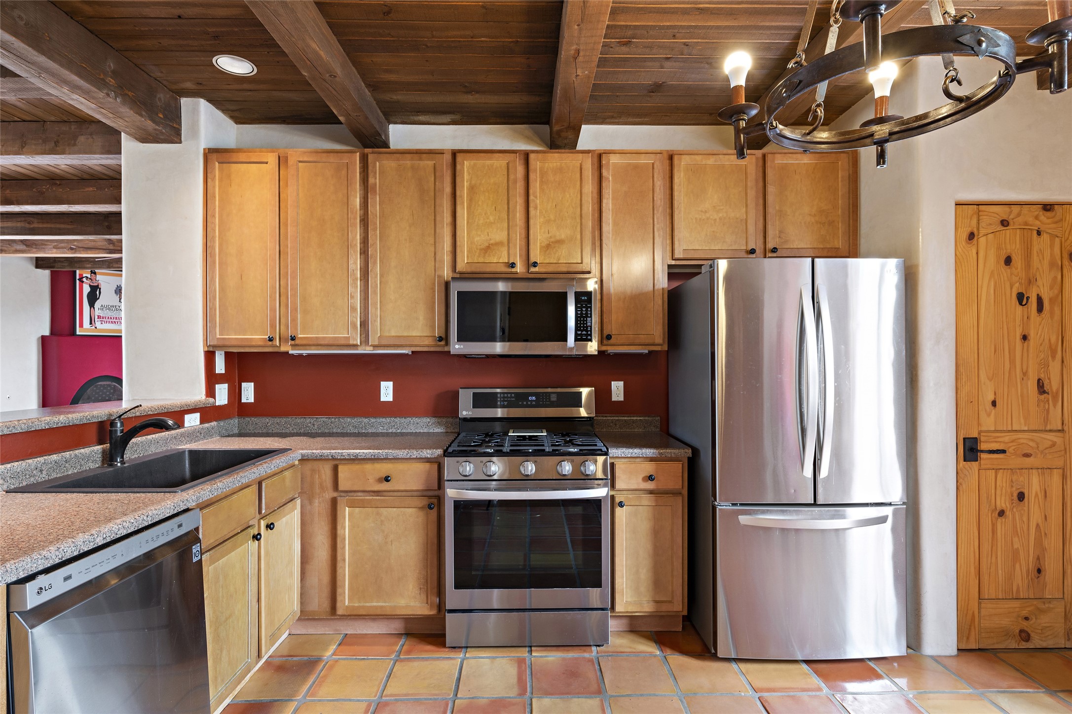 Lovely home in highly sought-after neighborhood of Rancho Viejo! Light and bright home on quiet cul de sac. This home has many upgrades including Saltillo tile, plaster walls, wood lined ceilings and kiva fireplace in main living area. Kitchen stainless steel appliances and direct access from the garage. There are 3 bedrooms with nice separation of the bedrooms. The bathrooms have been beautifully upgraded with a Santa Fe flare showcasing Talavera sinks. This home is move in ready with a landscaped backyard. Quiet and serene location backs to green belt and open space with access to the miles of paved trails the community has to offer. All while being a short distance to shopping centers, restaurants and the 599/I-25. Come see this Rancho Viejo gem today!