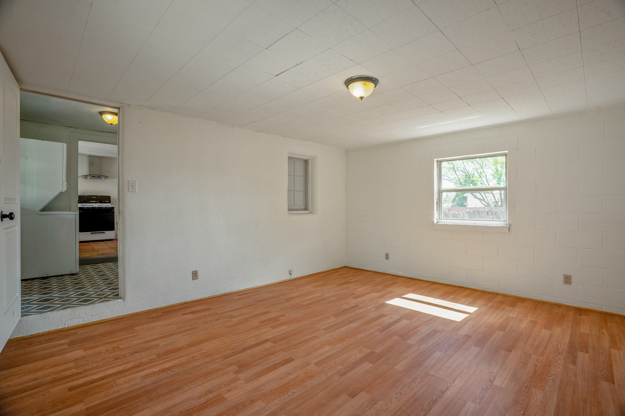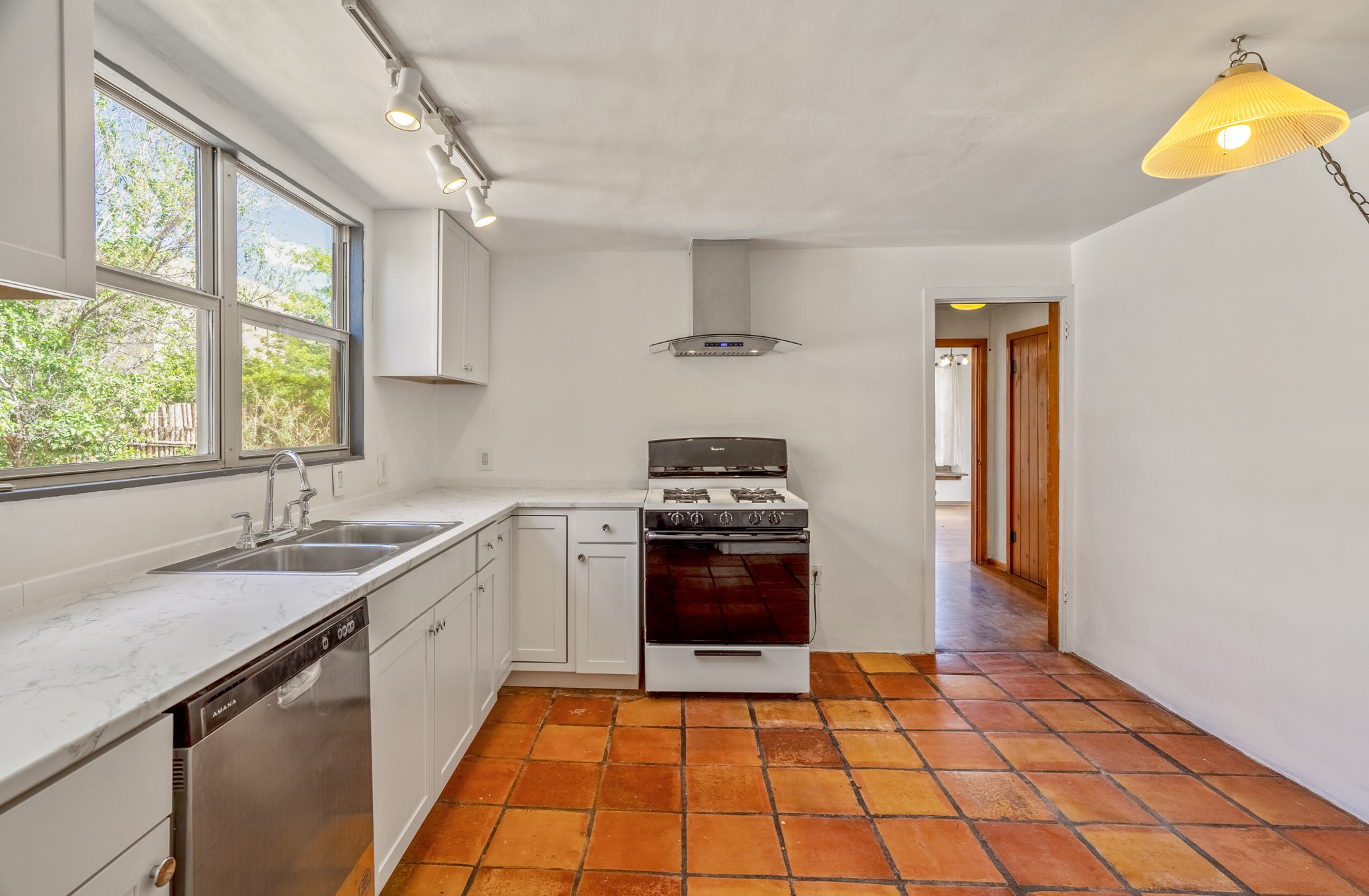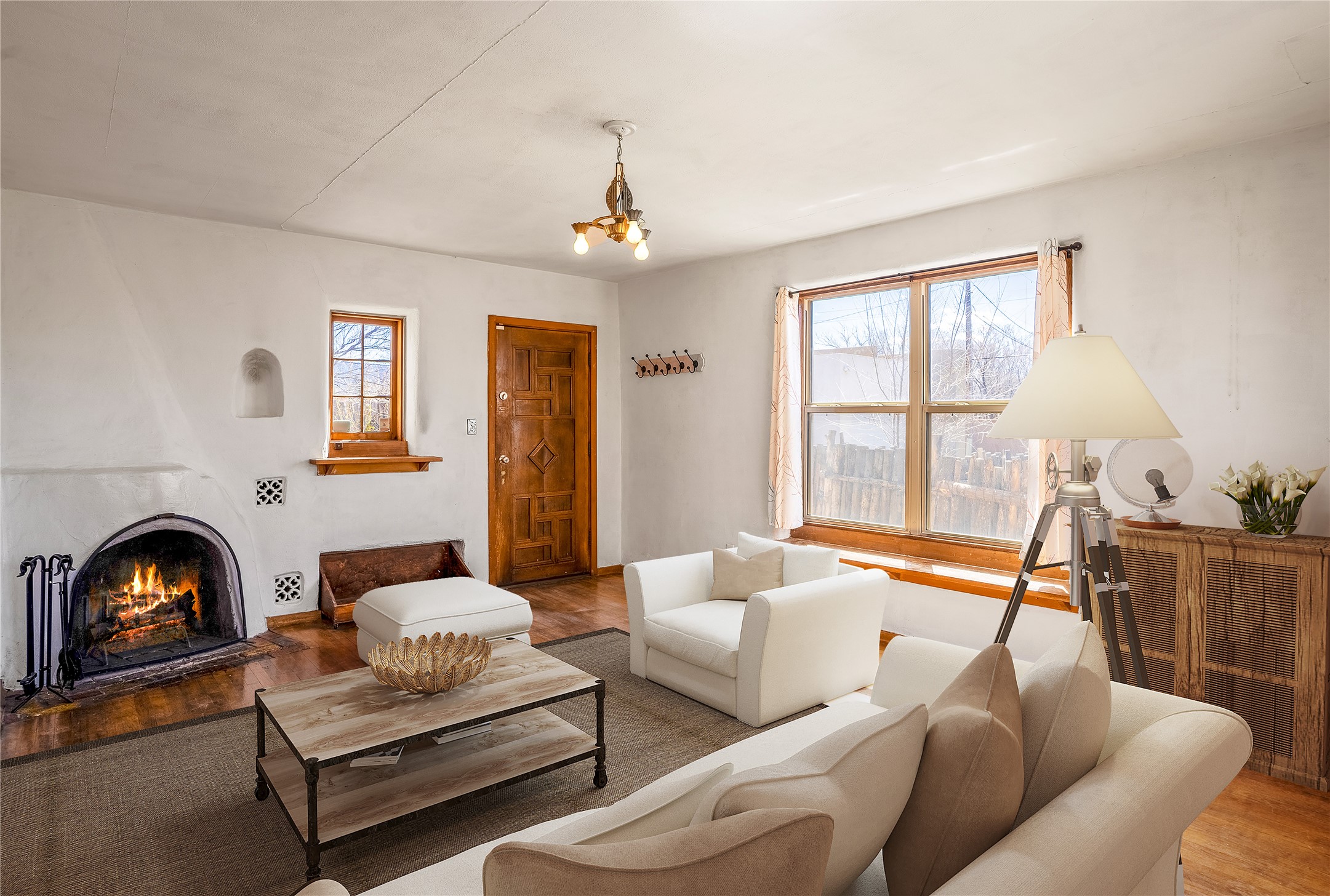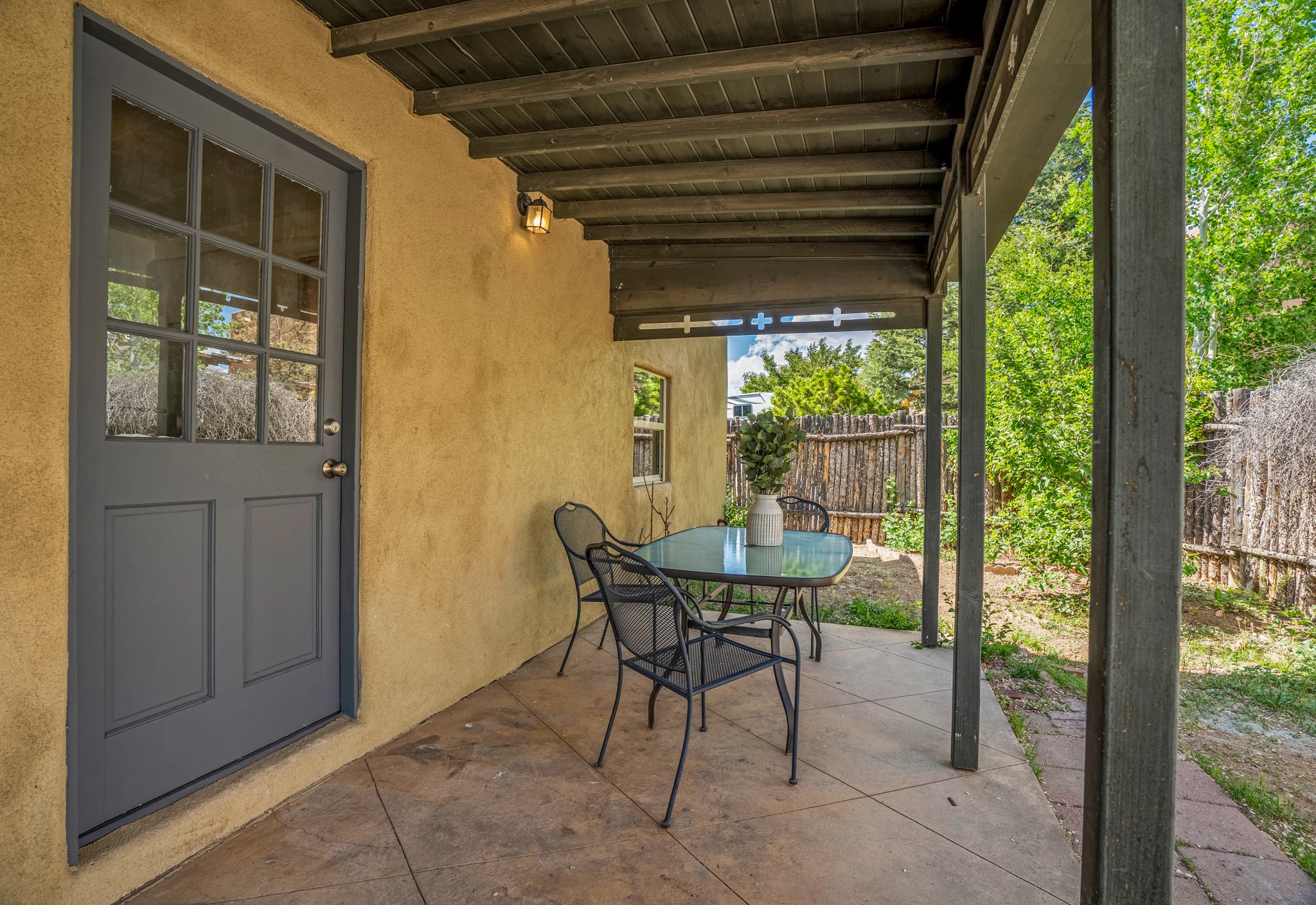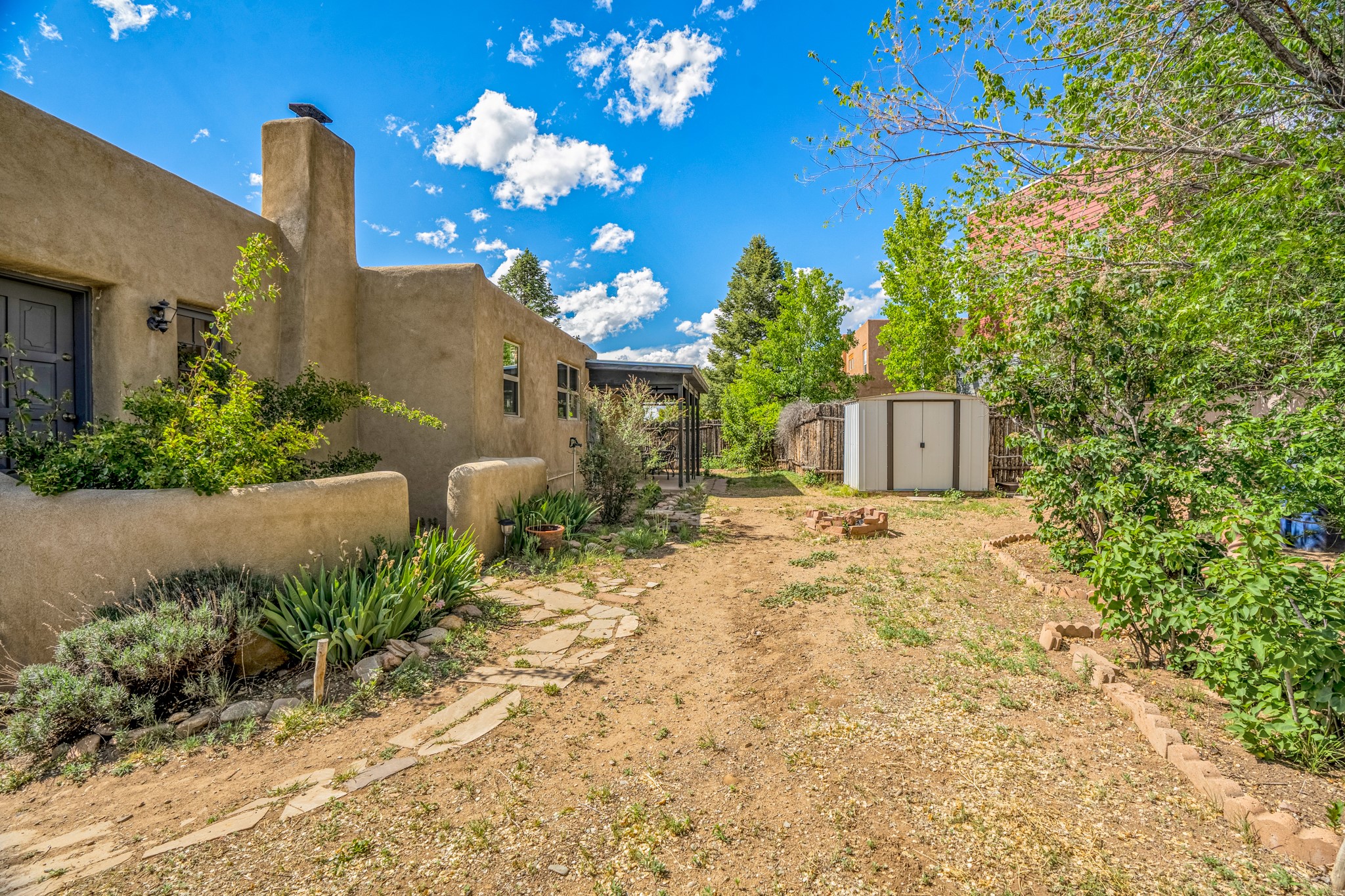 This attractive, 1,200 sq ft, home has been recently updated and is move-in ready. It features a remodeled kitchen and bath, a new TPO roof, recent stucco job, hard wood floors, and many other functional and aesthetic improvements. Located on Ferguson Lane, a peaceful enclave next to Frenchy's Field with easy access to the Santa Fe River trail, the home is in an ideal location near services and a short 10 minute drive from the Plaza. The home has an adobe core, but with newer windows and upgrades making it ready for you today. A private backyard and patio offers flexible outdoor uses. The property offers ample parking, with the potential for a possible future garage or guest house.