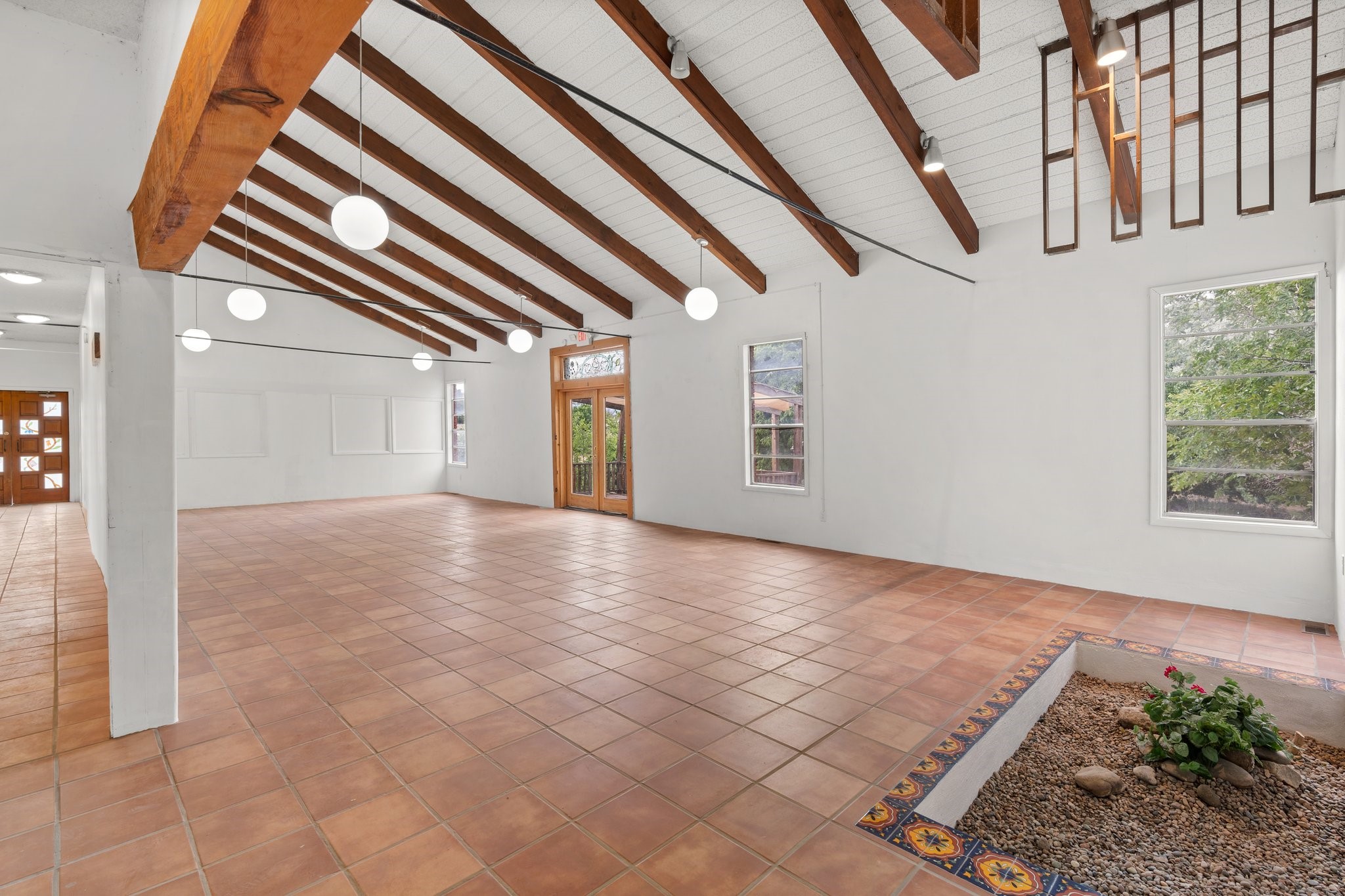 Fantastic Location! Spacious Brick Building, originally built and used as a place of worship and then a Montessori-modeled, open concept/charter school. This property can be seen from the highway. 2 heating and cooling zones, newer hot water heater and 2 newer HVAC units. The building is split down the middle with large spaces on either side.Spacious kitchen, formal front foyer, w/ attached separate office space, and great room with vaulted ceilings and beams.Directly off great room is a lovely private garden area w/ several varieties of mature fruit trees and ornamental landscaping.Unique opportunities for potential commercial/live/work. Could be great for a new/existing business. Possibility of converting into a spacious residence (with SF County approval). Property is over an acre and includes a large parking area and landscaping. This is a rare property that has great flexibility for many opportunities.