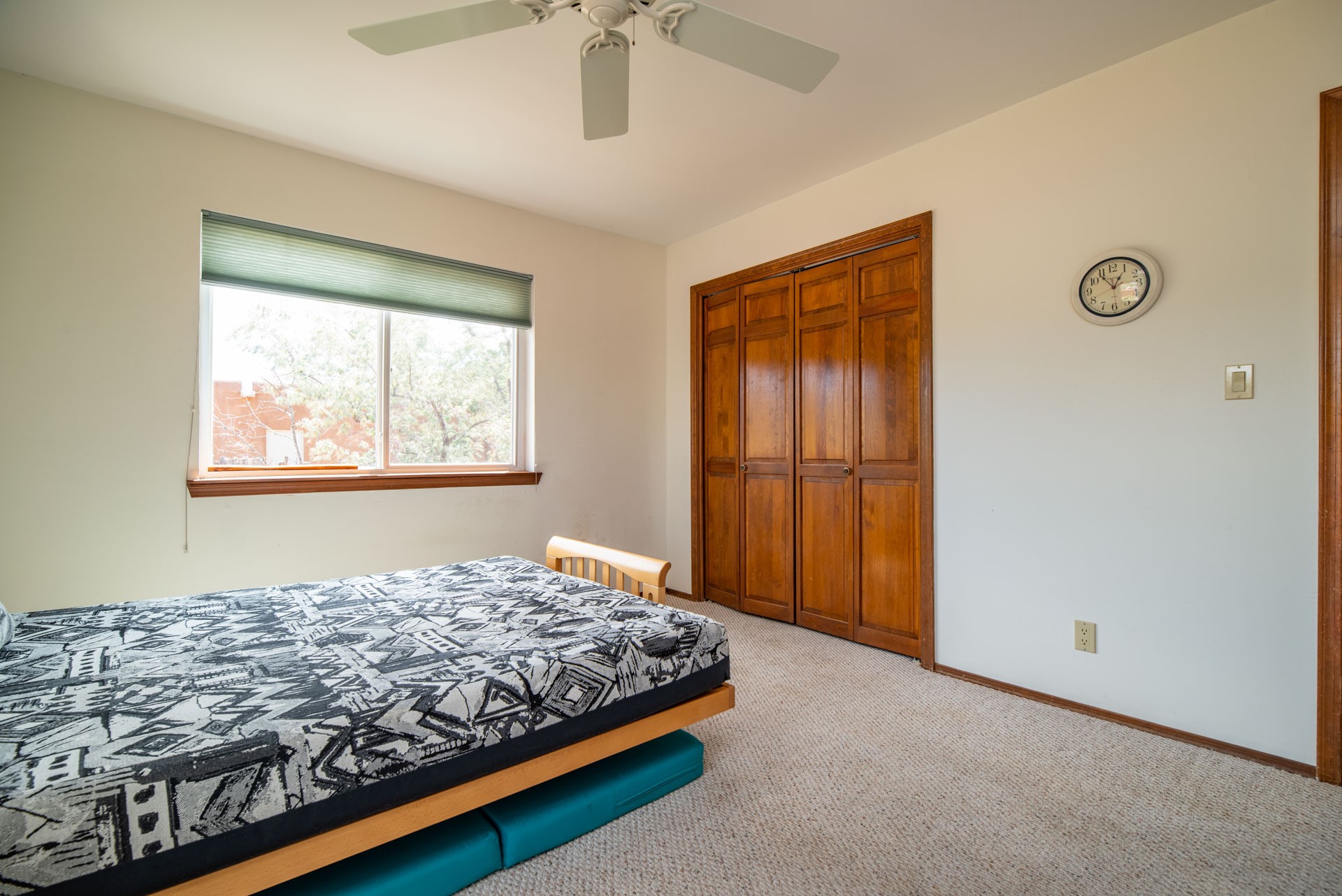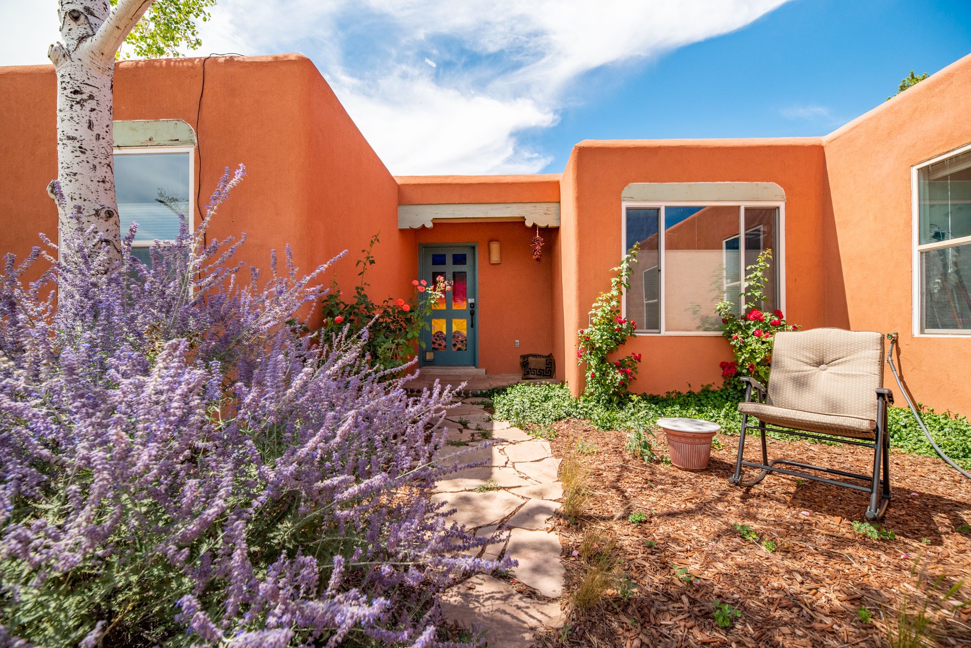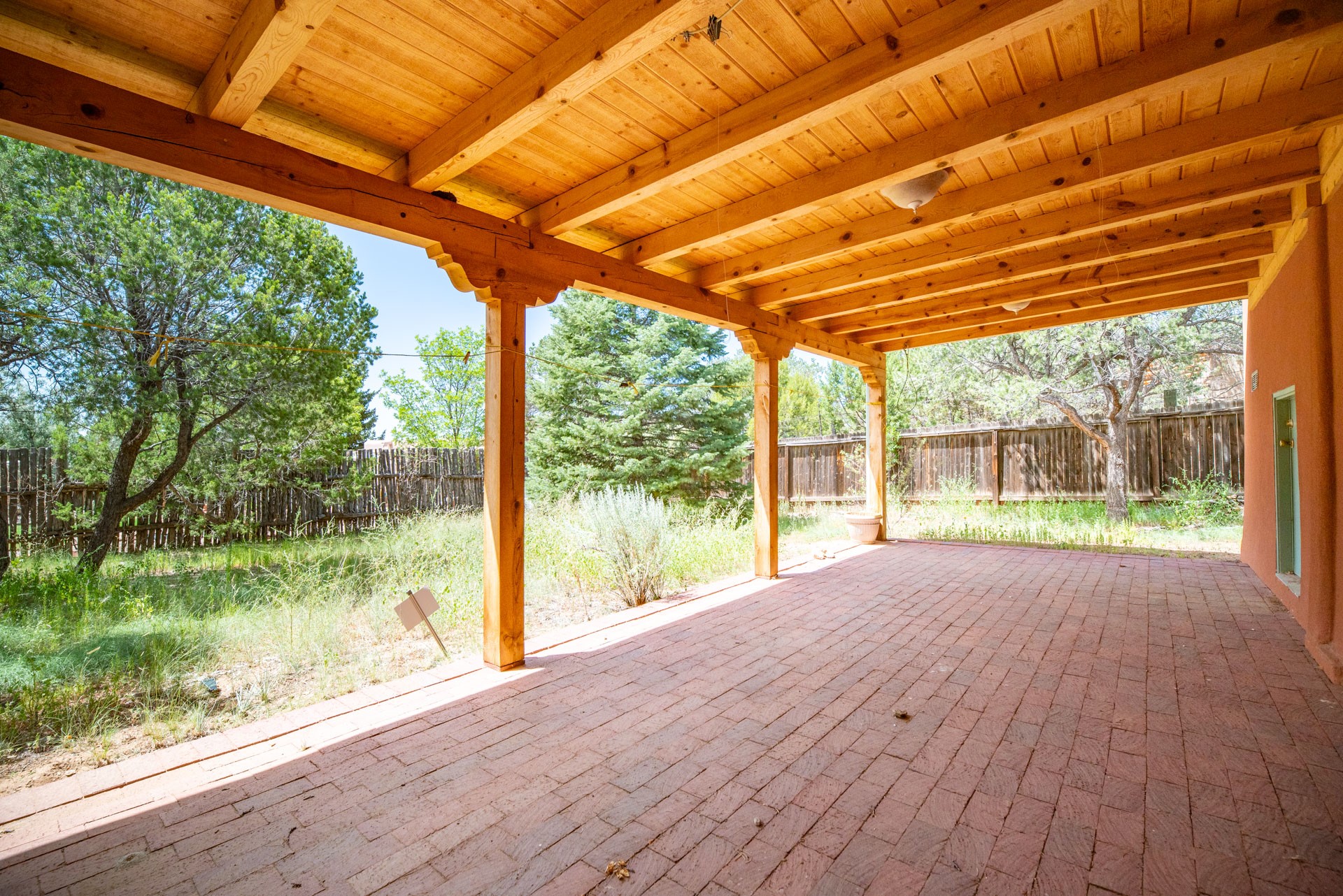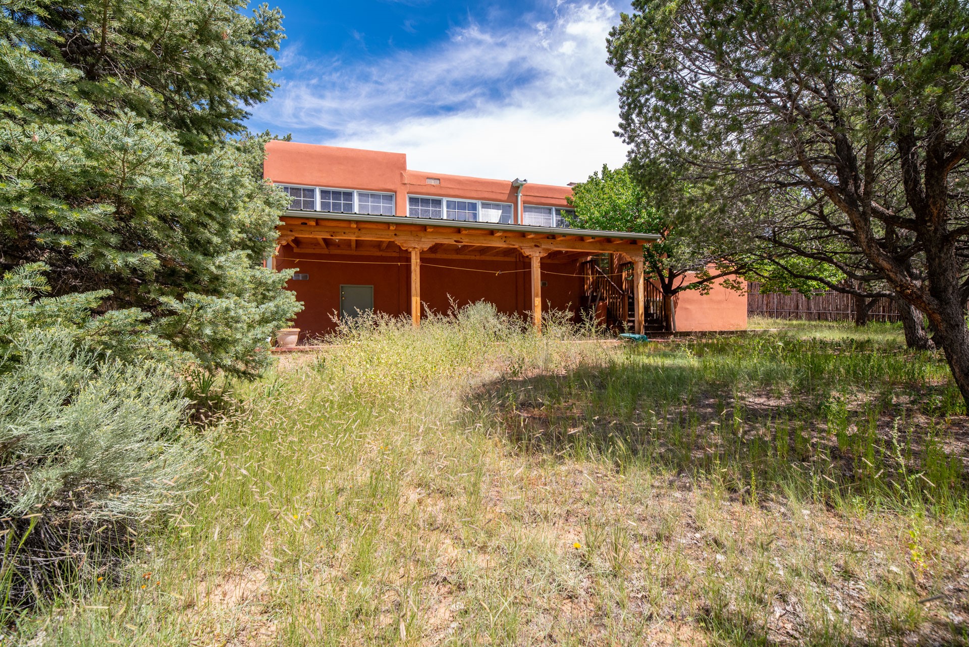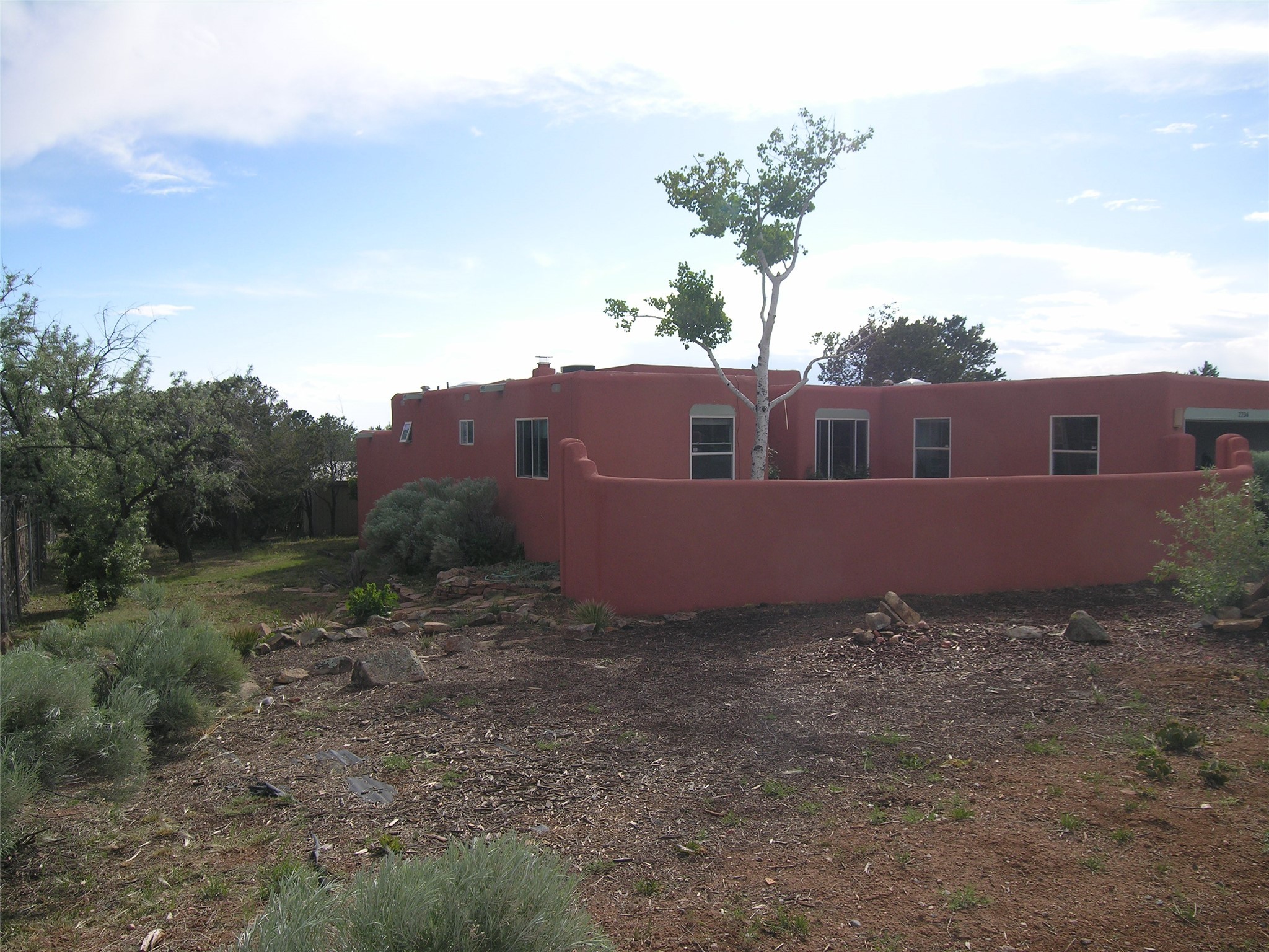 This lovely 2BR 2Ba residence with an in-home office is waiting for a new owner to make it their own. The home needs renovation work, has some condition concerns, but has character, with vigas, a kiva fireplace, a step-down living room with wood floors, opening to a large and airy enclosed sunroom. The kitchen has been modified to create a more open floorplan and there's central AC throughout the house. The lot is almost 1/3 acre of tree covered privacy with an open front entry courtyard and views of sun and moon mountains. The rear yard area offers a custom storage shed and a large, covered brick patio with lighting and power for outdoor seating and entertaining. A 2 car direct entry garage completes the package.An estate sale with NO seller disclosure statement. Seller acknowledges the property condition and has priced the property accordingly.