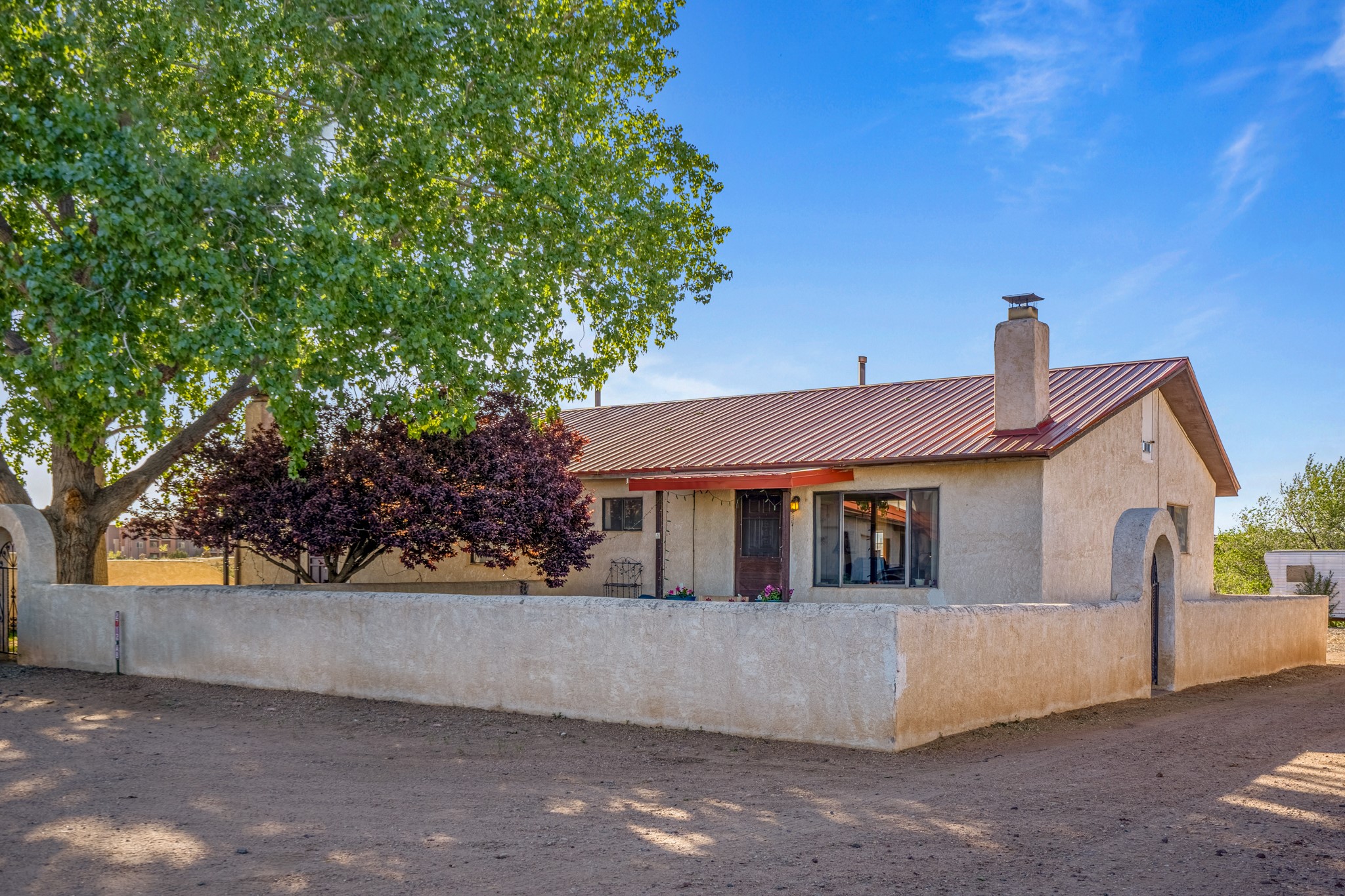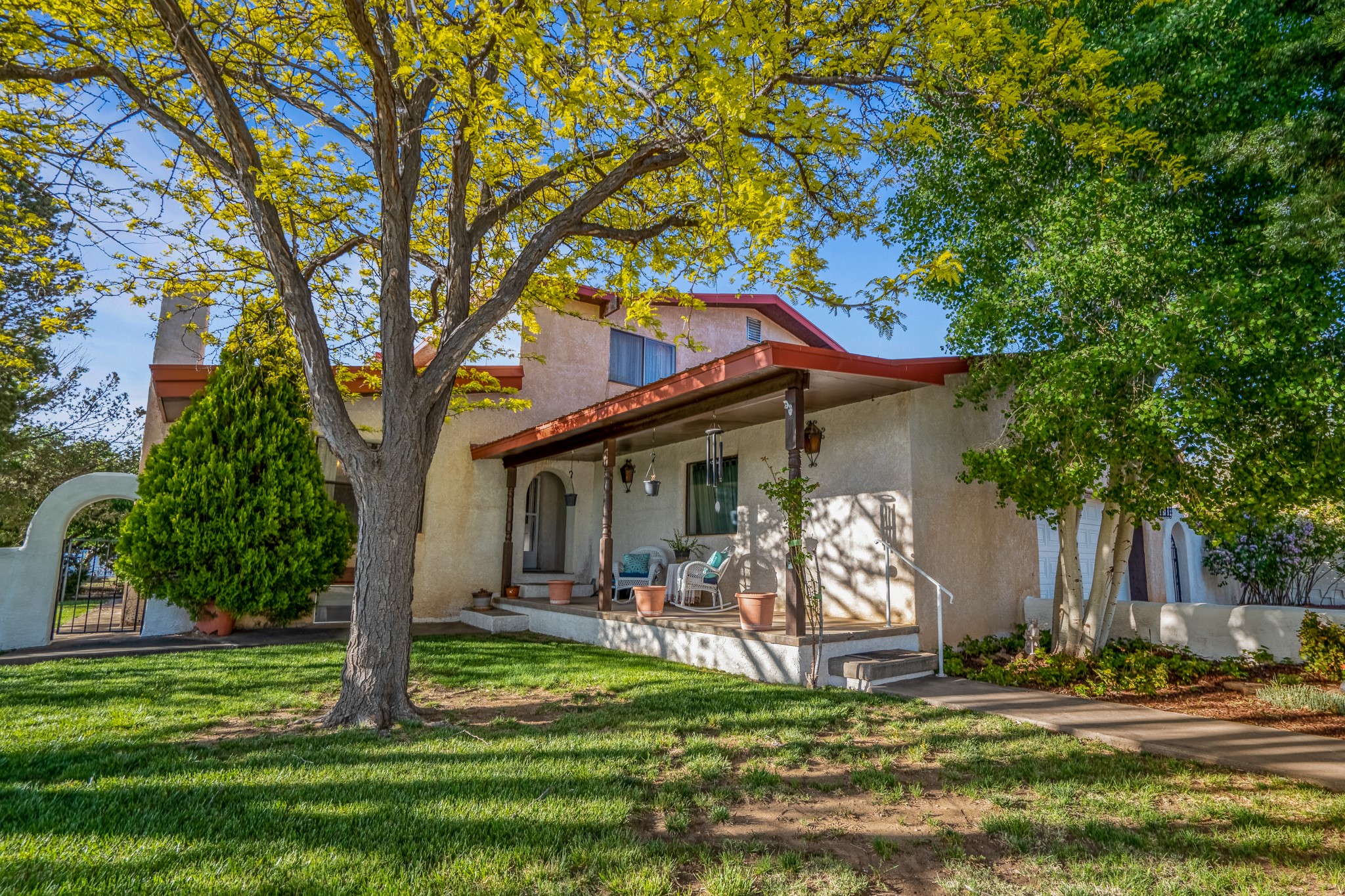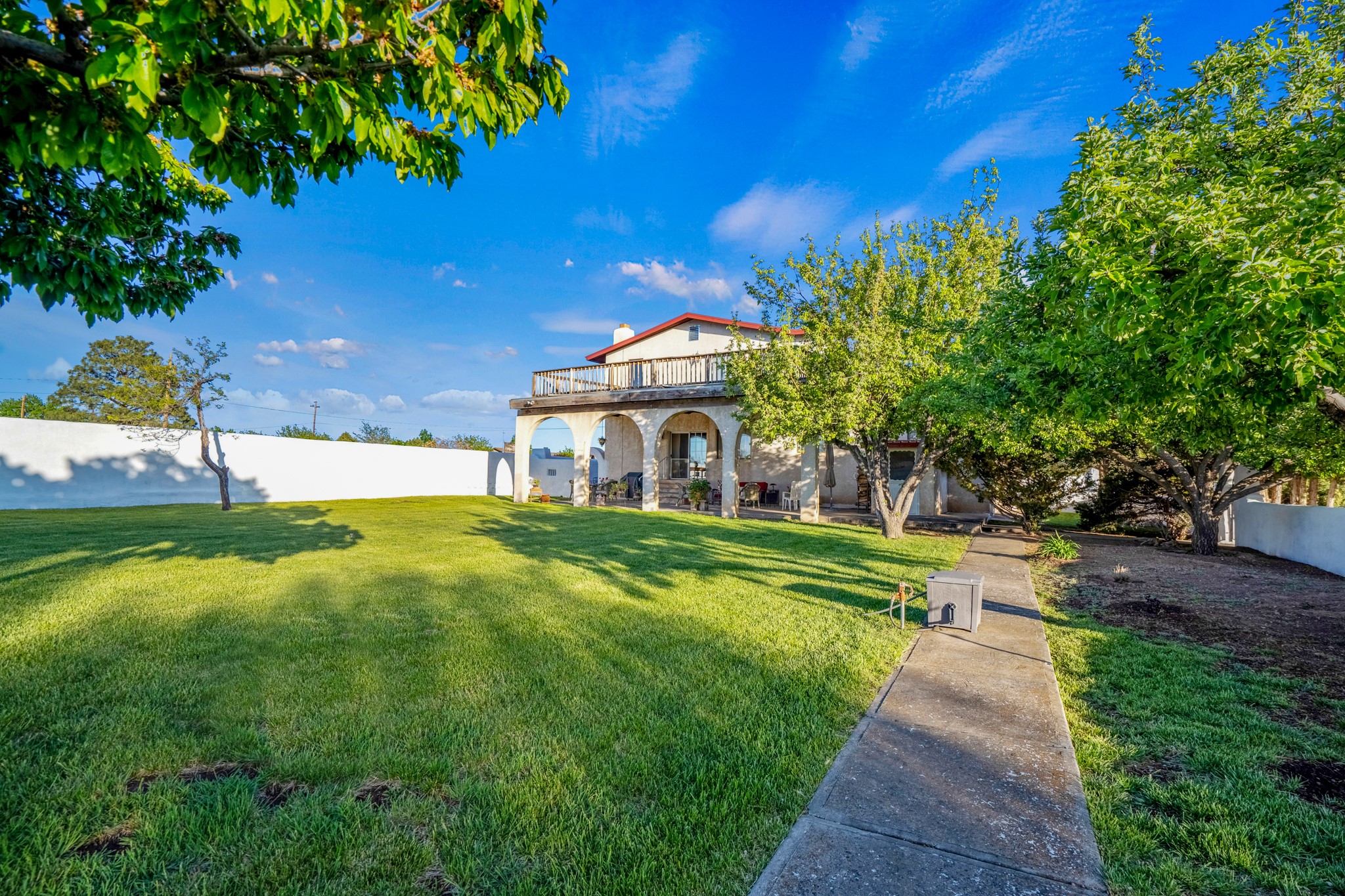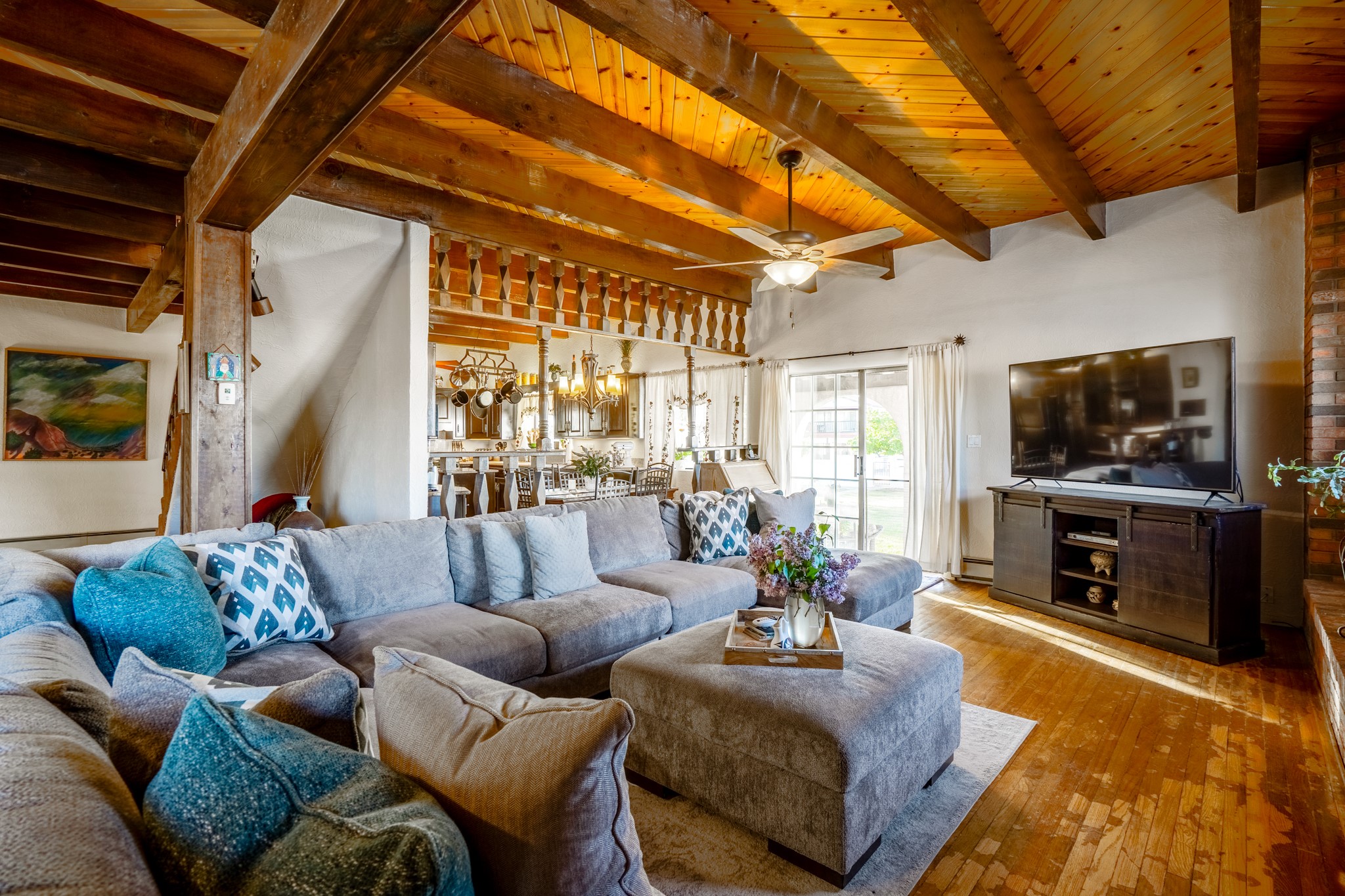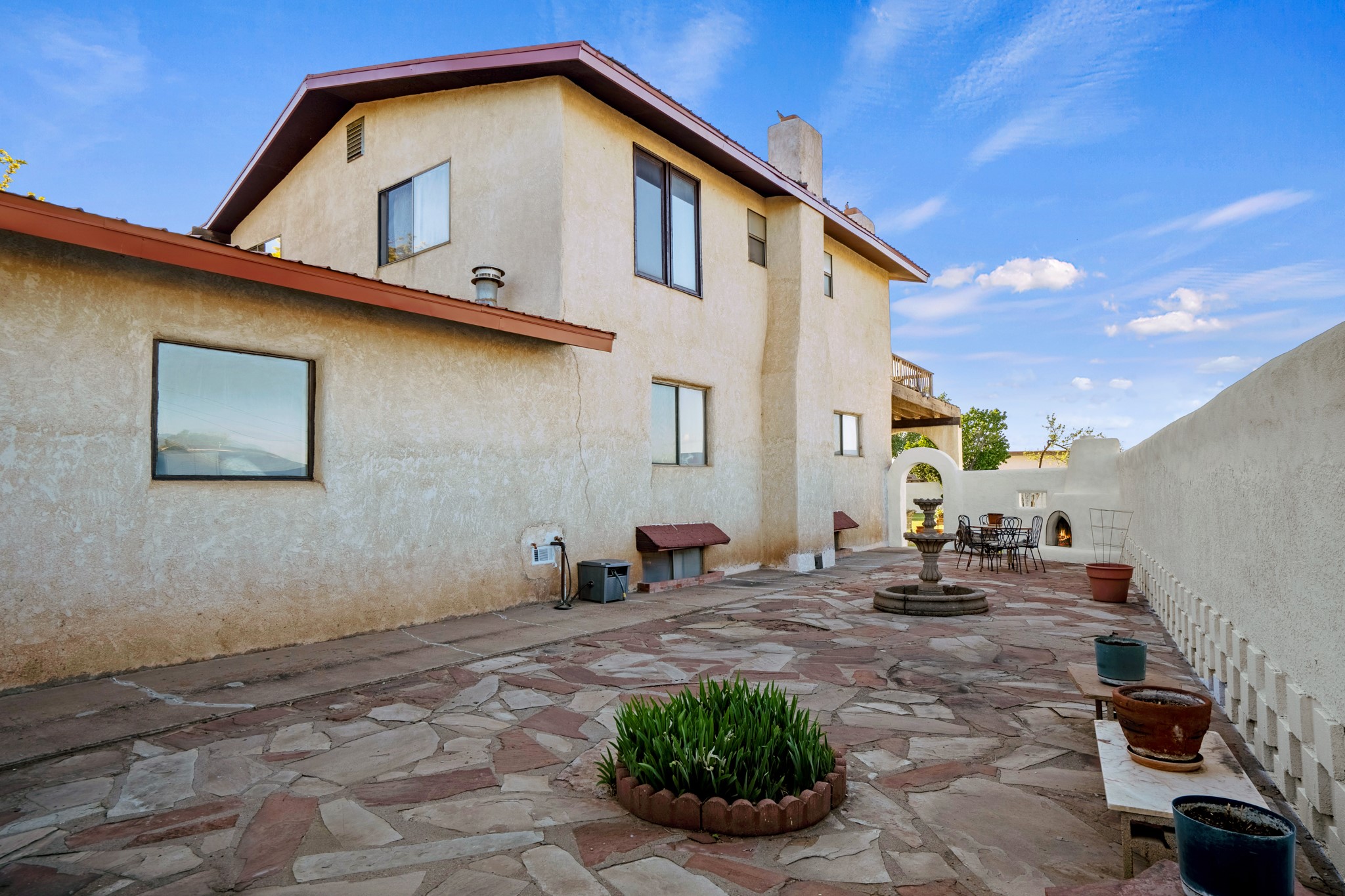 Seller Financing Considered. Main home and 5 rental units on a long 1.48 acre lot backing up to the Santa Fe River. NEW CITY SEWER LINE AND AGUA FRIA VILLAGE WATER LINE FOR THE WHOLE PROPERTY JUST INSTALLED, AN OVER $100K IMPROVEMENT. Existing well for watering the landscaping with 4 spickets in various spots. The main home features three levels with four bedrooms, three baths, two living rooms, dining room, finished basement, a two car garage, walled backyard, front yard, side patio, and a large redwood deck off the master bedroom that was just rebuilt. The interior features skylights, beams, tongue and groove ceilings in a herringbone pattern, and custom carved wood staircases. The finished basement contains a huge family room with a kiva fireplace, windows all around, one bedroom with a sitting area and stairwell to access the backyard. The large backyard has lush grass, grape vines, and fruit trees including peach, cherry, green apple, red apple, apricot. Duplex with matching 2 bed 1 bath units with front yard and fireplace. The triplex consists of a 1 bed 1 bath unit with a front yard, a 1 bed 1 bath unit with a balcony, and a 2 bed 1 bath with a two car a garage. On the property there is also a separate detached oversized one car garage. Main house is approximately 3,226 sq ft. Units in the duplex are approximately 987 sq ft each. The triplex has two 936 sq ft units and one 1,033 sq ft unit. All square footages are according to an appraisal done in 1996, buyer to verify. This property has character, large square footage, and high-income producing potential!