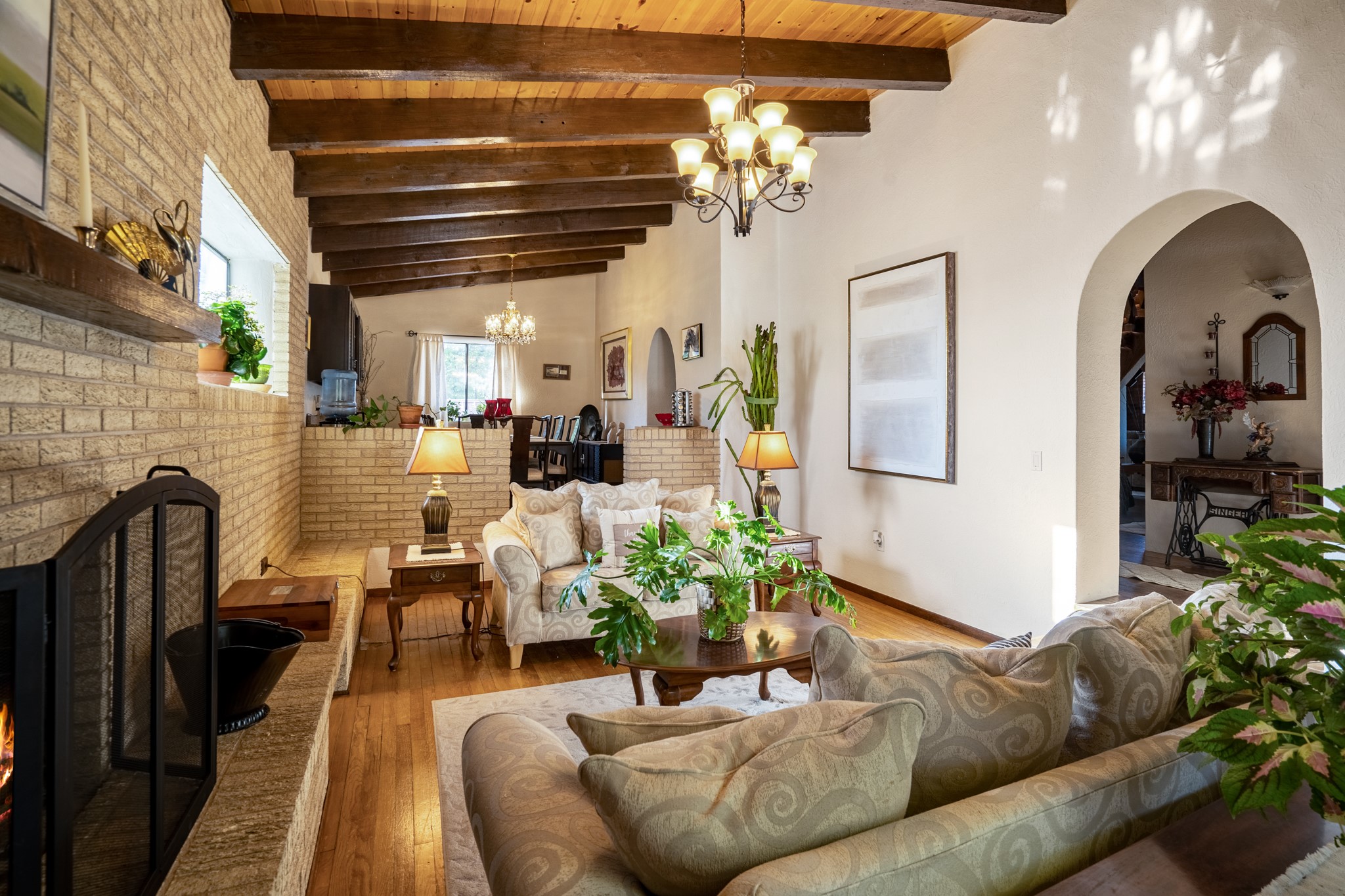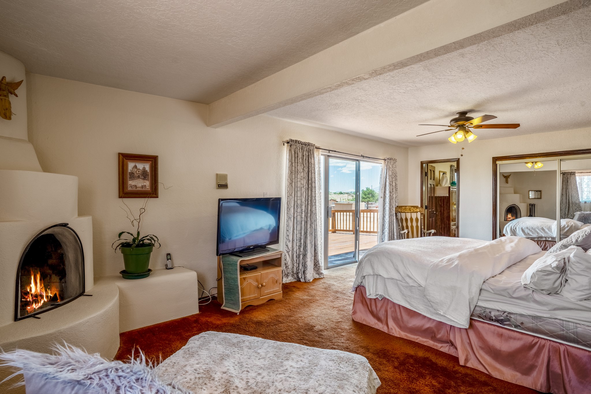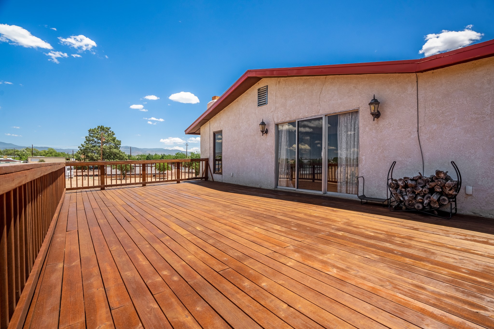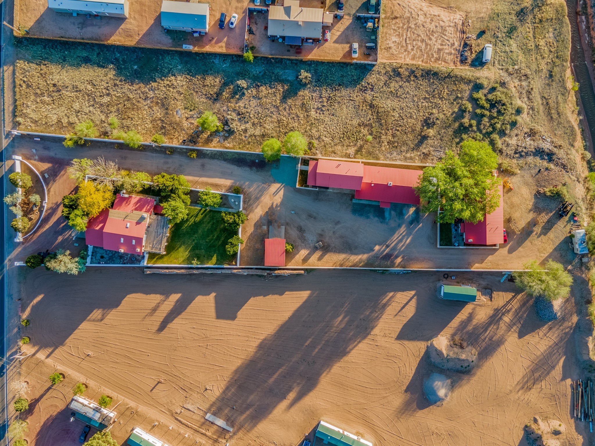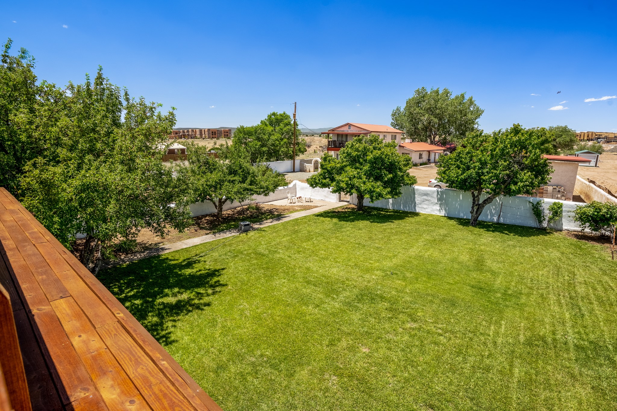 Seller Financing Considered. Main home and 5 rental units on a long 1.48 acre lot backing up to the Santa Fe River. NEW CITY SEWER LINE AND AGUA FRIA VILLAGE WATER LINE FOR THE WHOLE PROPERTY JUST INSTALLED, AN OVER $100K IMPROVEMENT. Existing well for watering the landscaping with 4 spickets in various spots. The main home features three levels with four bedrooms, three baths, two living rooms, dining room, finished basement, a two car garage, walled backyard, front yard, side patio, and a large redwood deck off the master bedroom that was just rebuilt. The interior features skylights, beams, tongue and groove ceilings in a herringbone pattern, and custom carved wood staircases. The finished basement contains a huge family room with a kiva fireplace, windows all around, one bedroom with a sitting area and stairwell to access the backyard. The large backyard has lush grass, grape vines, and fruit trees including peach, cherry, green apple, red apple, apricot. Duplex with matching 2 bed 1 bath units with front yard and fireplace. The triplex consists of a 1 bed 1 bath unit with a front yard, a 1 bed 1 bath unit with a balcony, and a 2 bed 1 bath with a two car a garage. On the property there is also a separate detached oversized one car garage. Main house is approximately 3,226 sq ft. Units in the duplex are approximately 987 sq ft each. The triplex has two 936 sq ft units and one 1,033 sq ft unit. All square footages are according to an appraisal done in 1996, buyer to verify. This property has character, large square footage, and high-income producing potential!