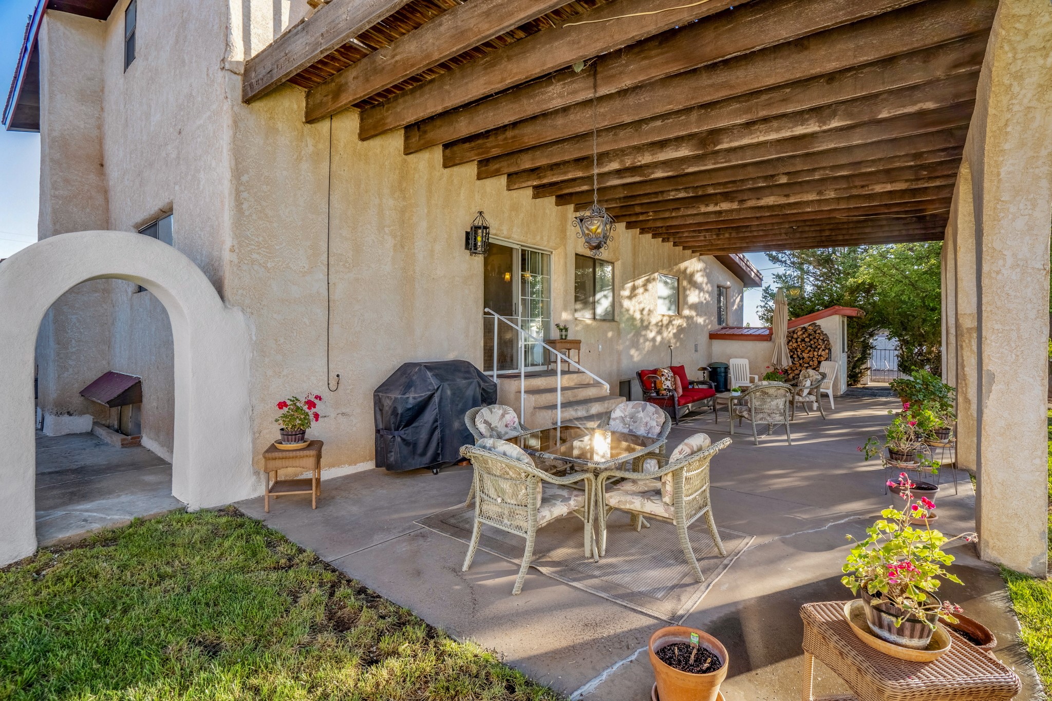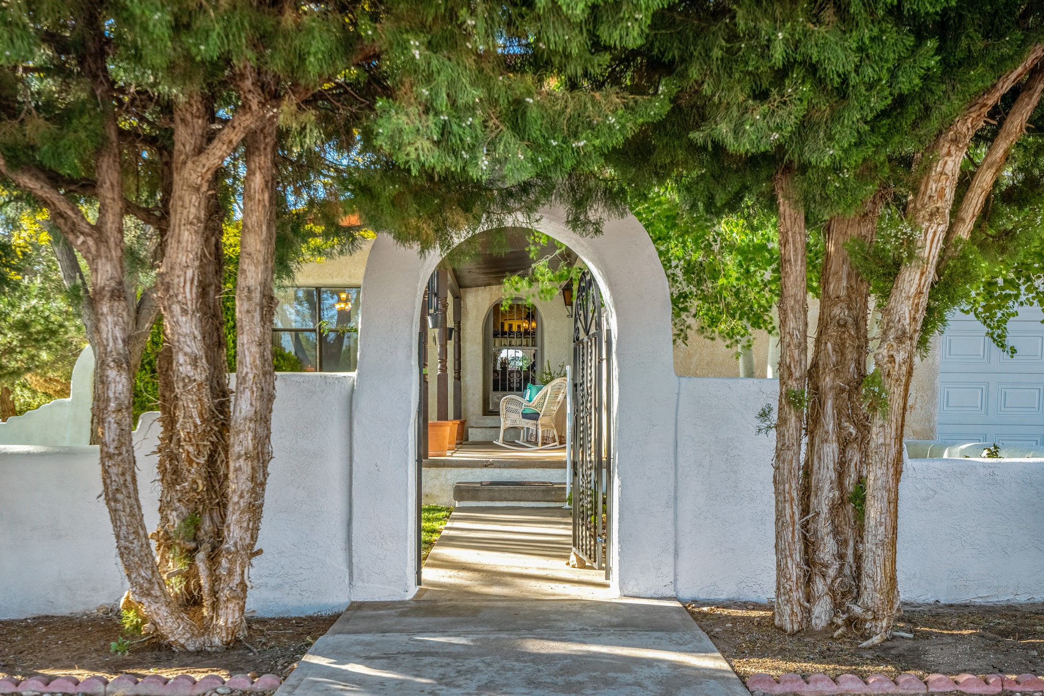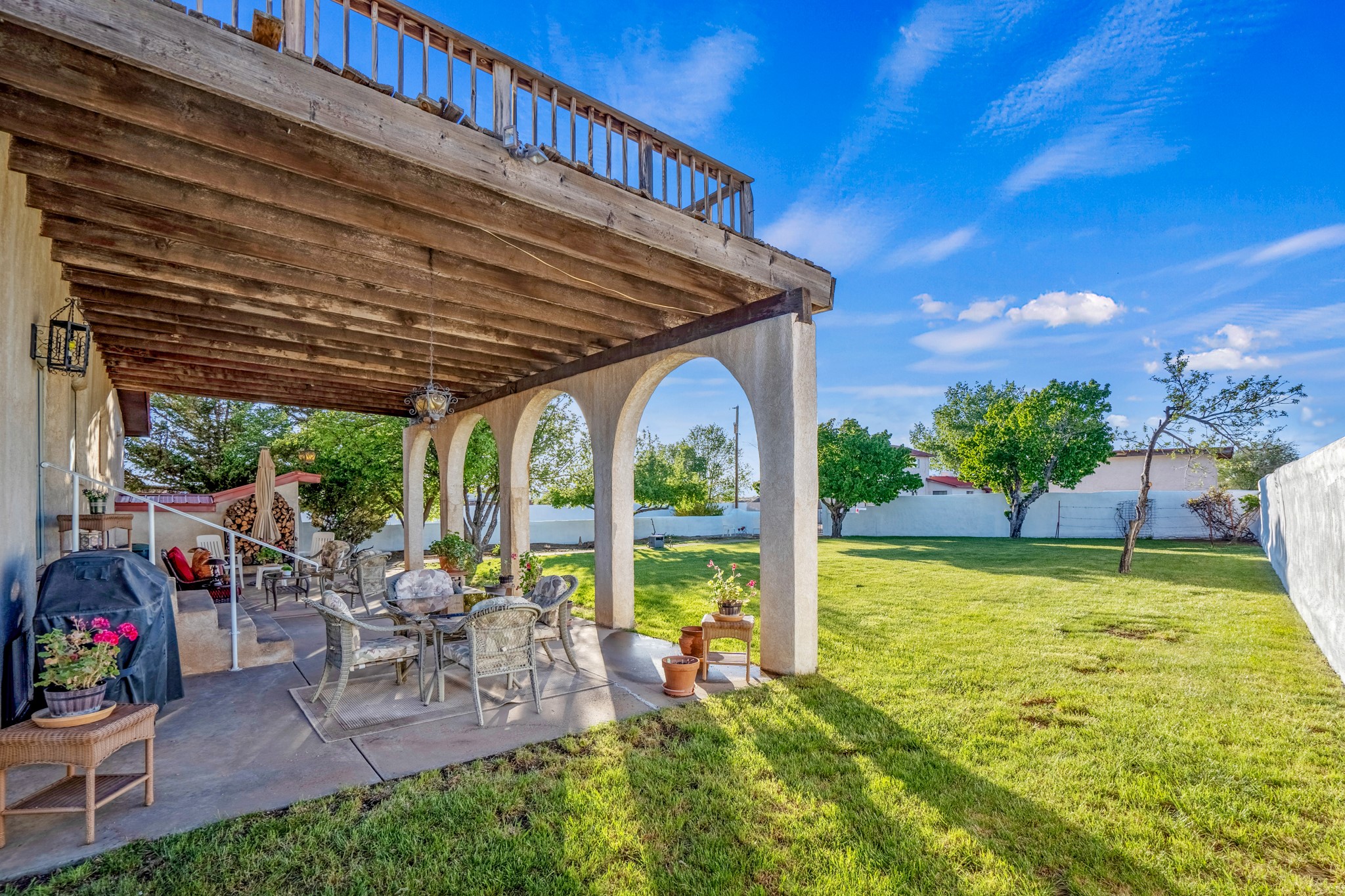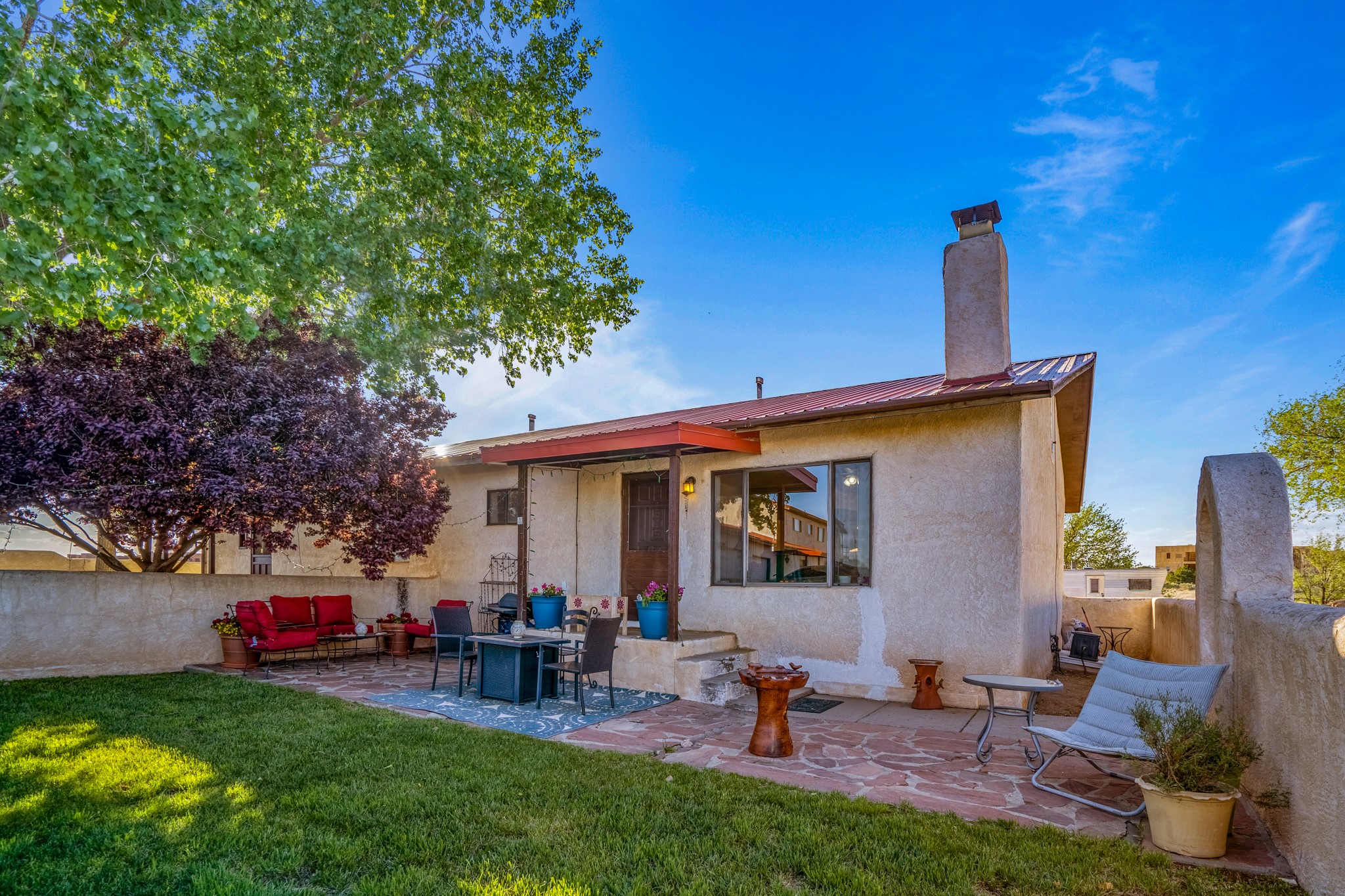 Seller Financing Considered. Main home and 5 rental units on a long 1.48 acre lot backing up to the Santa Fe River. NEW CITY SEWER LINE AND AGUA FRIA VILLAGE WATER LINE FOR THE WHOLE PROPERTY JUST INSTALLED, AN OVER $100K IMPROVEMENT. Existing well for watering the landscaping with 4 spickets in various spots. The main home features three levels with four bedrooms, three baths, two living rooms, dining room, finished basement, a two car garage, walled backyard, front yard, side patio, and a large redwood deck off the master bedroom that was just rebuilt. The interior features skylights, beams, tongue and groove ceilings in a herringbone pattern, and custom carved wood staircases. The finished basement contains a huge family room with a kiva fireplace, windows all around, one bedroom with a sitting area and stairwell to access the backyard. The large backyard has lush grass, grape vines, and fruit trees including peach, cherry, green apple, red apple, apricot. Duplex with matching 2 bed 1 bath units with front yard and fireplace. The triplex consists of a 1 bed 1 bath unit with a front yard, a 1 bed 1 bath unit with a balcony, and a 2 bed 1 bath with a two car a garage. On the property there is also a separate detached oversized one car garage. Main house is approximately 3,226 sq ft. Units in the duplex are approximately 987 sq ft each. The triplex has two 936 sq ft units and one 1,033 sq ft unit. All square footages are according to an appraisal done in 1996, buyer to verify. This property has character, large square footage, and high-income producing potential!