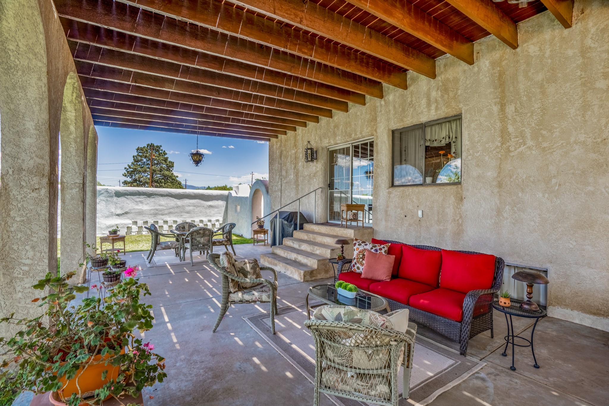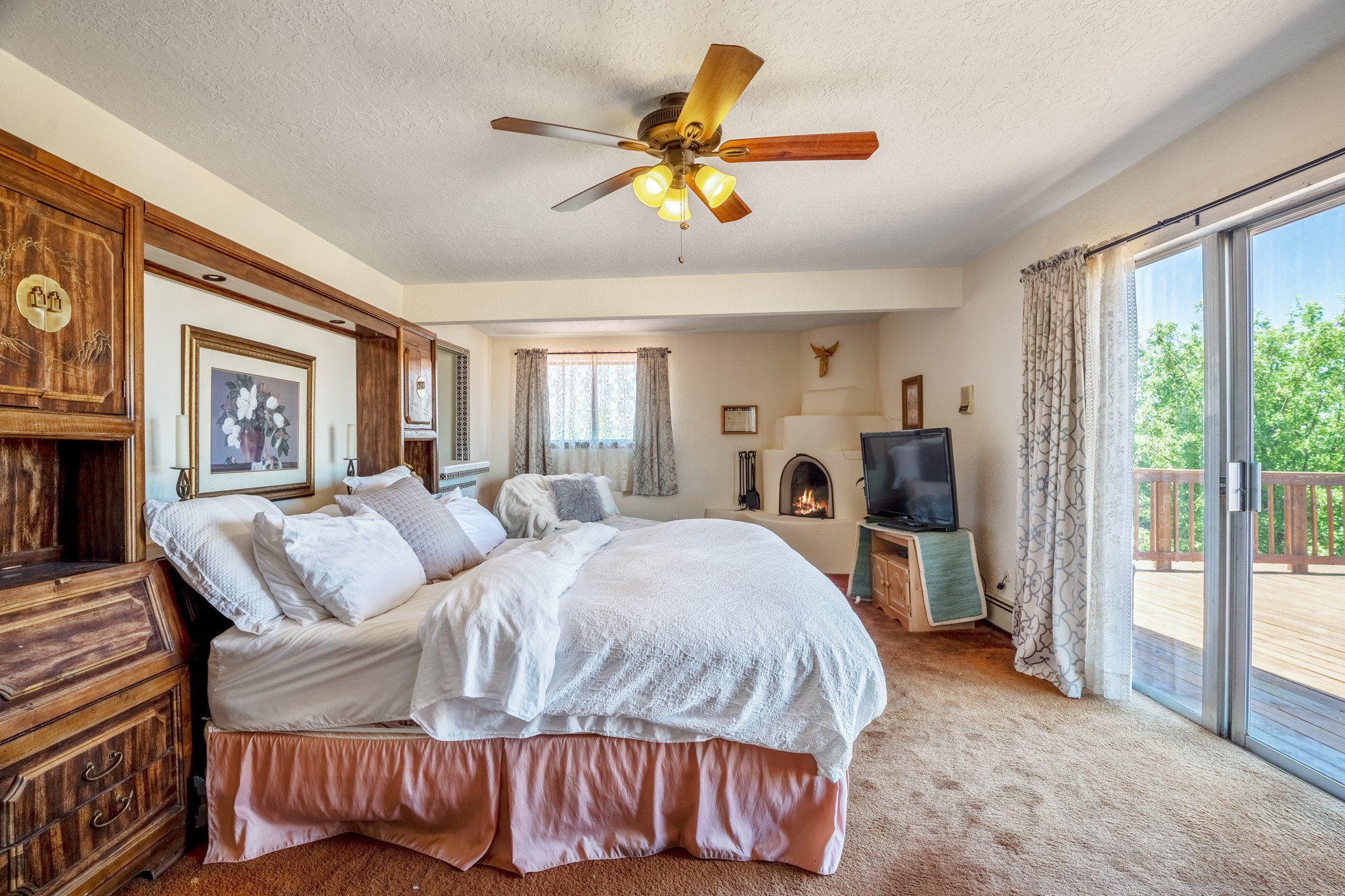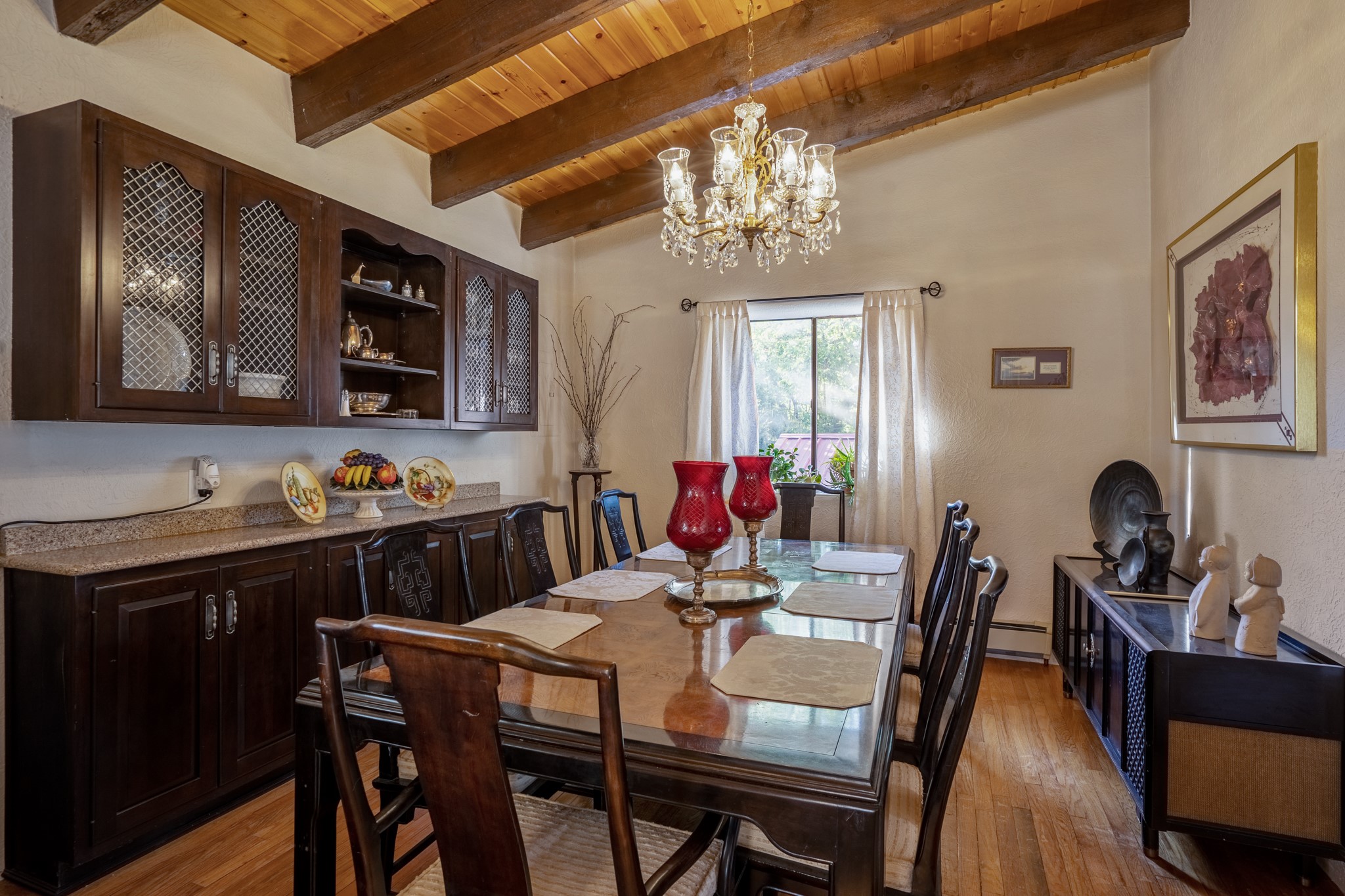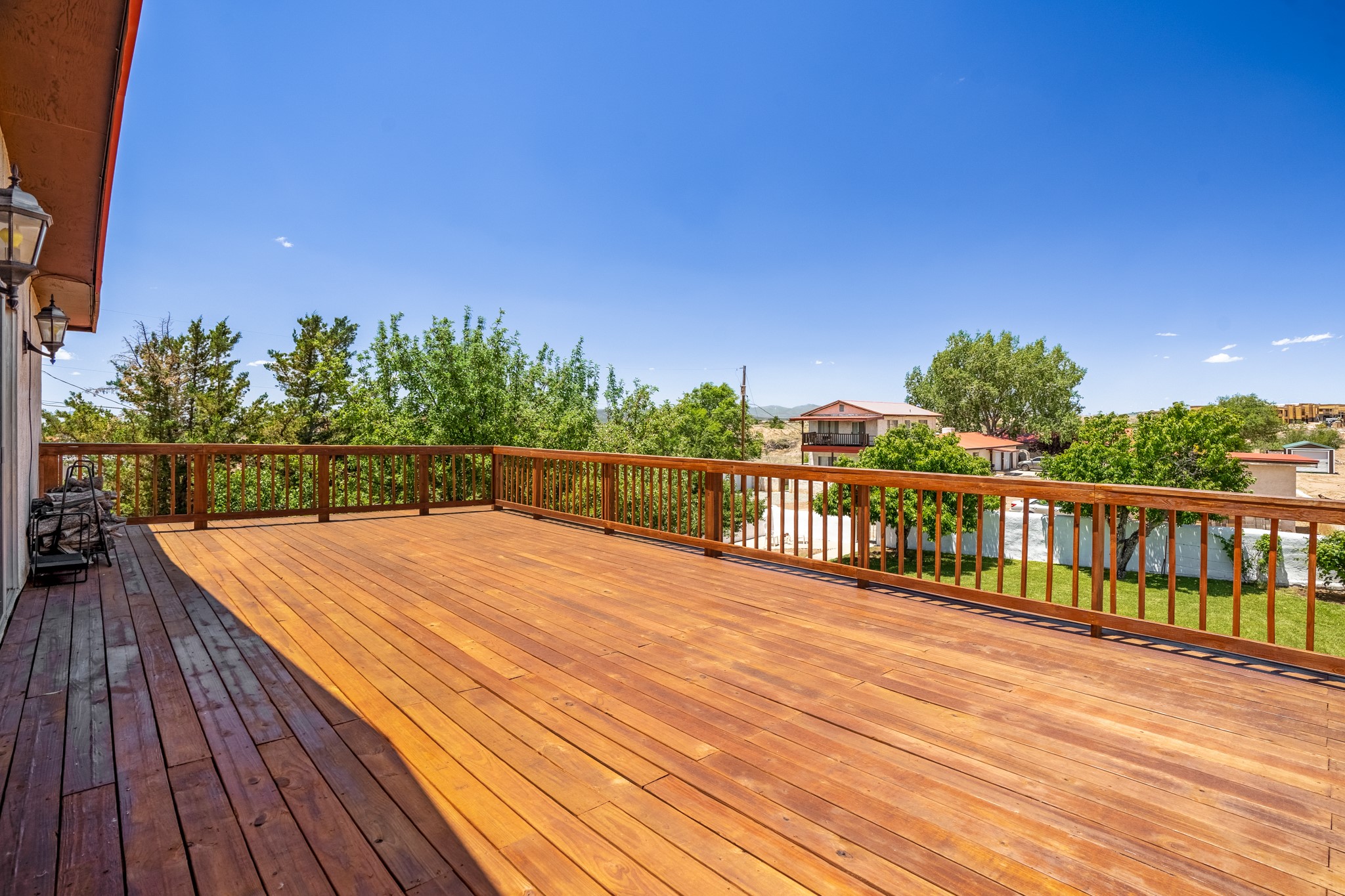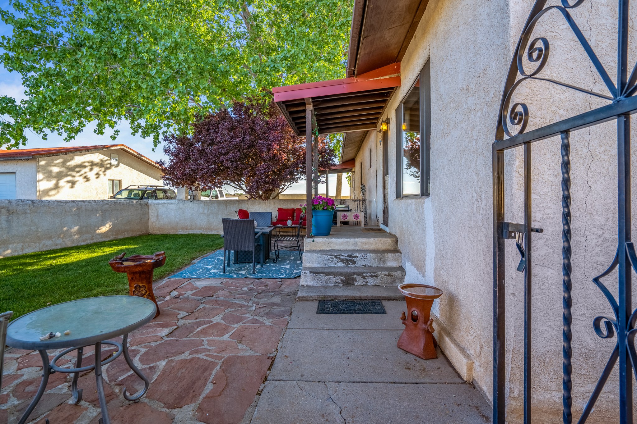 Seller Financing Considered. Main home and 5 rental units on a long 1.48 acre lot backing up to the Santa Fe River. NEW CITY SEWER LINE AND AGUA FRIA VILLAGE WATER LINE FOR THE WHOLE PROPERTY JUST INSTALLED, AN OVER $100K IMPROVEMENT. Existing well for watering the landscaping with 4 spickets in various spots. The main home features three levels with four bedrooms, three baths, two living rooms, dining room, finished basement, a two car garage, walled backyard, front yard, side patio, and a large redwood deck off the master bedroom that was just rebuilt. The interior features skylights, beams, tongue and groove ceilings in a herringbone pattern, and custom carved wood staircases. The finished basement contains a huge family room with a kiva fireplace, windows all around, one bedroom with a sitting area and stairwell to access the backyard. The large backyard has lush grass, grape vines, and fruit trees including peach, cherry, green apple, red apple, apricot. Duplex with matching 2 bed 1 bath units with front yard and fireplace. The triplex consists of a 1 bed 1 bath unit with a front yard, a 1 bed 1 bath unit with a balcony, and a 2 bed 1 bath with a two car a garage. On the property there is also a separate detached oversized one car garage. Main house is approximately 3,226 sq ft. Units in the duplex are approximately 987 sq ft each. The triplex has two 936 sq ft units and one 1,033 sq ft unit. All square footages are according to an appraisal done in 1996, buyer to verify. This property has character, large square footage, and high-income producing potential!