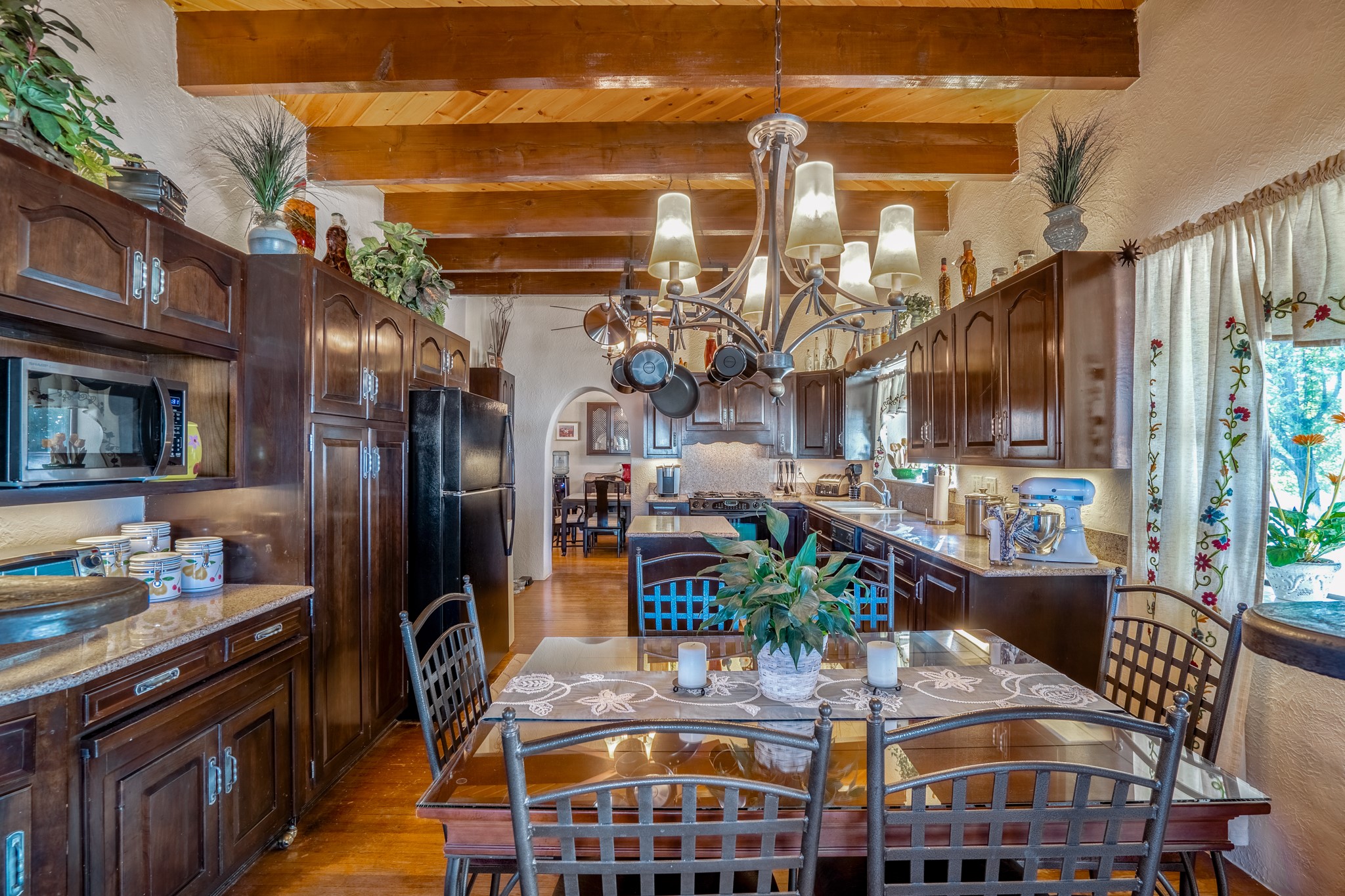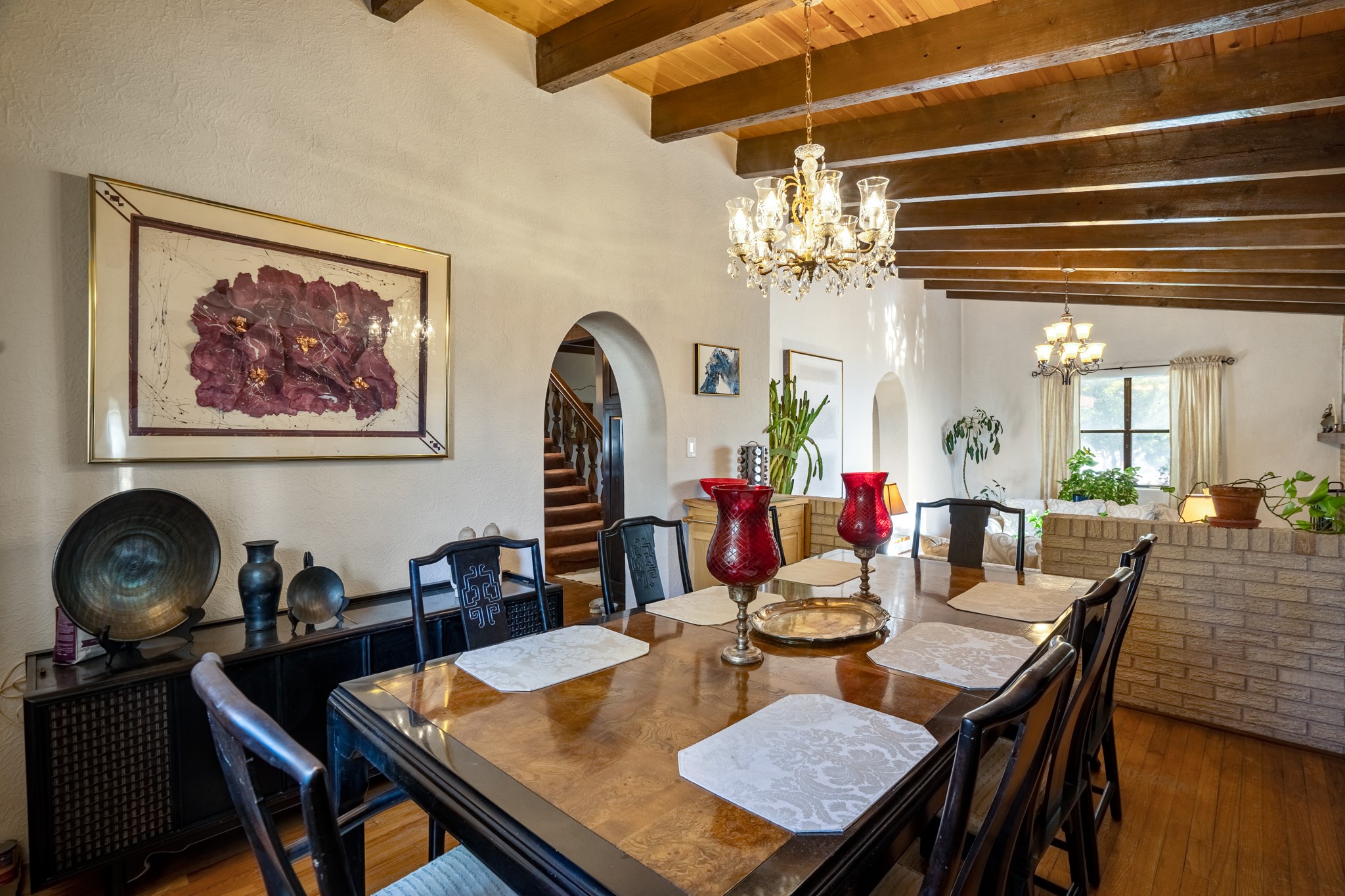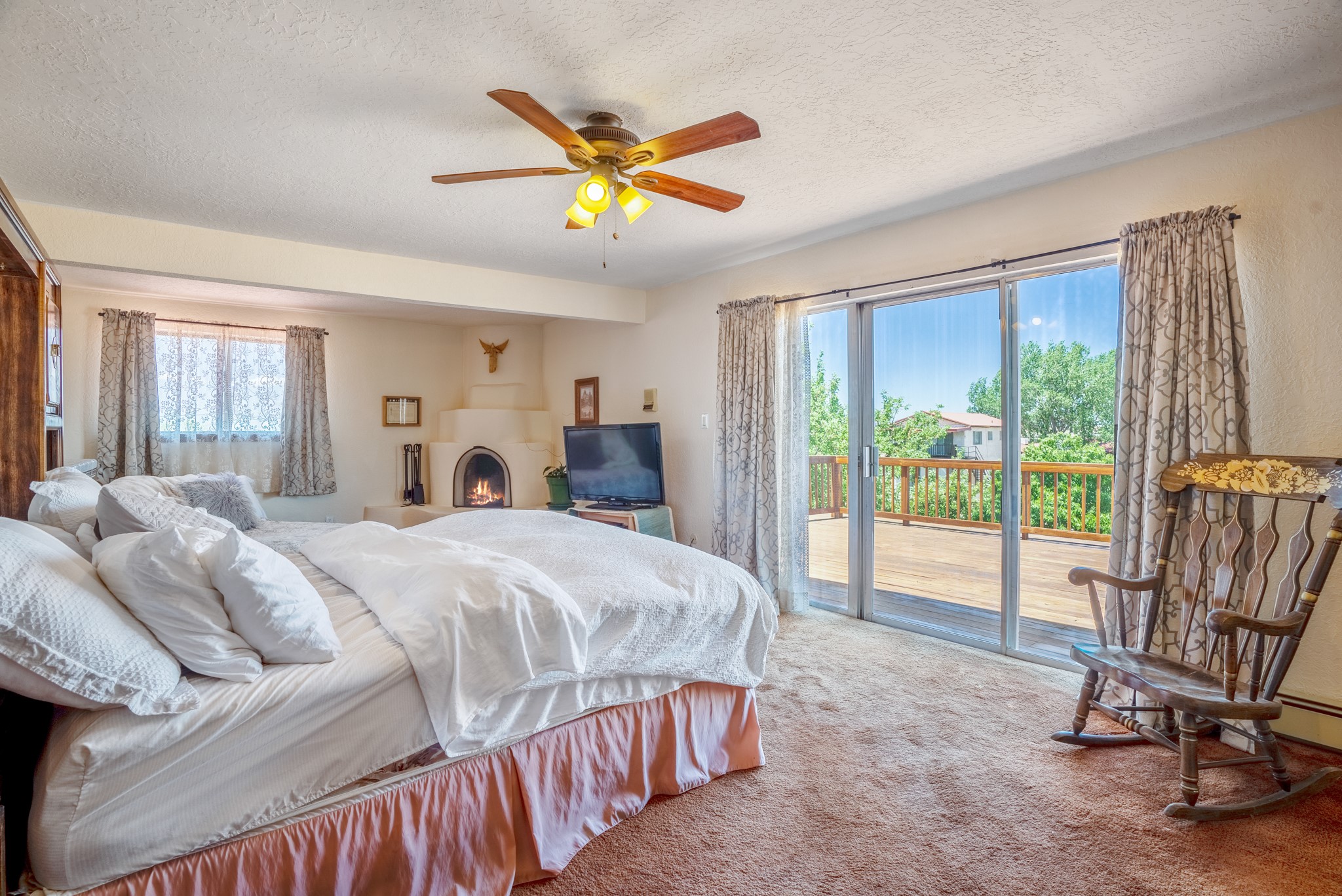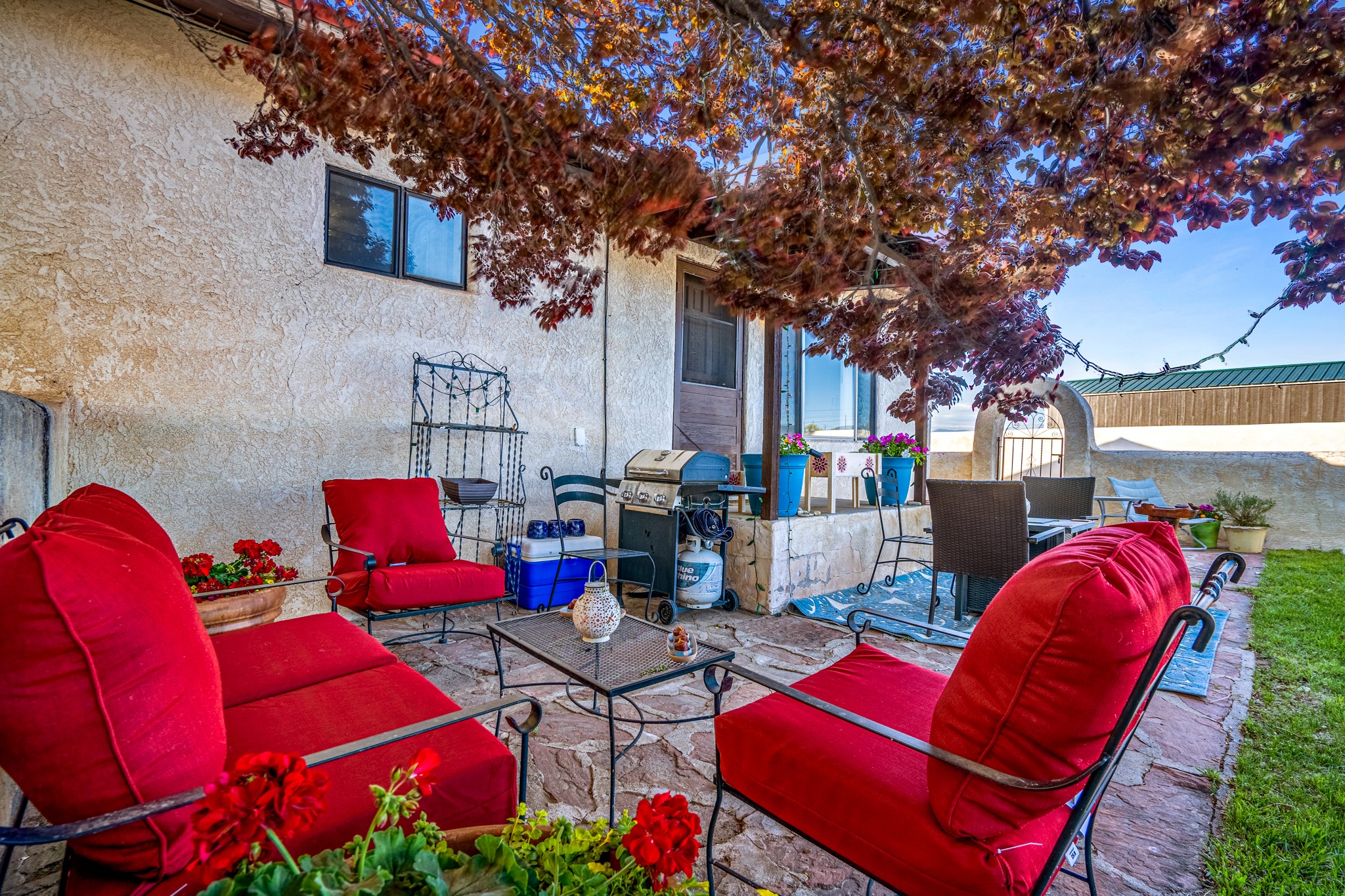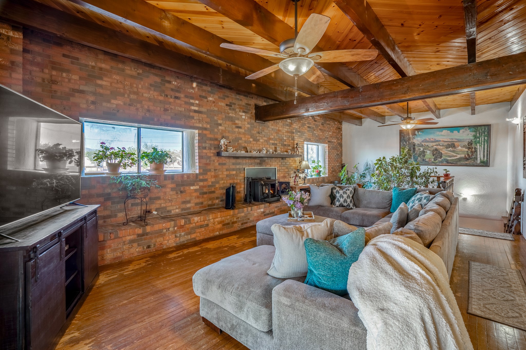 Seller Financing Considered. Main home and 5 rental units on a long 1.48 acre lot backing up to the Santa Fe River. NEW CITY SEWER LINE AND AGUA FRIA VILLAGE WATER LINE FOR THE WHOLE PROPERTY JUST INSTALLED, AN OVER $100K IMPROVEMENT. Existing well for watering the landscaping with 4 spickets in various spots. The main home features three levels with four bedrooms, three baths, two living rooms, dining room, finished basement, a two car garage, walled backyard, front yard, side patio, and a large redwood deck off the master bedroom that was just rebuilt. The interior features skylights, beams, tongue and groove ceilings in a herringbone pattern, and custom carved wood staircases. The finished basement contains a huge family room with a kiva fireplace, windows all around, one bedroom with a sitting area and stairwell to access the backyard. The large backyard has lush grass, grape vines, and fruit trees including peach, cherry, green apple, red apple, apricot. Duplex with matching 2 bed 1 bath units with front yard and fireplace. The triplex consists of a 1 bed 1 bath unit with a front yard, a 1 bed 1 bath unit with a balcony, and a 2 bed 1 bath with a two car a garage. On the property there is also a separate detached oversized one car garage. Main house is approximately 3,226 sq ft. Units in the duplex are approximately 987 sq ft each. The triplex has two 936 sq ft units and one 1,033 sq ft unit. All square footages are according to an appraisal done in 1996, buyer to verify. This property has character, large square footage, and high-income producing potential!